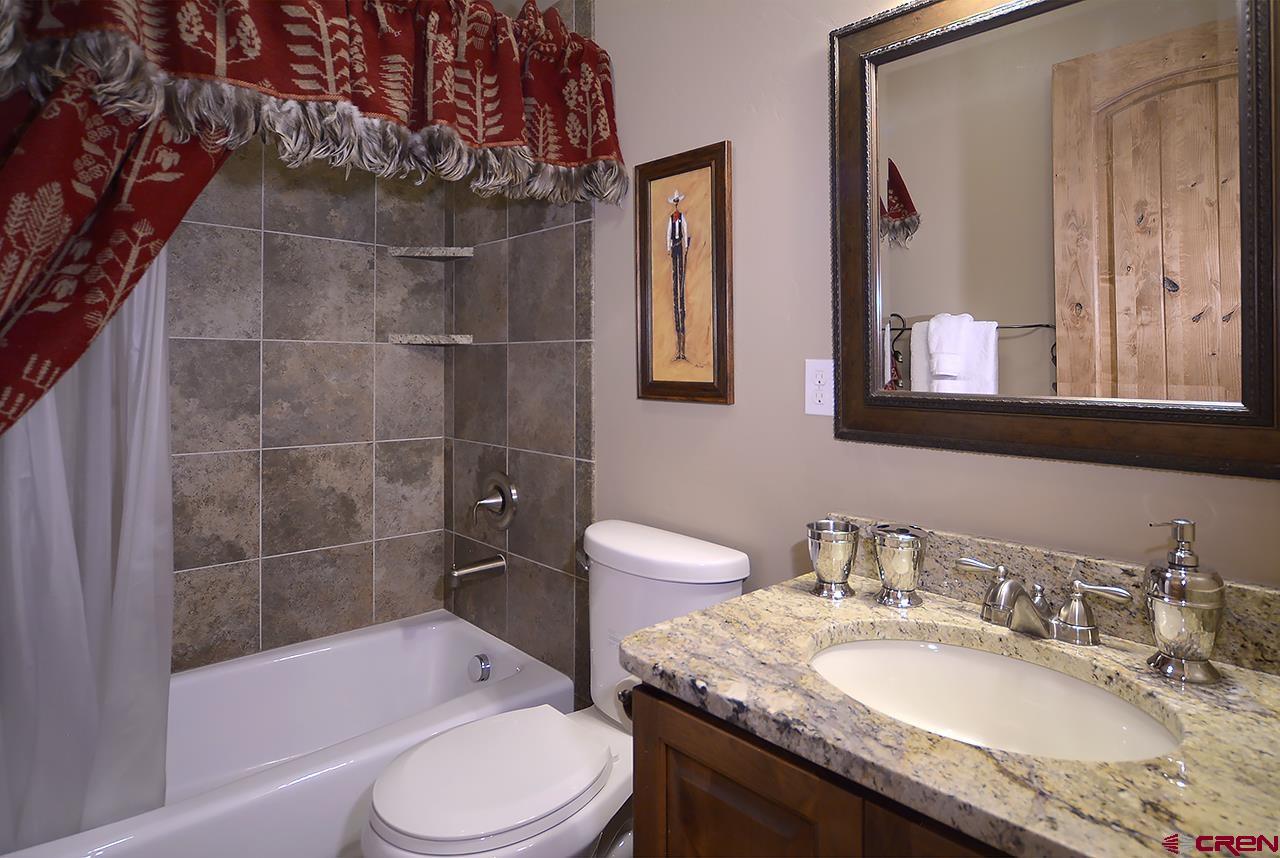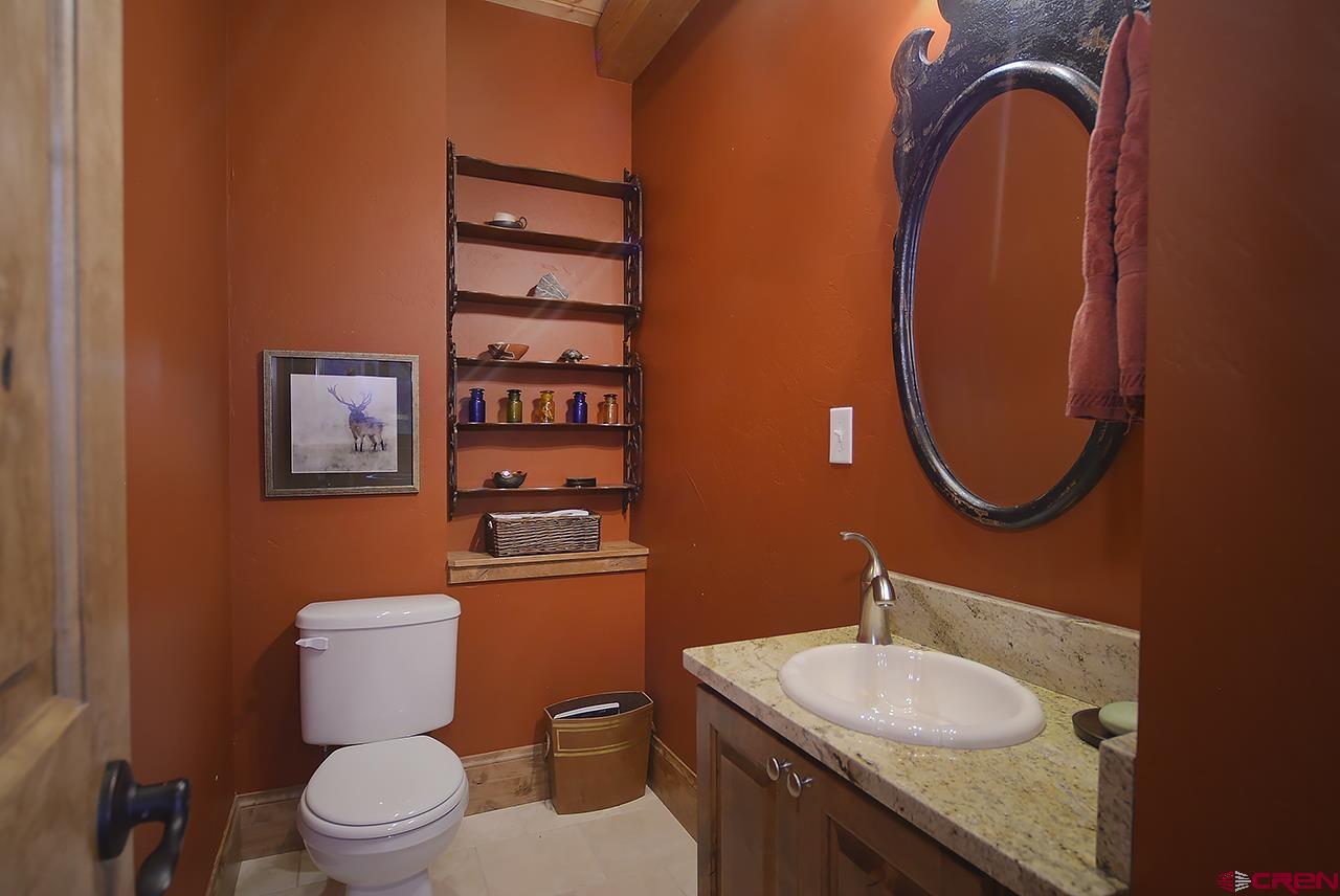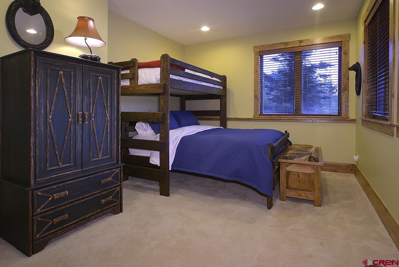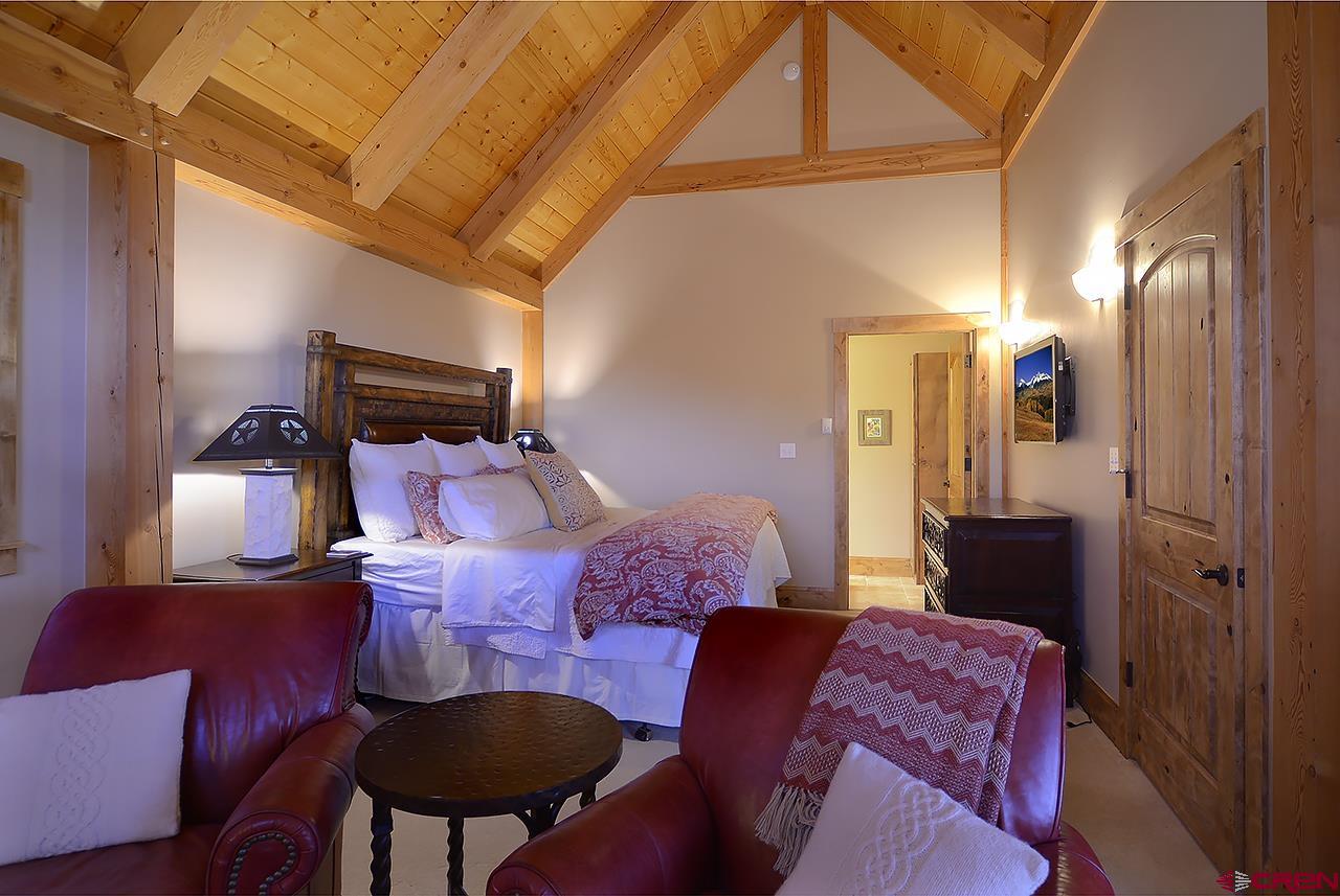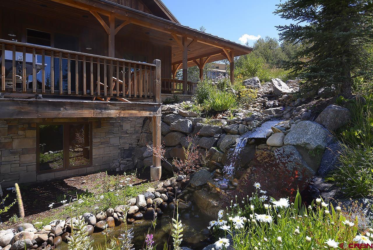 This spectacular, well maintained 5BD/3.5BA, 3,149 square foot mountain home is within walking distance to ski access in the winter, hiking in the summer, and plenty of outdoor space to enjoy the fantastic Colorado weather. Pull into the large driveway and park in the oversized 2-car garage. Inside the home you enter into a custom-built mud room with antique barn wood cabinetry and large entryway to kick off the shoes and start relaxing. Also, on this level are 3 bedrooms and 2 bathrooms. There is a junior master bedroom with a King bed and ensuite bath with dual vanities. There are two other bedrooms that share a full bath just outside the other downstairs hallway. One guest bedroom has a queen bed and the other has a queen bed and twin single bunk. There is plenty of owner storage on this level as well. The wide grand staircase on the entry level leads up to the great room with antique barn beams and spectacular views! This is the heart of the home with a wonderful kitchen, large dining space with 180 degree views, and comfy living area. There's plenty of seating to gather around the wood burning fireplace and watch a movie on the big screen TV. Off the living space is a powder bath and a bonus room with twin bed, TV, and play loft- this space could also be used as an office. Behind the living room is the large master suite with King bed and spacious sitting area that overlooks the mountains. This room has vaulted ceilings with great wood beams for a spacious and relaxing feel. There is a private deck off the master as well. The master bathroom has dual vanities, soaking tub, shower, and walk in closet. Going back into the great room you can step outside onto large covered and open decks. There is a dining set and gas grill for outdoor dining. The sun deck sits right next to a man-made waterfall feature- enjoy the peaceful sound of water and privacy with your extra 1/2 lot on this side of the home.