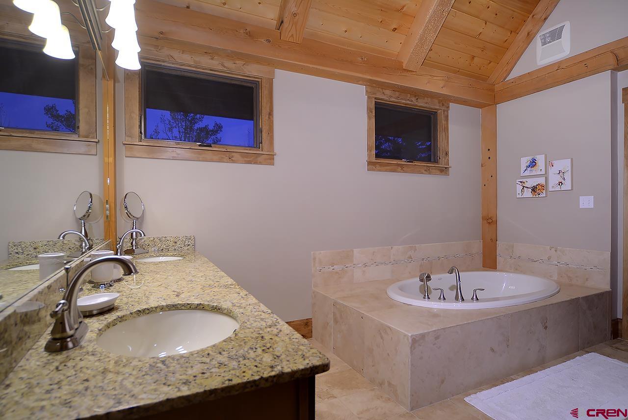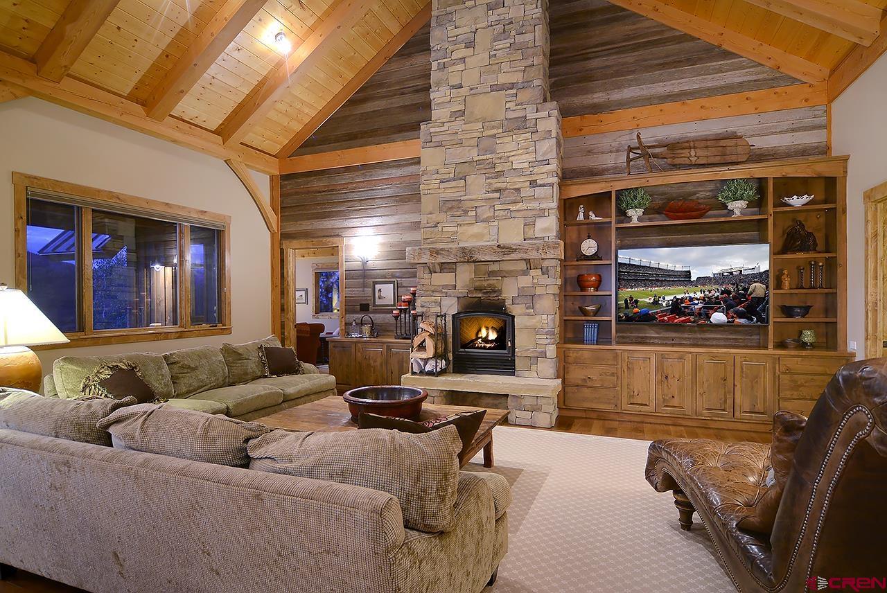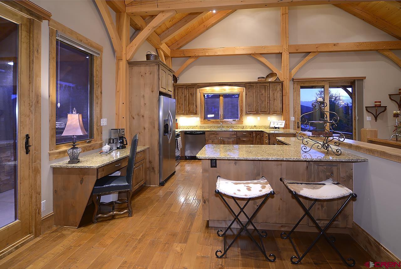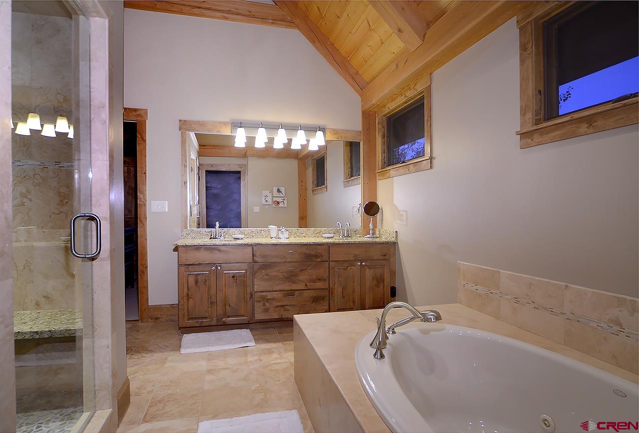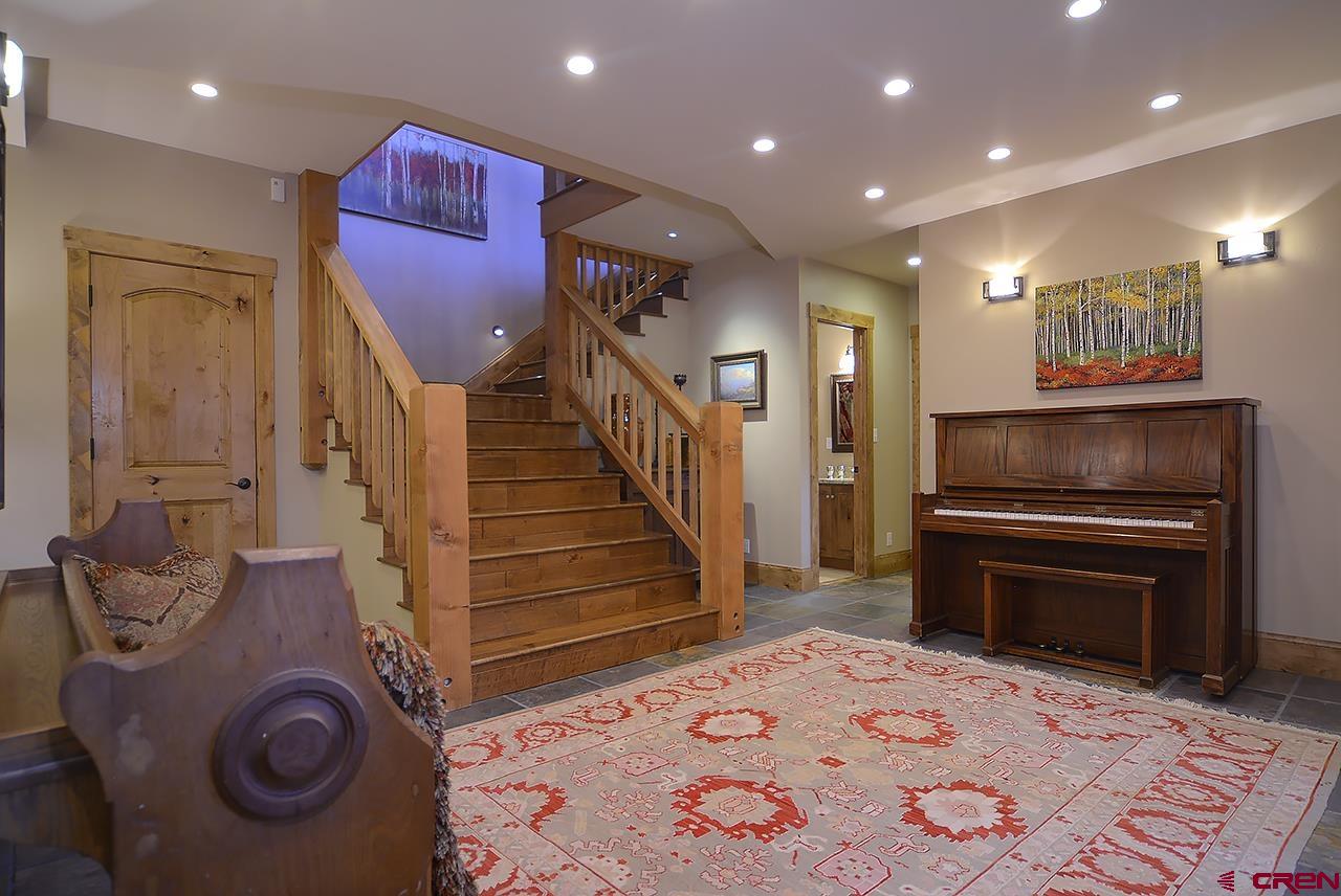 This spectacular, well maintained 5BD/3.5BA, 3,149 square foot mountain home is within walking distance to ski access in the winter, hiking in the summer, and plenty of outdoor space to enjoy the fantastic Colorado weather. Pull into the large driveway and park in the oversized 2-car garage. Inside the home you enter into a custom-built mud room with antique barn wood cabinetry and large entryway to kick off the shoes and start relaxing. Also, on this level are 3 bedrooms and 2 bathrooms. There is a junior master bedroom with a King bed and ensuite bath with dual vanities. There are two other bedrooms that share a full bath just outside the other downstairs hallway. One guest bedroom has a queen bed and the other has a queen bed and twin single bunk. There is plenty of owner storage on this level as well. The wide grand staircase on the entry level leads up to the great room with antique barn beams and spectacular views! This is the heart of the home with a wonderful kitchen, large dining space with 180 degree views, and comfy living area. There's plenty of seating to gather around the wood burning fireplace and watch a movie on the big screen TV. Off the living space is a powder bath and a bonus room with twin bed, TV, and play loft- this space could also be used as an office. Behind the living room is the large master suite with King bed and spacious sitting area that overlooks the mountains. This room has vaulted ceilings with great wood beams for a spacious and relaxing feel. There is a private deck off the master as well. The master bathroom has dual vanities, soaking tub, shower, and walk in closet. Going back into the great room you can step outside onto large covered and open decks. There is a dining set and gas grill for outdoor dining. The sun deck sits right next to a man-made waterfall feature- enjoy the peaceful sound of water and privacy with your extra 1/2 lot on this side of the home.