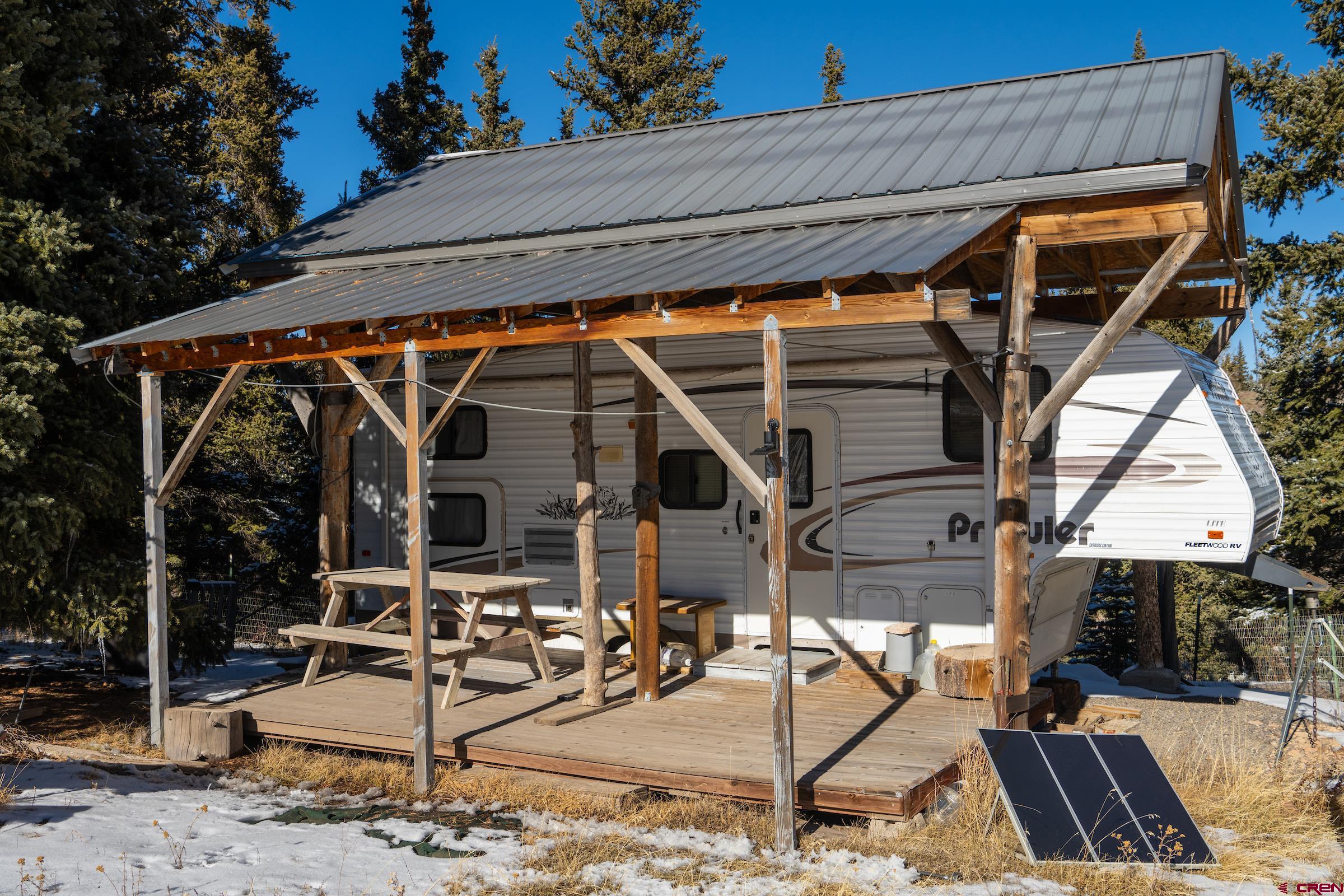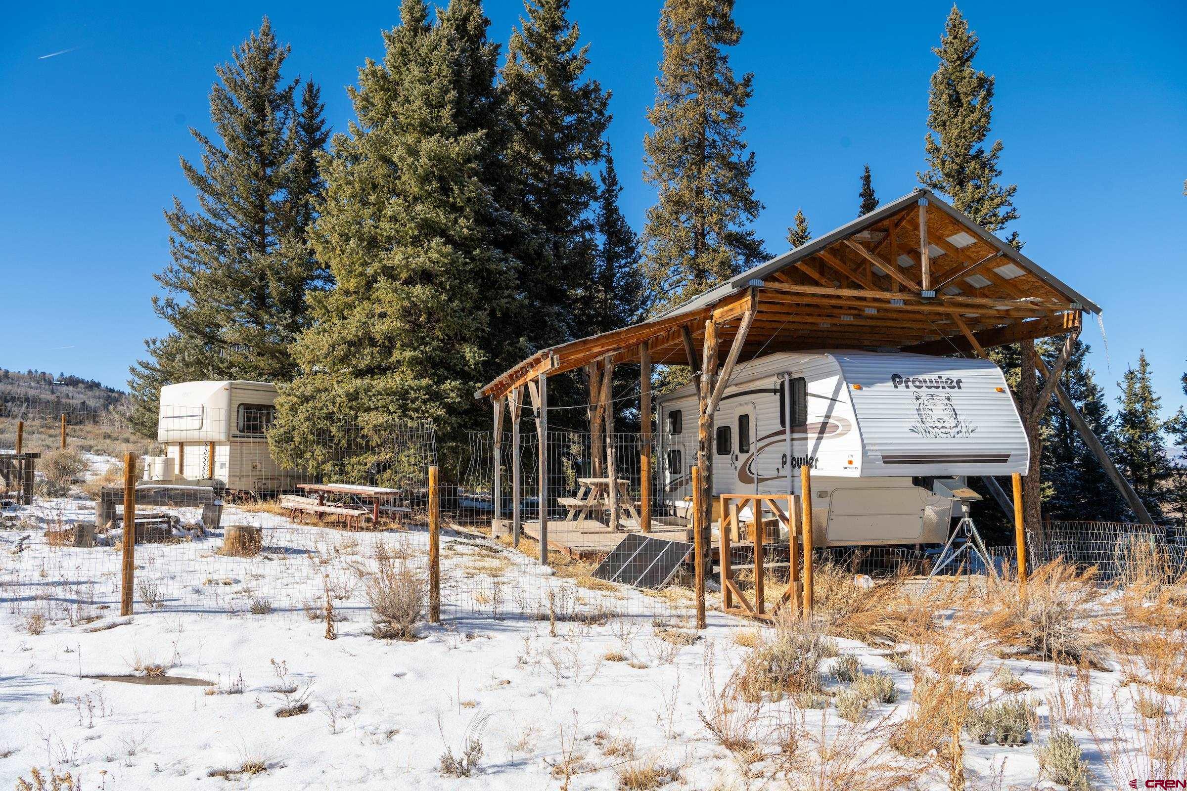 Stunning and secluded mountain getaway on Willow Creek. Build your dream cabin on the level road frontage or take advantage of the well-built RV shelter already on the property. Structures built within last 15 years. Wildlife abounds year round on this property and it offers stunning views of the West Elk Mountains to the north. Includes mature trees, an established driveway, storage shed and RV shelter. The property is located in Big Game Unit 66 with healthy populations of elk, deer, and bear. Access to BLM and national forest trails are less than 15 minutes away on your ATV and world-class fishing and boating await on the Blue Mesa Reservoir just 13 miles to the north. Excellent seasonal access on maintained gravel roads and winter access via snowmobile or other winter vehicle.