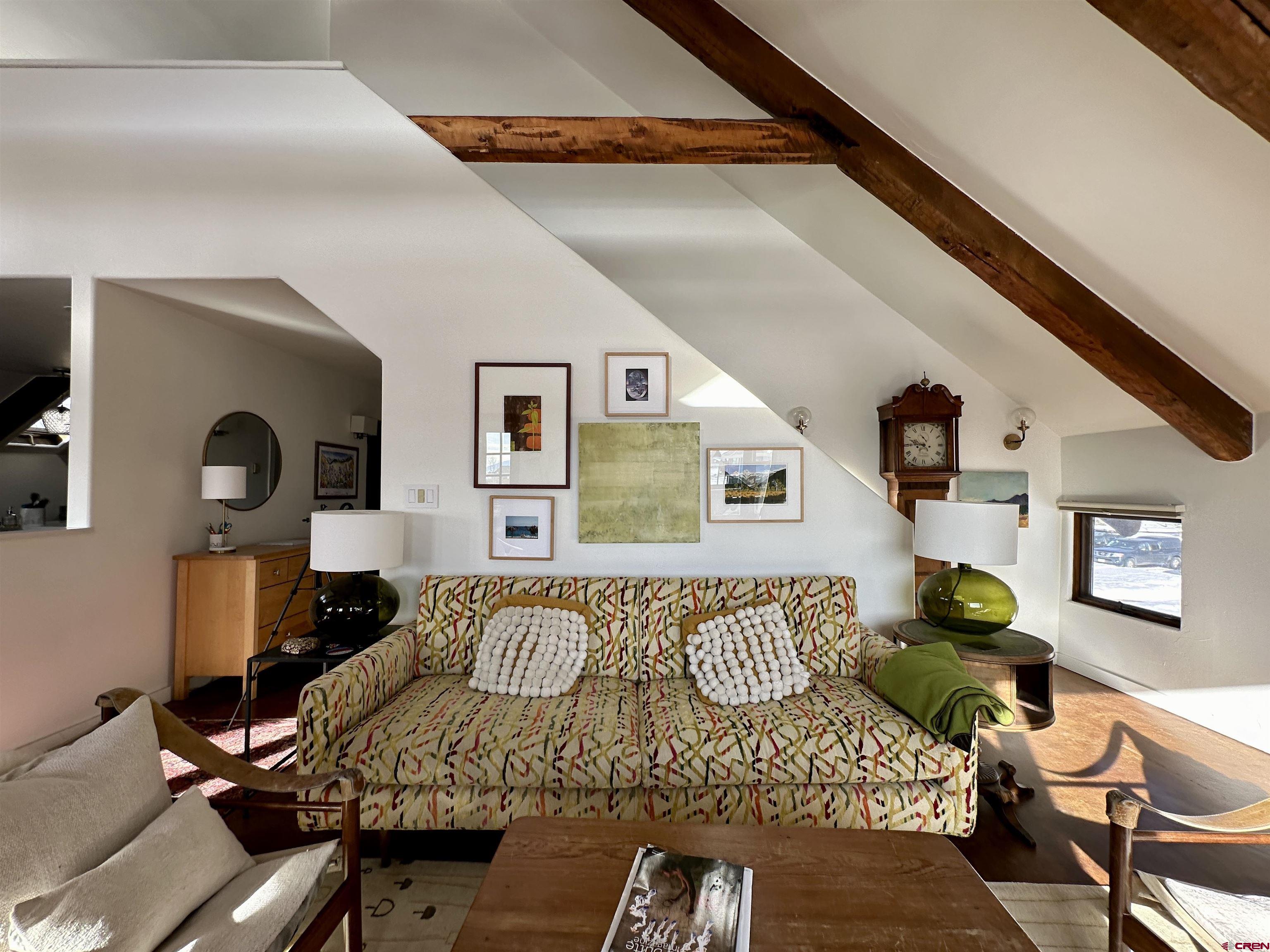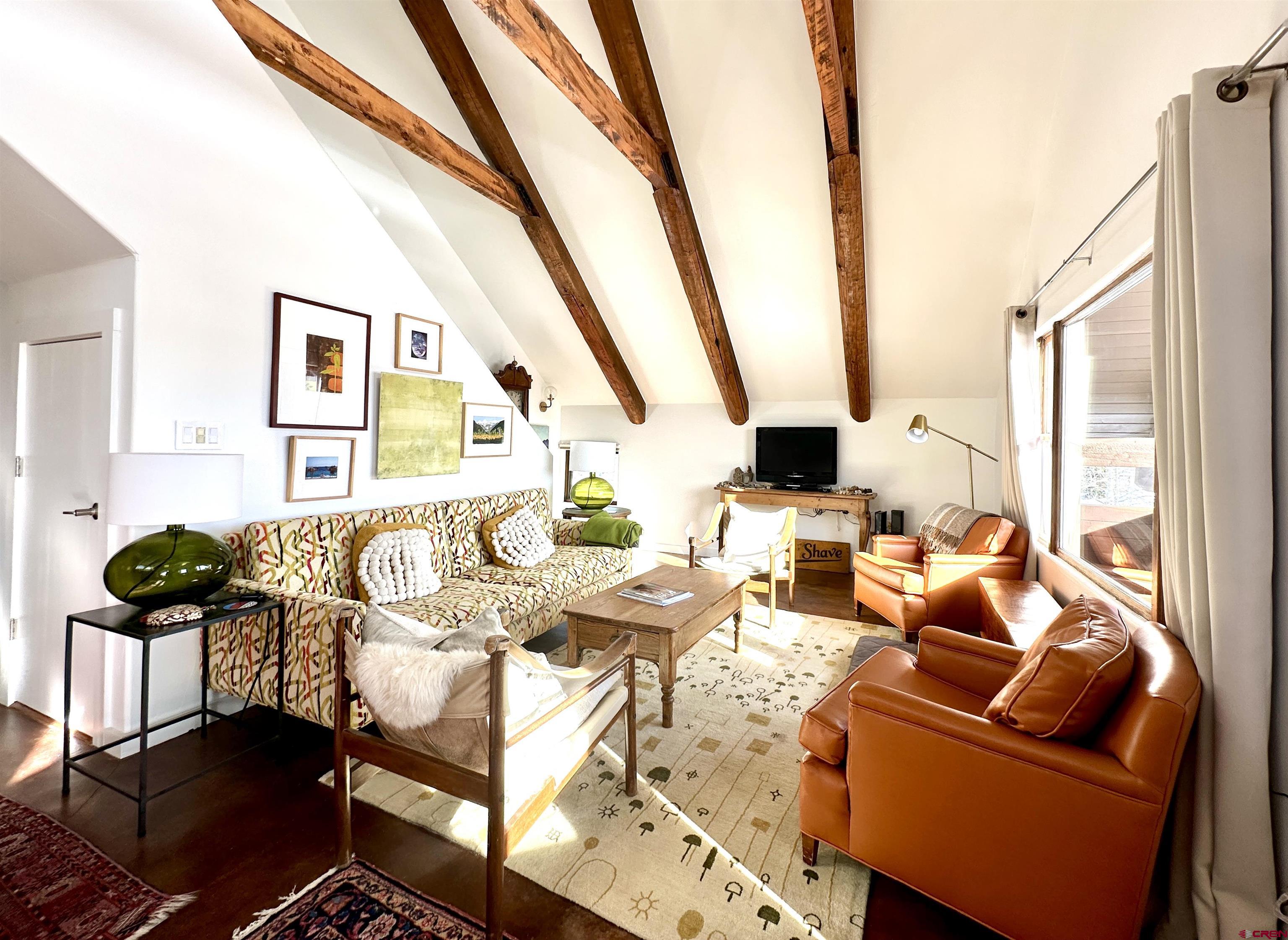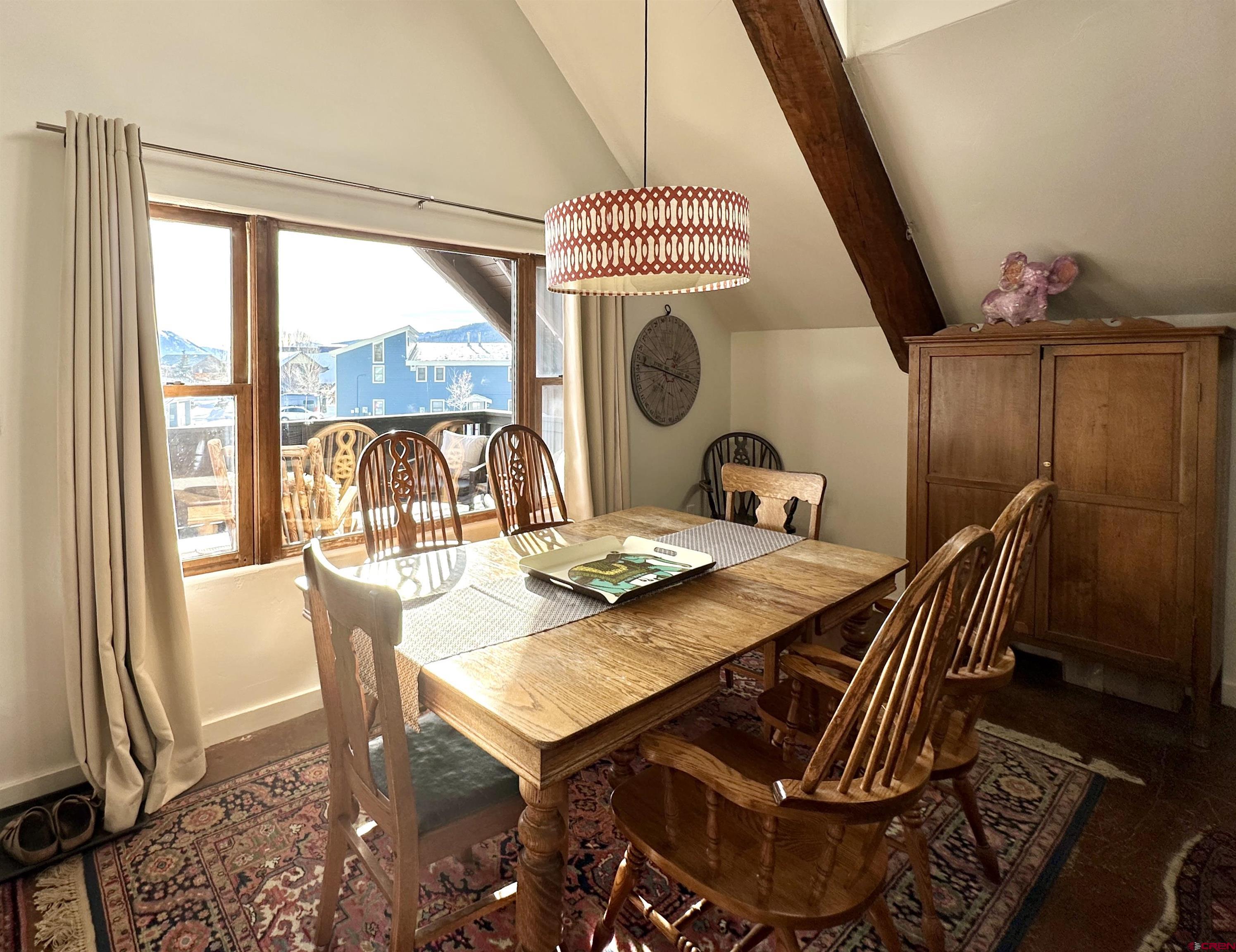 Nestled within the desirable Riverbend neighborhood, a mere stone's throw from the historic downtown of Crested Butte, 92 Aspen Lane, Unit 4B is an exceptional opportunity. This remodeled top-floor unit, featuring 3 bedrooms and 2 bathrooms, offers a blend of mountain elegance and contemporary comfort. Step into this inviting abode, and you'll be greeted by the expansive vaulted ceilings adorned with beautiful wood beams. The efficient gas in-floor heating system ensures warmth underfoot as you traverse the cement floors, creating a cozy ambiance throughout. The unit is strategically positioned as south-facing, allowing an abundance of natural sunlight to flood the space and providing a warm and inviting atmosphere year-round. The heart of this home lies in its spacious kitchen, showcasing cherry cabinets and a convenient island. Upgraded kitchen appliances include the stovetop, oven, dishwasher, and microwave. Fresh paint throughout the condo adds a touch of modernity, while a brand-new washer and dryer offer added convenience. As you enter, the mudroom proves to be a perfect practical addition, providing an excellent space for storing your outdoor gear and keeping your living area tidy. Bask in the awe-inspiring mountain views from the covered balcony, or unwind in the living room with a picturesque sight of Crested Butte Mountain. Perfect for outdoor enthusiasts, the nearby Deli Trail offers year-round adventures from biking in the summer to Nordic skiing in the winter. Enjoy the convenience of a quick 10-minute drive to the world-class skiing of Crested Butte Mountain Resort. Schedule a showing today and make this condo your elevated mountain retreat. Your ideal mountain lifestyle awaits!