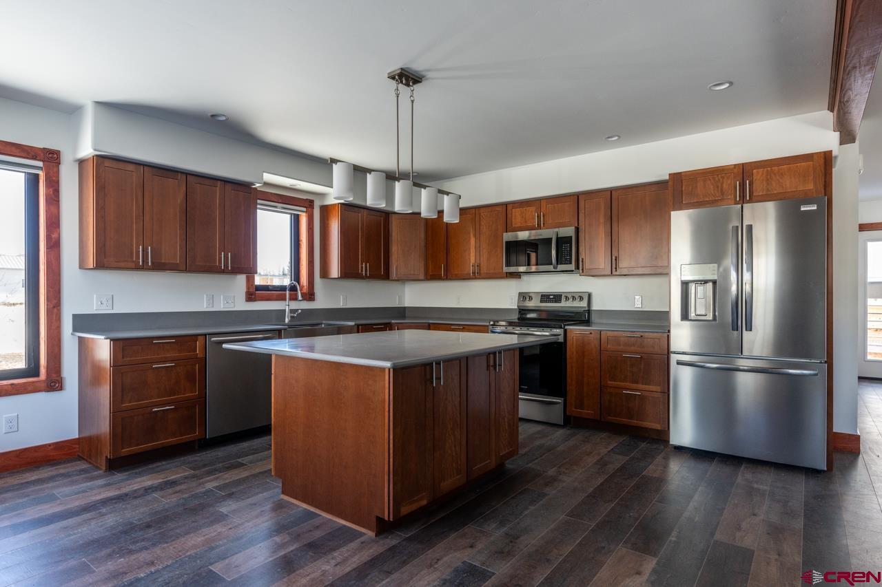 Welcome to your dream home in the picturesque Van Tuyl Village subdivision! This brand-new, 3-bedroom, 2.5-bathroom property is a testament to modern design and quality craftsmanship. As you step inside, you're greeted by an open and inviting kitchen-dining area, adorned with cherry cabinets and equipped with state-of-the-art stainless steel appliances. The tiled shower and bathtub add a touch of luxury to the bathrooms, while the master bedroom boasts its own oasis with a reading nook or small office space. The 2-car detached garage features 8-foot doors and 10-foot ceilings inside, providing ample space for your vehicles and storage needs. The extra space above the garage, accessible via exterior stairs, presents exciting opportunities. Whether you need additional storage or dream of an ADU (Accessory Dwelling Unit), the potential is yours to explore with City of Gunnison approval. Don't miss the chance to make this new construction your forever home. Contact us now to schedule a viewing and witness the epitome of contemporary living!