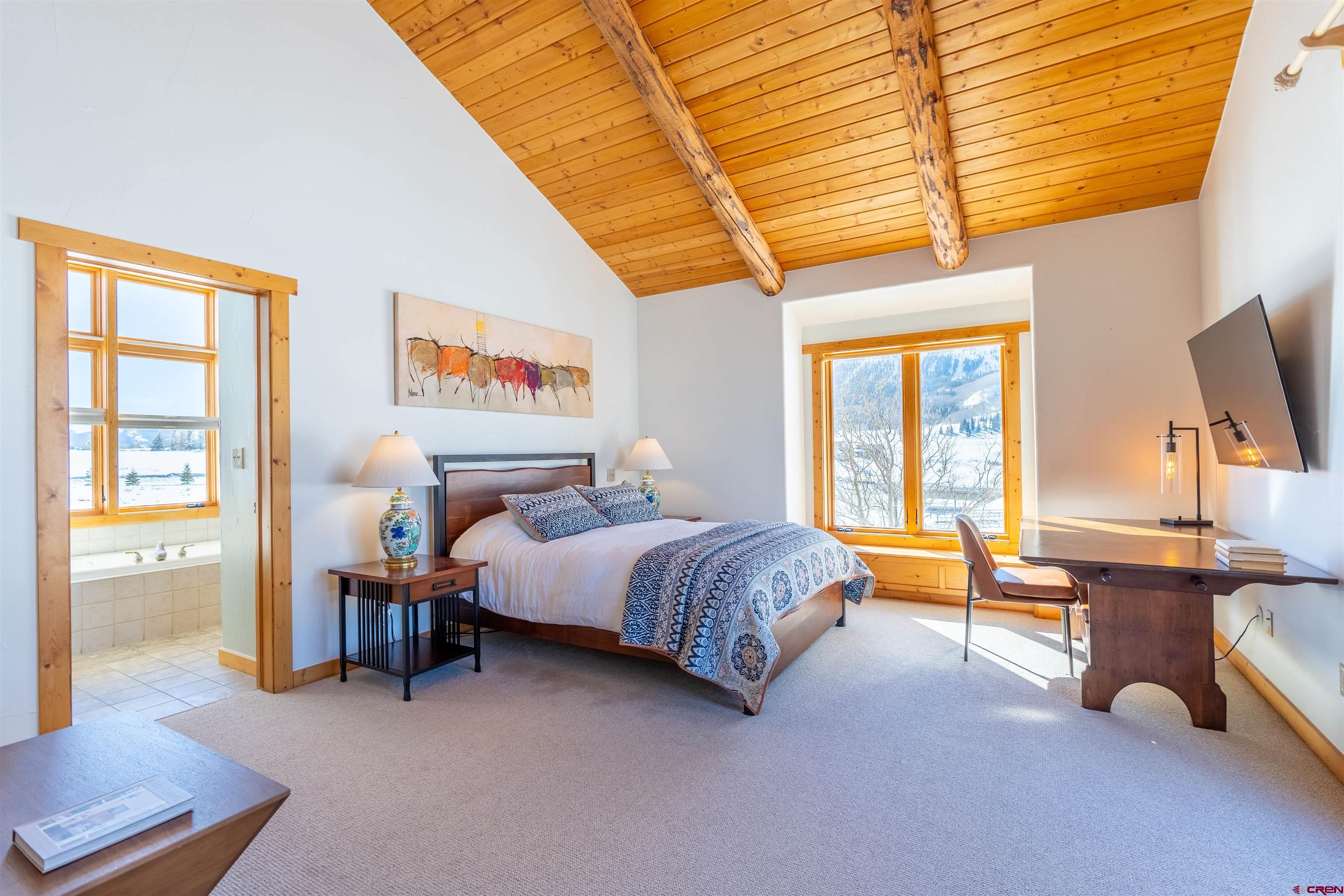 Welcome to 85 Vista Court: a mountain retreat like no other. Nested in a unique location with sweeping views of the upper valley, centering Paradise Divide and overlooking the Slate River, this beautiful Skyland home features 4 bedrooms, 3.5 bathrooms, and a loft. Enjoy the ease of one-floor living. The spacious primary bedroom boasts vaulted ceilings, an en-suite 5-piece bathroom, a walk-in closet, and a private deck. The kitchen includes stainless steel appliances, a peninsula with bar seating, and a generously sized pantry. The living room is complete with a stone wood burning fireplace, intricate beam work, and vaulted ceilings. Step out onto the large, west-facing deck, perfectly oriented to enjoy Crested Butte sunsets and take in the panoramic views. Three additional bedrooms offer flexibility: with one having an en-suite full bathroom, and two connected through a Jack and Jill. The open loft overlooking the great room could serve as an ideal office space or playroom. The unfinished basement area holds great potential, offering an opportunity to add more than 800 square feet of living space. Recent updates include a 3-zone radiant in-floor heat system, new carpet, new interior paint throughout, and landscaping improvements. A new entrance door has been added, providing access to the yard from the side of the house. Additional highlights are the attached 2-car garage, the landscaped backyard, and the prime location on the end of the cul-de-sac. Conveniently located only 5 minutes from town in the highly sought-after Skyland neighborhood, home of Crested Butte’s golf course. Easily access the Deli Trail for cross country skiing in the winter, or for a quick bike ride into town in the summer. Explore all the outdoor recreation the Brush Creek corridor offers, and go fishing on the Slate River right from your back door, or at Skyland’s private Grant Lake. With no restrictions on short-term rentals in Skyland, this home has great earning potential. Offered furnished, your Crested Butte dream home awaits. Schedule your showing today!