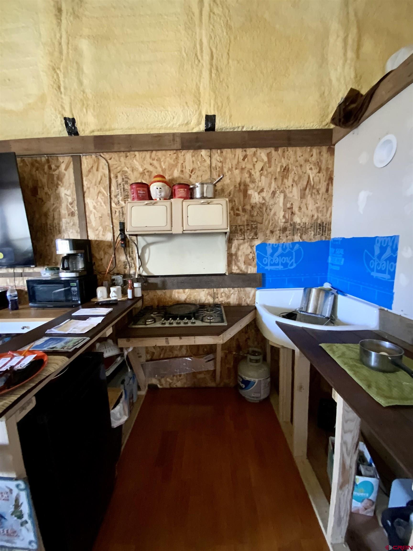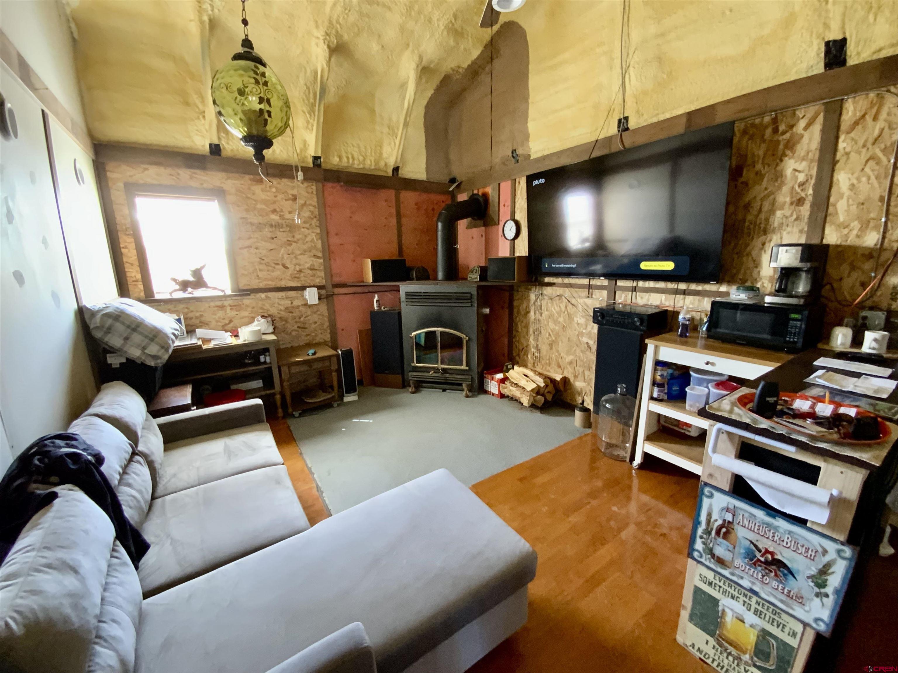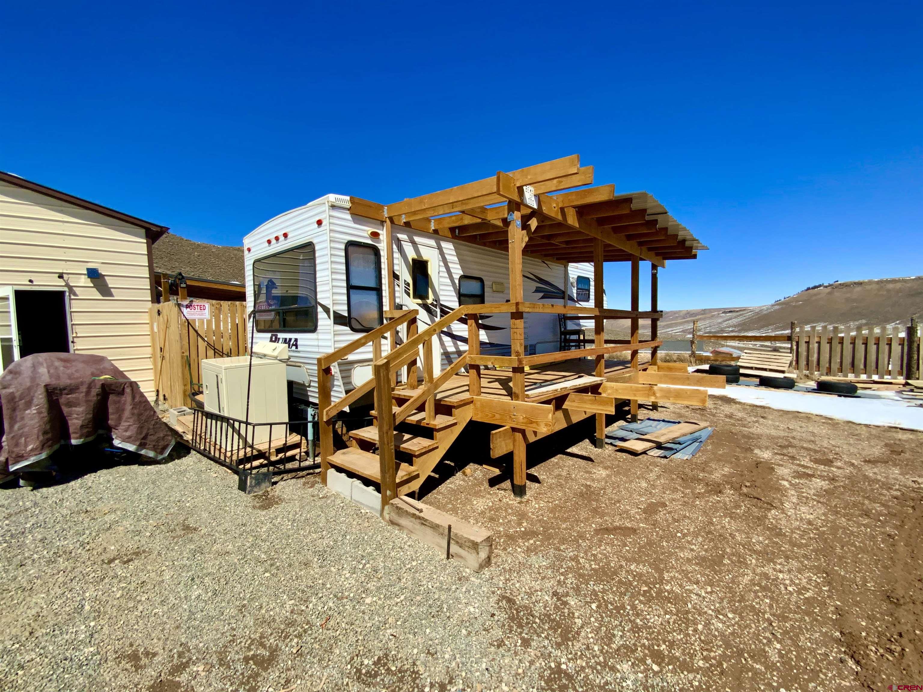 5 acre homesite just around the corner from Iola boat dock and Blue Mesa Lake. Perimeter livestock fenced, borders public lands. Includes drilled well, septic tank and leach field. Modulars are allowed. Garage structure has a converted section into living quarters. RV pad site with hook ups next to the exterior of the garage.