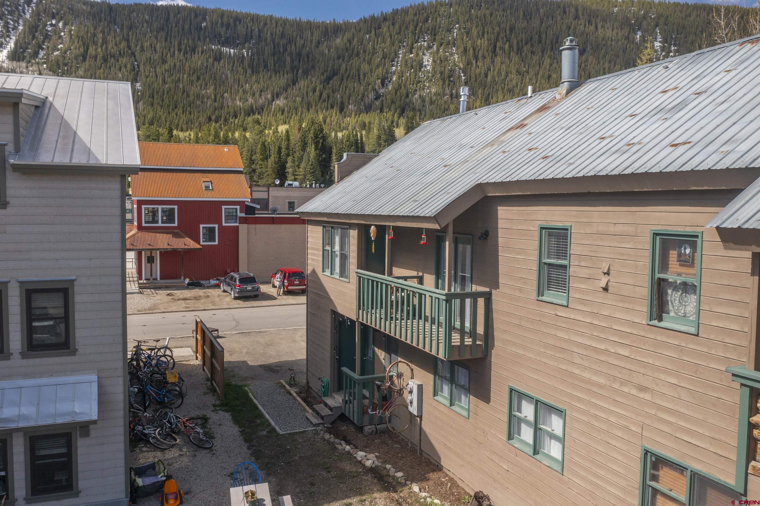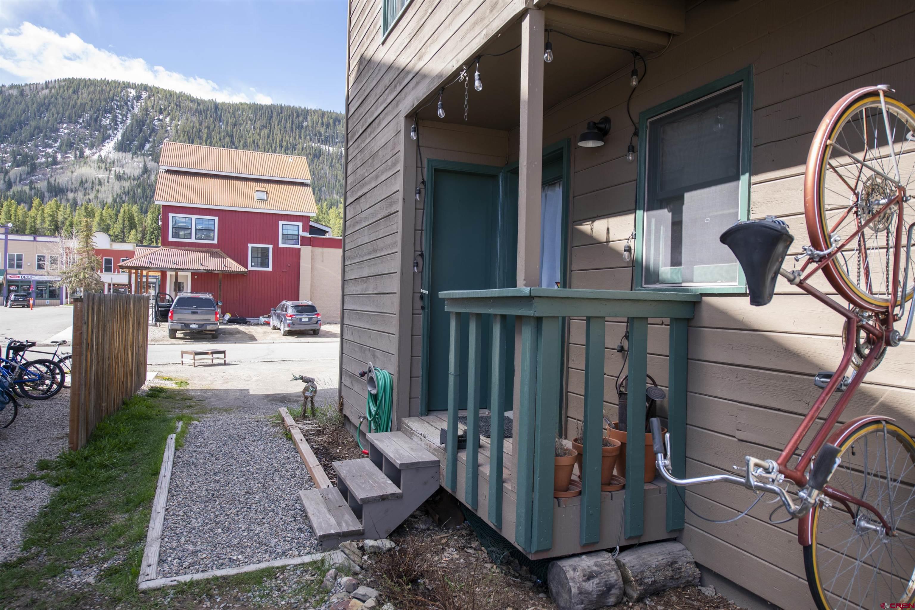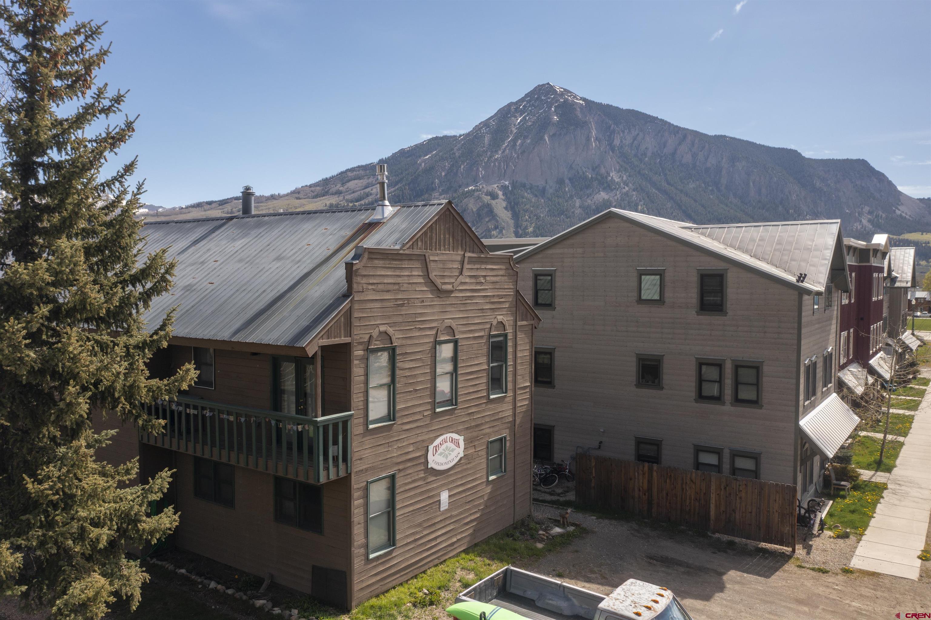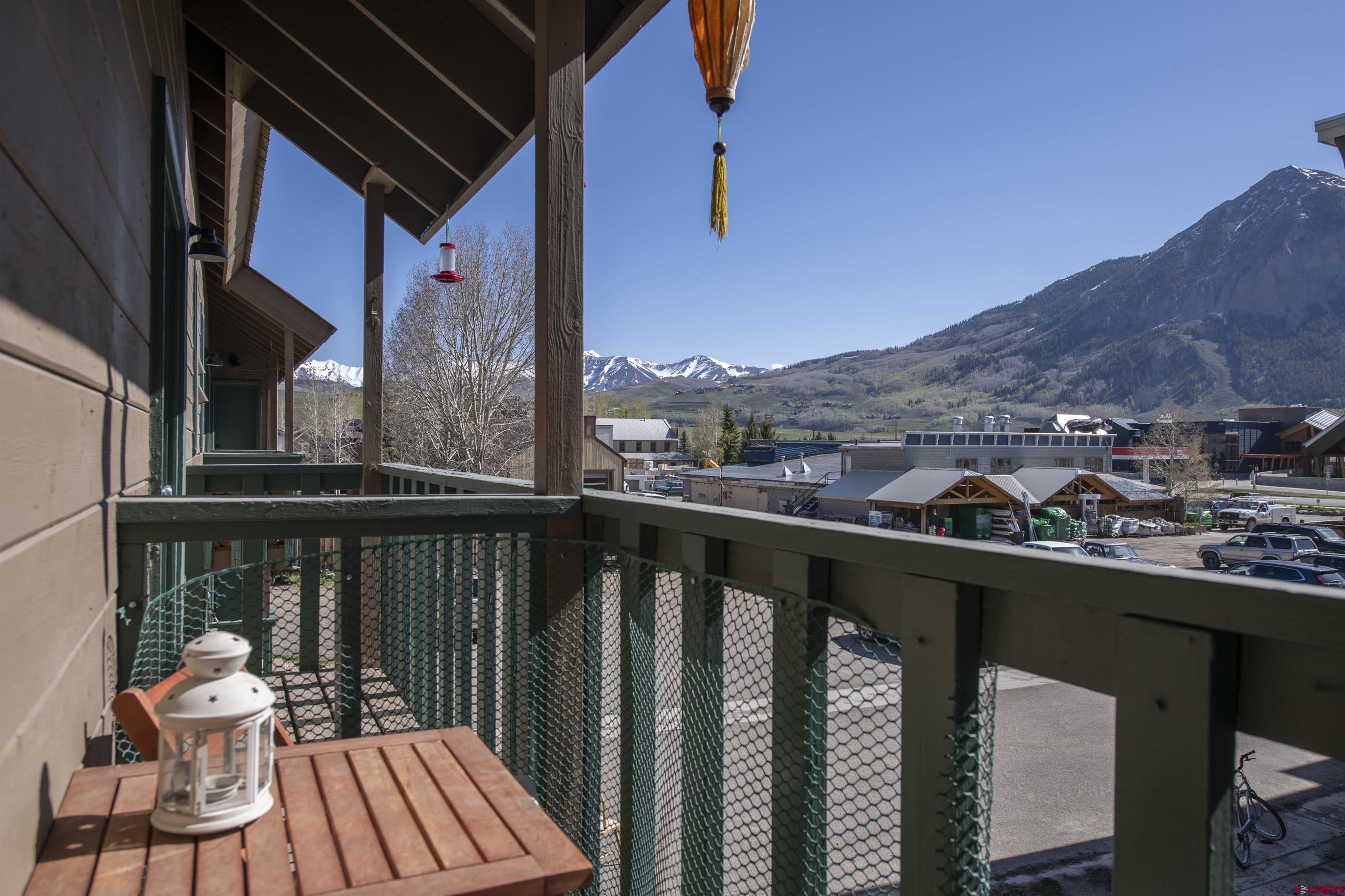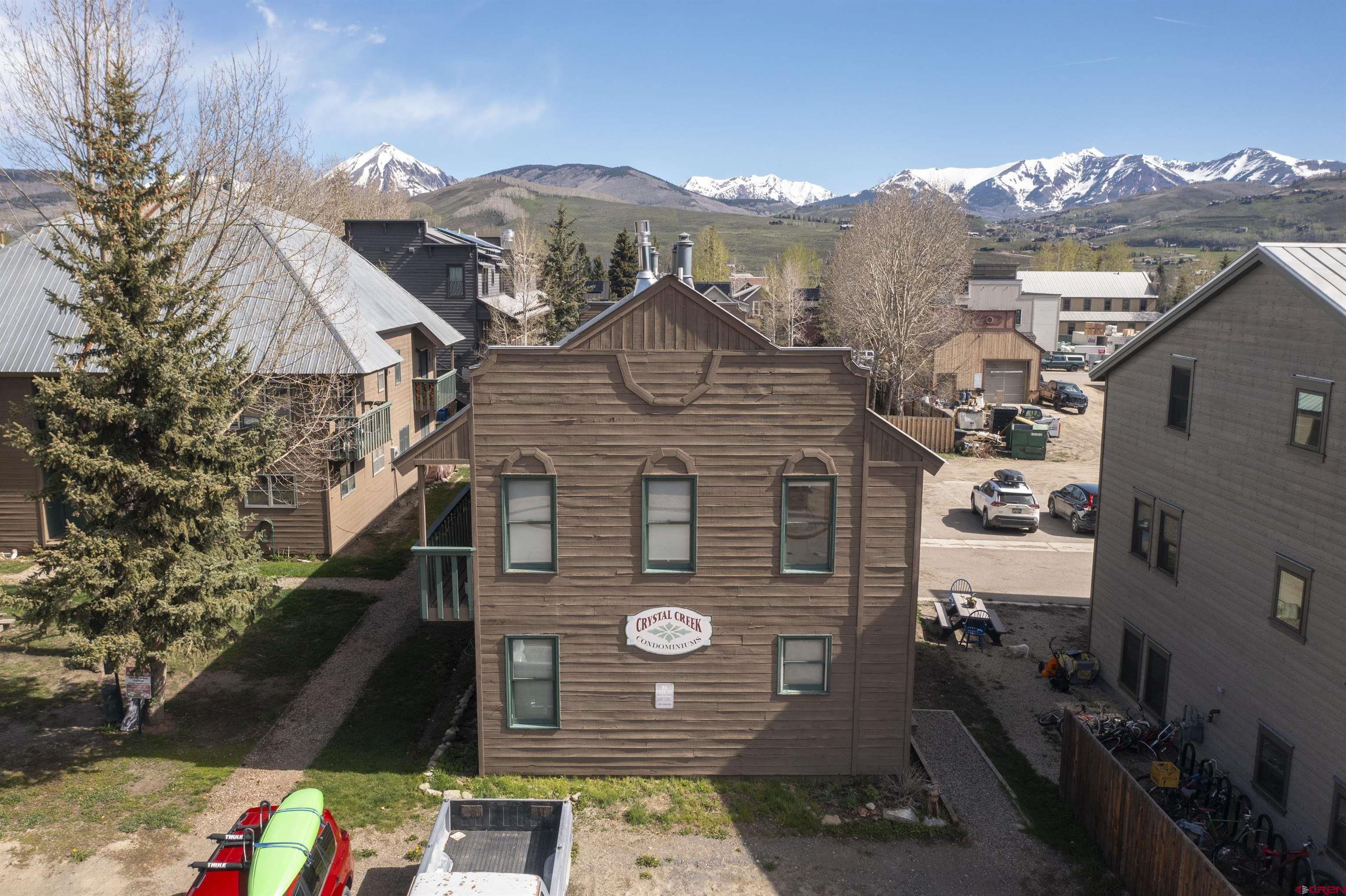 Welcome to Unit 12 in the Crystal Creek Condos. This spacious end-unit is the epitome of downtown Crested Butte living! With an exterior entrance in its own corner of the complex, this unit feels very private (no shared hallways here!). The front porch boasts a large, locked storage closet, perfect for storing bikes, skis, and other gear. Entering the condo from the ground level, you’re welcomed by the spacious entry way and mudroom. On this level you’ll find both bedrooms— one of which is currently being used an office— and a full bathroom. This level has been tastefully updated with new knotty alder doors and trim, as well a new bathroom vanity and mirror. Head upstairs to the main level and bask in all the natural light shining in from the large south facing windows. The floor plan offers an open layout complete with dining nook, kitchen, and living room. You’ll love the vaulted ceilings and newly installed free-standing gas fireplace, both of which contribute to the cozy and inviting atmosphere. This level also houses the second bathroom, in-unit laundry, and two different balconies. One of the balconies spans the width of the condo and overlooks the complex’s courtyard. The second, smaller balcony is on the east side of the unit and features great views of both Mt. Crested Butte and the mountains to the north. This is an excellent place to take in the evening alpenglow! Finally, back inside, ascend the custom built-in ladder to the loft level. This is a great flex space that could be used as an office, guest sleeping area, or even just extra storage. The Crystal Creek condos offer some of the lowest HOA dues around, and the location can't be beat. This complex is located directly across the street from the Majestic Plaza which features the newly renovated Clark’s grocery store, movie theater, deli, flower shop, and liquor store. The town shuttle stops right here every 15-20 minutes, making it super easy and convenient to get to the ski resort (first chair, anyone?!). Imagine cruising on your townie to the farmer’s market, Center for the Arts, and your favorite restaurants on Elk Avenue all summer long. Mountain living doesn’t get much better than this!