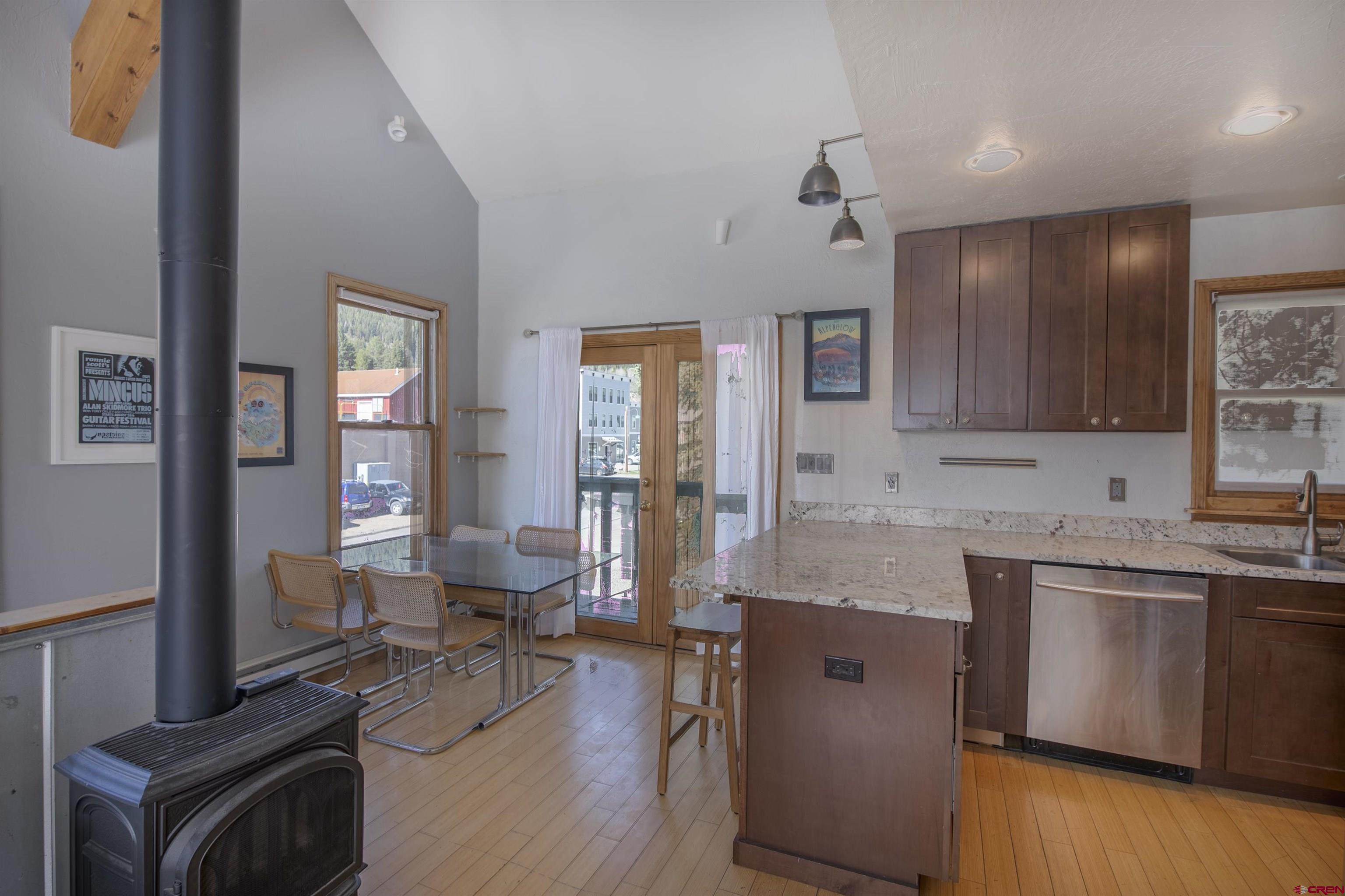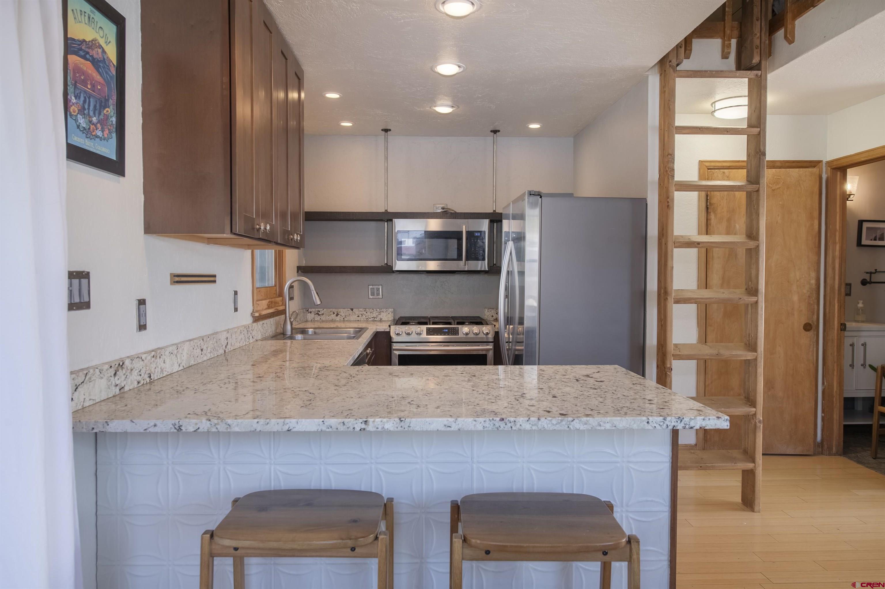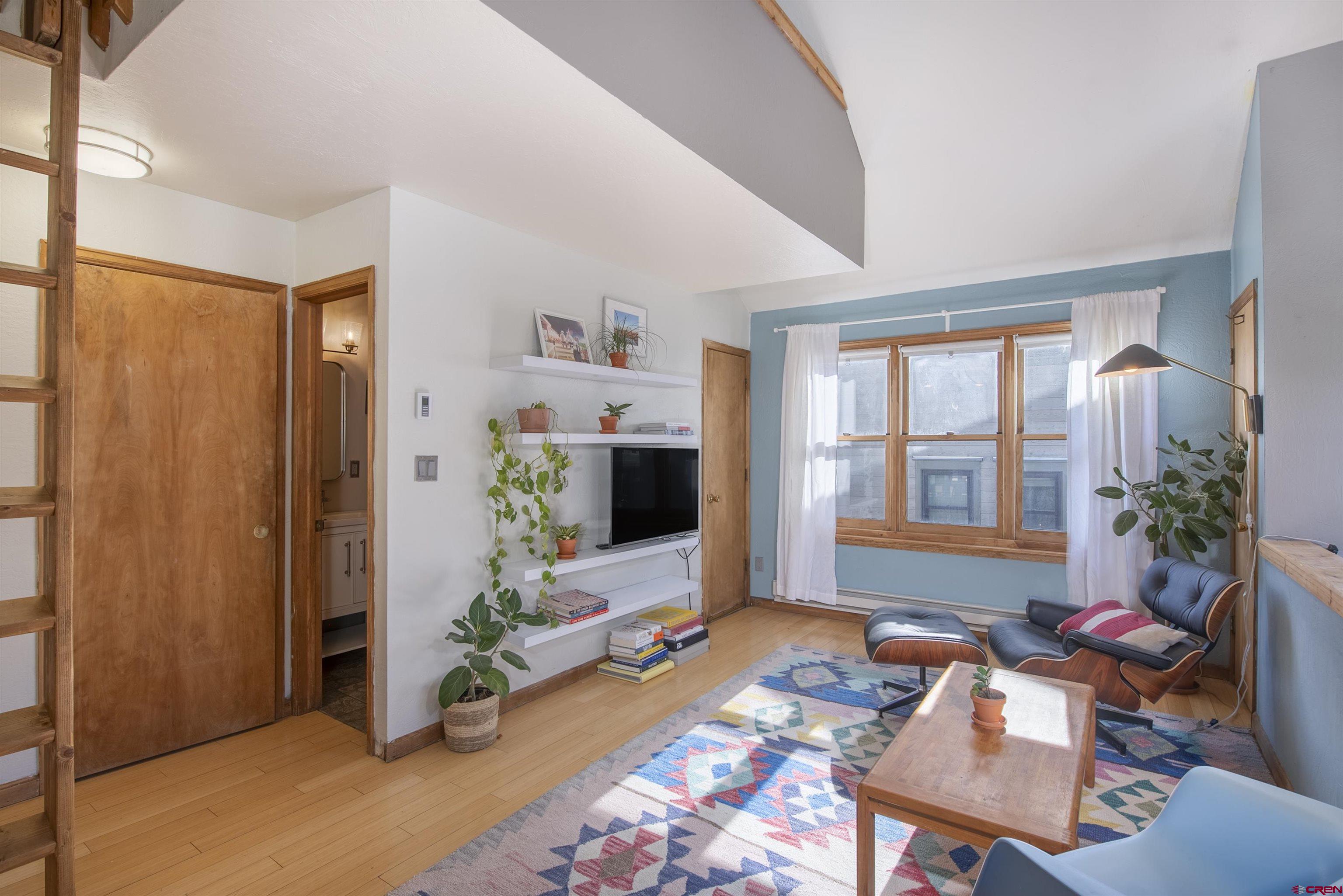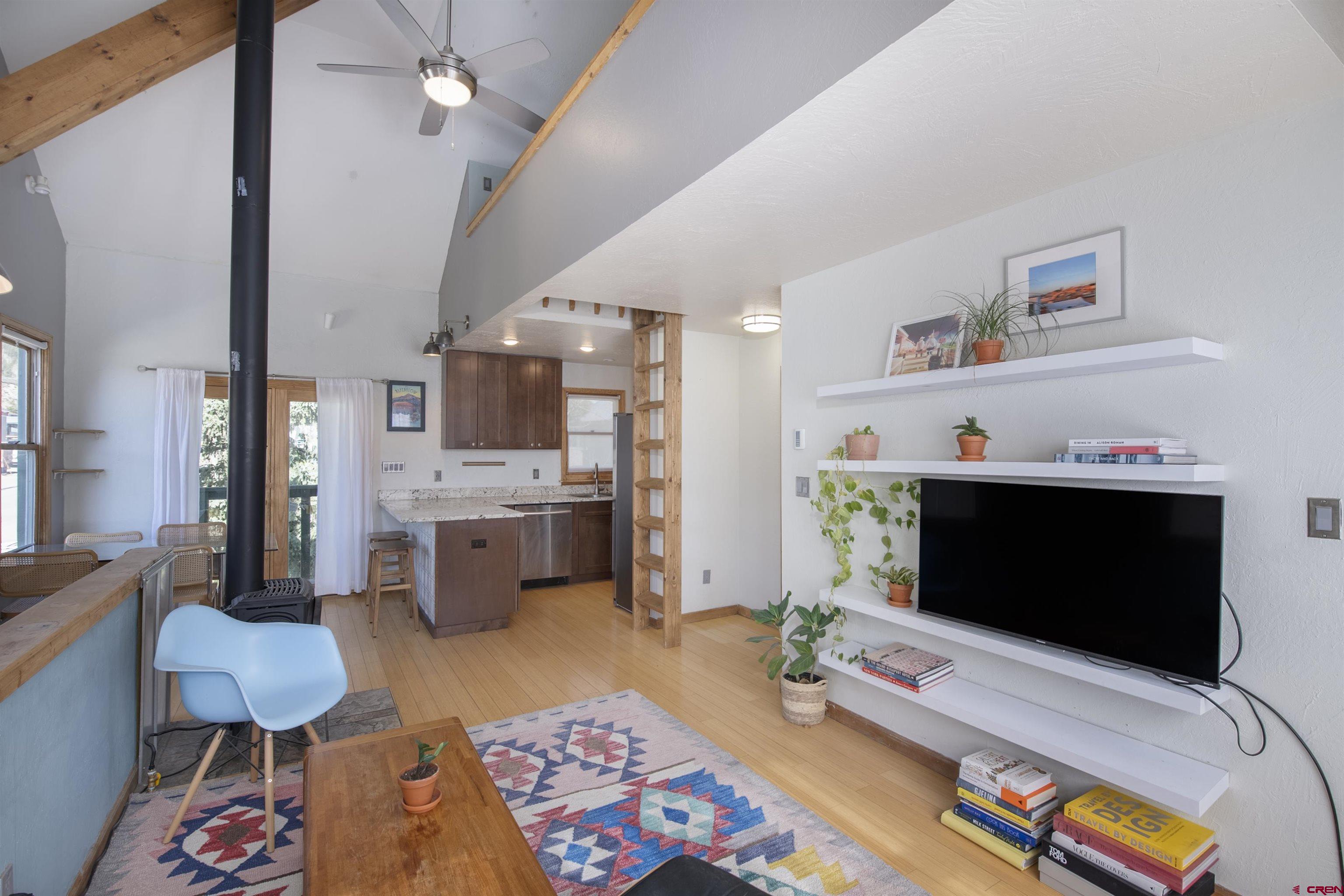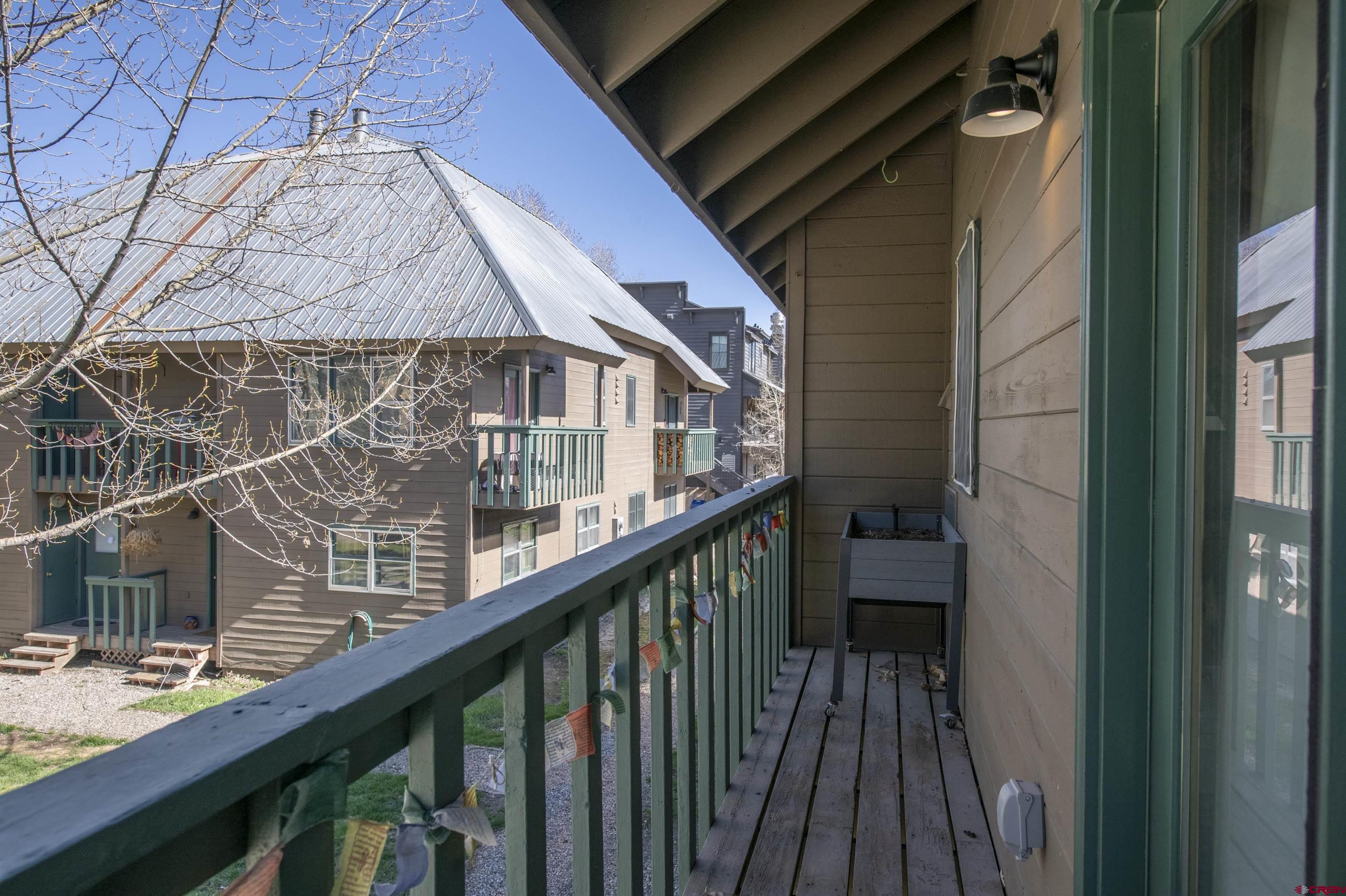 Welcome to Unit 12 in the Crystal Creek Condos. This spacious end-unit is the epitome of downtown Crested Butte living! With an exterior entrance in its own corner of the complex, this unit feels very private (no shared hallways here!). The front porch boasts a large, locked storage closet, perfect for storing bikes, skis, and other gear. Entering the condo from the ground level, you’re welcomed by the spacious entry way and mudroom. On this level you’ll find both bedrooms— one of which is currently being used an office— and a full bathroom. This level has been tastefully updated with new knotty alder doors and trim, as well a new bathroom vanity and mirror. Head upstairs to the main level and bask in all the natural light shining in from the large south facing windows. The floor plan offers an open layout complete with dining nook, kitchen, and living room. You’ll love the vaulted ceilings and newly installed free-standing gas fireplace, both of which contribute to the cozy and inviting atmosphere. This level also houses the second bathroom, in-unit laundry, and two different balconies. One of the balconies spans the width of the condo and overlooks the complex’s courtyard. The second, smaller balcony is on the east side of the unit and features great views of both Mt. Crested Butte and the mountains to the north. This is an excellent place to take in the evening alpenglow! Finally, back inside, ascend the custom built-in ladder to the loft level. This is a great flex space that could be used as an office, guest sleeping area, or even just extra storage. The Crystal Creek condos offer some of the lowest HOA dues around, and the location can't be beat. This complex is located directly across the street from the Majestic Plaza which features the newly renovated Clark’s grocery store, movie theater, deli, flower shop, and liquor store. The town shuttle stops right here every 15-20 minutes, making it super easy and convenient to get to the ski resort (first chair, anyone?!). Imagine cruising on your townie to the farmer’s market, Center for the Arts, and your favorite restaurants on Elk Avenue all summer long. Mountain living doesn’t get much better than this!