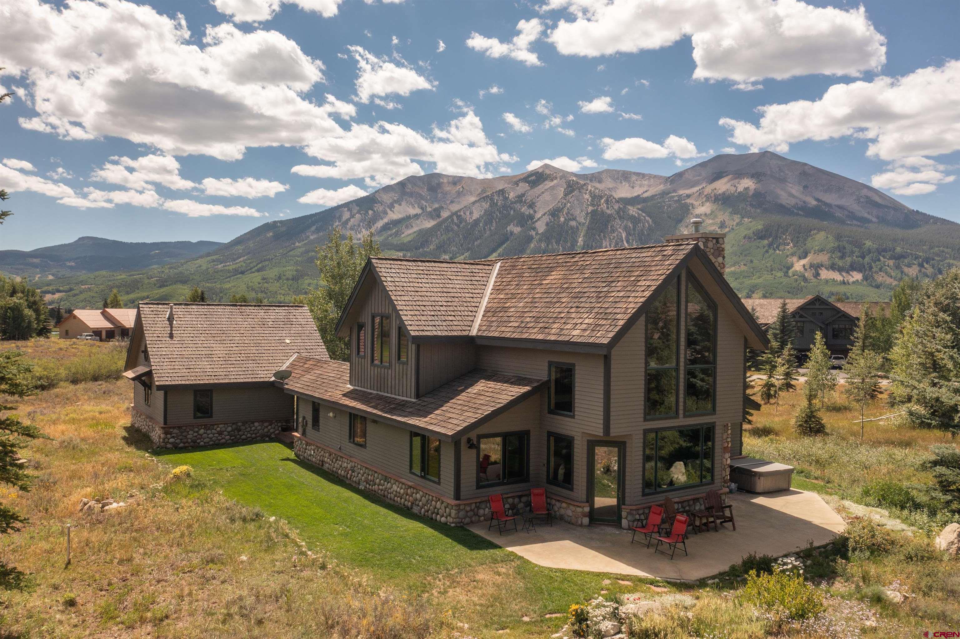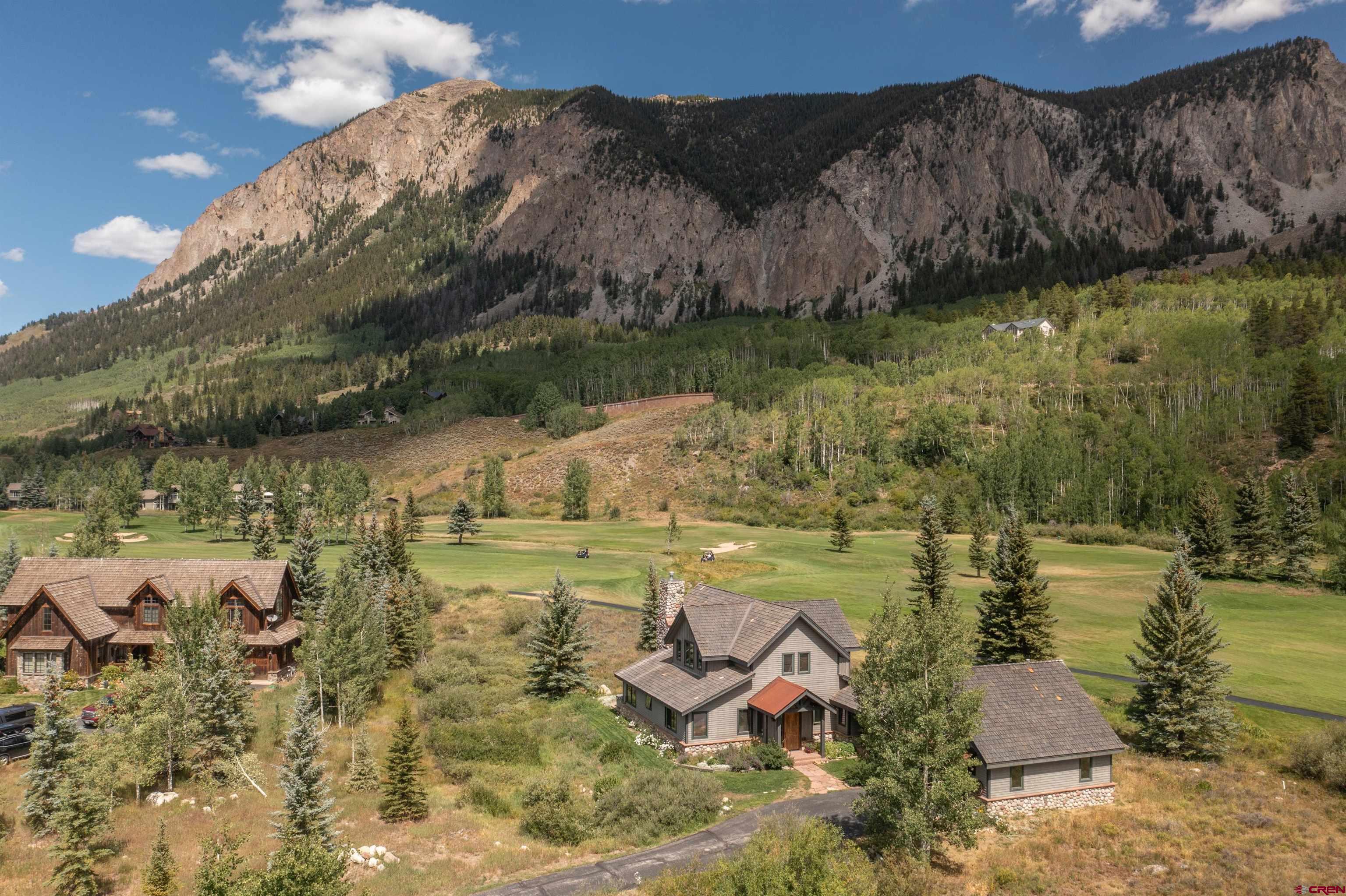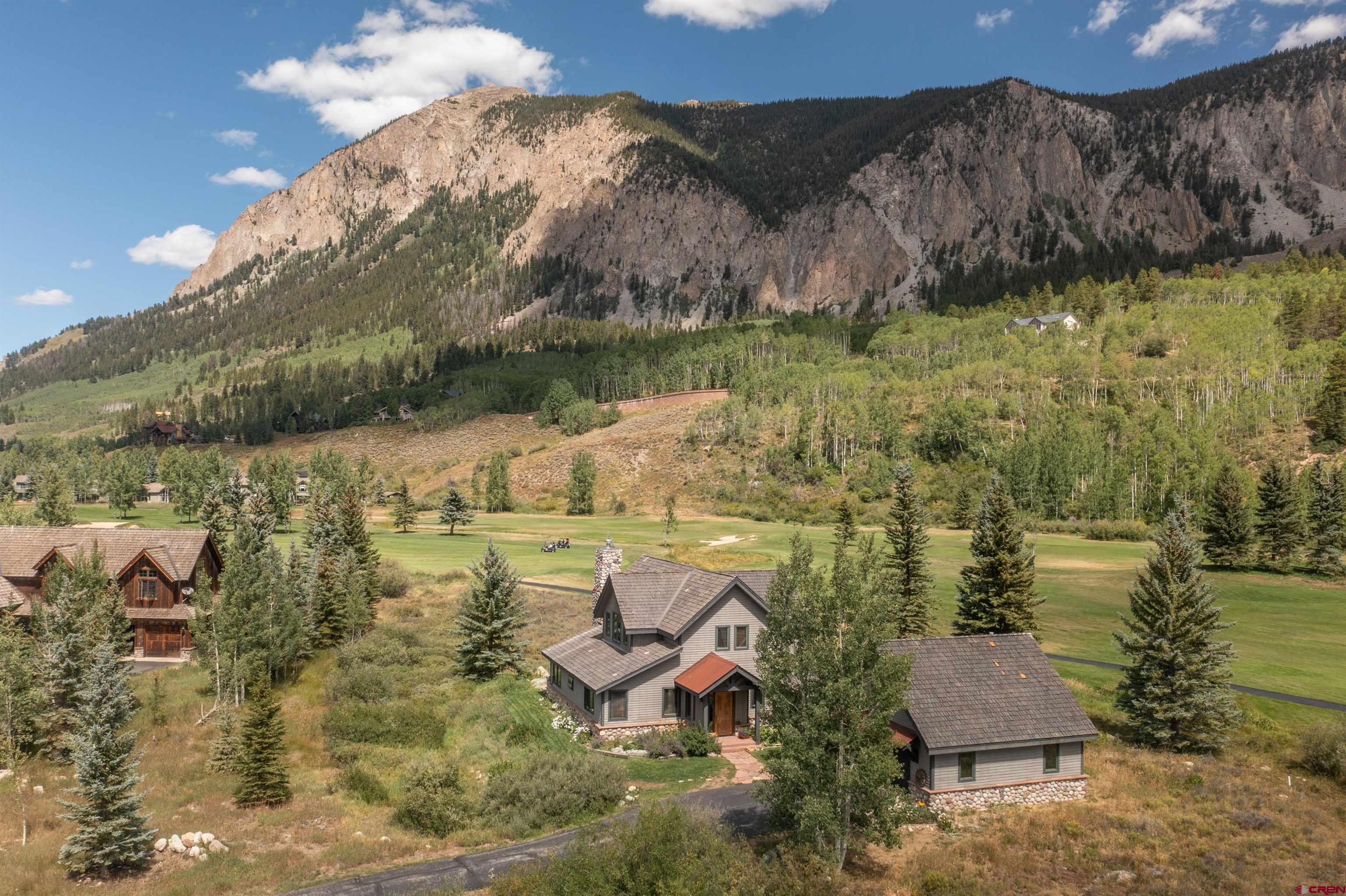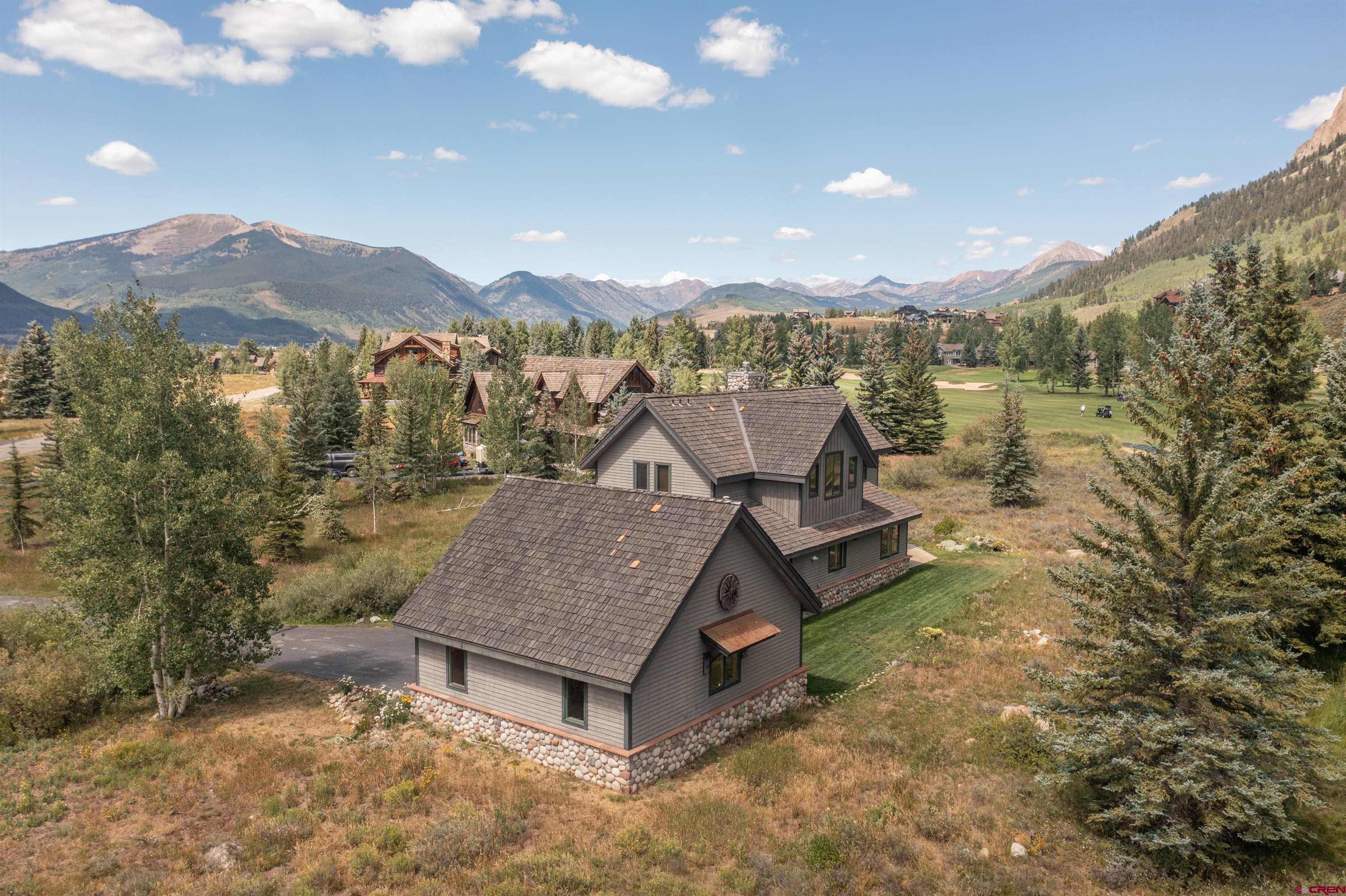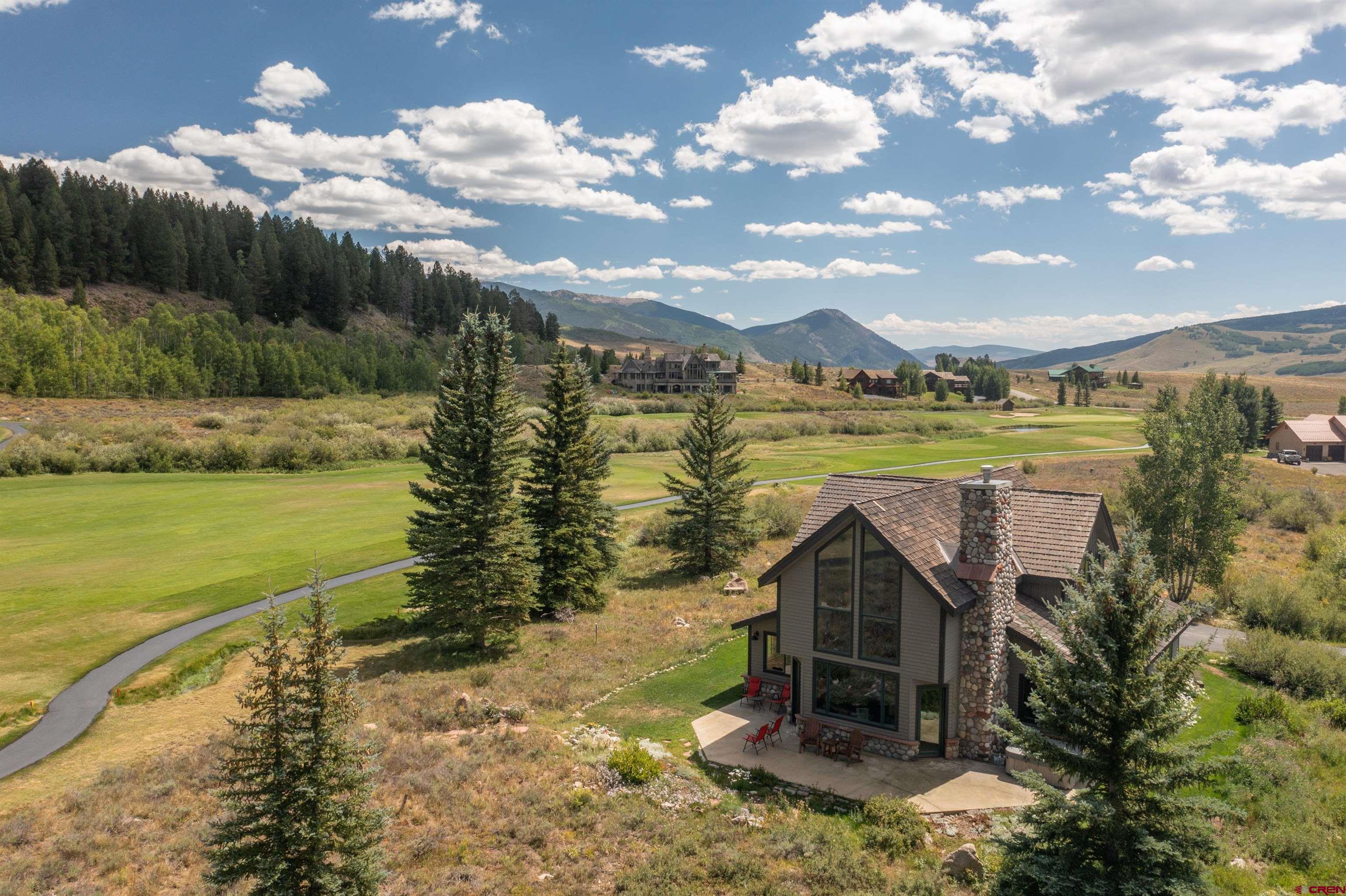 Nestled in a premier .841 location along the 3rd fairway at The Club at Crested Butte in Skyland, this home offers an unparalleled lifestyle opportunity. Tucked away at the end of a private driveway off a quiet cul-de-sac, the home boasts breathtaking views of Crested Butte Mountain, the 3rd and 4th fairways, Paradise Divide, and Whetstone Mountain. Ideal for entertaining year-round, the residence with its spacious patio and hot tub is surrounded by manicured lawn blending into natural vegetation and wildflowers, including a seasonal stream from the neighboring golf course. Residents of Skyland enjoy private amenities such as Lake Grant for fishing, paddle boarding and canoeing, a picturesque picnic pavilion overlooking the lake, and exclusive fishing rights on the Slate River, all complemented by walking, hiking and biking trails throughout Skyland and the surrounding National Forest area. Memberships in the Club and limited public play are available at the Club's Robert Trent Jones Jr. golf course. Constructed in 1997 by renowned contractor Roger Cesario and impeccably maintained by the current owners since then, this home offers stunning floor-to-ceiling views of the mountain and the golf course from the living room with its cathedral ceiling and large river rock gas fireplace that also reaches to the ceiling. The dining room and kitchen adjoin the living room and open out to the patio, hot tub and lawn where family and guests can gather to enjoy the spectacular scenery while watching the golfers. The main living areas and stairs to the second floor feature lovely, warm cherry floors. The home offers 3 bedrooms and 3.5 bathrooms. The main floor included the primary suite with steam shower, deep soaking tub and walk-in closet. Two secondary suites, each with an adjoining bathroom, are on the second floor. One has a king bed and the other currently has twin bunk beds. There are plans for a fourth bedroom and bathroom, accessible via a stairway above the spacious, heated two-car garage. The garage connects to the main house via a flagstone breezeway that could easily be enclosed. The kitchen features polished granite counters with a center island and top-of-the line appliances. Radiant in-floor heat provided by a new Weil-McLain boiler system ensures comfort and efficiency throughout. The home is furnished, with most art and a few pieces of furniture excluded. An inventory of exclusions will be available. Don't miss the opportunity to make this very special golf course property your very own mountain sanctuary!