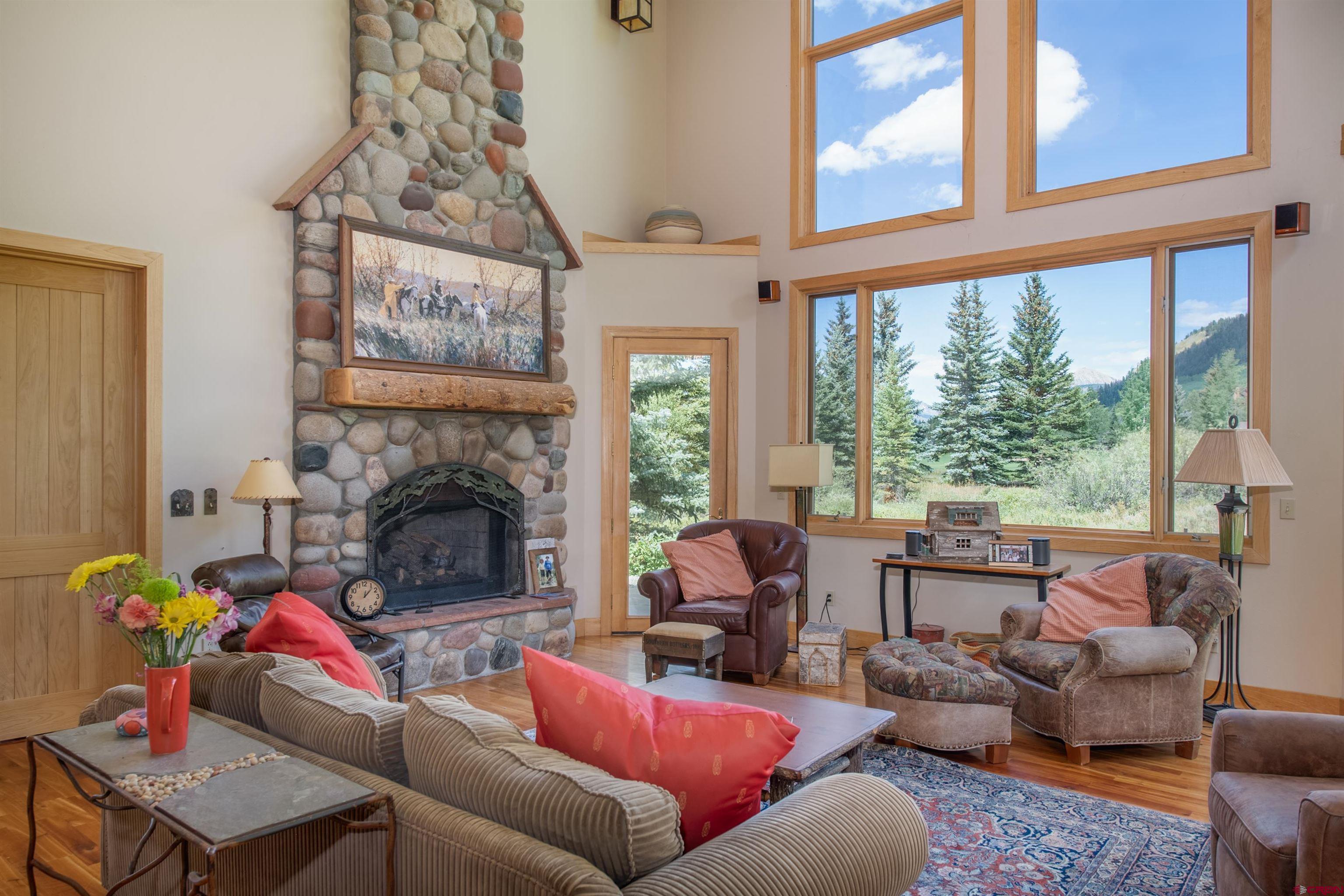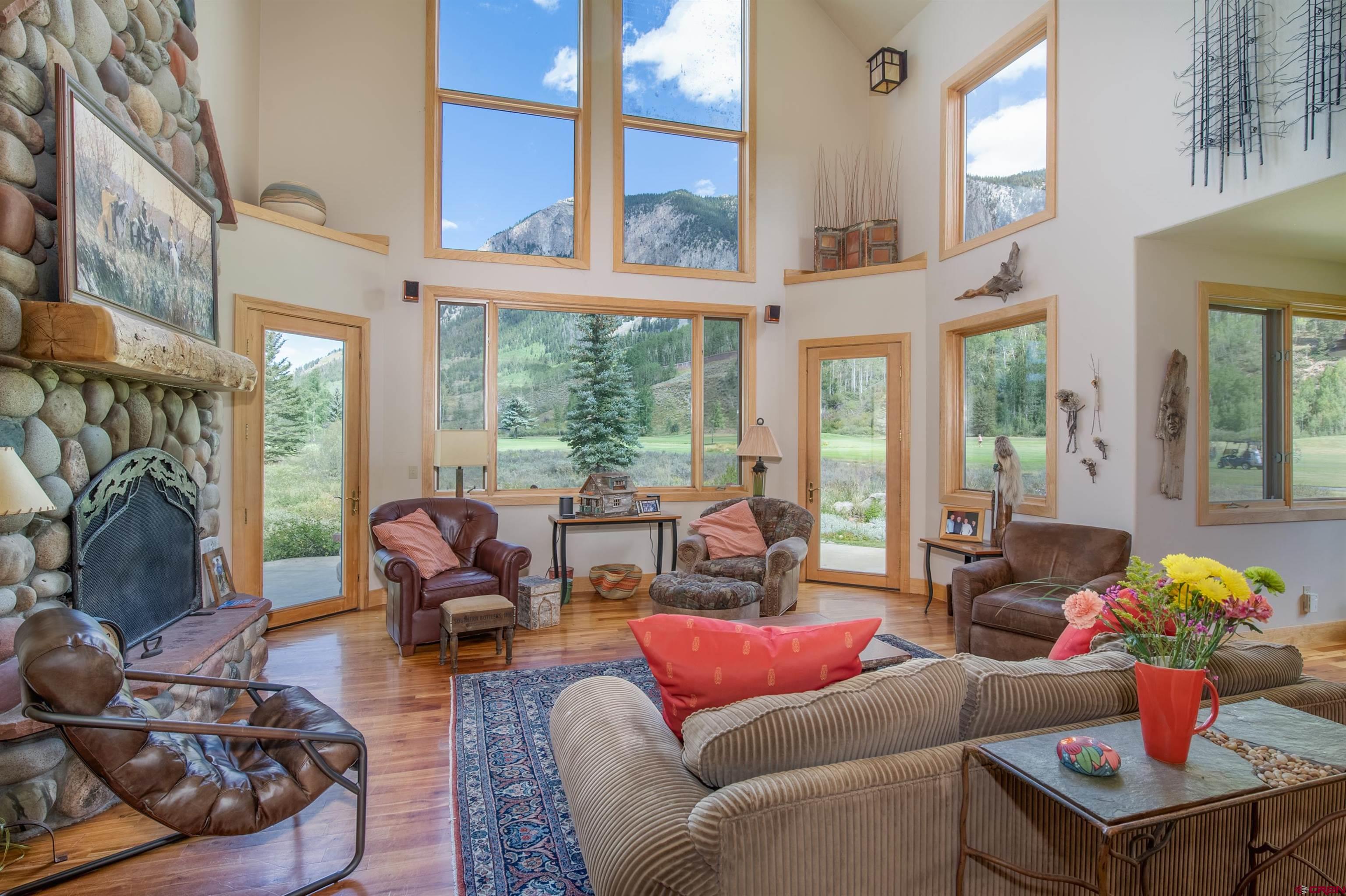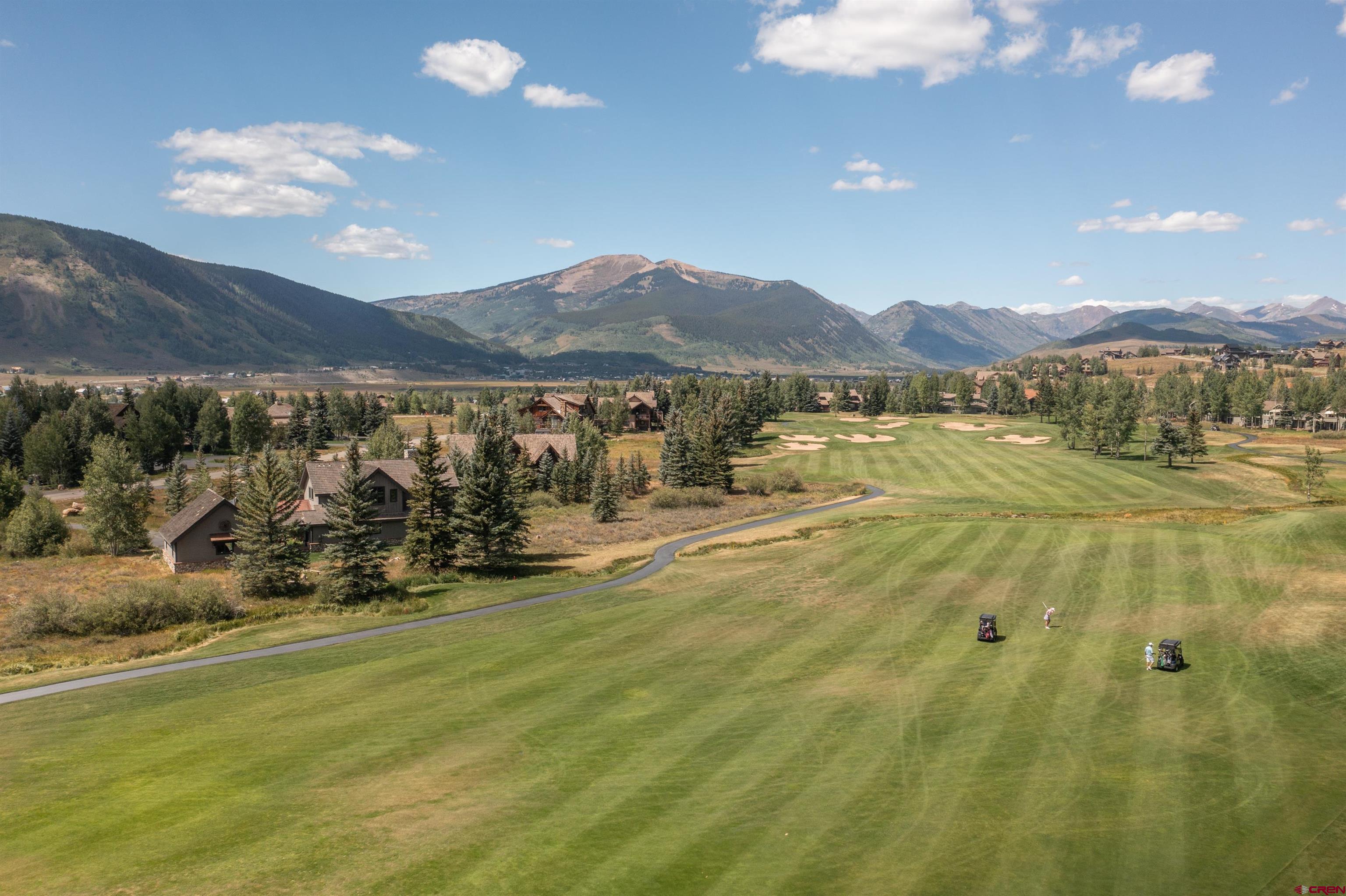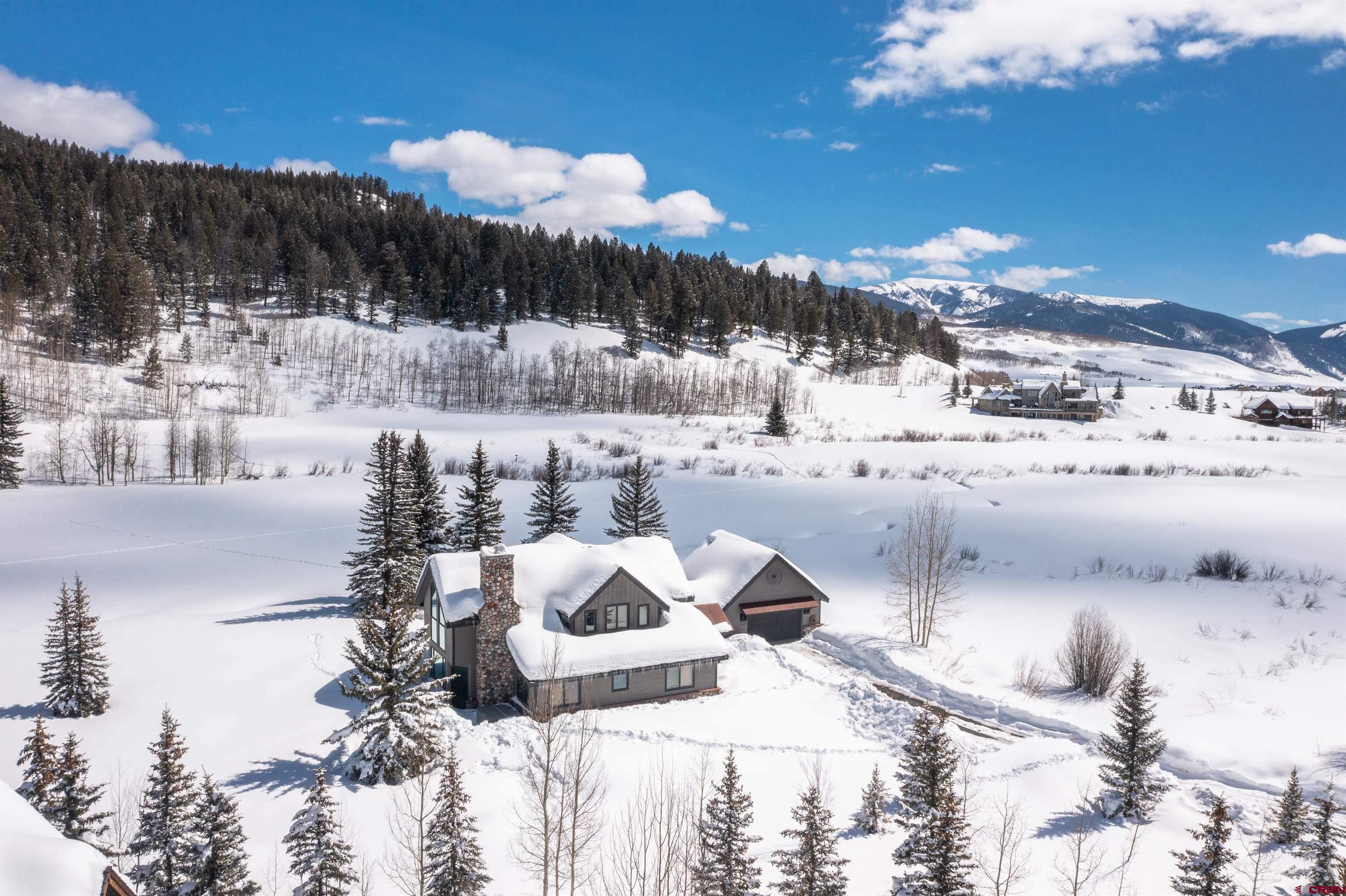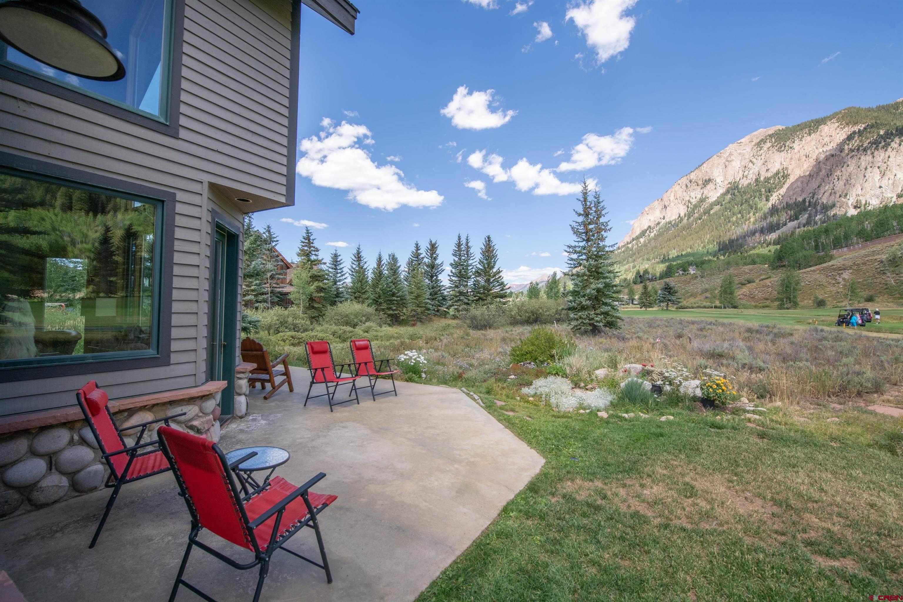 Nestled in a premier .841 location along the 3rd fairway at The Club at Crested Butte in Skyland, this home offers an unparalleled lifestyle opportunity. Tucked away at the end of a private driveway off a quiet cul-de-sac, the home boasts breathtaking views of Crested Butte Mountain, the 3rd and 4th fairways, Paradise Divide, and Whetstone Mountain. Ideal for entertaining year-round, the residence with its spacious patio and hot tub is surrounded by manicured lawn blending into natural vegetation and wildflowers, including a seasonal stream from the neighboring golf course. Residents of Skyland enjoy private amenities such as Lake Grant for fishing, paddle boarding and canoeing, a picturesque picnic pavilion overlooking the lake, and exclusive fishing rights on the Slate River, all complemented by walking, hiking and biking trails throughout Skyland and the surrounding National Forest area. Memberships in the Club and limited public play are available at the Club's Robert Trent Jones Jr. golf course. Constructed in 1997 by renowned contractor Roger Cesario and impeccably maintained by the current owners since then, this home offers stunning floor-to-ceiling views of the mountain and the golf course from the living room with its cathedral ceiling and large river rock gas fireplace that also reaches to the ceiling. The dining room and kitchen adjoin the living room and open out to the patio, hot tub and lawn where family and guests can gather to enjoy the spectacular scenery while watching the golfers. The main living areas and stairs to the second floor feature lovely, warm cherry floors. The home offers 3 bedrooms and 3.5 bathrooms. The main floor included the primary suite with steam shower, deep soaking tub and walk-in closet. Two secondary suites, each with an adjoining bathroom, are on the second floor. One has a king bed and the other currently has twin bunk beds. There are plans for a fourth bedroom and bathroom, accessible via a stairway above the spacious, heated two-car garage. The garage connects to the main house via a flagstone breezeway that could easily be enclosed. The kitchen features polished granite counters with a center island and top-of-the line appliances. Radiant in-floor heat provided by a new Weil-McLain boiler system ensures comfort and efficiency throughout. The home is furnished, with most art and a few pieces of furniture excluded. An inventory of exclusions will be available. Don't miss the opportunity to make this very special golf course property your very own mountain sanctuary!