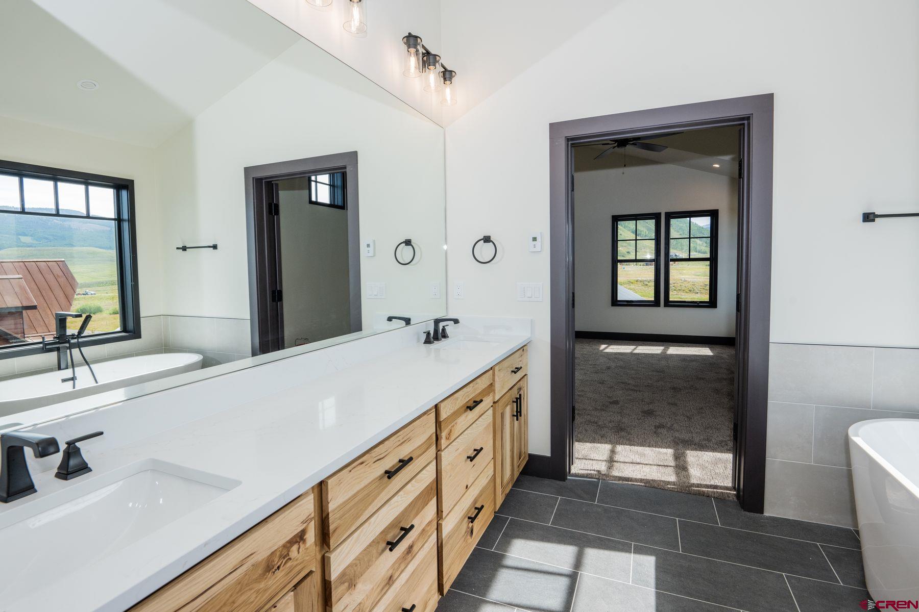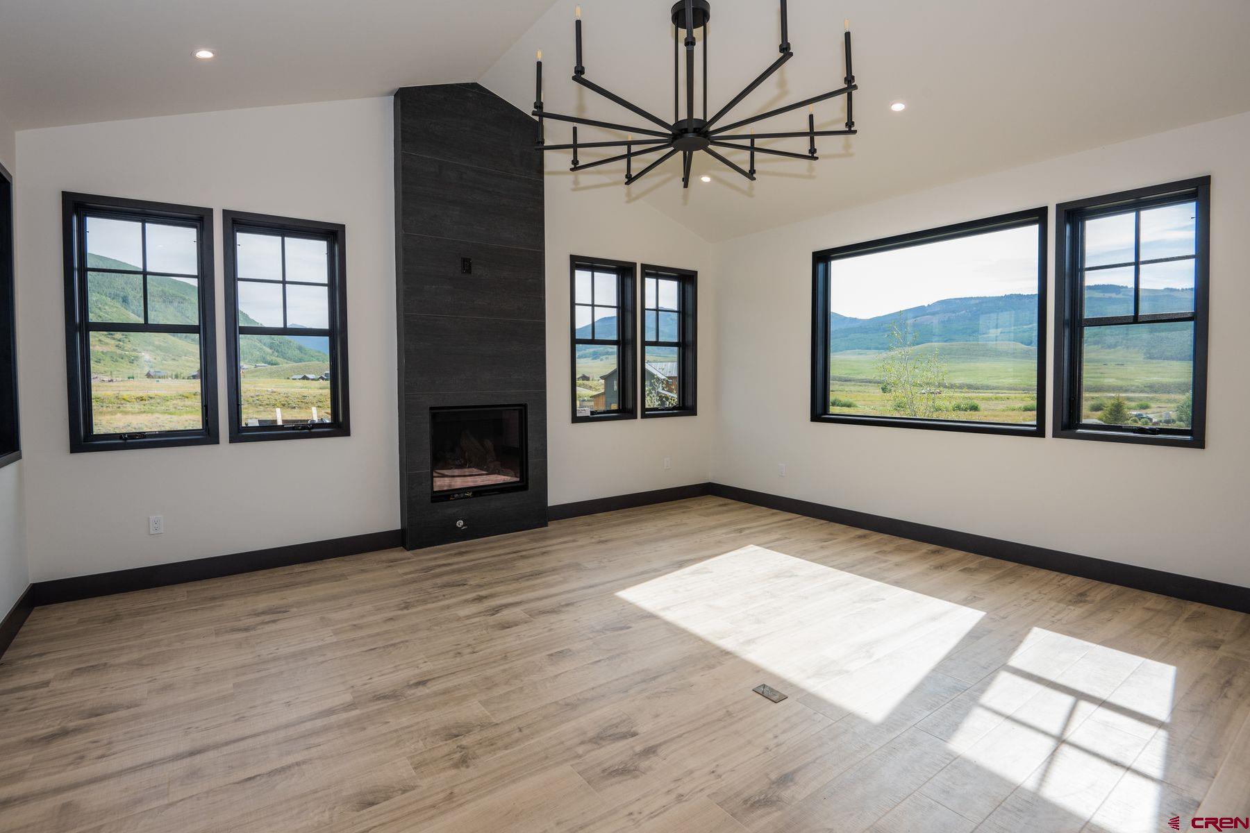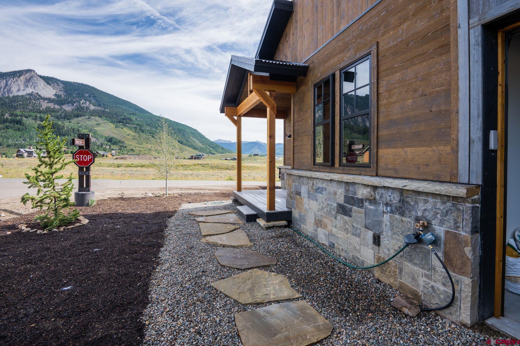 This brand new, three bedroom home offers a harmonious blend of luxury, comfort, and adventure. Upon entering, you are welcomed into a spacious, open-concept living, kitchen and dining area featuring attractive floors, stone fireplace, and a multitude of windows that frame views of the surrounding peaks. The kitchen is complete with custom wood cabinetry, granite counters, Monogram appliances, and a generous pantry. From the dining room, step out onto the spacious deck, ideal for summer barbecues and starlit gatherings. Also located on this level is an office, laundry room, powder bath and sizable mudroom. Head upstairs to find the primary bedroom suite with generous walk in closet and ensuite bath with a luxurious soaking tub, a separate glass-enclosed shower, and dual sinks adorned with granite counters. There is plenty of room for family and friends with an additional bedroom suite and guest bedroom and bath. Other highlights include an attached 2-car garage and oversized crawlspace providing additional storage for all your gear. Situated on a corner lot in Buckhorn Ranch, you will enjoy easy access to the new Buckaroo Park and Playground, community pond, and tennis courts. Whether you seek a serene mountain retreat or a base for exploring Crested Butte's rugged beauty, this 3-bedroom, 3.5-bath house is the perfect place to call home.