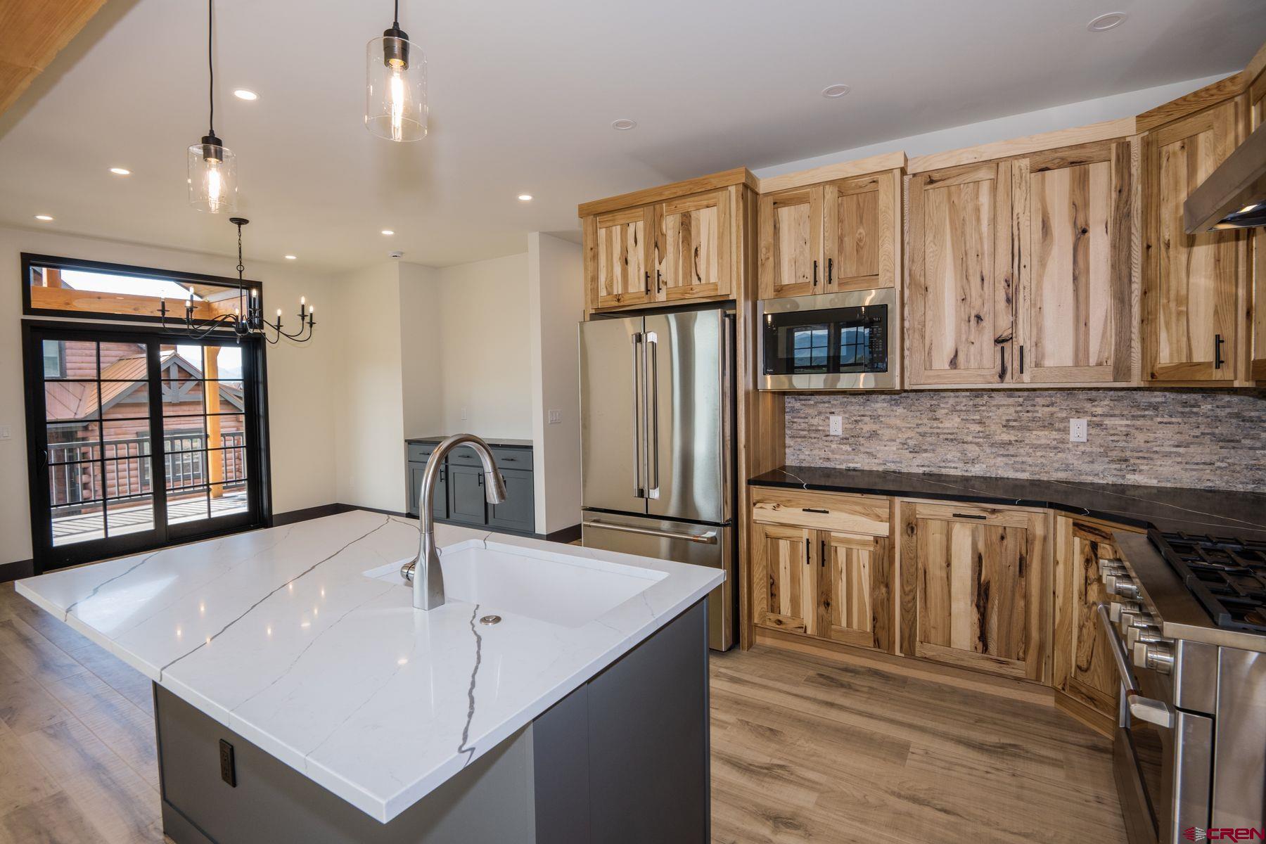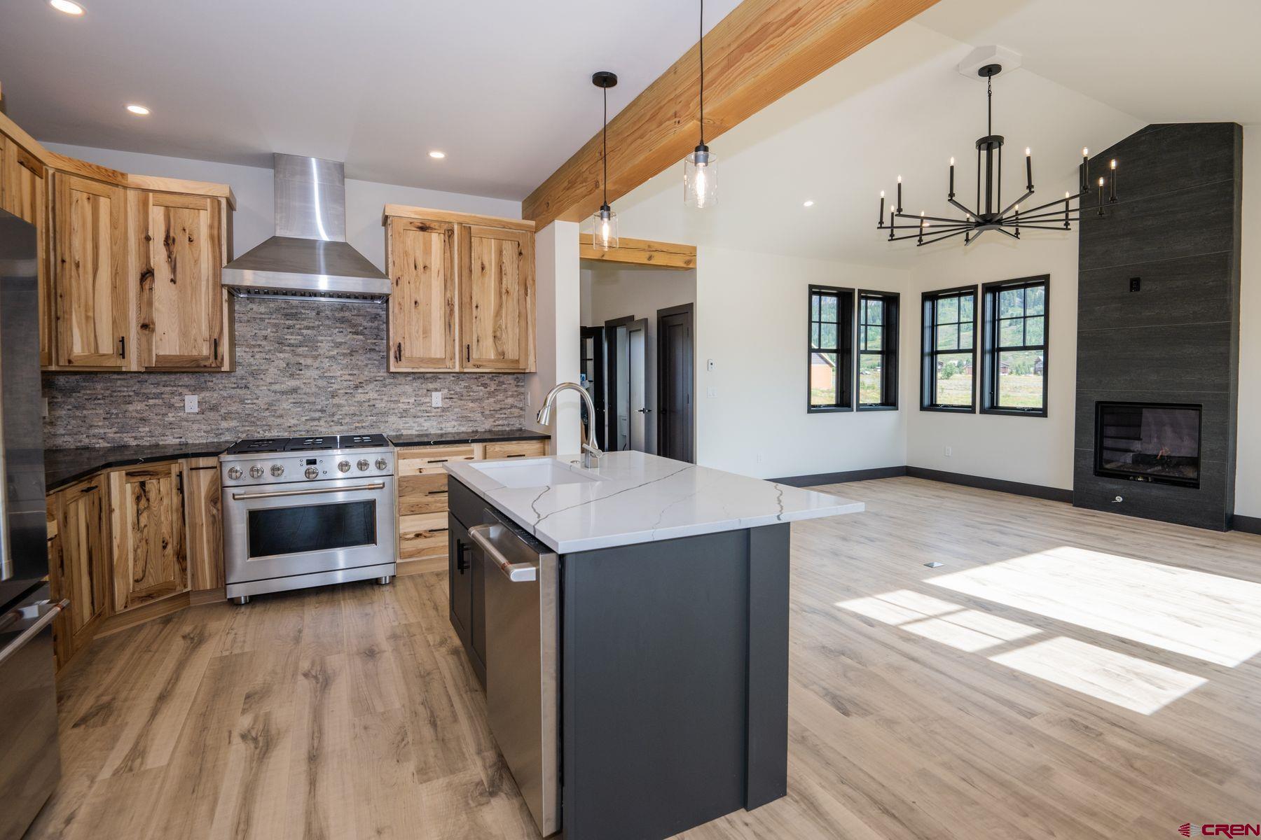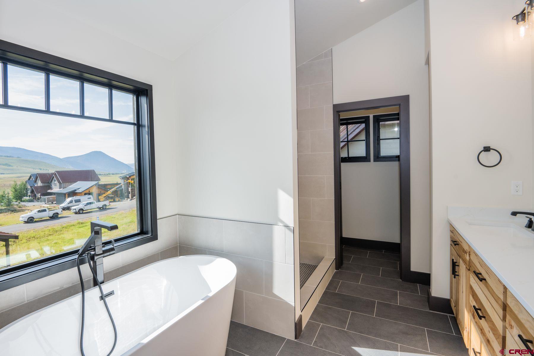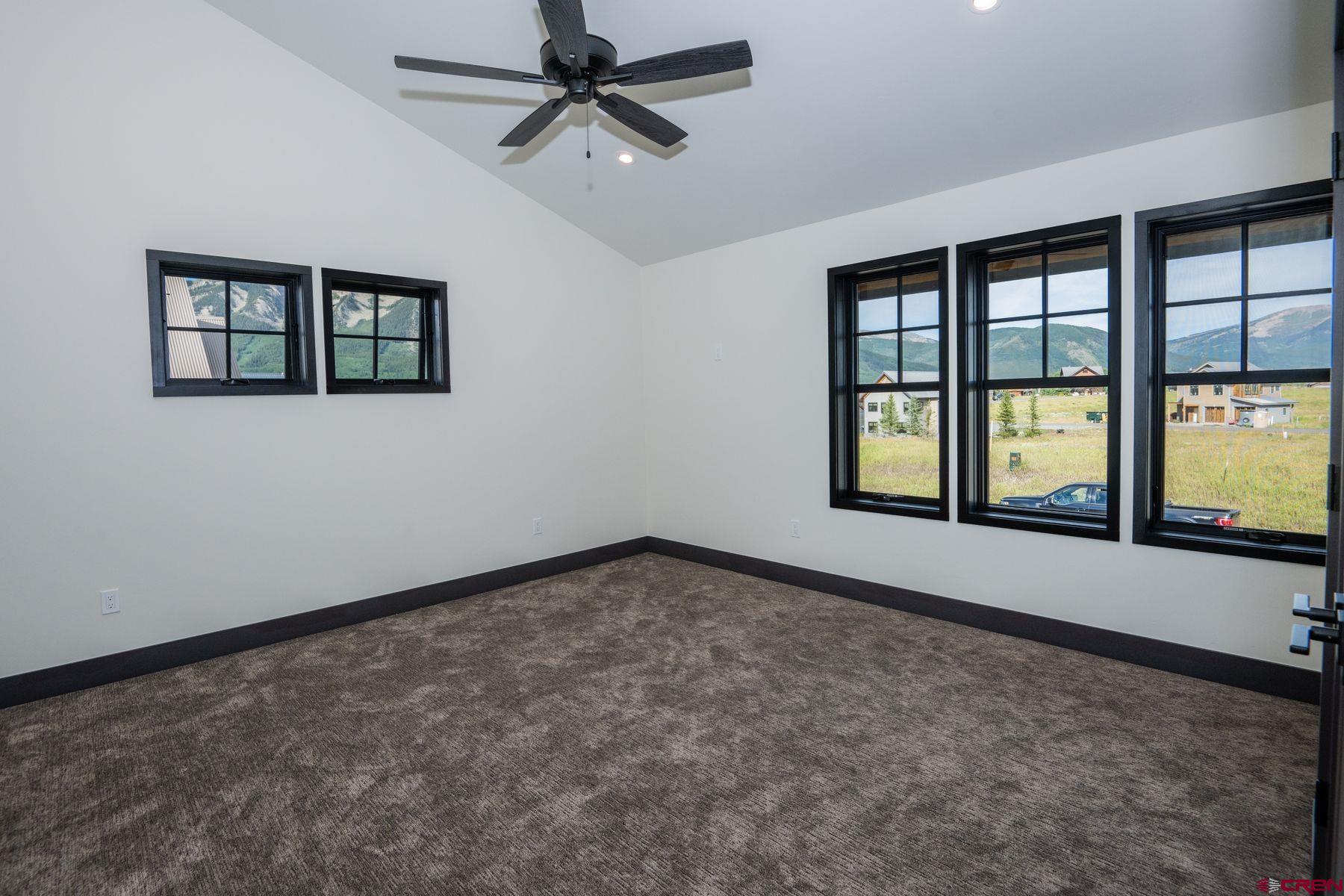 This brand new, three bedroom home offers a harmonious blend of luxury, comfort, and adventure. Upon entering, you are welcomed into a spacious, open-concept living, kitchen and dining area featuring attractive floors, stone fireplace, and a multitude of windows that frame views of the surrounding peaks. The kitchen is complete with custom wood cabinetry, granite counters, Monogram appliances, and a generous pantry. From the dining room, step out onto the spacious deck, ideal for summer barbecues and starlit gatherings. Also located on this level is an office, laundry room, powder bath and sizable mudroom. Head upstairs to find the primary bedroom suite with generous walk in closet and ensuite bath with a luxurious soaking tub, a separate glass-enclosed shower, and dual sinks adorned with granite counters. There is plenty of room for family and friends with an additional bedroom suite and guest bedroom and bath. Other highlights include an attached 2-car garage and oversized crawlspace providing additional storage for all your gear. Situated on a corner lot in Buckhorn Ranch, you will enjoy easy access to the new Buckaroo Park and Playground, community pond, and tennis courts. Whether you seek a serene mountain retreat or a base for exploring Crested Butte's rugged beauty, this 3-bedroom, 3.5-bath house is the perfect place to call home.