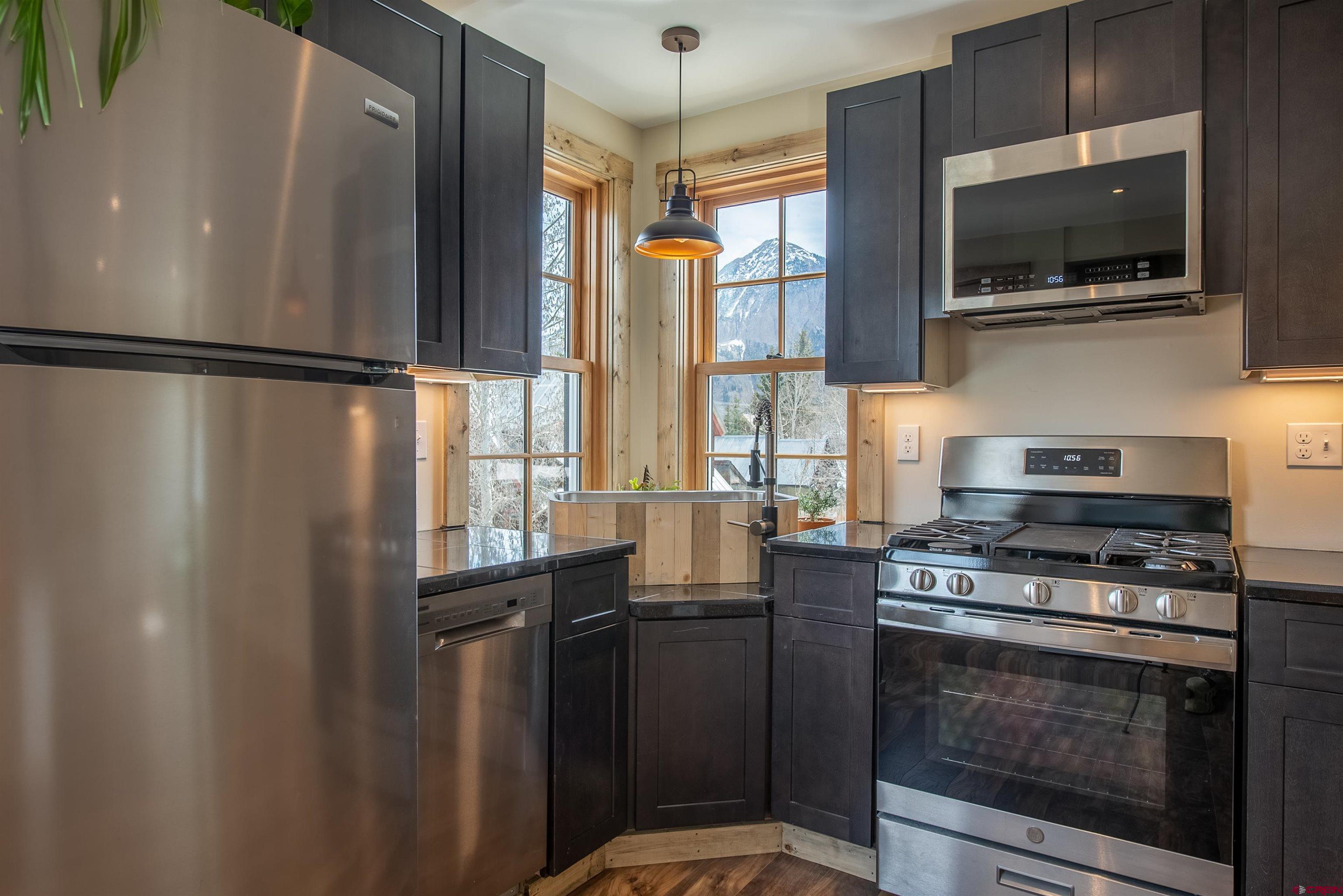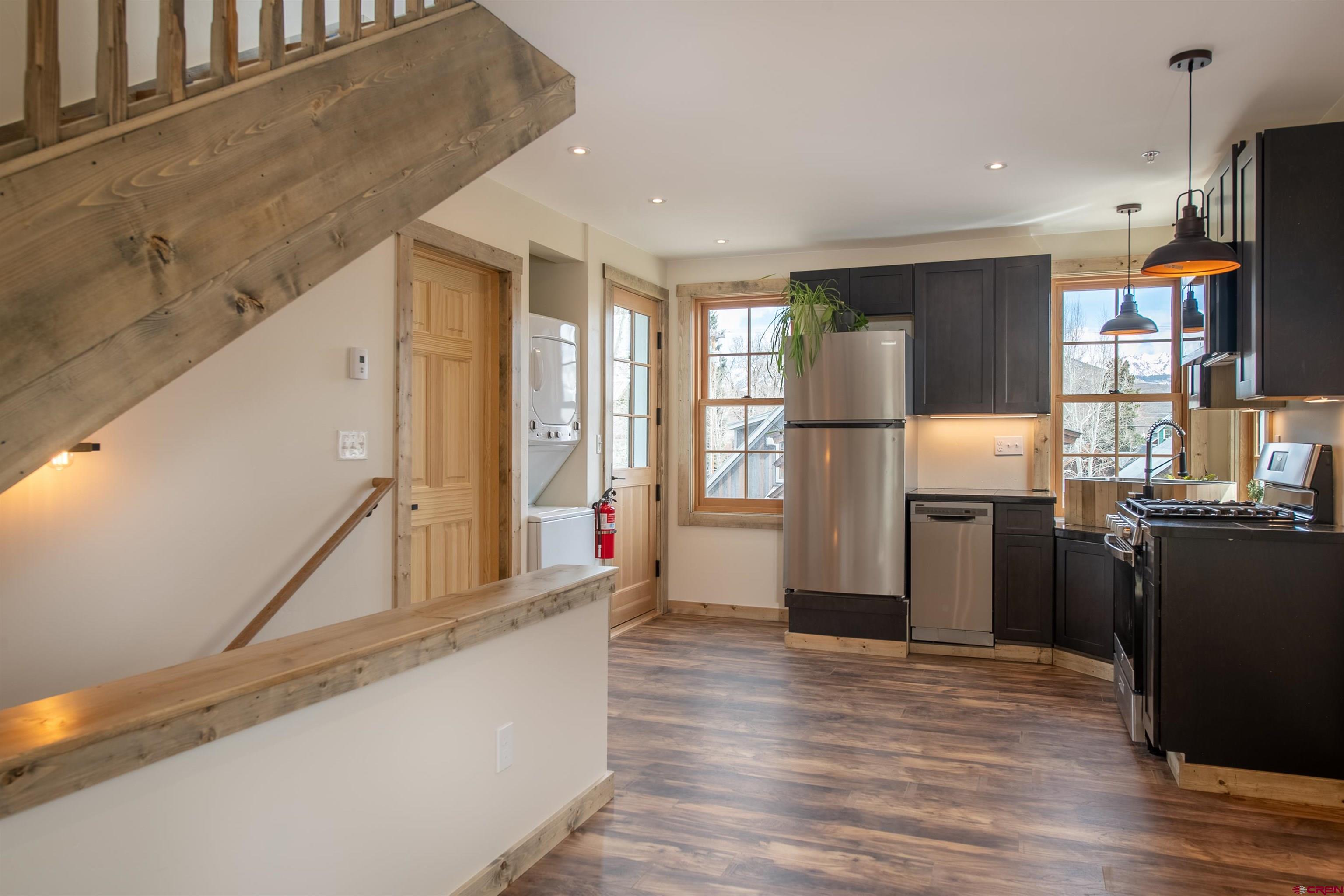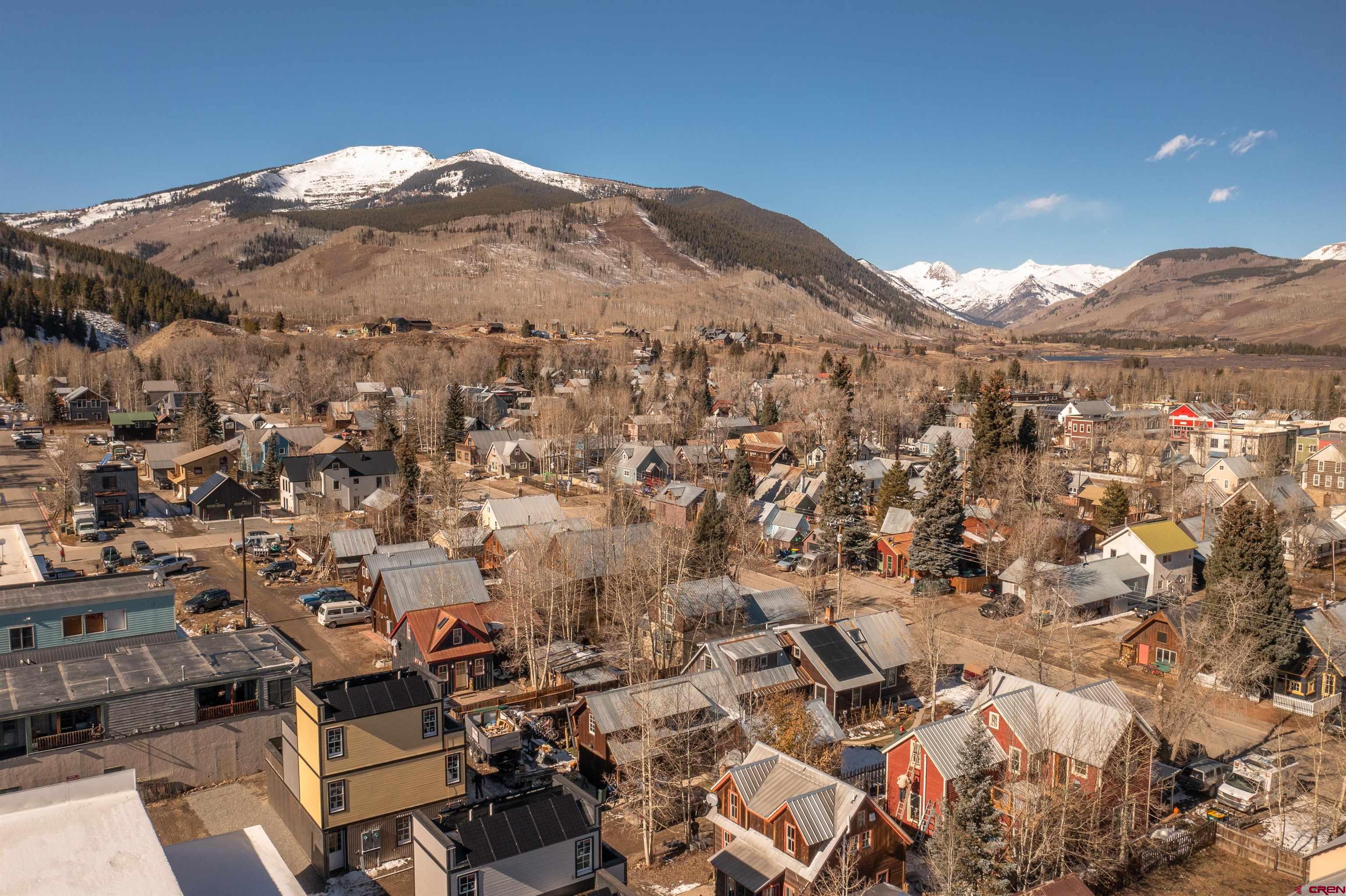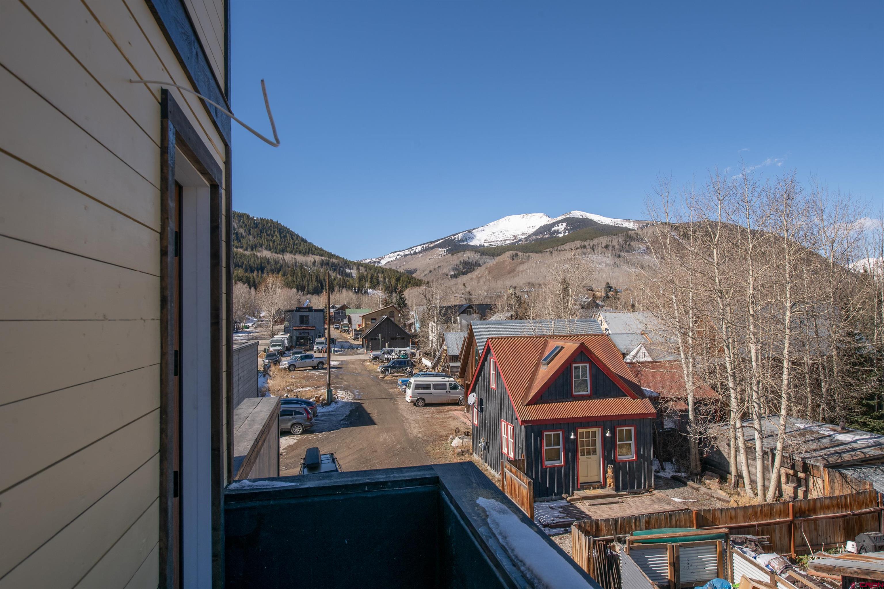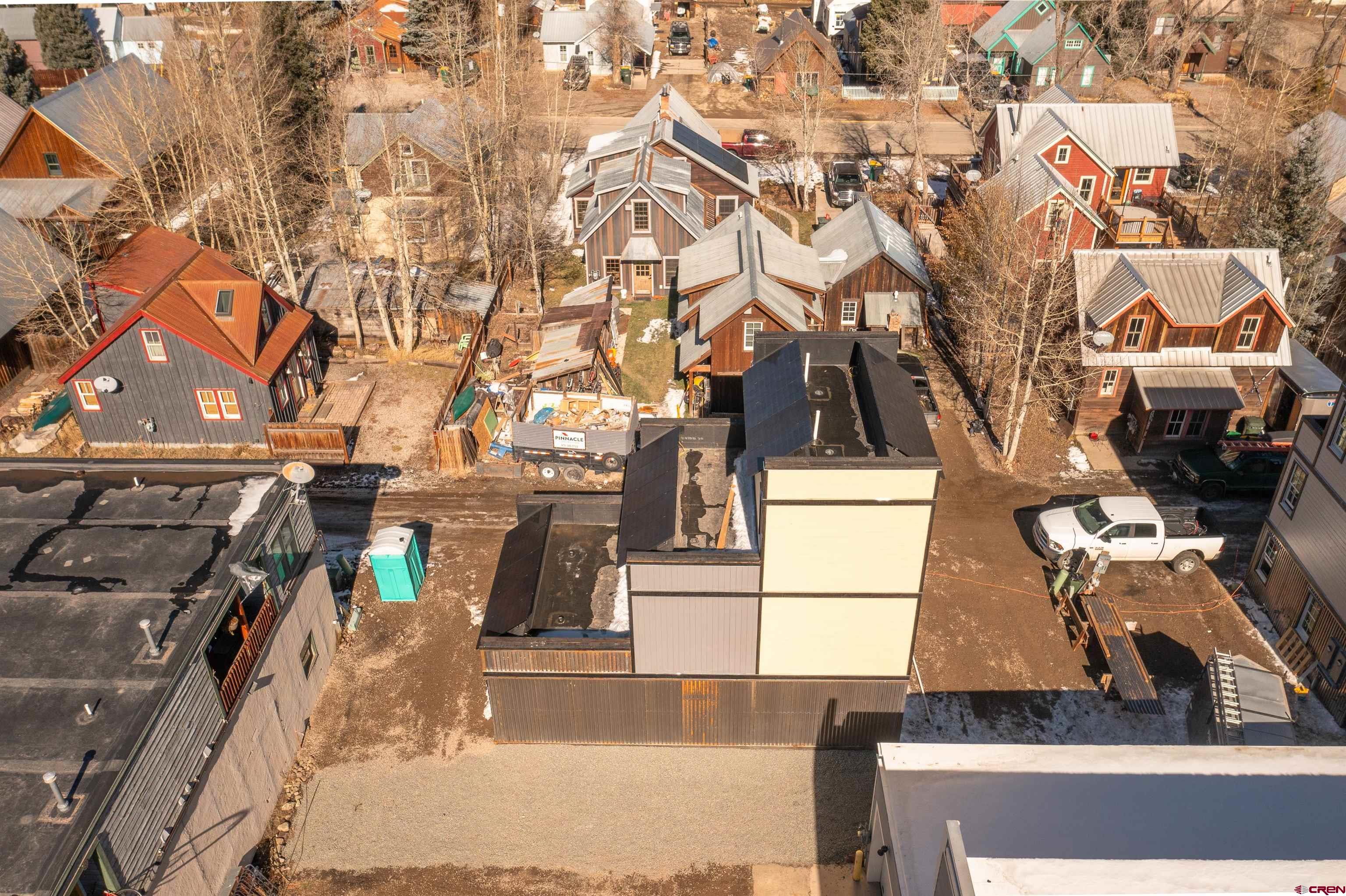 Brand new mixed use building nestled in the heart of Crested Butte. Located in the alley between Whiterock and Belleview. This property offers a unique blend of privacy and convenience with the ability to live upstairs and also operate your own business out of one or all of the ground level commercial spaces. The 1,534 sq ft space is thoughtfully designed across three levels. On the second and third floors you find two beautifully appointed bedrooms each with a private bathroom. The second level also features the perfect kitchen for small living and a quant and cozy living space. Enjoy the wonderful views off every balcony. The ground floor presents three commercial spaces each with private access. Two of the spaces have garage doors and one with a bathroom. A third small space is situated on the back end of the building. Solar panels maximize energy efficiency, while four dedicated parking spots and an electric car outlet cater to modern needs. Whether you choose to live upstairs and operate downstairs or rent out each space individually, this property promises multiple avenues for the convenience of in town living and entrepreneurial endeavors.