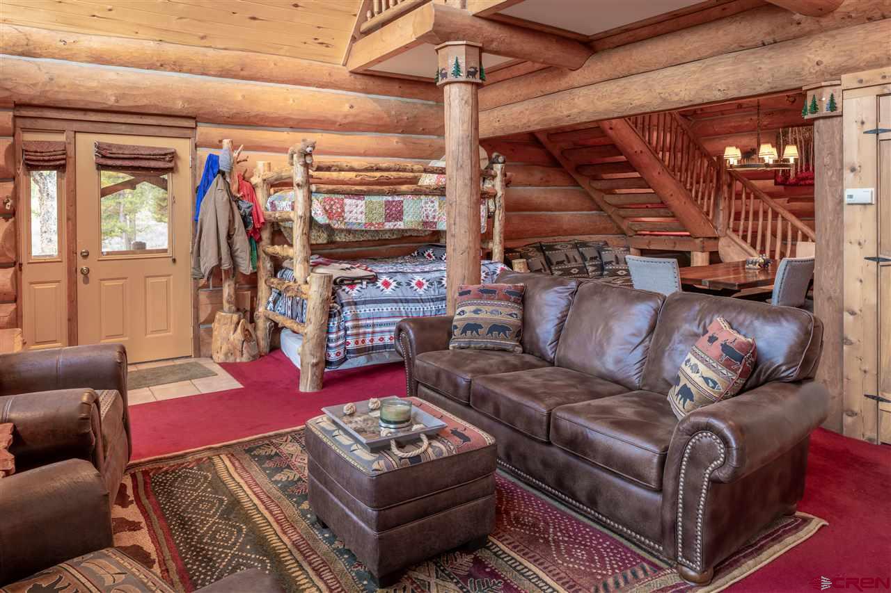 This is a beautiful, full-log home located on more than an acre at 10,000 ft. elevation and built in 1997 with massive British Columbian logs. Offering a spacious 1,377 sf, the home is very comfortable and inviting. Step into the living room and take in the vaulted ceilings, beautiful stone accented fireplace and open kitchen. The kitchen has a large peninsula for extra dining space, plus plenty of cabinets for storage and nice appliances. Upstairs, you will find a large loft bedroom with a walk-in closet and en-suite bathroom. Off the bedroom, is a new, screened in balcony that will be great for those summer evenings. There is also a large bathroom on the main floor and a bunk bed for guests. Take in the commanding views from the front deck and watch the many moose and other wildlife pass by. The home is located within a small gated development known as Rainbow and is accessible via snowmobile in the winter and by car in the summer. Rainbow offers the owners incredible fishing on 3 miles of private access to Willow Creek, and annually stocks Willow Creek and multiple ponds within the common property.The nearby mountain ranges include the Collegiate Peaks and the Sawatch Range, with nearby Cottonwood and Cumberland Passes. The town of Tin Cup is a short drive away offering a restaurant and local shops during the summer months. Taylor Park also offers gas service, restaurant and convenience store for basic needs. This is a wonderful, high mountain property that will allow you to escape the hustle and bustle in your life and re-connect with your family and nature.