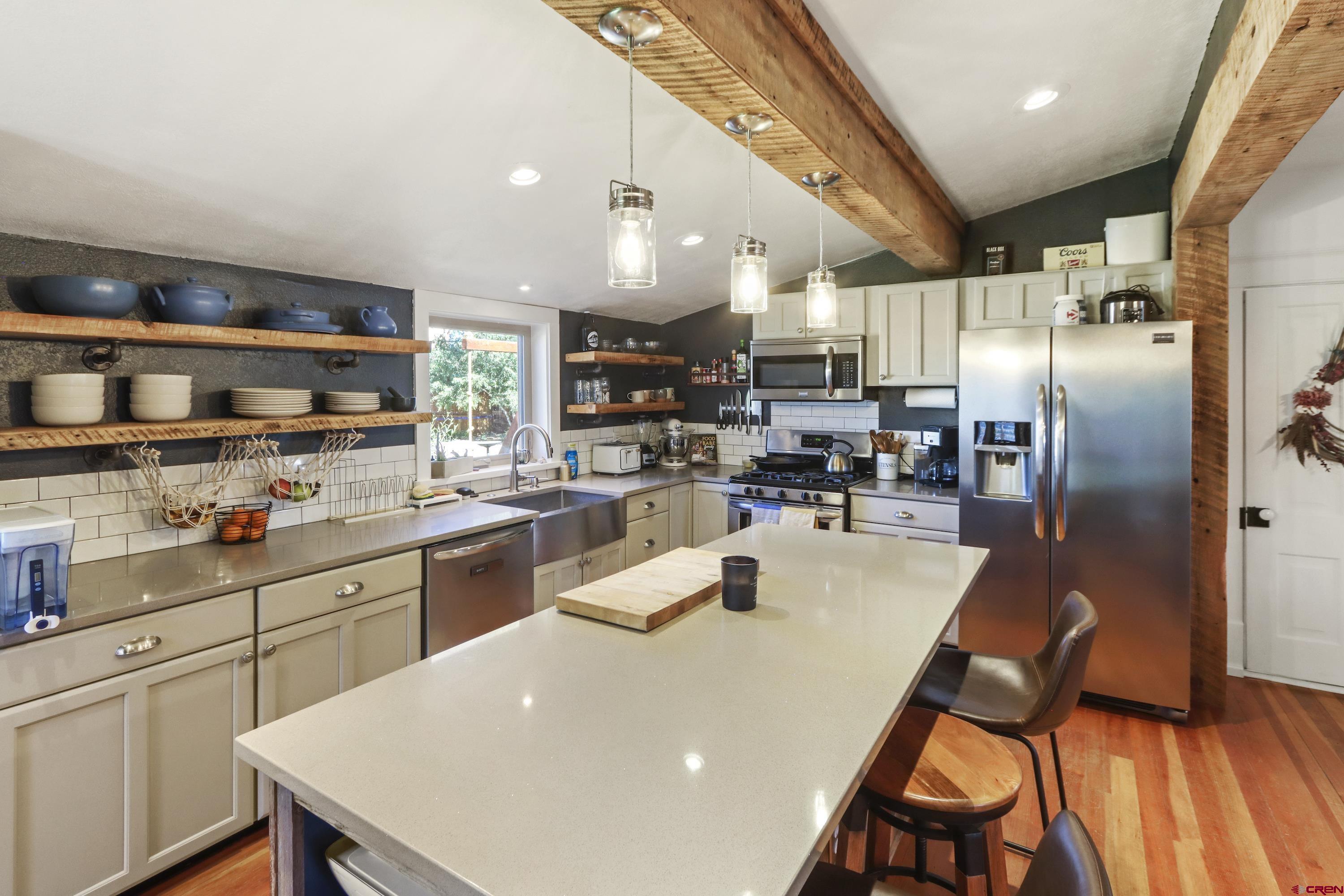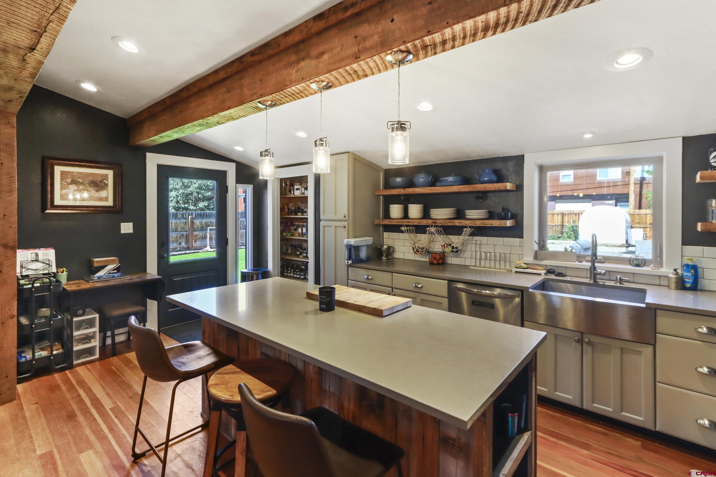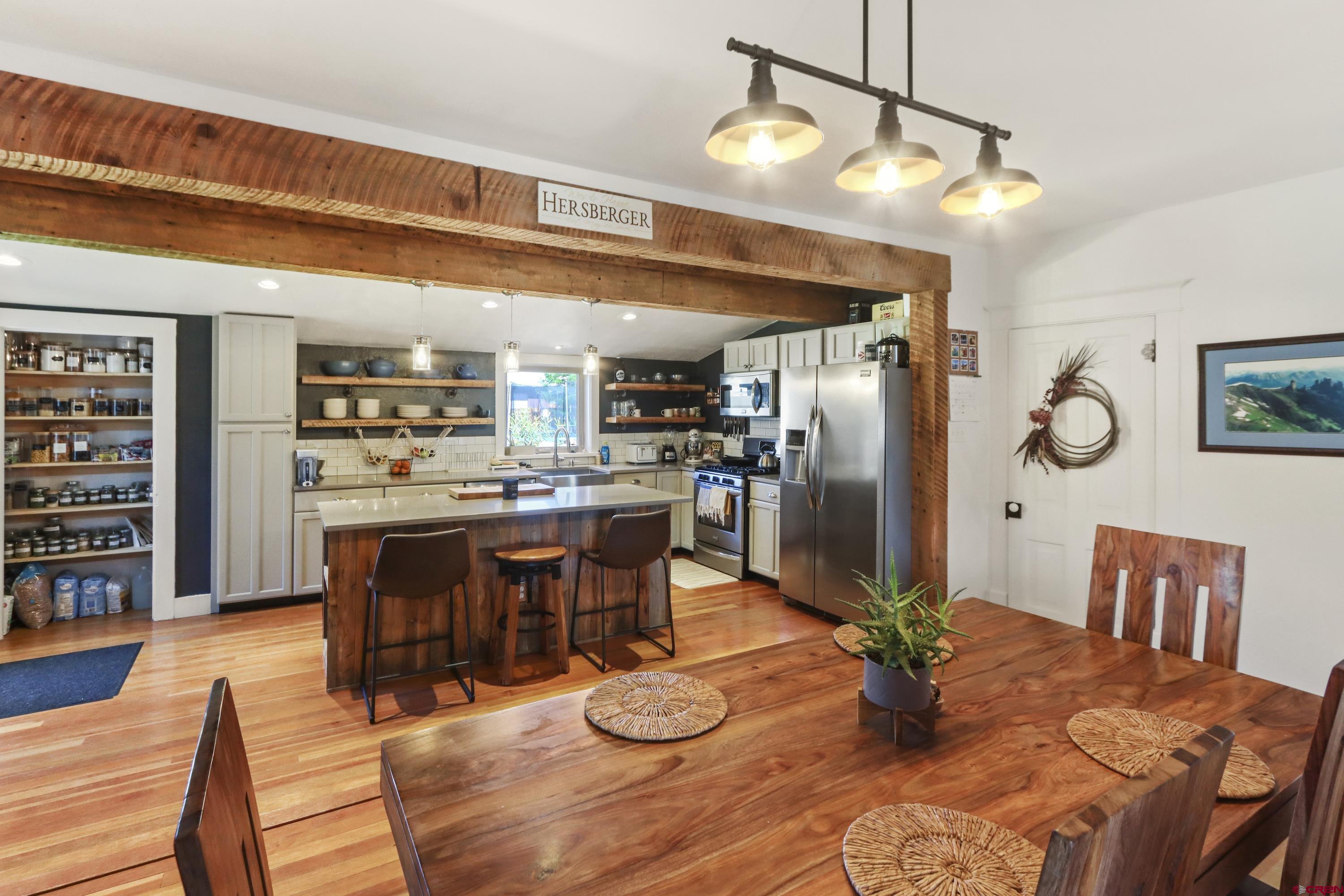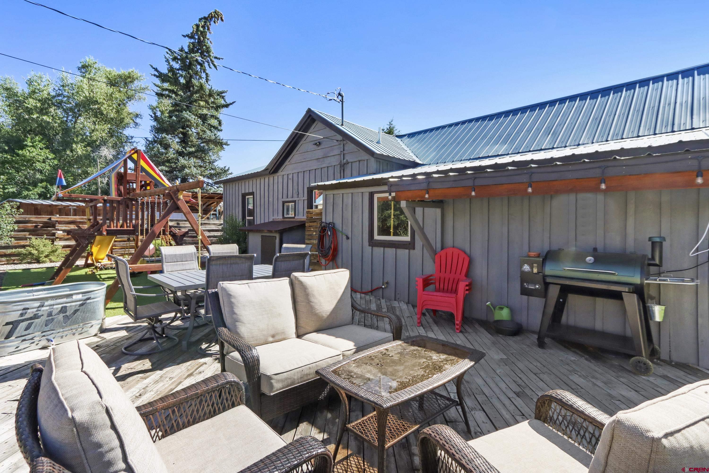 Welcome to this 1884 Classic, a stunning 3-bedroom, 2-bathroom home in the heart of Gunnison, CO, extensively remodeled while preserving its historic charm. Set on four city lots, this meticulously maintained property offers a unique blend of vintage elegance and modern convenience. Upon entering, you'll be greeted by a spacious and inviting front foyer with cabinets, shelving, hooks, and a bench, perfect for a warm welcome. The living room features a cozy gas fireplace, while the dining room boasts a wood-burning stove and an open concept kitchen with stainless steel appliances, a gas stove, a large island, and a pantry. The kitchen sink window overlooks the expansive, fully fenced backyard with low-maintenance xeriscaping and turf, a fire pit, garden beds, a play structure, and a great deck for entertaining. The primary bedroom has two closets and a private primary bathroom with a walk-in steam shower. The 3/4 bathroom off the kitchen and dining features a darling dresser-converted-vanity and a beautiful and vintage clawfoot bath tub, perfect for a relaxing soak anytime of the year. Recent upgrades include new carpet and padding in all bedrooms, fresh interior paint throughout, new light fixtures, updated electrical switches and outlets throughout. The laundry room has been remodeled and all closets have been rebuilt for optimal functionality. Significant work and cleanup on the exterior landscaping in both the front and back yards have been completed this year, enhancing the home's curb appeal. The two-car detached garage offers ample storage space and the property also features a graveled parking area in front that offers at least two additional parking spaces. Situated in a prime location, this home combines historical allure with modern amenities, making it perfect for homeowners seeking a move-in ready residence. With the sellers eager to move on to their next adventure, now is the perfect time to schedule a showing and fall in love with this exceptional property. Don't miss the chance to own this beautifully upgraded piece of Gunnison's history!