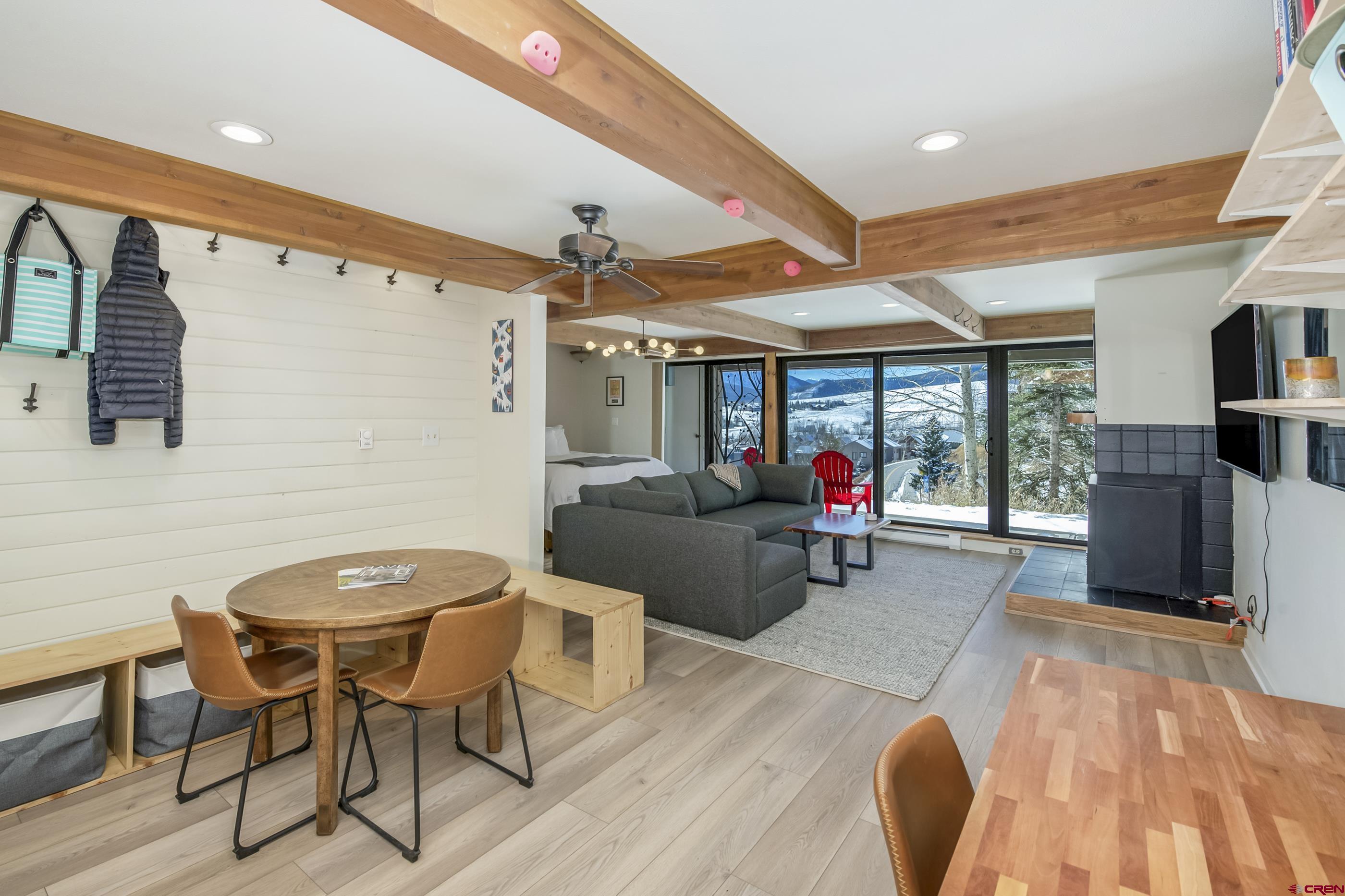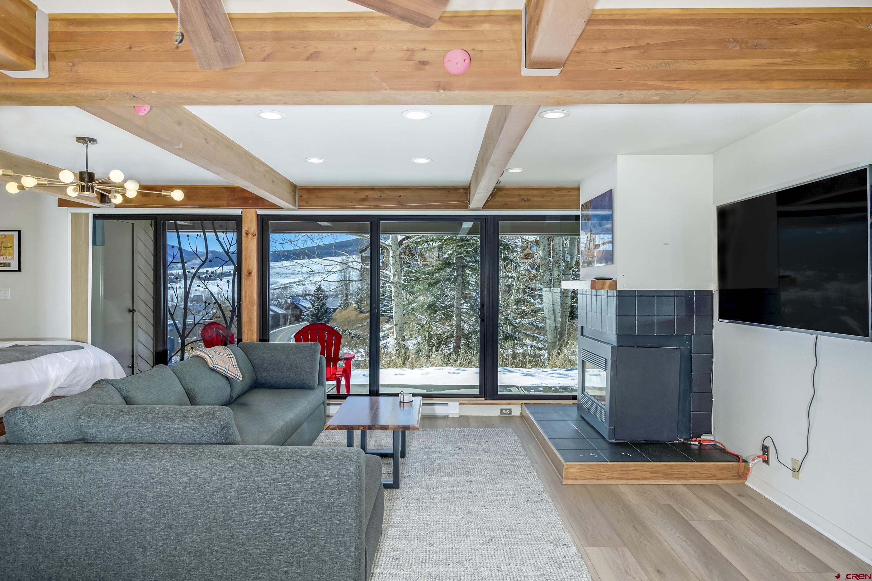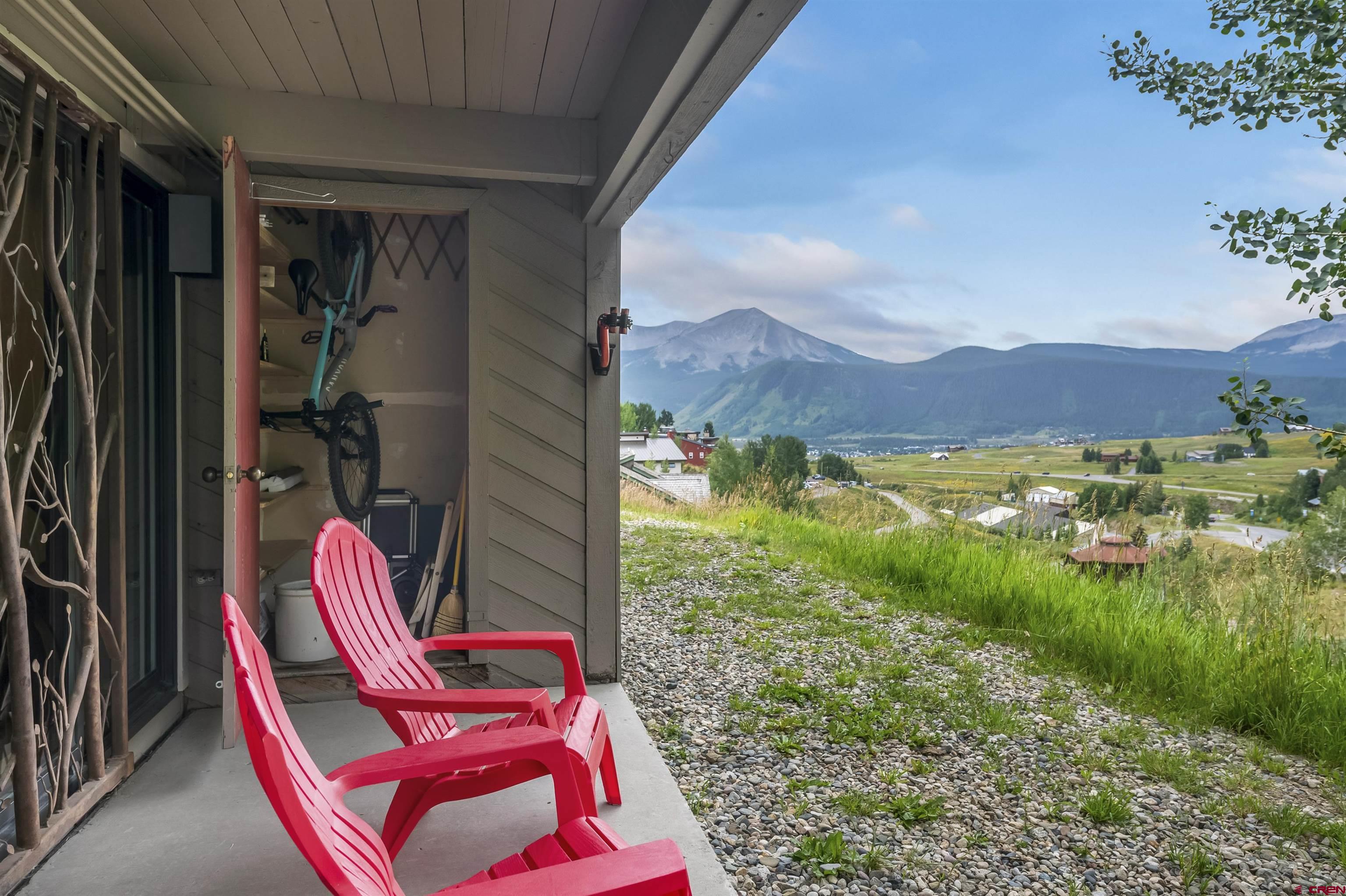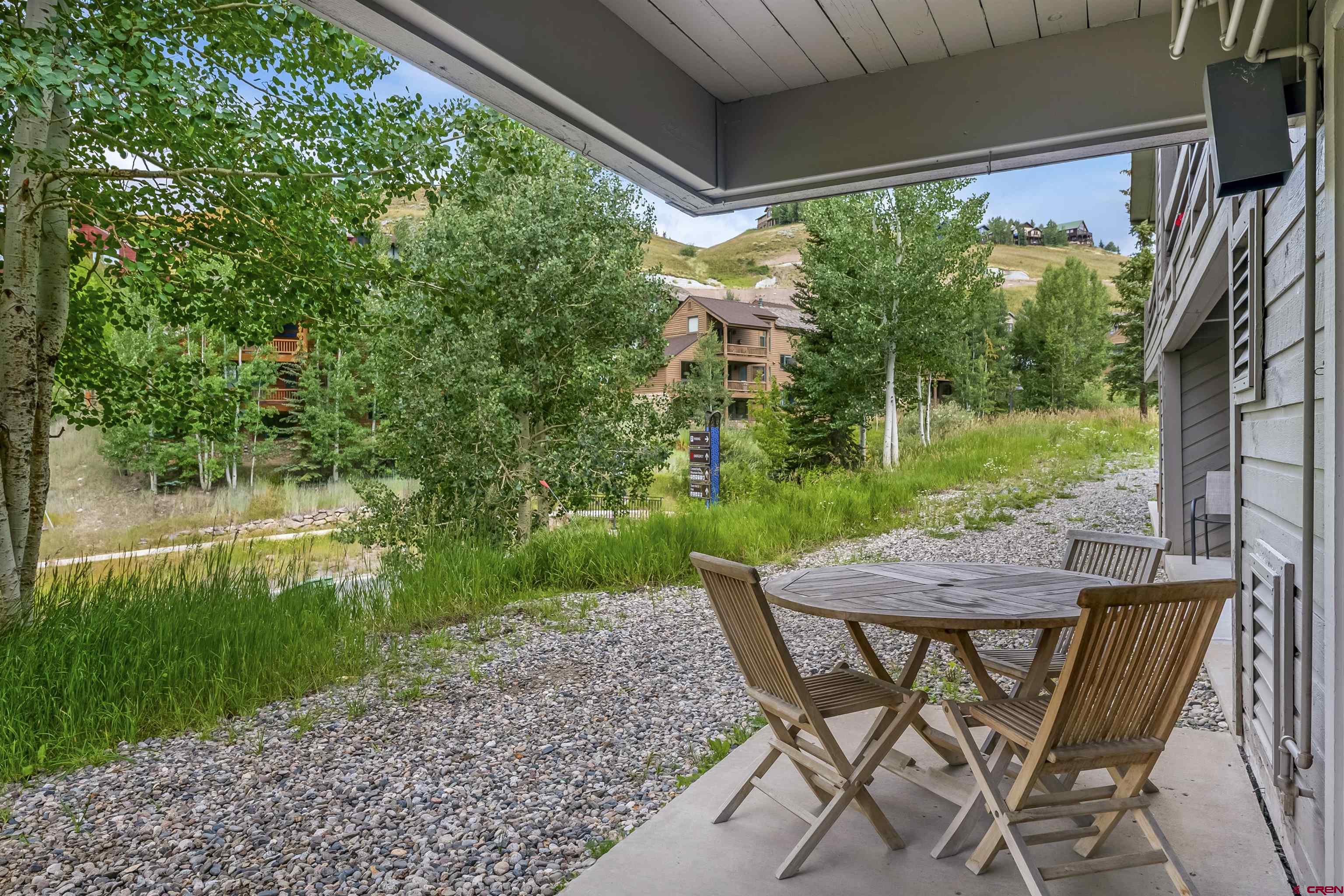 Discover the perfect condo you’ve been searching for! Just a three-minute walk to the West Wall ski lift and conveniently located on the bus stop, this recently renovated unit offers effortless living with its ground-level, no-stairs entry. The contemporary kitchen features quartzite countertops, newer appliances, and a spacious pantry, making meal preparation a pleasure. The large, full bathroom includes a walk-in shower with stylish Fireclay tiles and a glass wall, a triple-door recessed medicine cabinet, and a Bosch washer/dryer. New COREtec flooring has been installed throughout the condo. The inviting living area, enhanced by large wood beams, exudes a cozy ski lodge ambiance and is bathed in natural light from the expansive west-facing sliding glass doors. In the summer, relax on the patio and enjoy the sunset surrounded by tall aspen trees for added privacy. With two exterior storage closets for skis and bikes, this condo is an ideal base camp for all your Crested Butte adventures. After a day of fun, unwind on the hot tub deck, offering some of the best views in the Valley! Use as a primary residence or great for an investment property too.