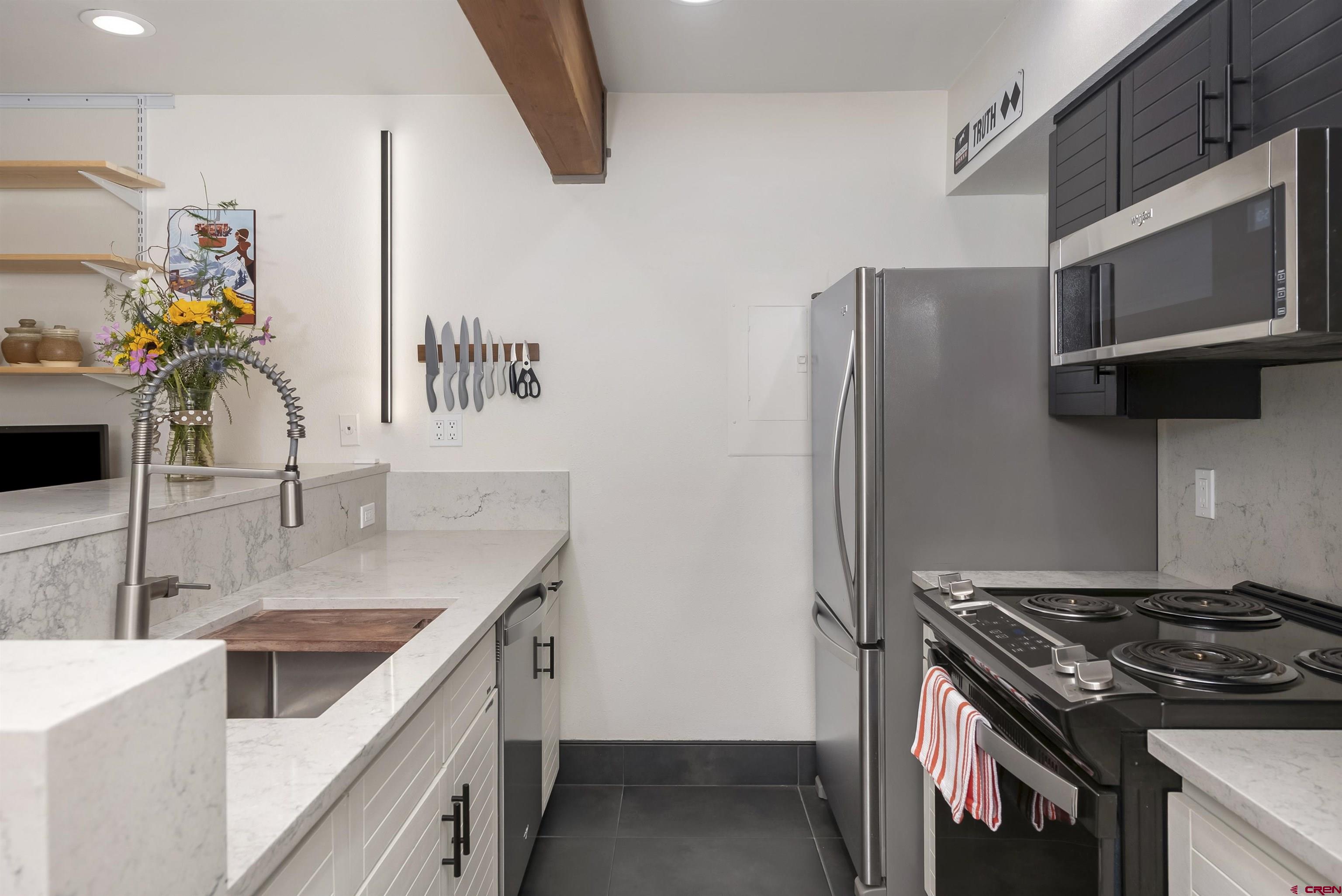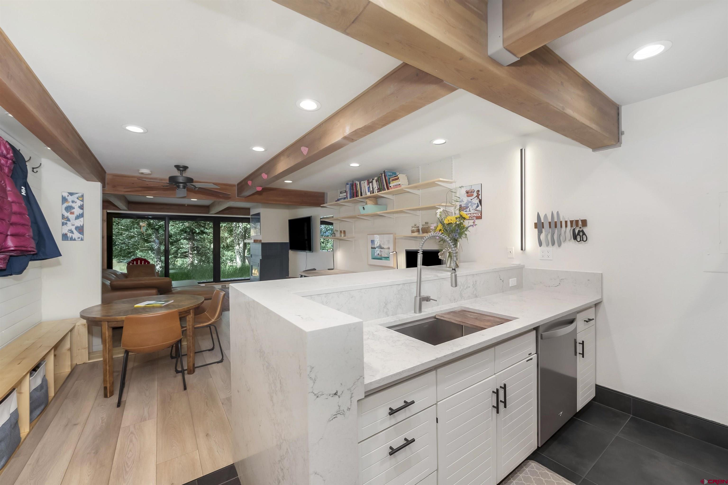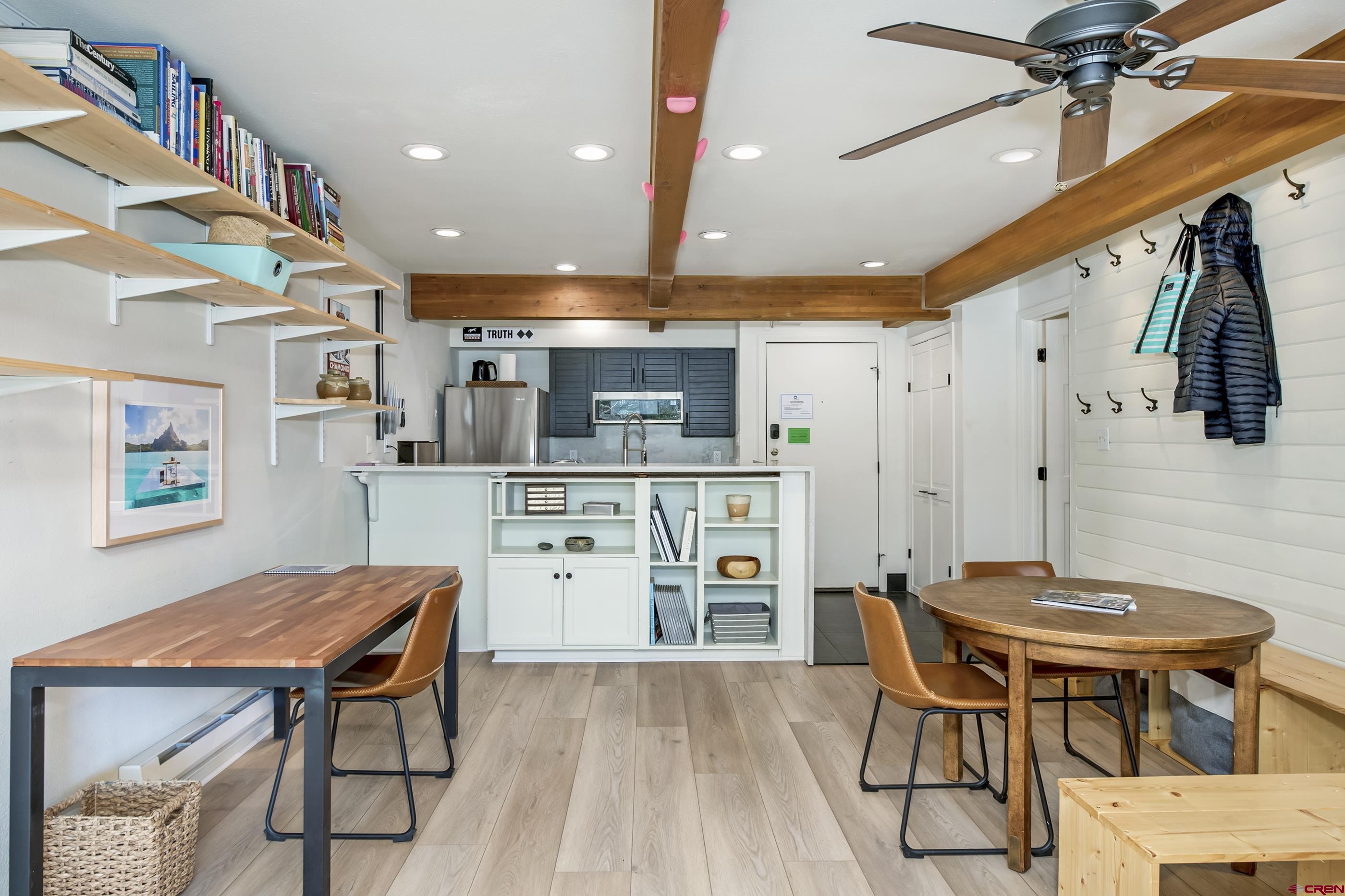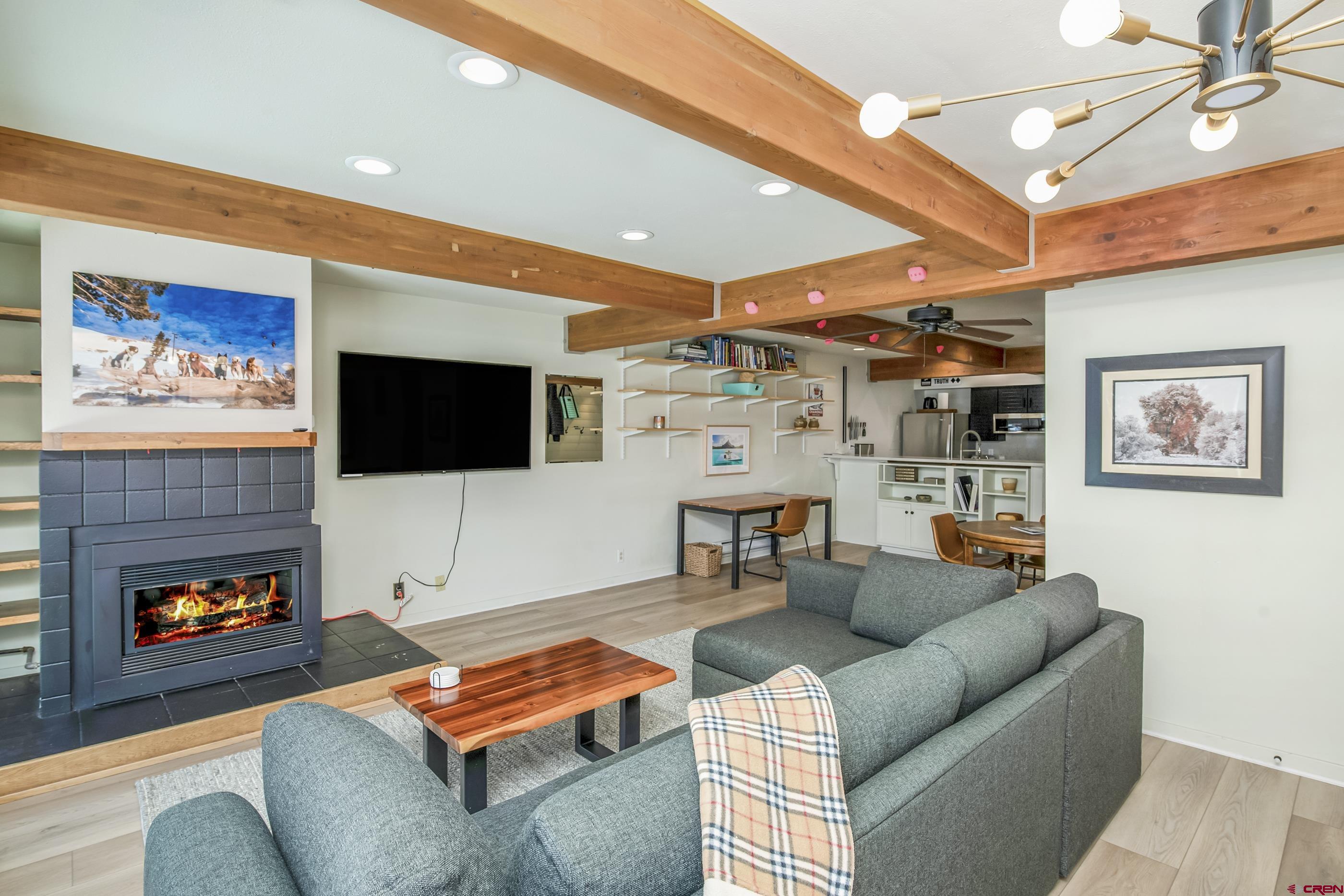 Discover the perfect condo you’ve been searching for! Just a three-minute walk to the West Wall ski lift and conveniently located on the bus stop, this recently renovated unit offers effortless living with its ground-level, no-stairs entry. The contemporary kitchen features quartzite countertops, newer appliances, and a spacious pantry, making meal preparation a pleasure. The large, full bathroom includes a walk-in shower with stylish Fireclay tiles and a glass wall, a triple-door recessed medicine cabinet, and a Bosch washer/dryer. New COREtec flooring has been installed throughout the condo. The inviting living area, enhanced by large wood beams, exudes a cozy ski lodge ambiance and is bathed in natural light from the expansive west-facing sliding glass doors. In the summer, relax on the patio and enjoy the sunset surrounded by tall aspen trees for added privacy. With two exterior storage closets for skis and bikes, this condo is an ideal base camp for all your Crested Butte adventures. After a day of fun, unwind on the hot tub deck, offering some of the best views in the Valley! Use as a primary residence or great for an investment property too.