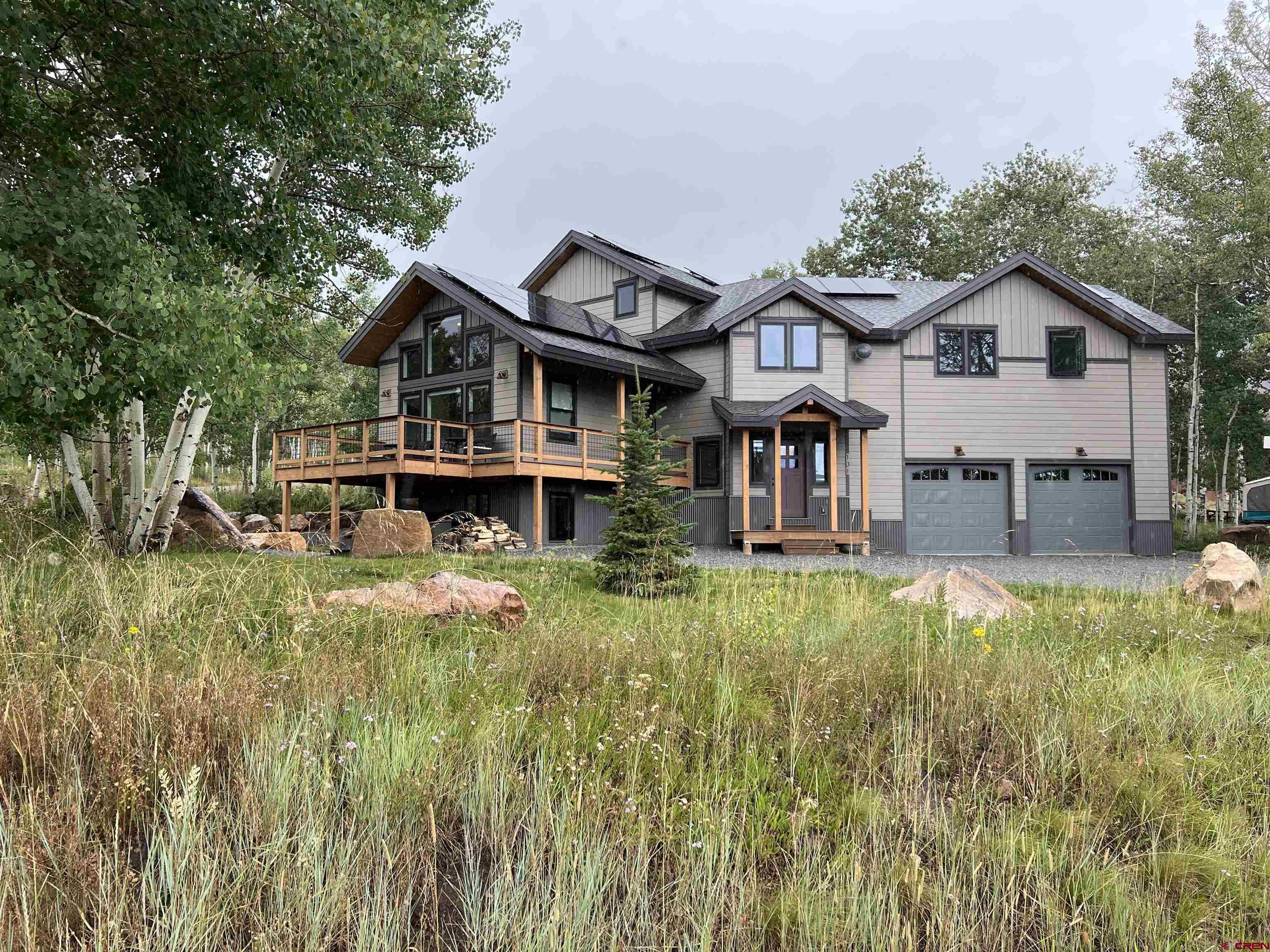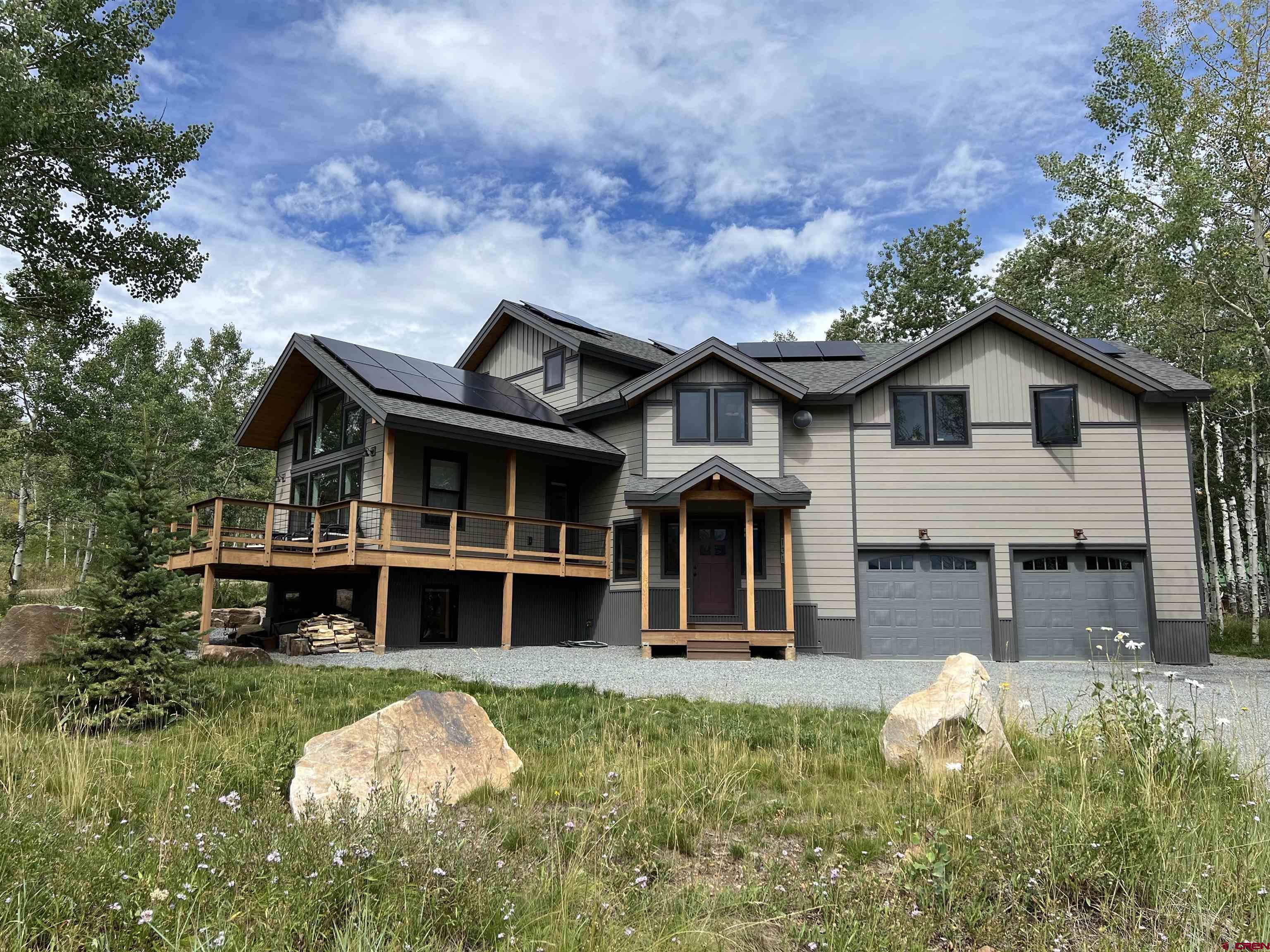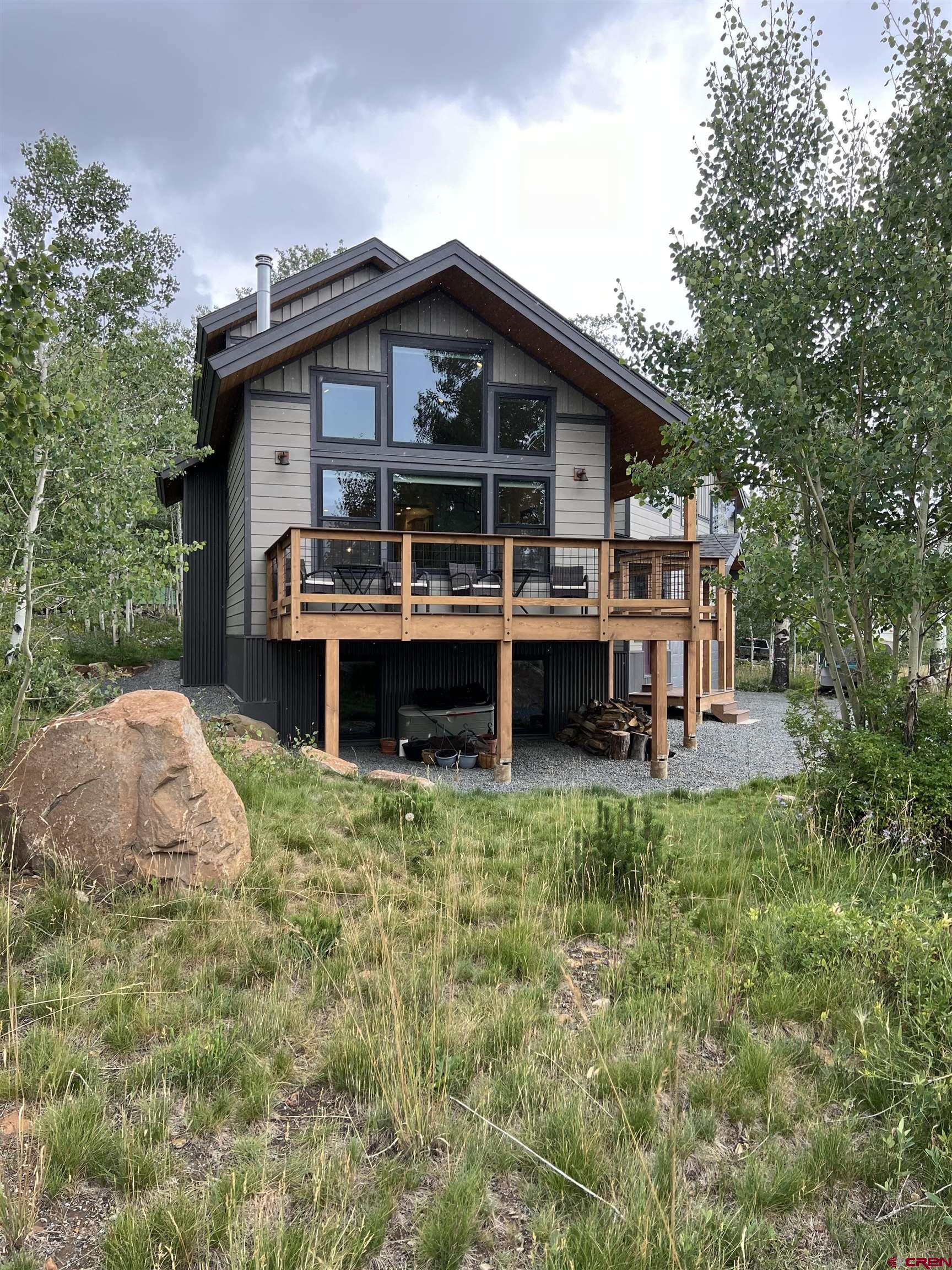 As a seasoned real estate agent with an extensive marketing background, I take great pride in presenting an exceptional property that is sure to capture your heart. Welcome to 131 Gloria Place, a stunning mountain modern home nestled in the coveted neighborhood of Crested Butte South. From the moment you step inside, this 5 bedroom, 4.5 bathroom home will take your breath away. Boasting a spacious 3,153 square feet, this newly built home exudes luxury and comfort. The open living, dining, and kitchen concept is designed to enhance natural light and take advantage of the majestic views that surround the property. One of the standout features of this home is its location. Tucked away in a tranquil area surrounded by Aspens, you'll feel like you've entered a private oasis. The picturesque views can be enjoyed from both inside the home and from the expansive decks. So whether you're entertaining guests or just enjoying a quiet morning coffee, you'll always have a perfect backdrop. This home is not just a place to live, it's an experience. The oversized, treed lot provides ample space for outdoor activities and allows for privacy from neighboring properties. And with a variety of sought-after amenities just a stone's throw away, you'll have endless opportunities to indulge in the mountain lifestyle. Imagine fishing in nearby lakes, skiing in the world-class resorts, or enjoying a game of golf at the popular Trent Jones II course. In the winter months, you can ski, snowmobile, ice skate, and nordic ski while in the summer months you can raft, kayak and paddle board, fish, rock climb, dirt bike, and explore the endless network of trails for horseback riding, hiking, mountain biking, etc. But the perks of this home don't end there. Thanks to the energy-efficient solar panels, you can enjoy lower electric costs, pay a $39 monthly connectivity charge and based on your usage your electric may be free!. With multiple bedrooms and bathrooms, and a finished basement for a media room or game room, etc., this home can easily accommodate a large family or visiting guests. Outdoor hot tub and fire pit make it a wonderful hang out inside and out. This home is truly the embodiment of mountain living at its finest. From the prime location and tremendous views to the modern design and abundant amenities, including your private outside hot tub to view the stars and the full moons along with your fire pit to roast marshmallows, it checks off all the boxes for the ideal home. From its irresistible charm and inviting atmosphere, this home is sure to appeal to any buyer. So don't miss out on the chance to call 131 Gloria Place your new home. Contact your real estate professional to schedule a private tour today and make this dream home your reality!