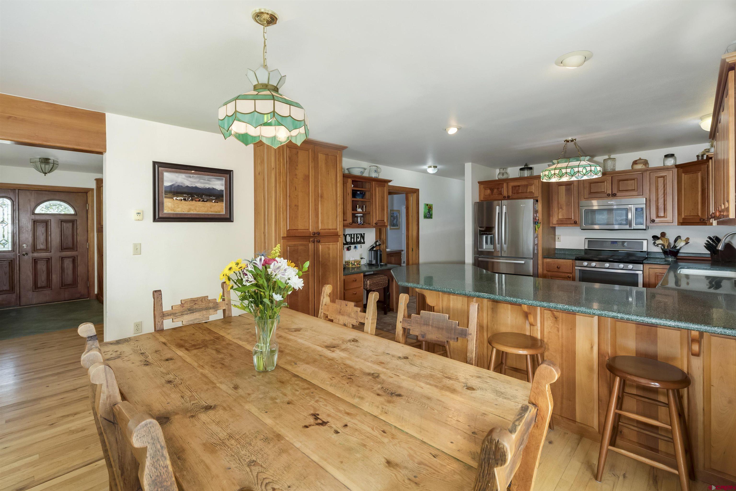 114 Sandpiper Trail is located in the beloved North Elk Meadows subdivision just north of downtown Gunnison. This amazing home offers 4 bedrooms, 3 bathrooms with 3,012 square feet and sits on a spacious .64 acre lot. Driving up to the home you will enjoy the circular driveway and mature trees that surround the property. The front porch is a welcome entry and perfect spot to sit in and enjoy the mountain views to the north. When you walk in the front door, you will notice the spacious and open living area. The sunken living room has plenty of space for several seating options and features a gas burning fireplace. The large kitchen provides ample storage and extra seating on the peninsula plus is next to the generous dining area. During the warm summer, you can dine al fresco on the large back deck, just off the living area. The main floor also offers a guest bedroom and full bathroom, laundry area with extra storage and access to the two car garage. Heading upstairs, you will find the massive primary suite with vaulted ceilings, a walk-in closet, gas fireplace and en-suite 5-piece bathroom. Down the hall are two additional bedrooms and the third bathroom with a double vanity. This is a wonderful home in an ideal location that is close to Gunnison and an easy drive to Crested Butte. You can enjoy the peaceful quiet neighborhood but still enjoy all of the art, culture and dining offered in this wonderful community.