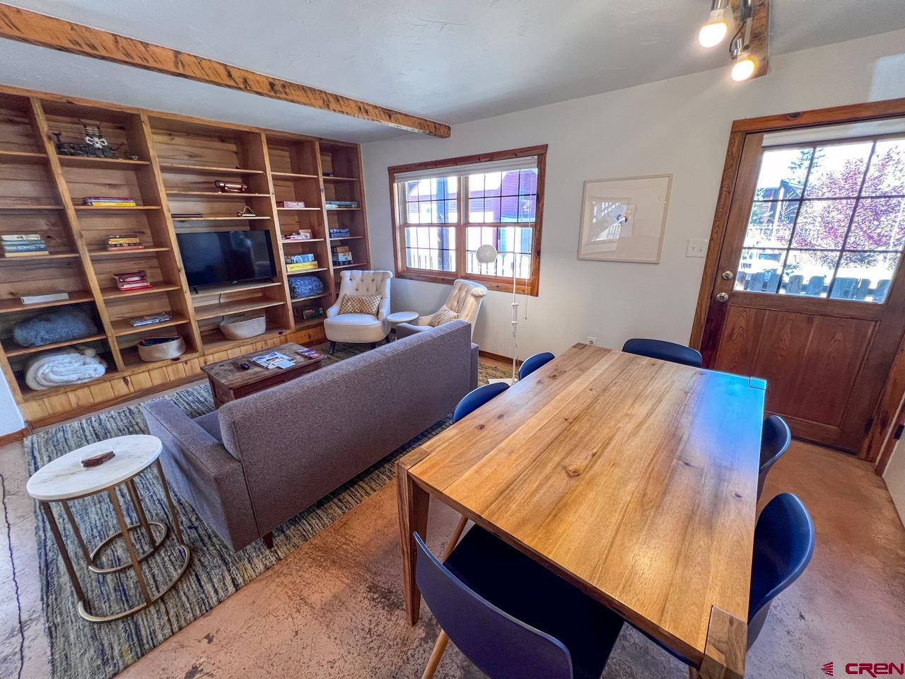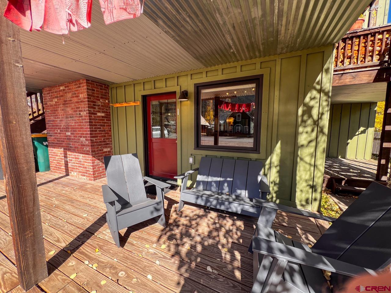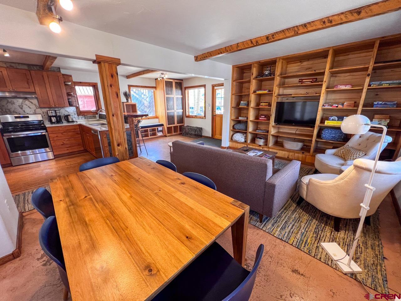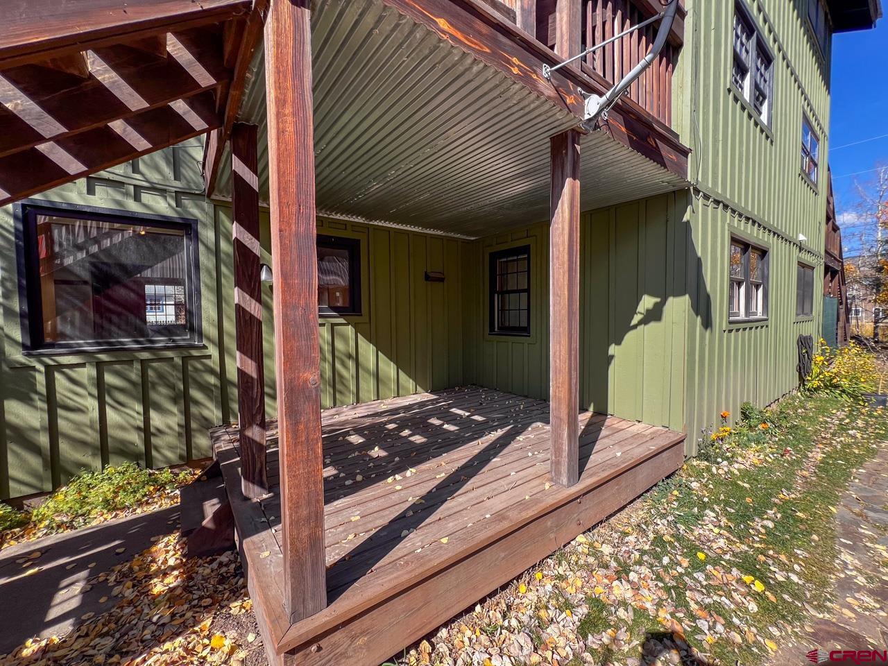 Great location and central to everything in the town of Crested Butte, this 2 bedroom ground floor condo faces south enjoying natural light on three sides. The ski resort shuttle picks up at 4th and Whiterock and it's a quick townie ride or walk to Clarks, the Center for the Arts and Elk Avenue shopping, dining and nightlife. Interior highlights include an updated and well equipped kitchen, in-floor gas fired radiant heat (a distinction in this building considering the other units use electric baseboard), attractive exposed beams and built-in shelving in the living area, built-in cabinets in the entryway and good storage closets with a dedicated laundry space in the hallway! Both bedrooms are spacious too! This unit features two, private and covered decks and off-street parking for two vehicles. The side door off the dining area is a bonus. Furnishings negotiable.