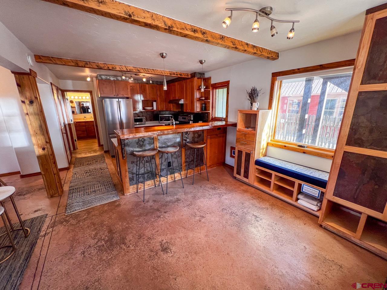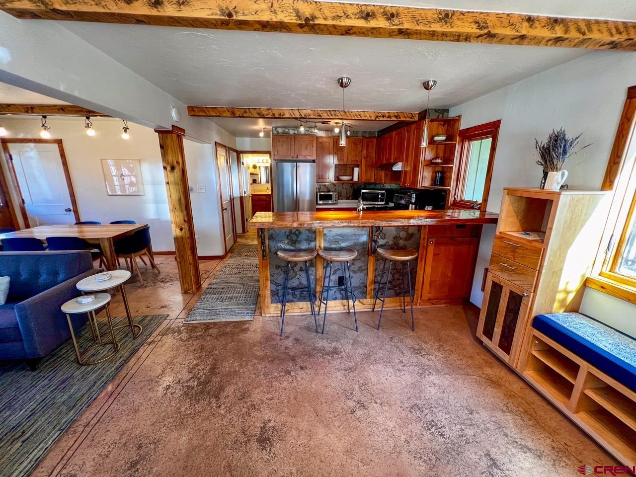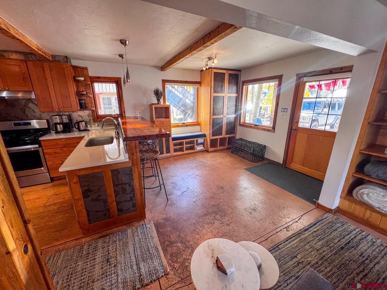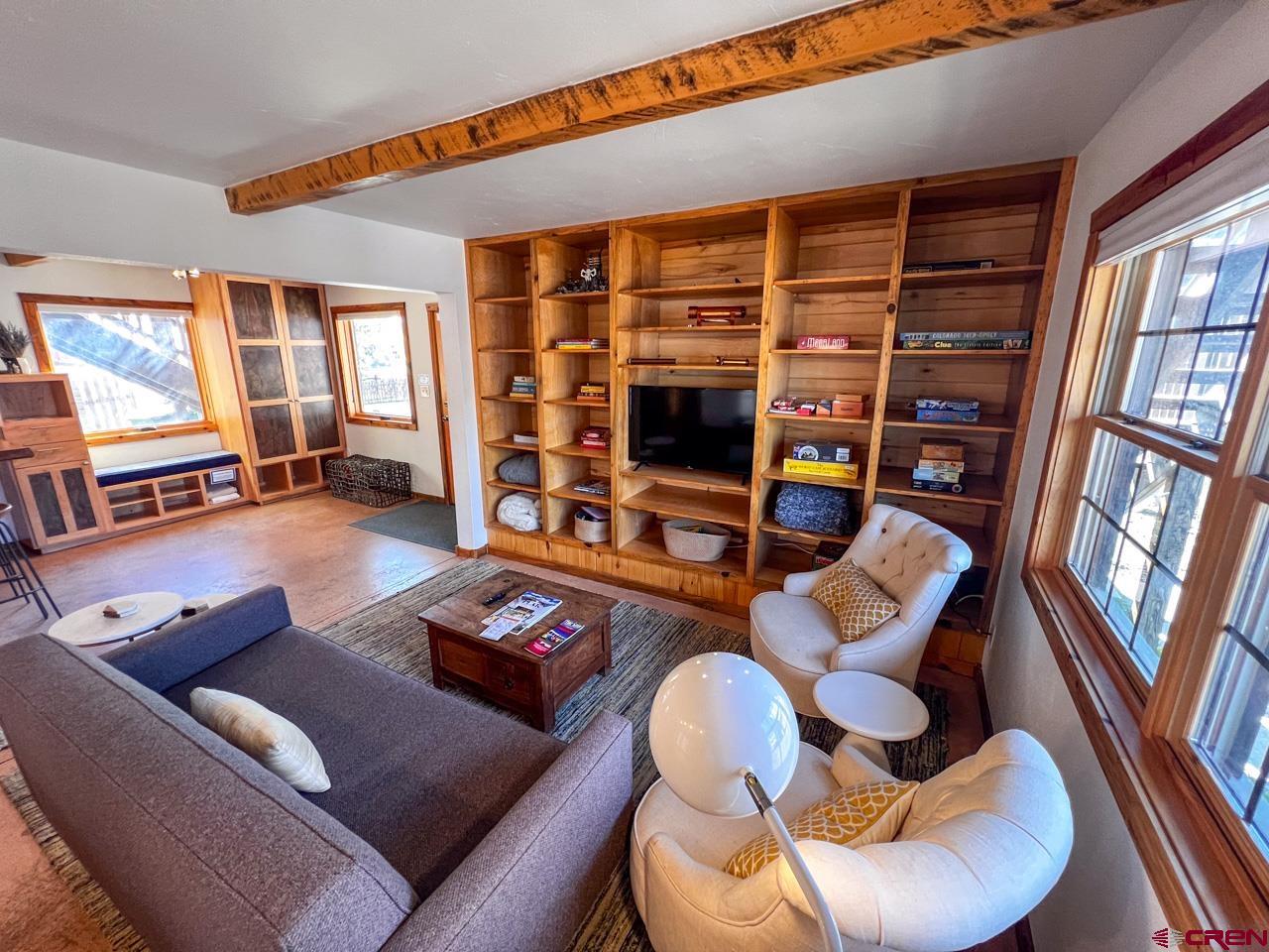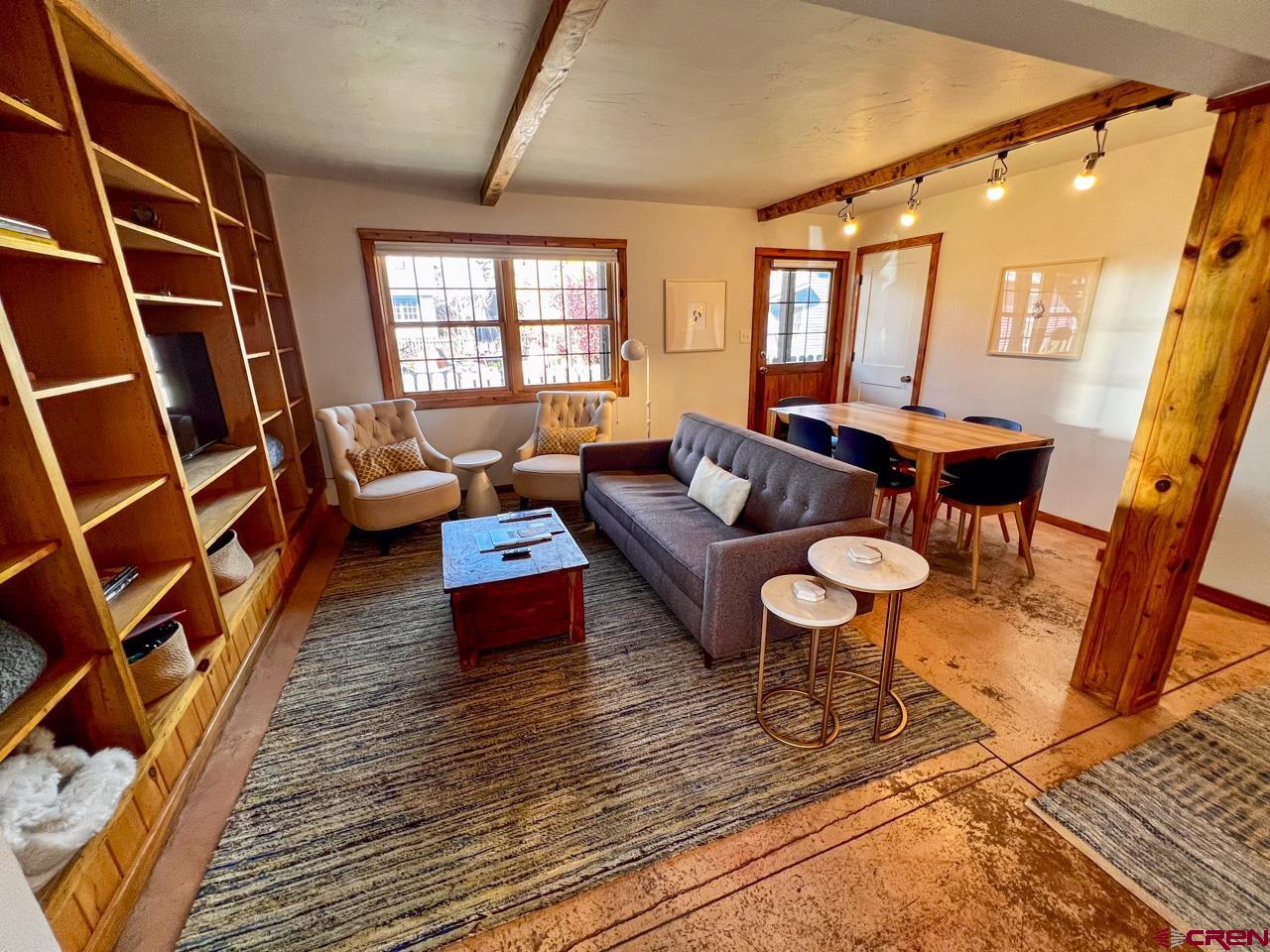 Great location and central to everything in the town of Crested Butte, this 2 bedroom ground floor condo faces south enjoying natural light on three sides. The ski resort shuttle picks up at 4th and Whiterock and it's a quick townie ride or walk to Clarks, the Center for the Arts and Elk Avenue shopping, dining and nightlife. Interior highlights include an updated and well equipped kitchen, in-floor gas fired radiant heat (a distinction in this building considering the other units use electric baseboard), attractive exposed beams and built-in shelving in the living area, built-in cabinets in the entryway and good storage closets with a dedicated laundry space in the hallway! Both bedrooms are spacious too! This unit features two, private and covered decks and off-street parking for two vehicles. The side door off the dining area is a bonus. Furnishings negotiable.