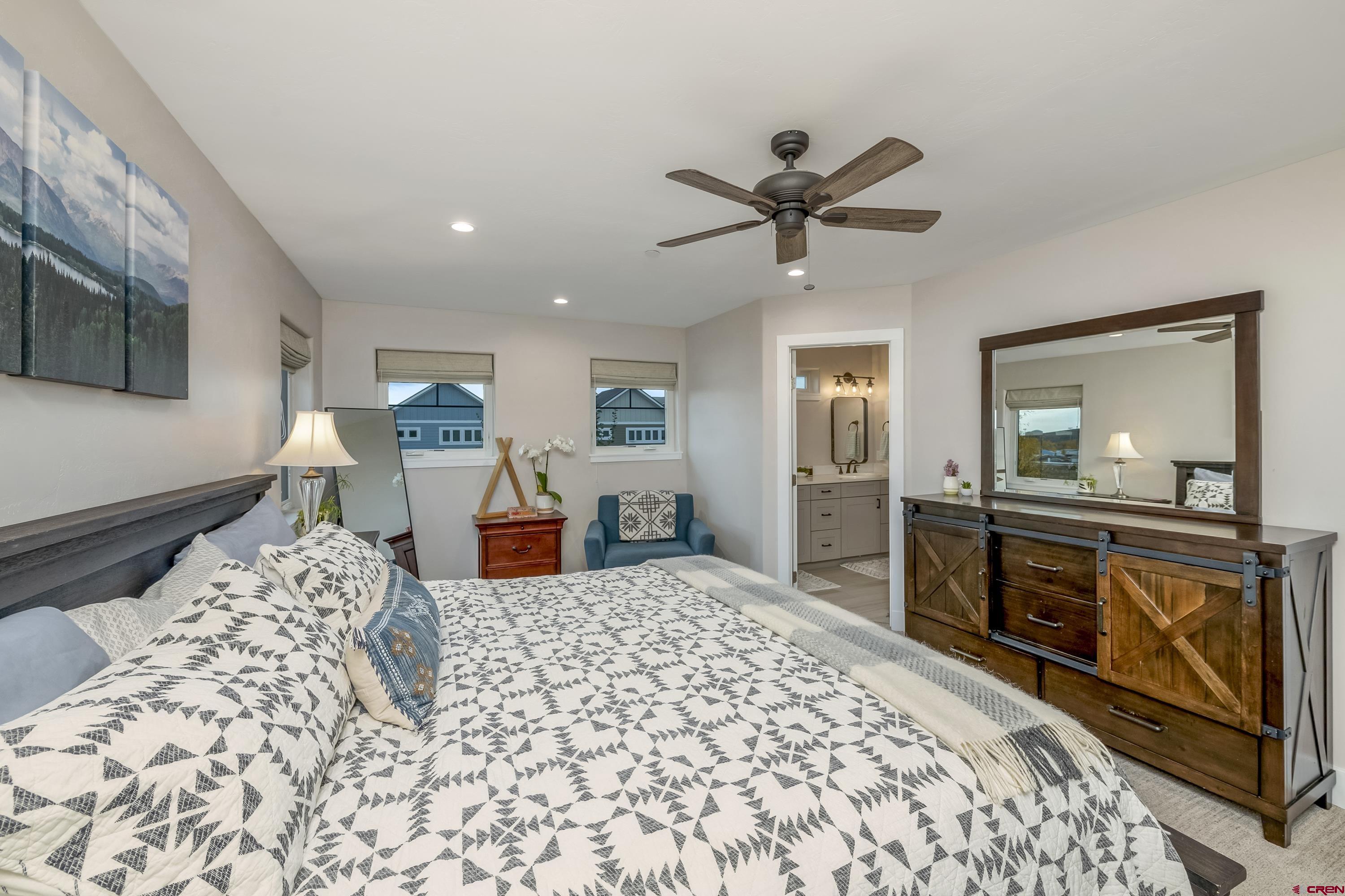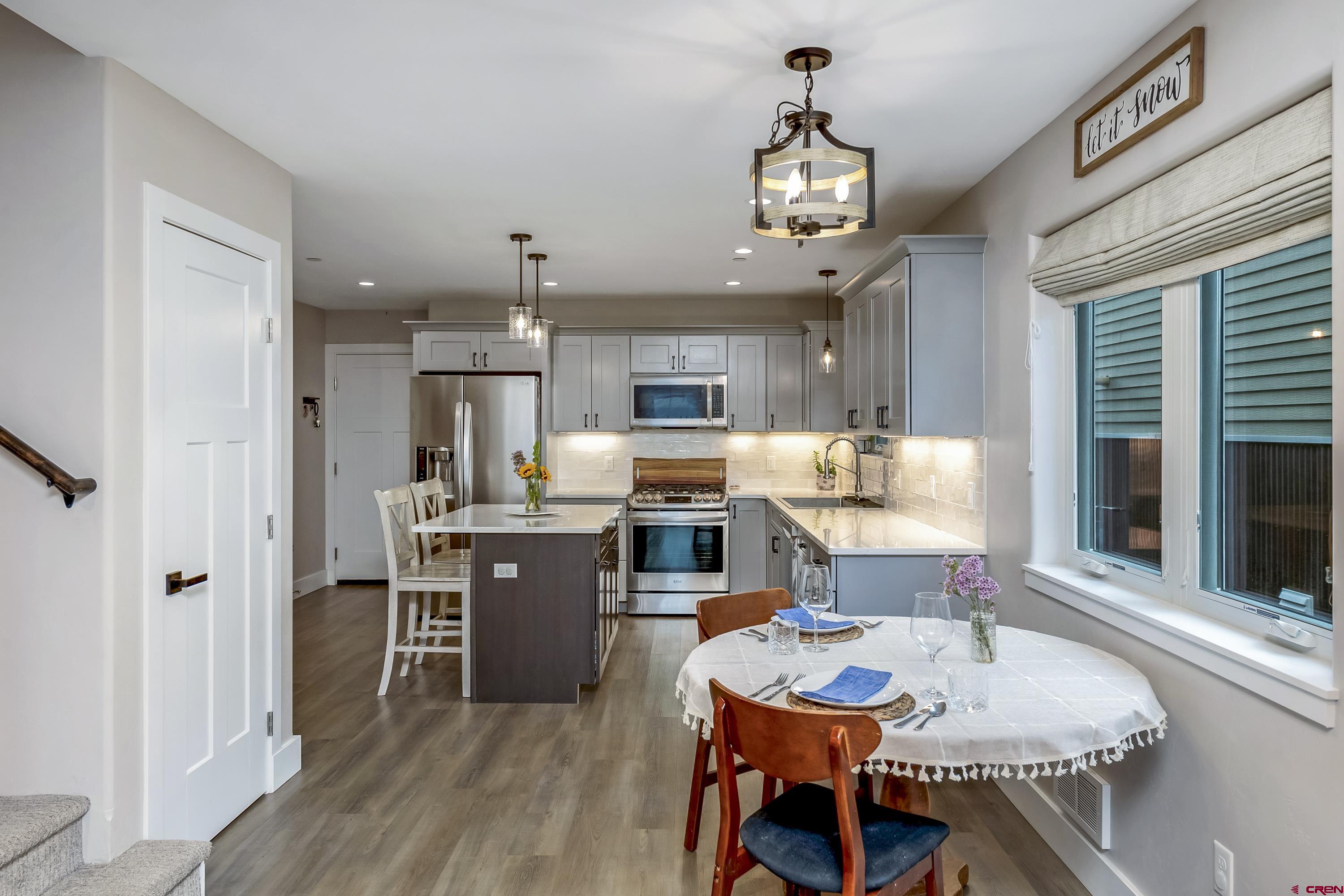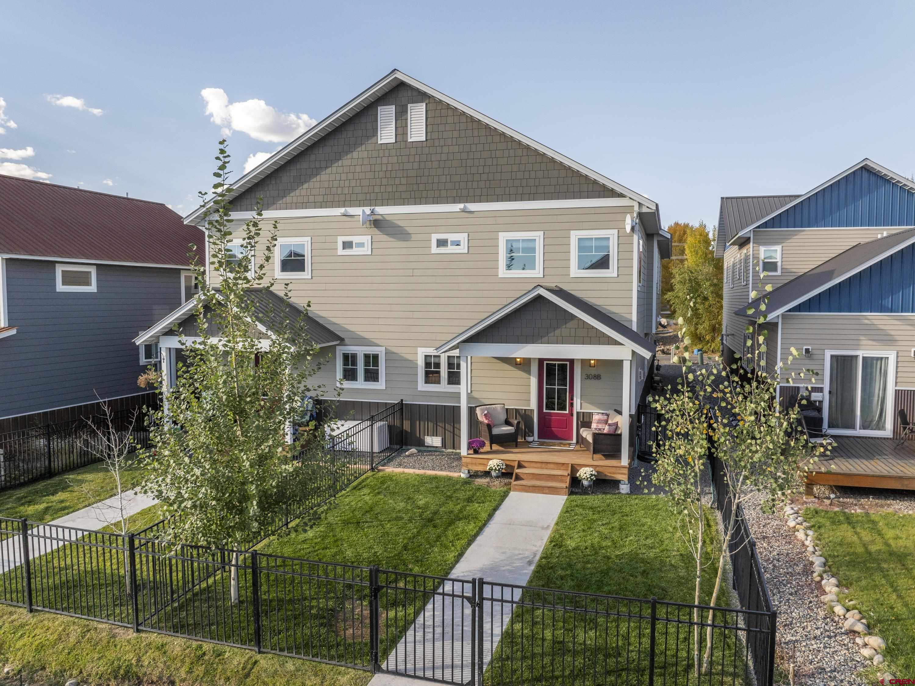 Welcome to 308 Van Tuyl Circle #B, a gorgeous modern townhome built in 2022 that has so much to offer! Situated in the sought-after Van Tuyl subdivision, this home boasts over 2,000 sq. ft. of living space, featuring 3 bedrooms, 2.5 bathrooms, a bonus or flex space, and an oversized one-car garage. As you enter through the fenced-in front yard, ideal for both kids and pets, you’ll immediately notice a unique feature: the city’s irrigation ditch runs along the property line, useful for easily keeping your lawn lush and flower baskets vibrant during the summer months. The charming front porch leads you into a spacious open living area complete with a gas fireplace, perfect for cozy winter evenings. The kitchen is a chef’s dream, equipped with a gas stove, quartz countertops, a large center island, and ample storage, including a sizable pantry. This level also features a cute powder room and access to the oversized garage, ideal for all your gear and toys! There is additional parking in back and on the street. Head upstairs to find all of the generously sized bedrooms, including a welcoming primary suite with an ensuite bathroom featuring a walk-in shower and double vanity. On this level you’ll also discover a second full bathroom and a laundry/utility room. However, the real highlight is the fantastic bonus space with vaulted ceilings and office nook, complete with a hand-painted mural by a local artist. This bonus room would make a perfect playroom, workout area, or second office. Beyond the comforts of your new home, the Van Tuyl neighborhood is centrally located in Gunnison. You’ll be within walking or biking distance to Western Colorado University, grocery stores, coffee shops, delicious restaurants, and boutique shops. Plus, enjoy easy access to local schools, the library, and Charmar Park, which features a gathering pavilion, tennis, and pickleball courts. The Van Tuyl recreation trail is also nearby, offering scenic routes along the Gunnison River. Lastly, you're within 15 minutes of Blue Mesa Reservoir, within 45 minutes of the Crested Butte ski resort, and within an hour of yet another ski resort, Monarch Mountain. With its prime location, exceptional features, and modern amenities, this home is a rare find in Gunnison. Don’t miss out—schedule your showing today!