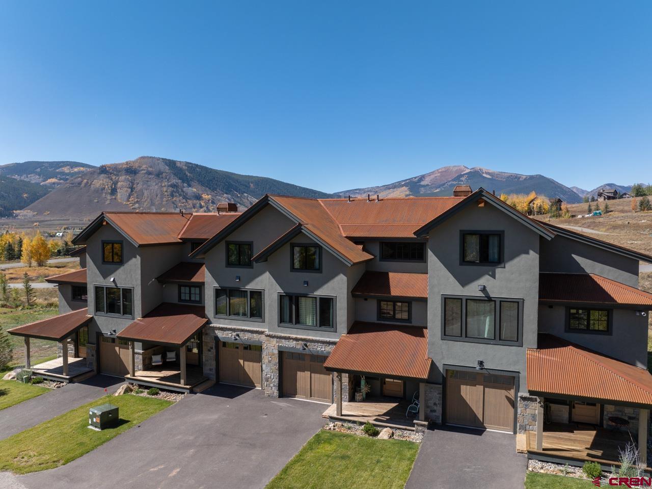 Wow. Skyland's Golf Villas latest luxury offering, this newly completed, 2nd generation home enjoys many upgrades from our successful 1st generation design-builds including a cool loft area on the top floor, Pella windows, the addition of a full bath and closet to the top floor creating a complete bedroom suite, an improved living room fireplace design and upgrades to all of the interior finishes including designer lighting and hardware, wide plank oak flooring, beautiful tops and cabinets and a full Thermador kitchen appliance package with an Anzio hood. Other features include in-floor radiant heat throughout, a covered front porch and two covered decks on the west side of the home. Located across the street from the Club at Crested Butte and facing west, you’ll enjoy beautiful sunsets, awesome mountain views and the convenience of living near the amenity-rich Club, the National Forest Service trails and Lake Grant. Unit 43 is approximately 2,391 SF with four bedrooms, four and one-half baths and an oversized 313 SF, 1-car heated garage.