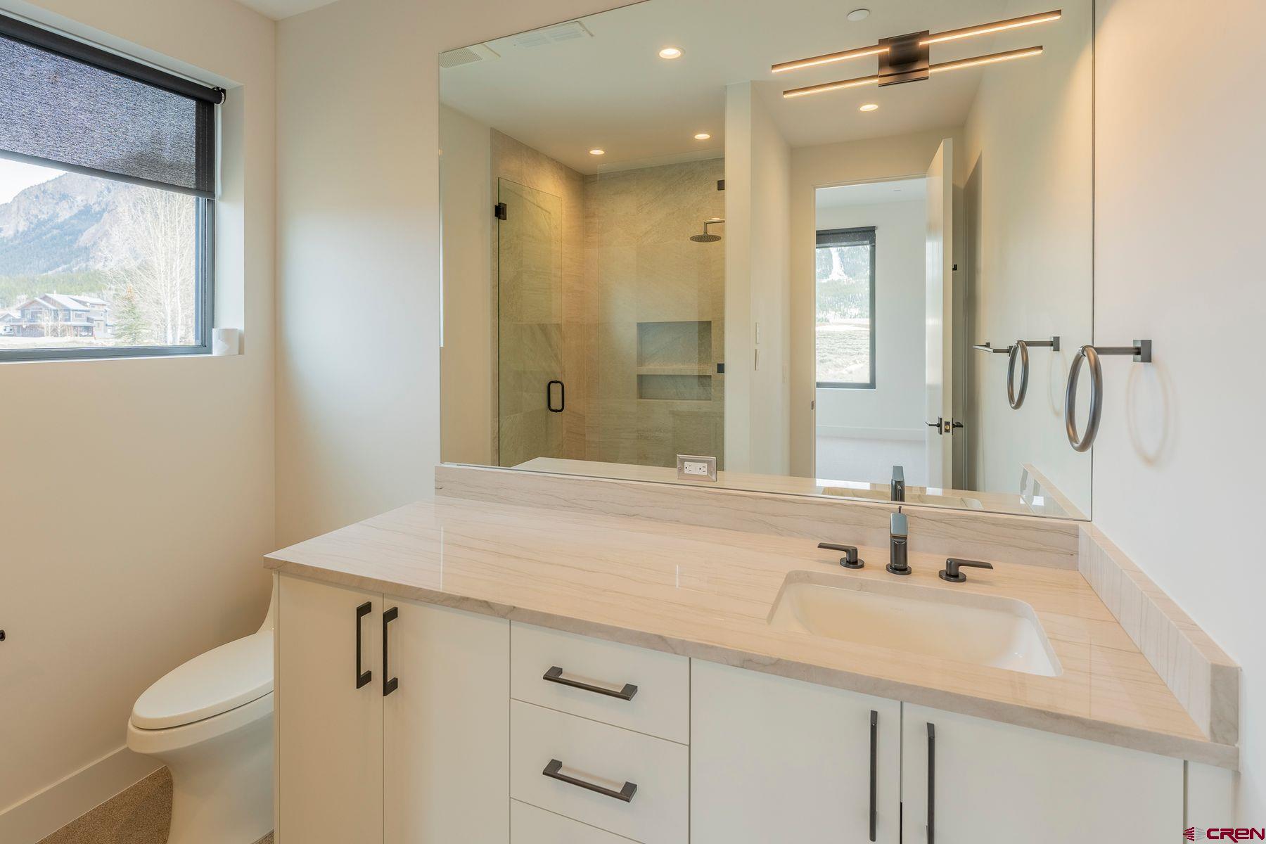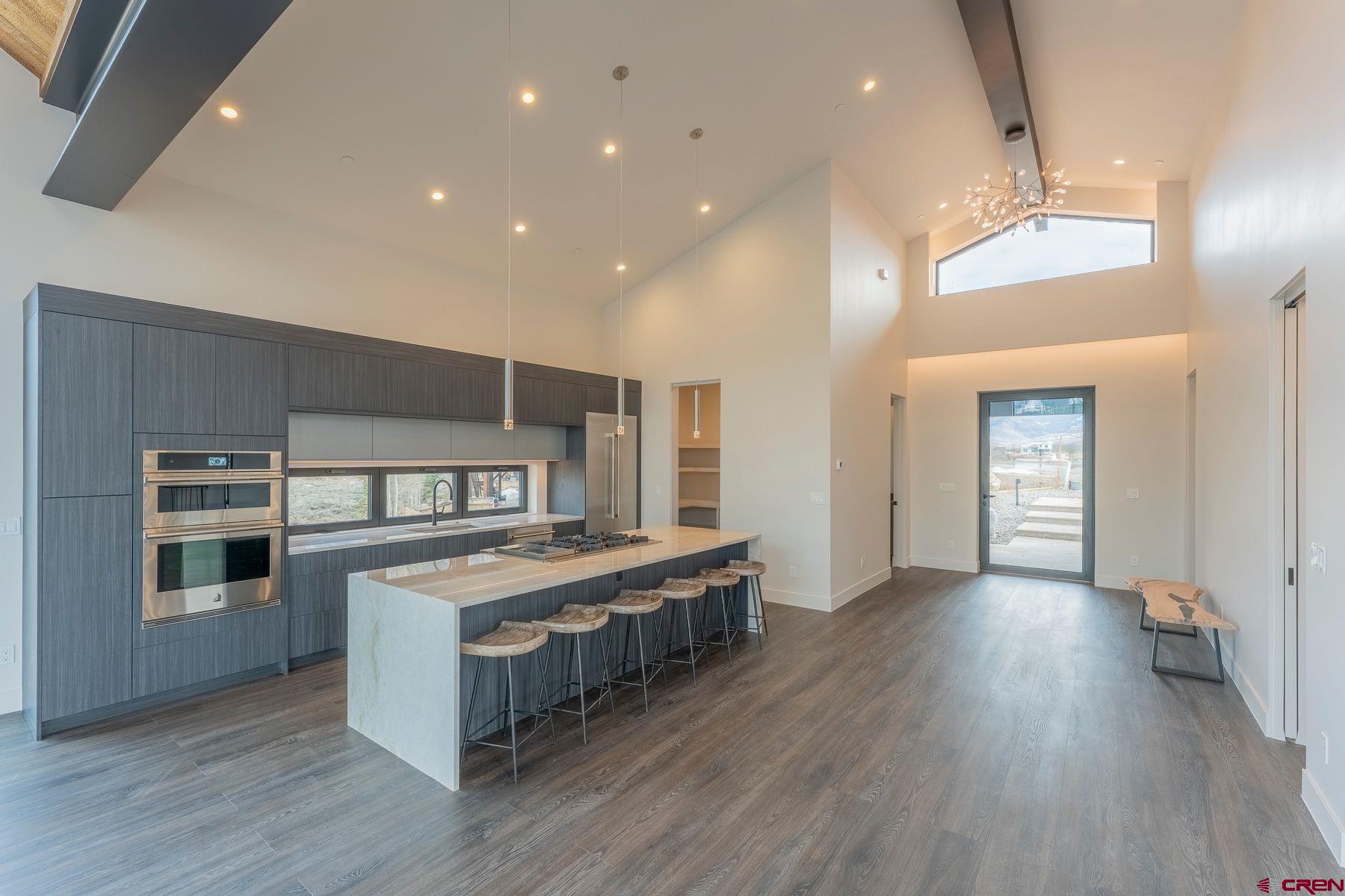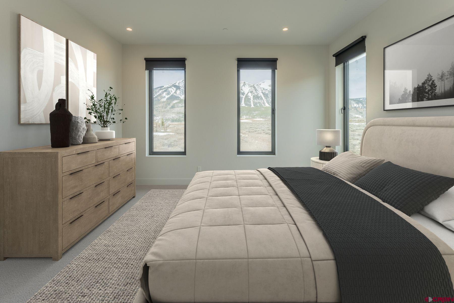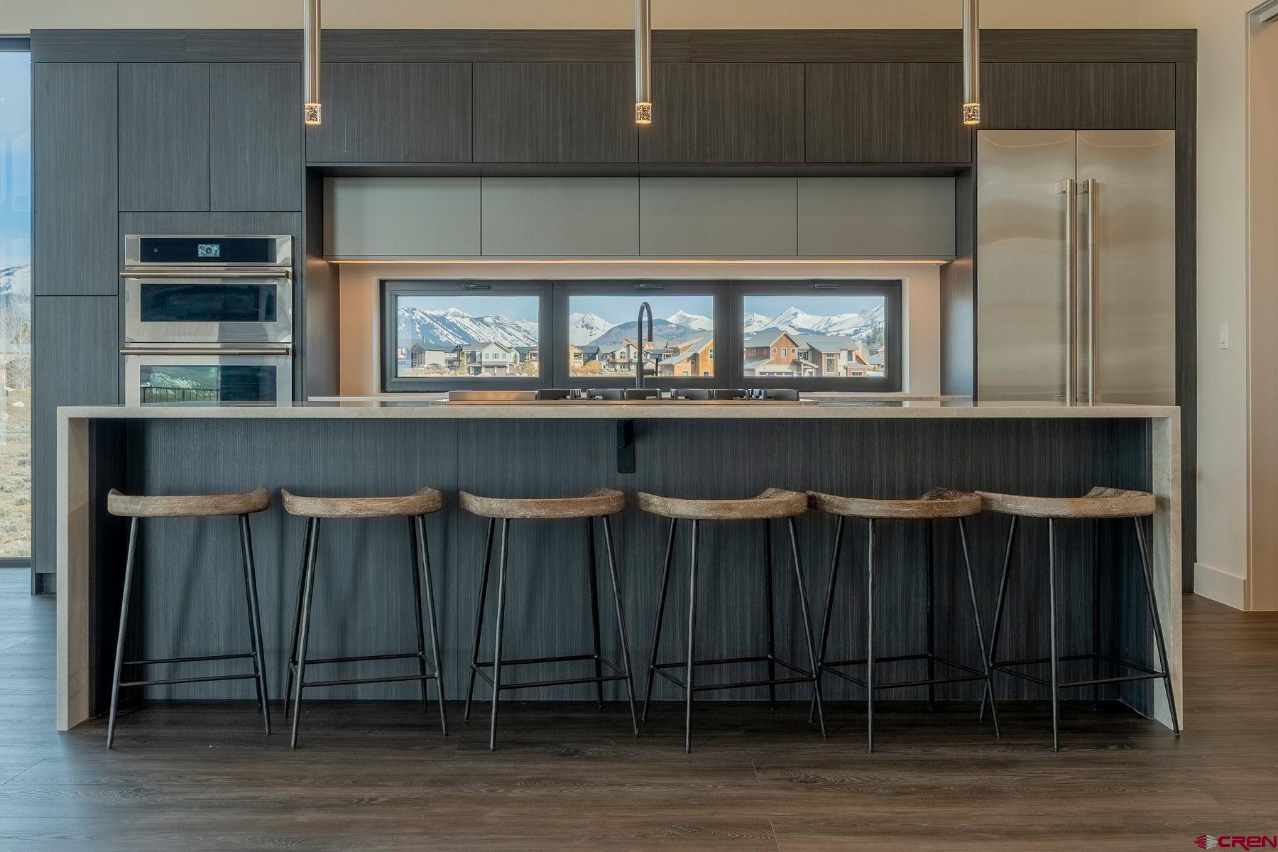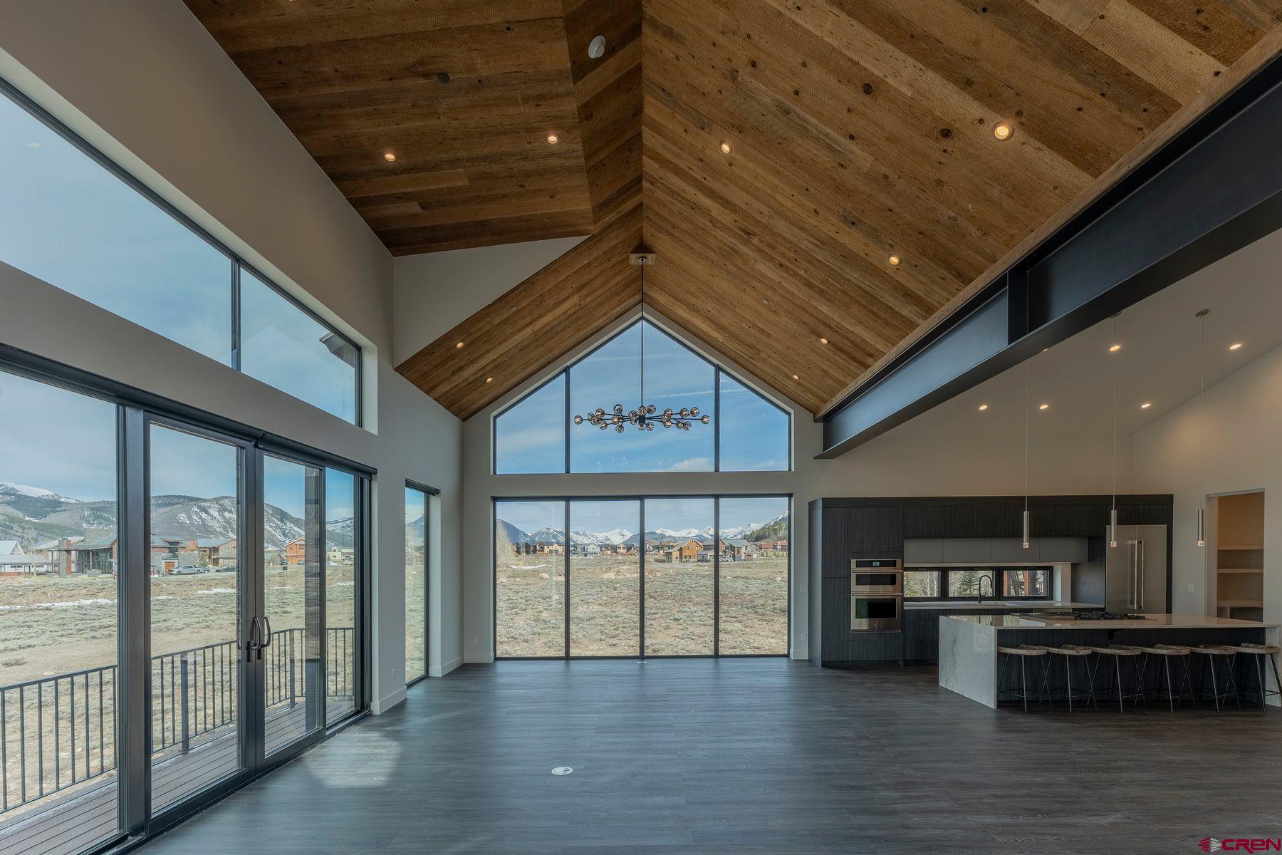 Welcome to your dream home in Crested Butte's sought-after Buckhorn Ranch, a new build by one of Vail Valley's best, Kasia Karska Design. Nestled on a .17-acre lot backing to open space, this modern mountain retreat combines exceptional design and functionality while offering unobstructed views spanning from Whetstone Mountain to Mt. Crested Butte. The thoughtfully crafted 4,223 square foot home features an open-concept layout perfect for hosting and daily living. The main level boasts a custom kitchen with a large center island, walk-in pantry, and a seamless flow into the expansive living and dining areas. Picture windows frame this space with breathtaking mountain views, and a unique indoor/outdoor fireplace enhances the cozy ambiance. Enjoy outdoor living with two upper decks, ideal for entertaining or simply relaxing. The primary bedroom is also on the main level, offering an en-suite bath, abundant natural light, and stunning vistas. The lower level mirrors the upper floor's square footage, a rare find in this neighborhood. It includes a second living room with a beautiful fireplace, three additional bedrooms with en-suite baths, and a convenient half bath for visitors. A patio extends the living space downstairs, providing more options for outdoor enjoyment. The 780-square-foot garage offers ample storage for vehicles, bikes, and skis. This spectacular home showcases unparalleled craftsmanship, blending reclaimed wood, stone, and striking Shou Sugi Ban siding for a unique and elegant exterior. With its stunning forever views, spacious layout, high-end finishes, and prime location in Buckhorn Ranch, this property is a one-of-a-kind residence within this vibrant community. **Furniture in photos has been virtually staged.**