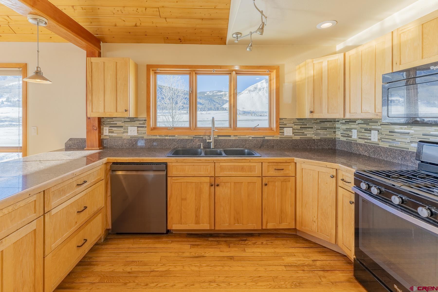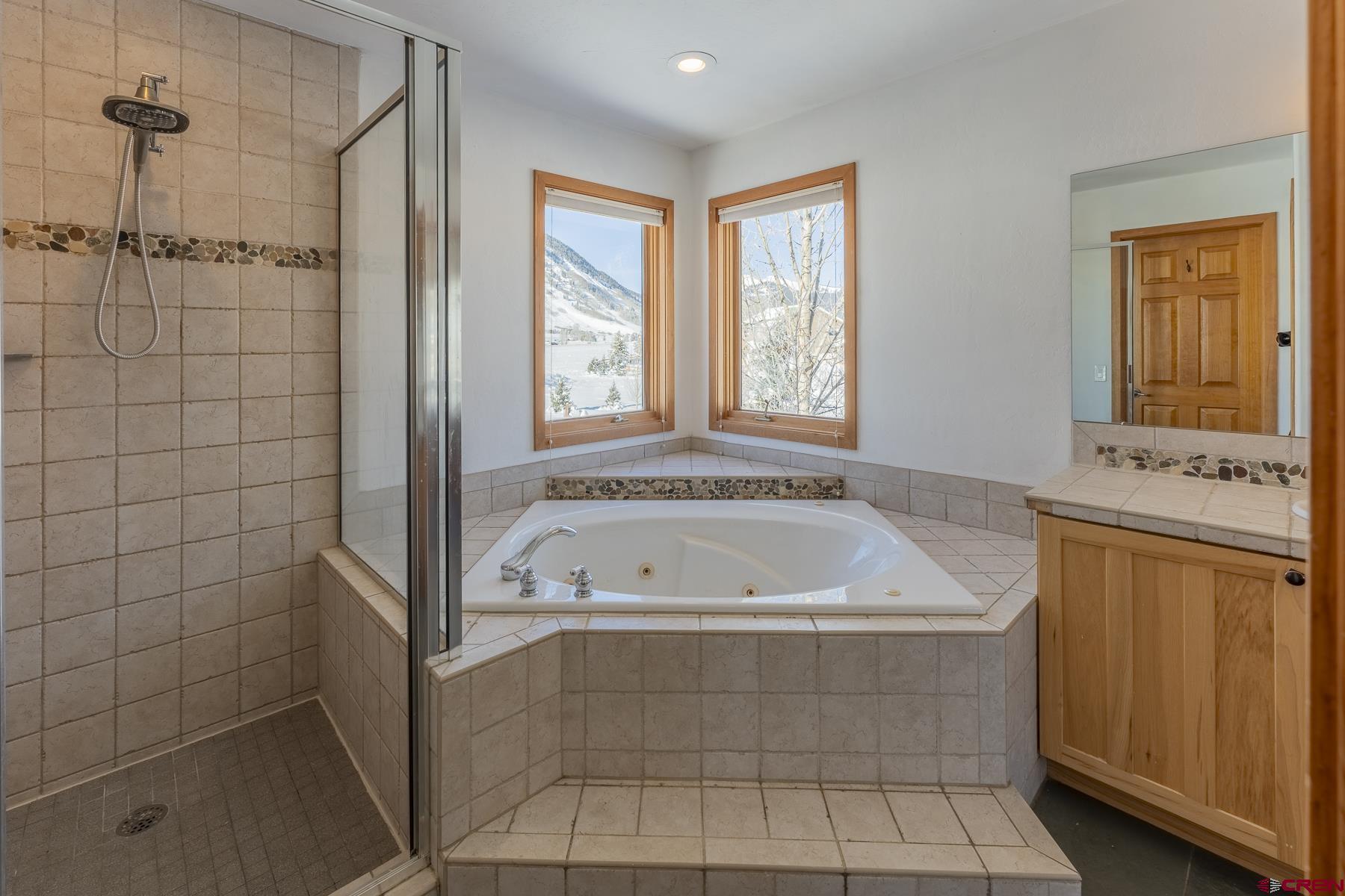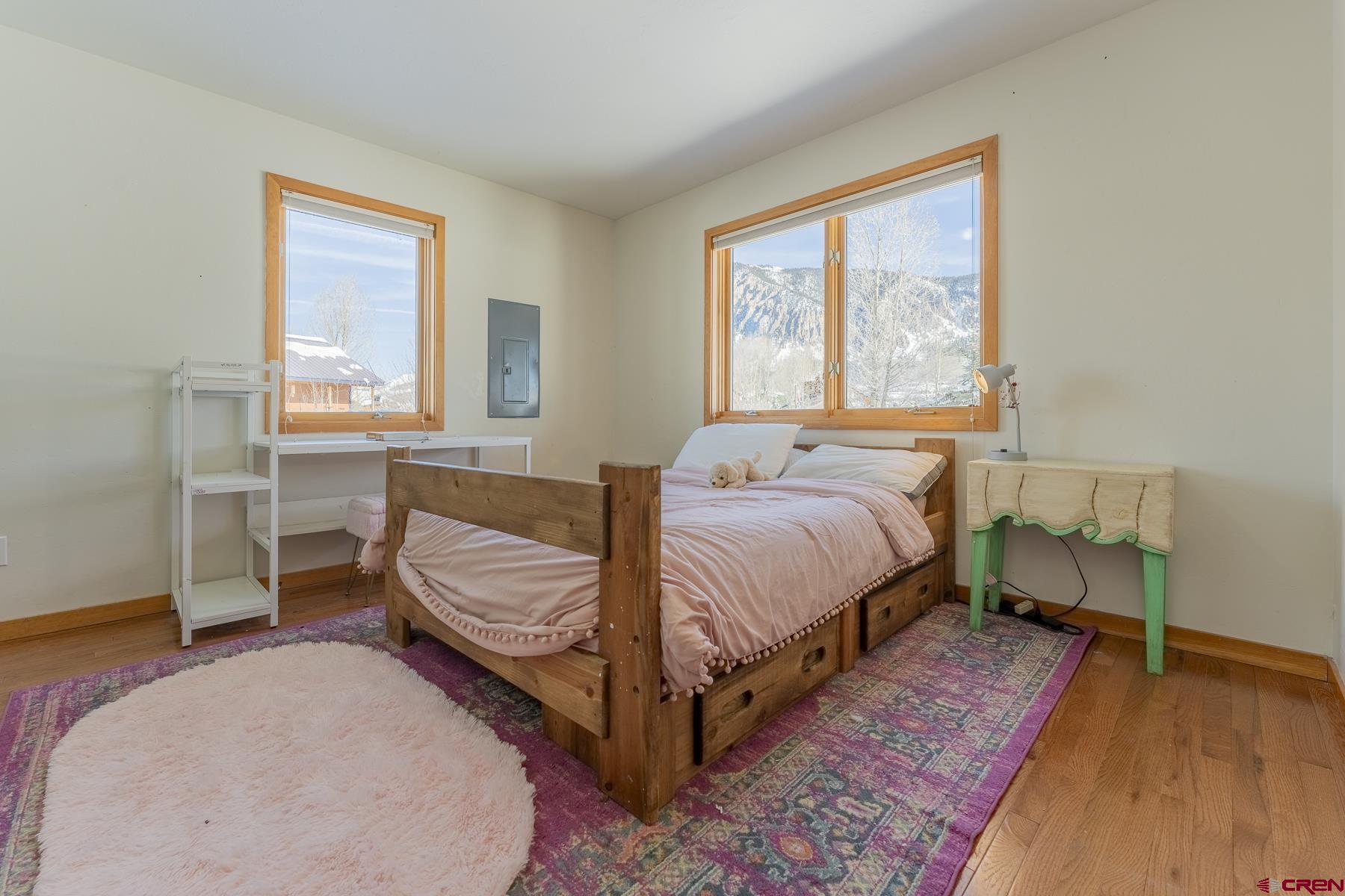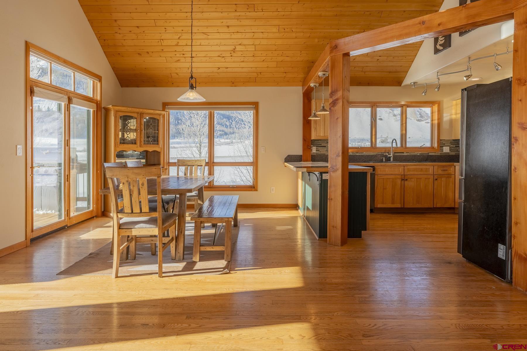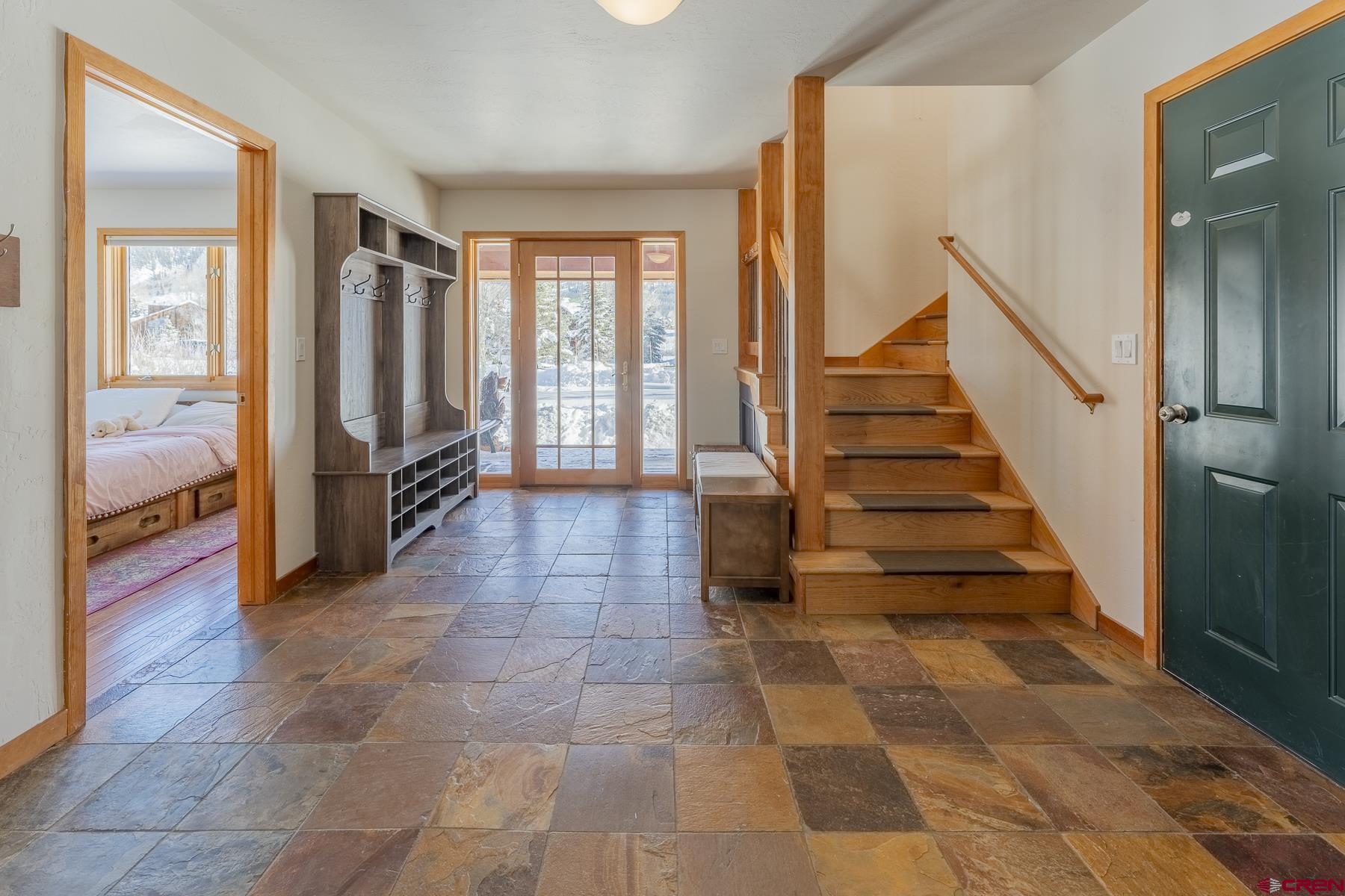Welcome to 5 Slate View Lane, a truly exceptional property in an ideal location! Nestled on nearly a full acre of land, this home is just minutes from Downtown Crested Butte and borders HOA open space, providing direct access to a trail into town during the summer and groomed Nordic skiing in the winter—making it effectively ski-in/ski-out for Nordic enthusiasts. Homeowners also have private fishing rights on the Slate River! This well-built residence offers 2,320 square feet of living space, featuring four bedrooms, two and a half bathrooms, and a one-car garage. The charming covered front porch welcomes you and offers stunning views of Mt. Crested Butte. Upon entering, you will be greeted by a spacious entry/mudroom, providing ample room for your gear. Ascend to the main living area, where you will appreciate the abundant natural light streaming through the south-facing windows, showcasing breathtaking views of Whetstone Mountain. The living room is both spacious and inviting, with an open floor plan that allows for versatile layout options. Adjacent to the living room, the dining area flows seamlessly into the kitchen, which is well-equipped with updated appliances, a large peninsula for additional seating, and generous counter space. A pantry and ample cabinet storage enhance the kitchen's functionality. The half bathroom and laundry area are conveniently located near the living space and the entrance to the primary suite. The primary bedroom boasts spectacular mountain views to the north and west, along with an en-suite bathroom featuring a large vanity, soaking tub, and shower. A spacious walk-in closet completes this luxurious retreat. On the lower level, the sellers have completely renovated the first floor, updating the flooring in the two original bedrooms and redesigning the bathroom to include a double vanity, large tub, and shower. They also converted the second garage bay into a fourth bedroom and office, both of which have access to the newly constructed patio on the south side of the house. This outdoor space features a new hot tub with stunning views and a large storage shed. The property has been enhanced with significant landscaping, new fencing, and additional exterior improvements. The home is equipped with all-new electrical systems and is fully smart home compatible. This rare find in Crested Butte combines an unbeatable location, breathtaking views, and exceptional amenities, offering tremendous value for anyone seeking a new mountain home. Don’t miss the opportunity to make this stunning property your own!