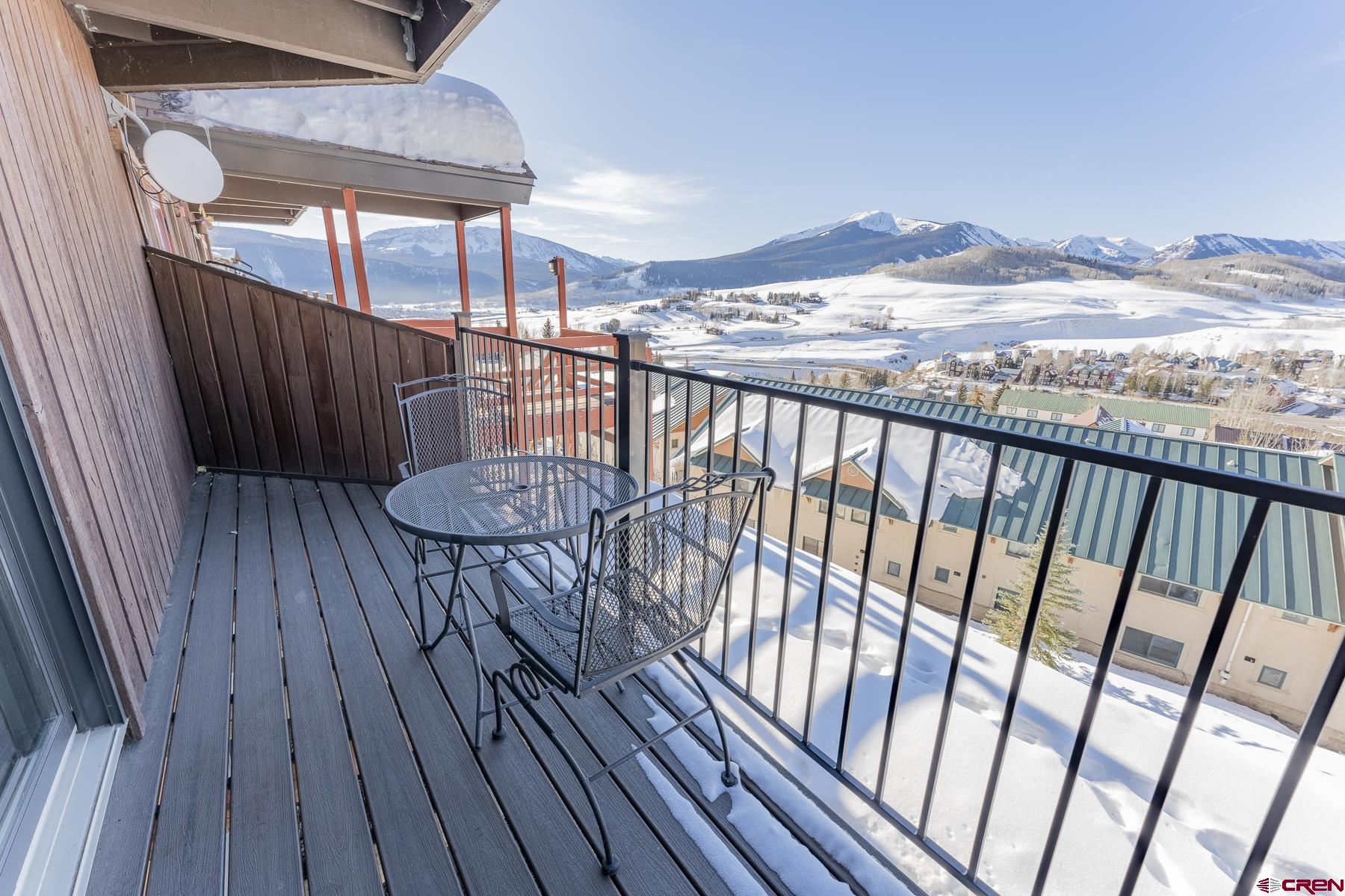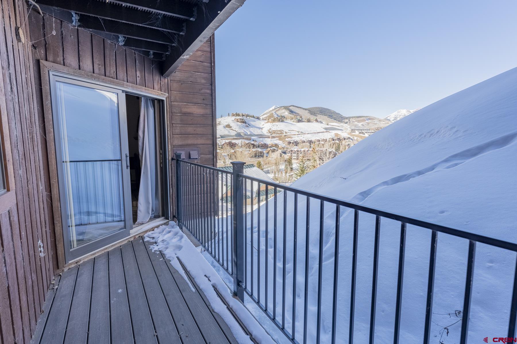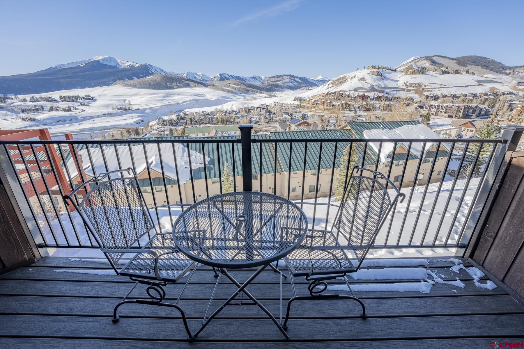 Welcome to Peachtree in Paradise, a delightful one-bedroom, one-bathroom slopeside condo, located in Timberline Condos-A Building. This fully furnished gem offers ski and bike-in/out access along with breathtaking panoramic valley views, making it a prime spot on Mount Crested Butte. The large open-concept kitchen provides ample space for meal preparation and flows seamlessly into the spacious living area. A standout feature of this condo is the updated, fully functional wood-burning fireplace, one of the few renovated and usable fireplaces in Mt. Crested Butte condos. The living room is equipped with a fold-out American Leather Brand sleeper sofa with a gel insert, providing additional sleeping accommodations for guests. Two newly replaced sliding glass doors lead to spacious, covered TREX decks. Start your mornings with coffee on the first private deck and end your evenings unwinding on the second deck, soaking in the stunning views and peaceful surroundings. Snow enthusiasts will appreciate the large private locker conveniently located just outside the front door, perfect for storing gear. The A Building also features a special entrance foyer, which creates a welcoming airlock between the outdoors and the comfort of your condo. Whether you plan to make it your home or use it as a fully furnished short-term rental, this condo offers incredible value and flexibility. Schedule your showing today to discover your mountain escape.