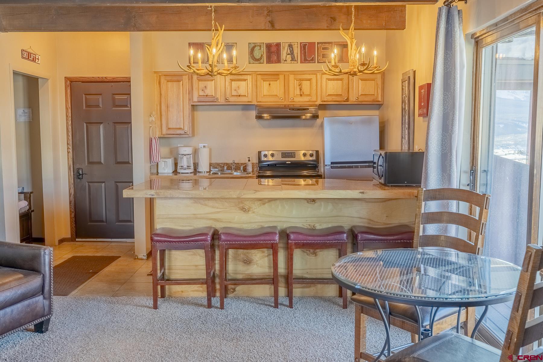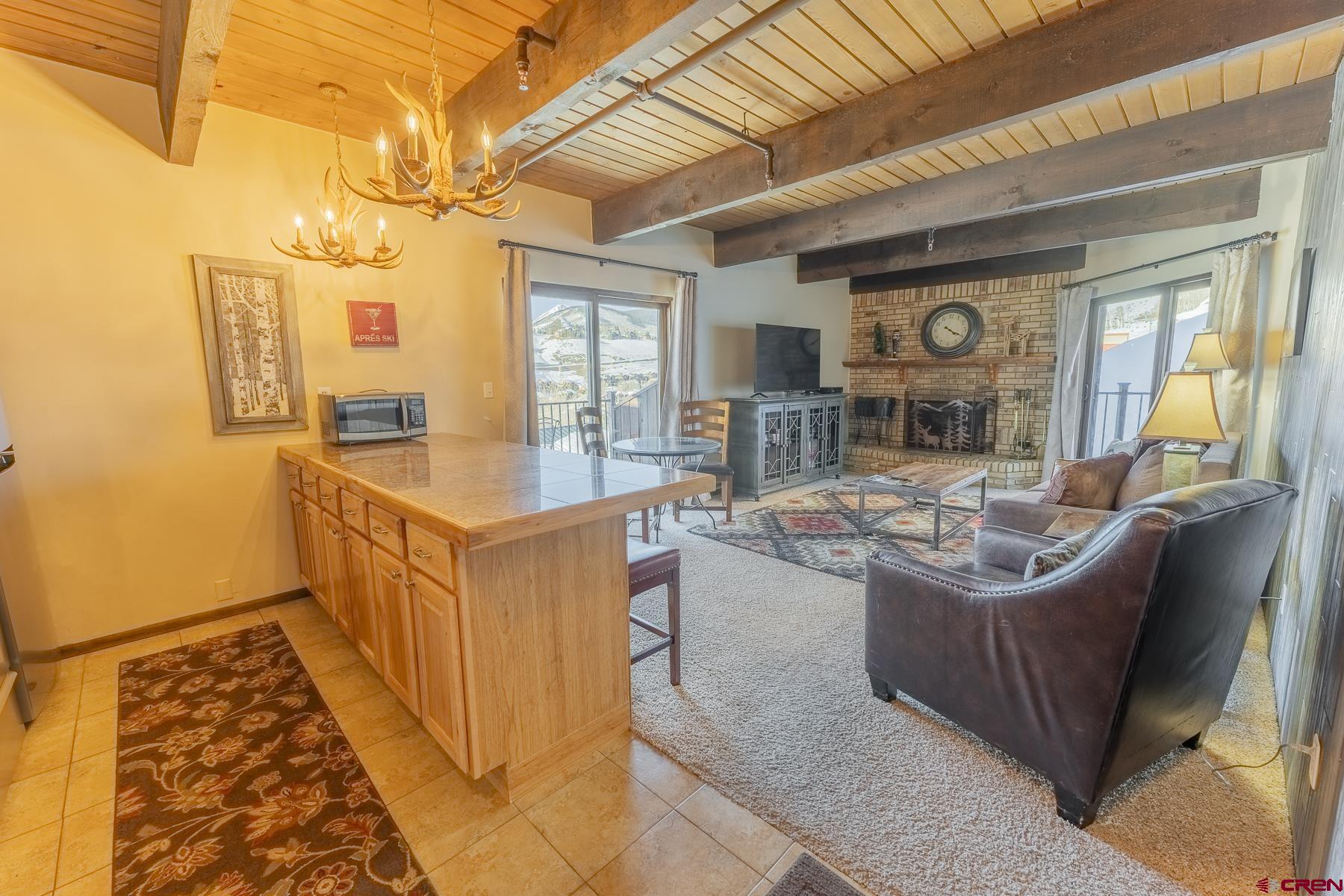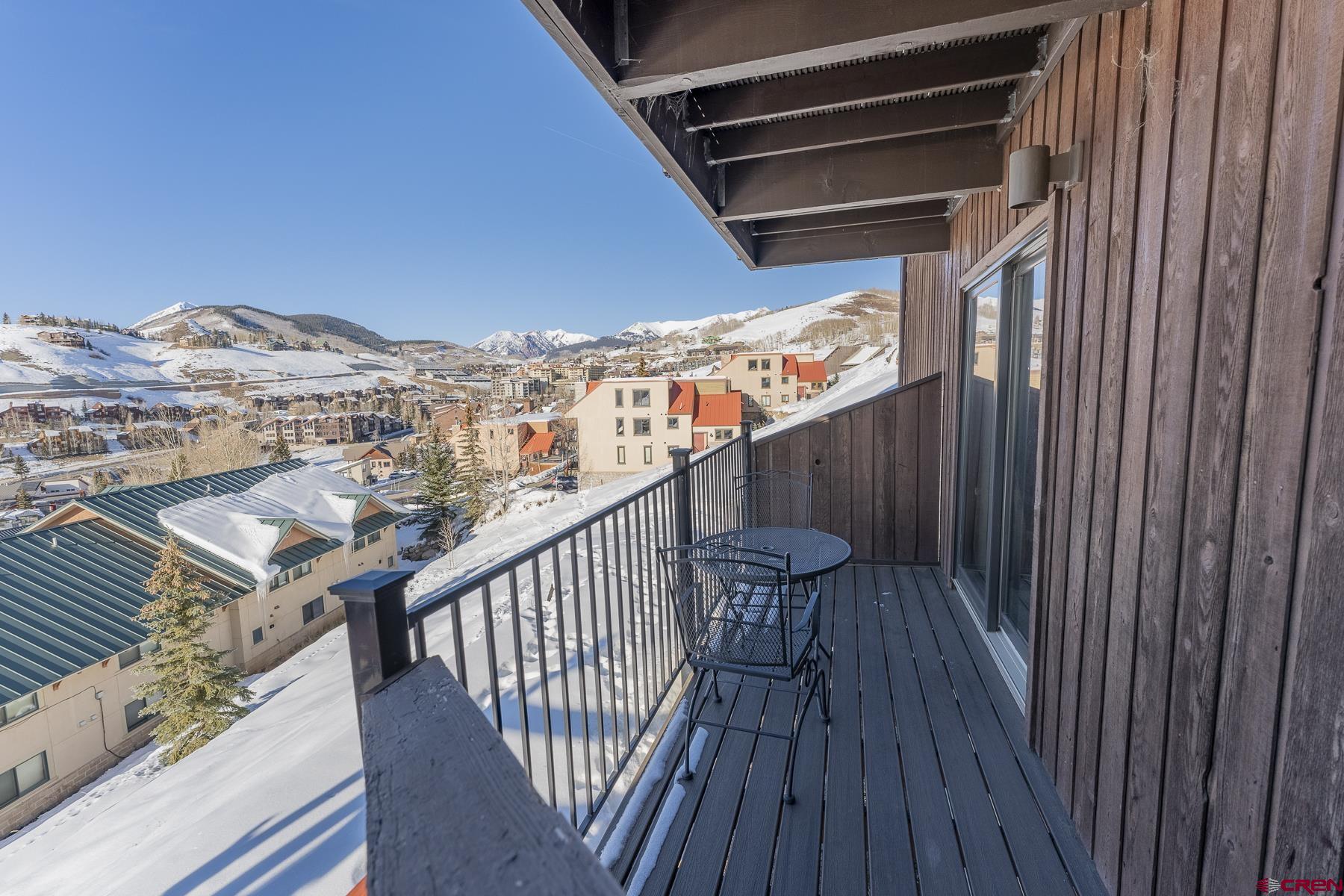 Welcome to Peachtree in Paradise, a delightful one-bedroom, one-bathroom slopeside condo, located in Timberline Condos-A Building. This fully furnished gem offers ski and bike-in/out access along with breathtaking panoramic valley views, making it a prime spot on Mount Crested Butte. The large open-concept kitchen provides ample space for meal preparation and flows seamlessly into the spacious living area. A standout feature of this condo is the updated, fully functional wood-burning fireplace, one of the few renovated and usable fireplaces in Mt. Crested Butte condos. The living room is equipped with a fold-out American Leather Brand sleeper sofa with a gel insert, providing additional sleeping accommodations for guests. Two newly replaced sliding glass doors lead to spacious, covered TREX decks. Start your mornings with coffee on the first private deck and end your evenings unwinding on the second deck, soaking in the stunning views and peaceful surroundings. Snow enthusiasts will appreciate the large private locker conveniently located just outside the front door, perfect for storing gear. The A Building also features a special entrance foyer, which creates a welcoming airlock between the outdoors and the comfort of your condo. Whether you plan to make it your home or use it as a fully furnished short-term rental, this condo offers incredible value and flexibility. Schedule your showing today to discover your mountain escape.