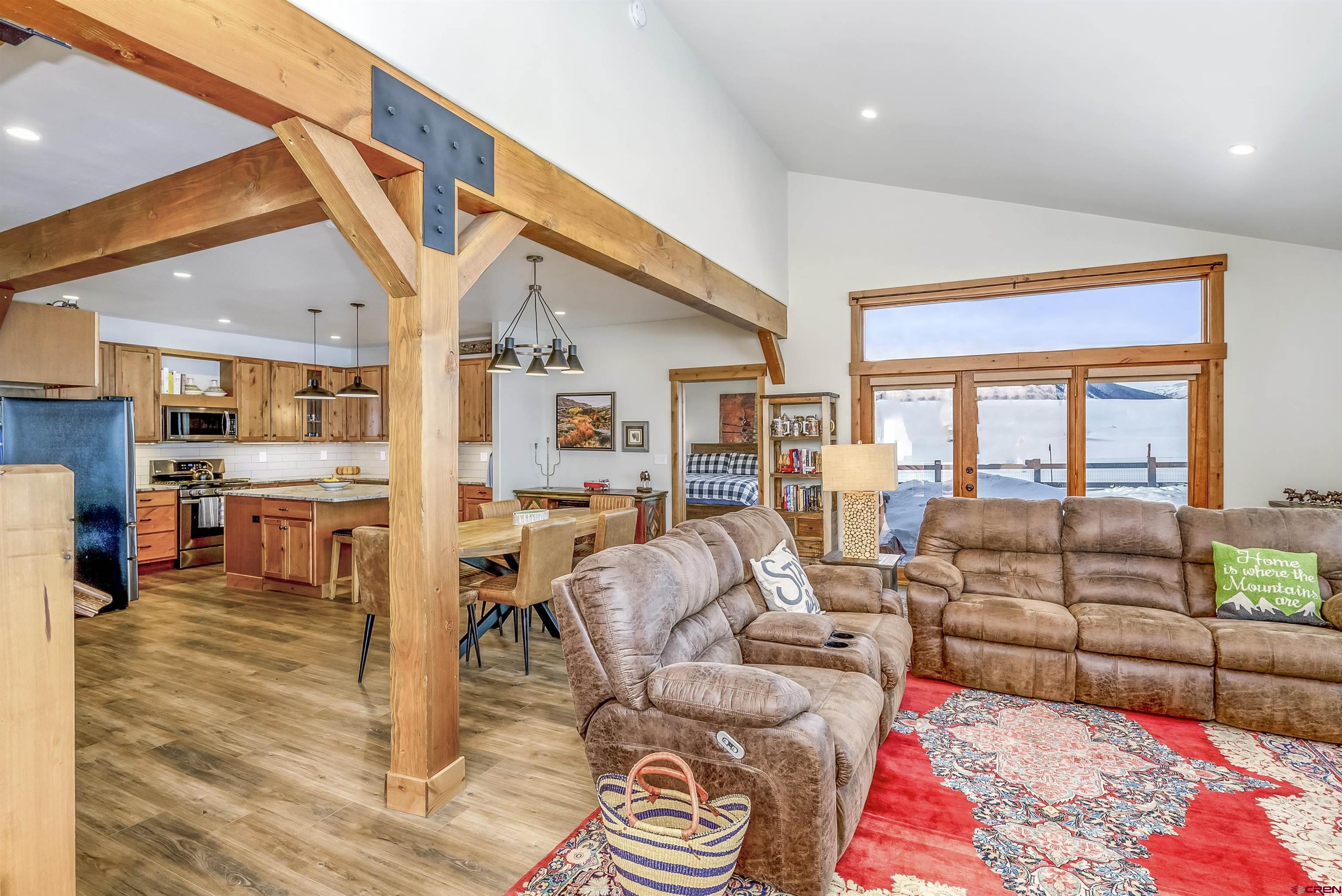 Located in Buckhorn Ranch, one of the most popular neighborhoods in Crested Butte, this home sits on the edge of the subdivision and has terrific up-valley mountain views! Enjoy many upgrades such as landscaped and fenced back yard with sprinkler system, patio and outdoor hot tub. The main level of the home has a very open floor plan with vaulted ceilings in the great room, well appointed appliances in the adjoining kitchen with lots of cabinetry and a large pantry. The main level primary bedroom has lots of windows and a walk-in closet. Upstairs has a nice loft space, two spacious bedrooms and a full bath, all with great views as well. Plenty of parking with a nicely paved driveway and a large 2-car garage with lots of storage. The private Buckhorn Ranch community is 1 mile away from the Crested Butte Country Club/golf course, and just a few minute drive to the Town of Crested Butte and the ski slopes at the resort. National Forest access is right around the corner with some of the areas most legendary hiking and biking trails. Offered mostly furnished.
