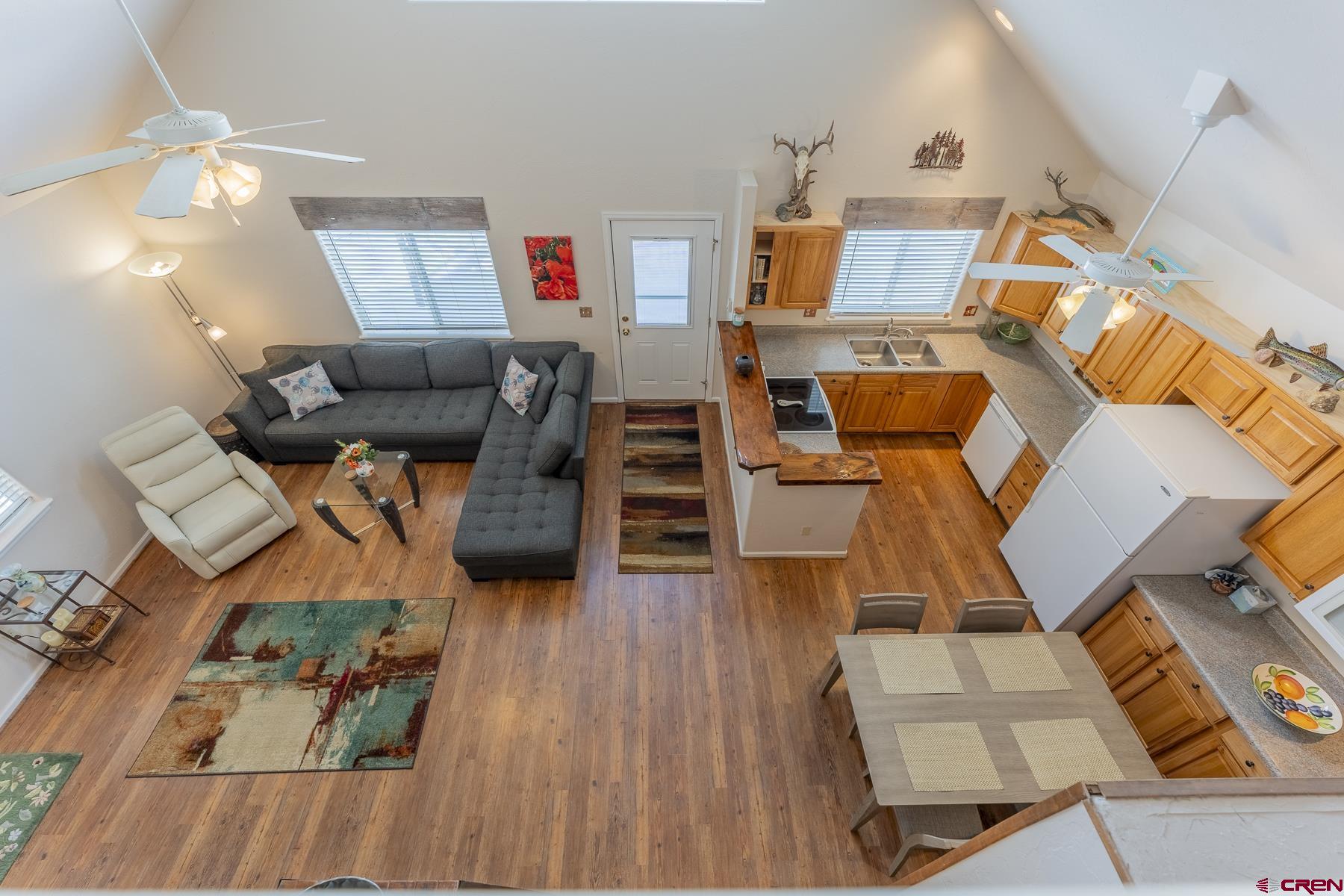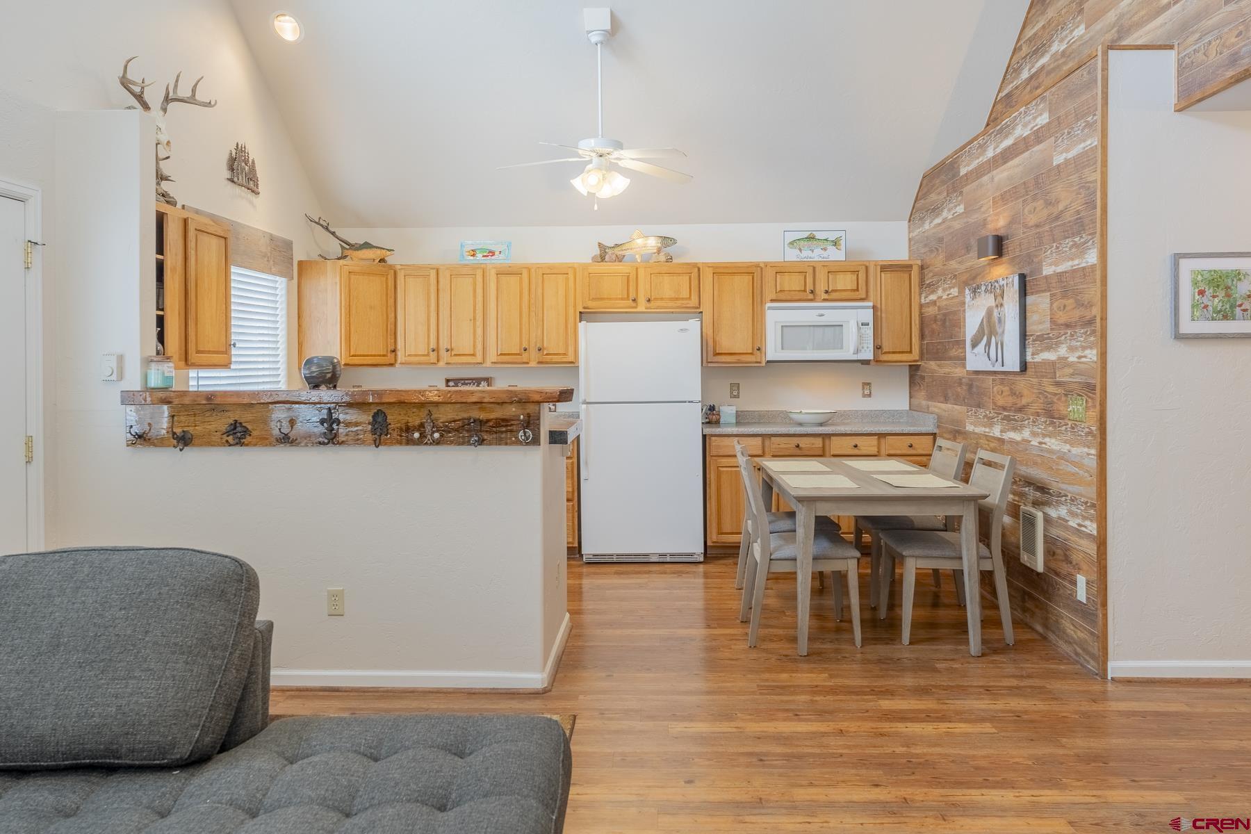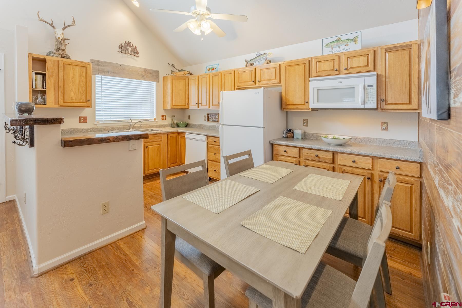 Located in the sought-after Wildwood development, this 3 bedroom, 3 bath home offers a peaceful retreat just minutes from downtown Gunnison. Nestled in a private location within the community, the property is surrounded by mature trees and well-manicured grounds, with a seasonal stream flowing from May through October that provides a soothing backdrop. The thoughtfully designed layout features vaulted ceilings and an open floor plan that maximizes natural light and creates a warm, spacious feel. In addition to the open-concept kitchen, living, and dining area, the main level includes the primary bedroom suite, along with a second bedroom and bath, making single-level living an option. Upstairs, you’ll find an oversized bedroom or recreational space with its own private bath, offering flexibility for guests, hobbies, or a home office. Additional amenities include a 1-car attached garage, off-street parking, and reasonable HOA dues. Combining convenience, thoughtful design, and a tranquil setting, this home is a perfect fit for those seeking both comfort and connection to nature at a competitive price!