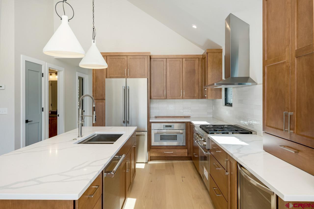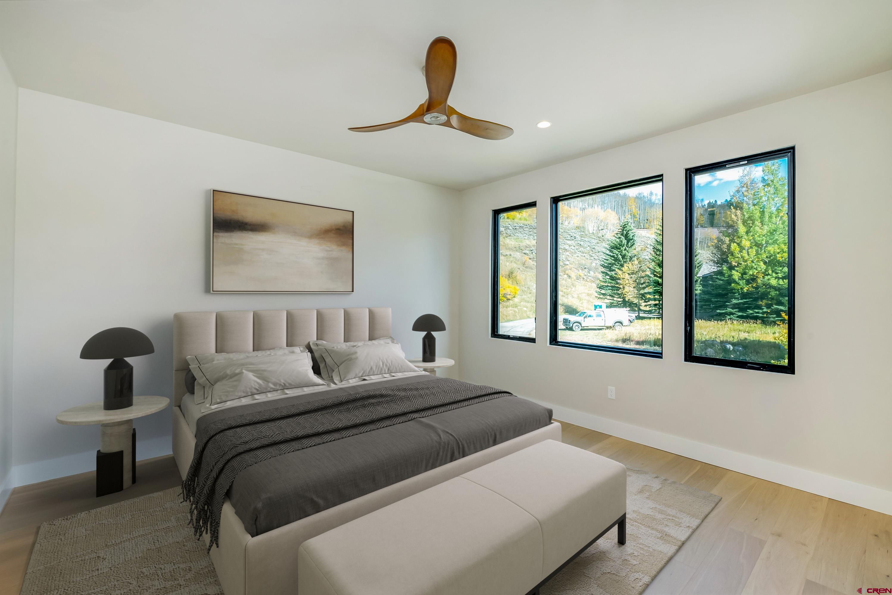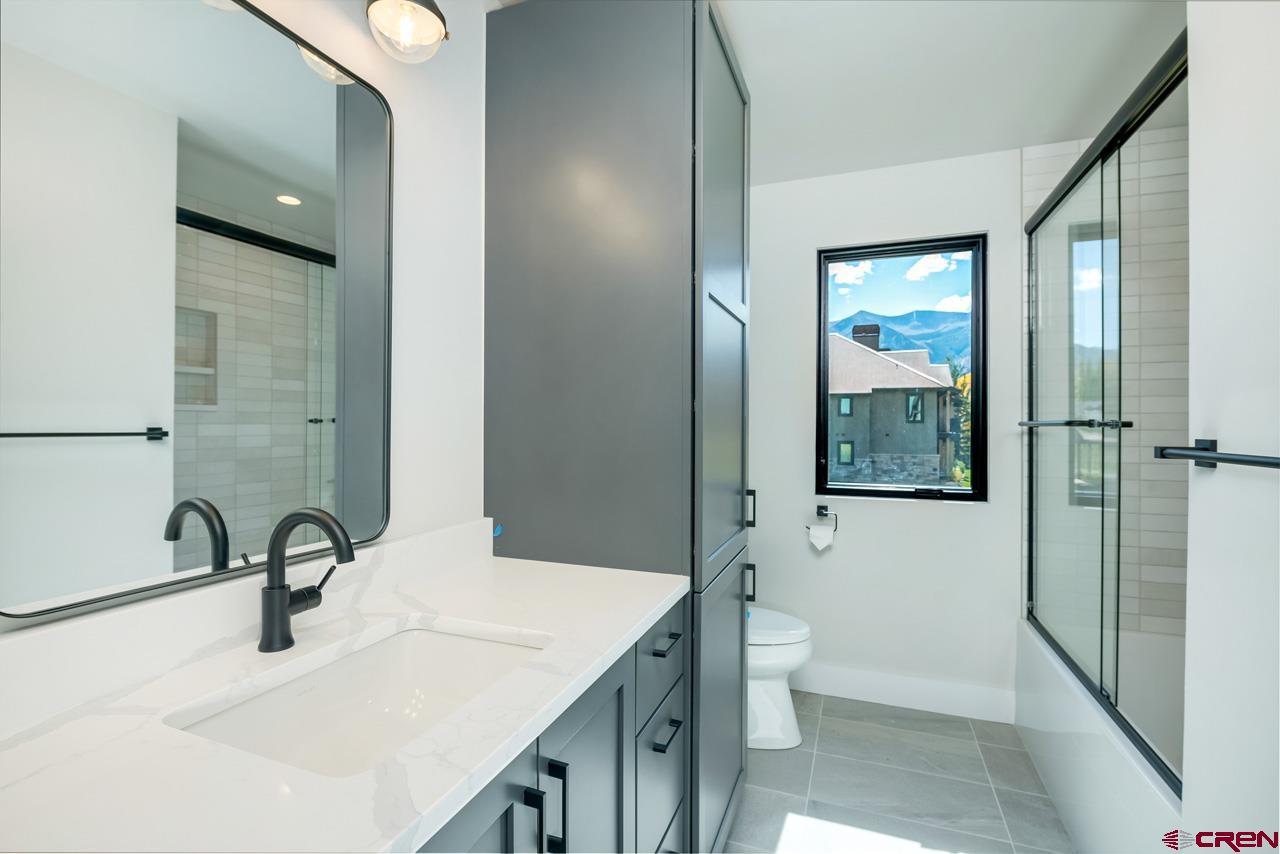 Skyland’s latest luxury offering, this newly completed, 2nd generation, end-unit townhouse at Golf Villas enjoys many upgrades from our successful 1st generation design-builds including Pella windows, the addition of a full bath and closet to the top floor creating a complete bedroom suite, an improved living room fireplace design and upgrades to all of the interior finishes including designer lighting and hardware, wide plank oak flooring, beautiful tops and cabinets and a full Thermador kitchen appliance package with an Anzio hood. Other features include in-floor radiant heat, a covered front porch and two covered decks on the west side of the home. Located across the street from the Club at Crested Butte and facing west, you’ll enjoy beautiful sunsets, awesome mountain views and the convenience of living near the amenity-rich Club, the National Forest Service trails and fishing and boating on Lake Grant. Unit 41 is approximately 2,290 SF with four bedrooms, four and one-half baths and an oversized 313 SF, 1-car heated garage. The home is virtually staged.