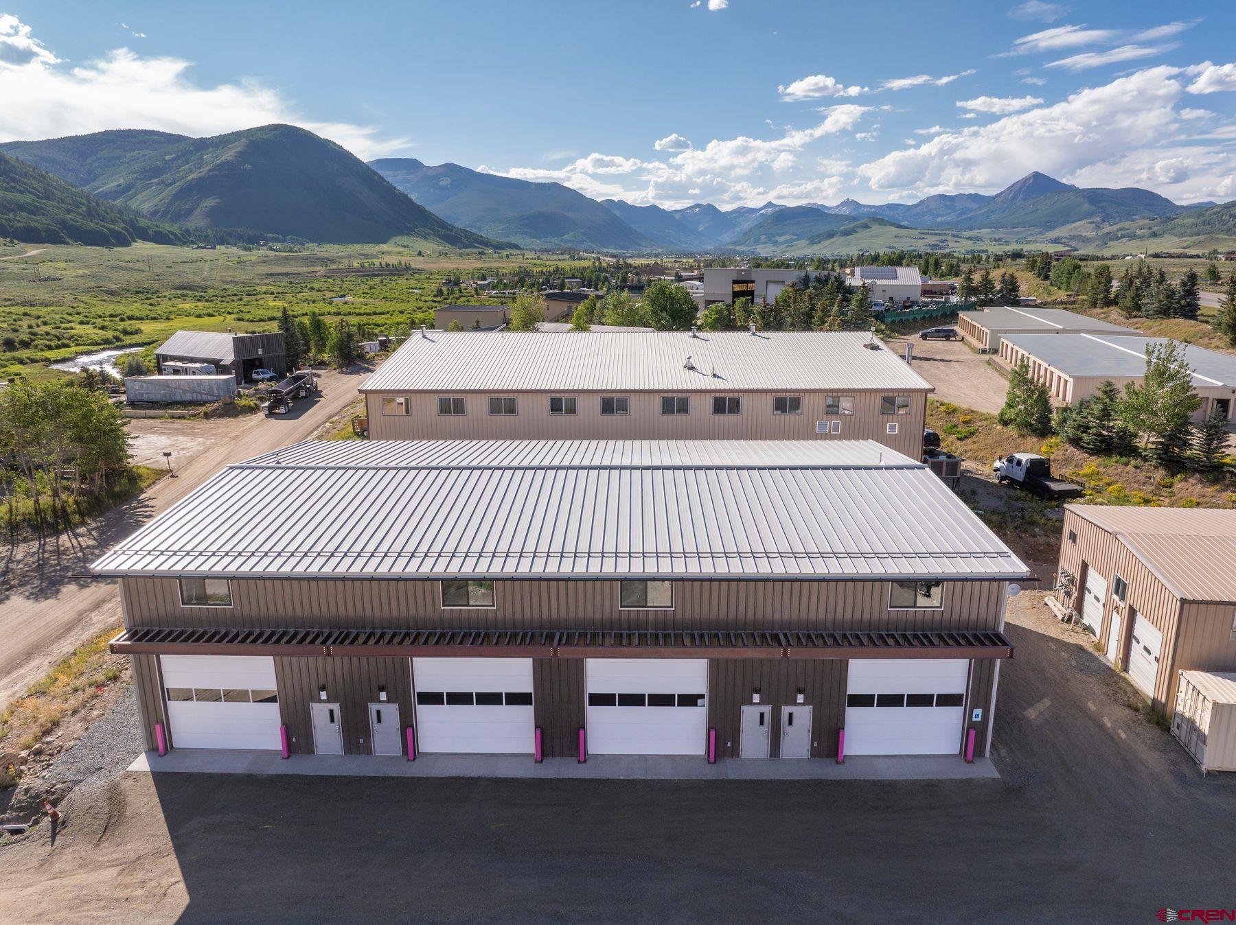 Brand New Commercial Unit in Riverland – Versatile Shop & Office Space Discover a premium commercial opportunity in this two-story, 2,679 square foot unit in a modern fourplex, just 5 minutes from the Town of Crested Butte. With easy access to the RTA bus route, this property offers both functionality and convenience for a wide range of commercial uses—whether you need a workshop, office, storage space, or toy barn. Constructed with steel exterior panels and R-28 insulation for superior energy efficiency, Steel stairs and in-floor heating throughout for year-round comfort, this flexible space is perfect for trades, creatives, small businesses, storage, or a combination of shop and office space. The lower level (1,391 SF) offers a main entrance door and large overhead door, concrete flooring, a commercial-grade floor drain, a half bath with storage, plus is wired for a 200-amp electrical panel. The upper level (1,288 SF) is finished and ideal for offices or additional workspace with a second bathroom and concrete floors. Located in Riverland Industrial Park, this unit offers flexible commercial zoning With modern construction, efficient design, and a prime location, this is a rare opportunity to secure a high-quality commercial space in the Crested Butte area. Schedule a tour today and make this space your own!
