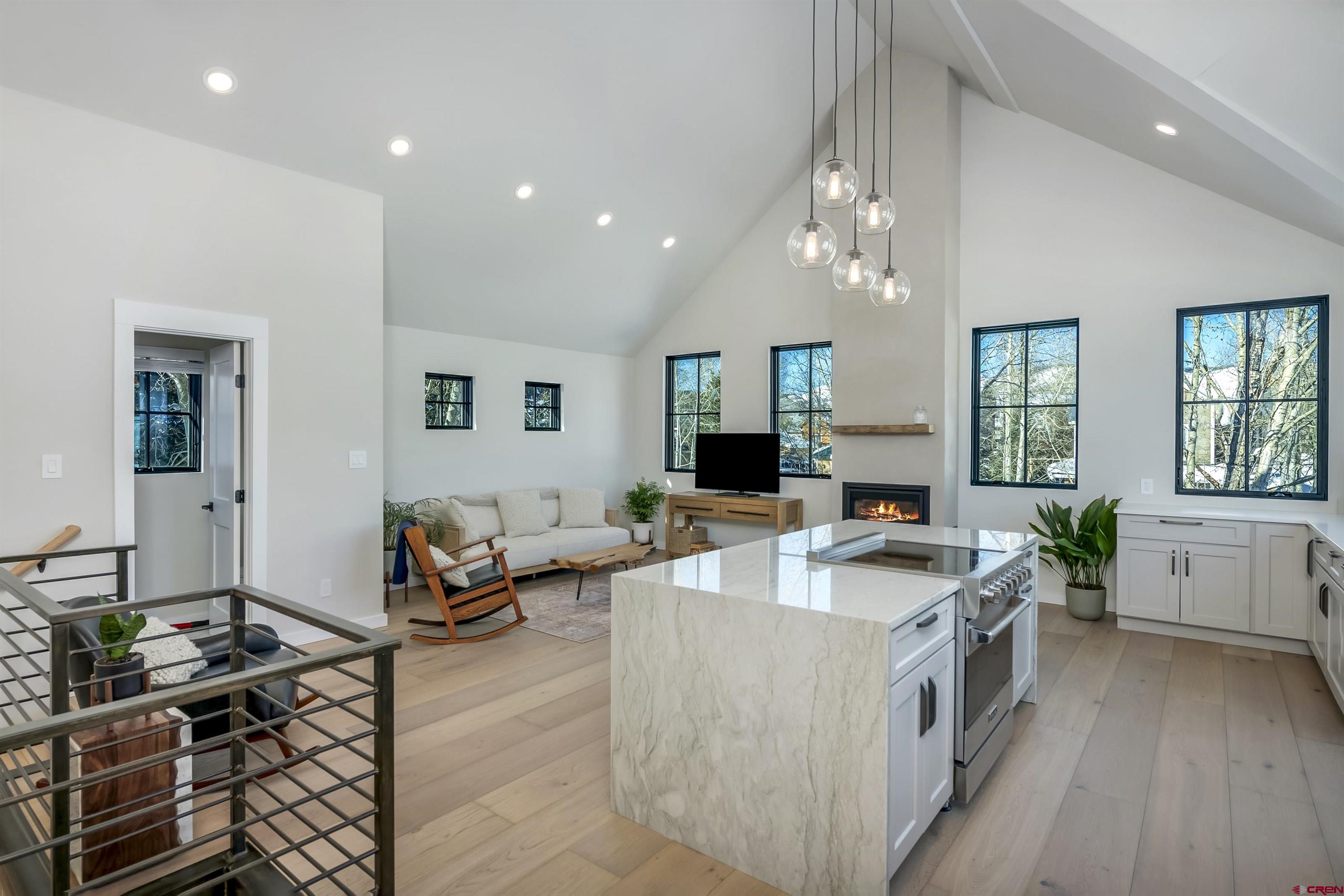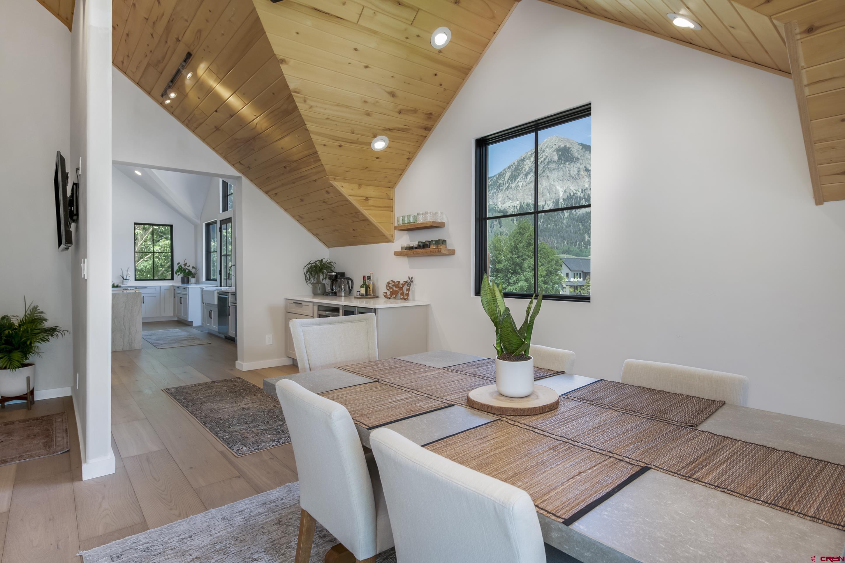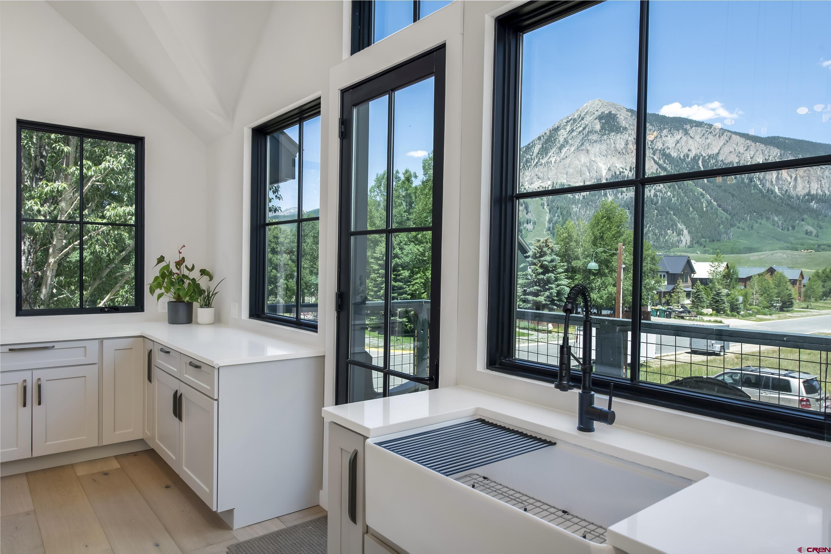 Discover timeless elegance in this mountain modern masterpiece that has just been transformed to perfection and captures breathtaking unobstructed and forever protected views of Crested Butte Mountain from a spacious corner lot with hard to find in-town privacy. The magazine-worthy main living spaces are highlighted by towering vaulted ceilings and expansive windows that cannot be replicated in a new build today in the Town of Crested Butte, flooding the home with natural light and creating the feeling of living in a spectacular treehouse. An extensive remodel was meticulously designed and crafted by the founder of Coalesce Design + Fabrication, known for creating distinct elements in some of the most stunning homes in the country. The thoughtful details can be found throughout the home from intricate custom steel puzzle-piece flooring transitions to custom steel railings, stair risers and more. The renovations go well beyond the beautiful surfaces of the quartzite waterfall island, wide-plank white oak hardwood flooring and the American Clay fireplace to include all new major systems from mechanical and plumbing with comfortable and efficient in-floor radiant heating to new Marvin windows and new metal roof, to truly live like a brand new home. The main level includes a generous primary suite with private entrance and covered deck, two additional guest bedrooms with a shared bath, a laundry room with custom accents and large utility sink and abundant storage closets. The upper level offers a comfortable great room with a gas fireplace open to a well-appointed gourmet kitchen with ample workspace and luxury appliances that extends into a beverage station / bar and dining area. A fourth bedroom with a private full bathroom and an adjacent den, perfect for the kids or relaxing with a movie, including a pull-out sofa, offer additional accommodations for family or guests, while multiple decks extend the living space outdoors with spectacular mountain vistas in every direction. In addition to the main home, a sizable detached heated accessory building provides two large bays with ample storage for vehicles and adventure gear to enjoy a true Crested Butte lifestyle, while a finished flex space above offers room for an office, home gym, overflow guest space and more. Situated in a quiet neighborhood among homes of distinction, this is a location that those that truly know Crested Butte long for. Steps to winter and summer trail access and the award winning community school, away from the hustle and bustle of town, yet only a 5-block stroll or short pedal to Elk Avenue dining, shopping and nightlife, while the Center for the Arts, Town Park, Rainbow Park, the Rec path, and the Town Shuttle bus stop to the resort are all less than 3-blocks away. This truly exceptional offering is turn-key and fully furnished, ready to be enjoyed as a primary, secondary or income producing investment property. Don’t miss this opportunity to own a timeless legacy property in the Town of Crested Butte!