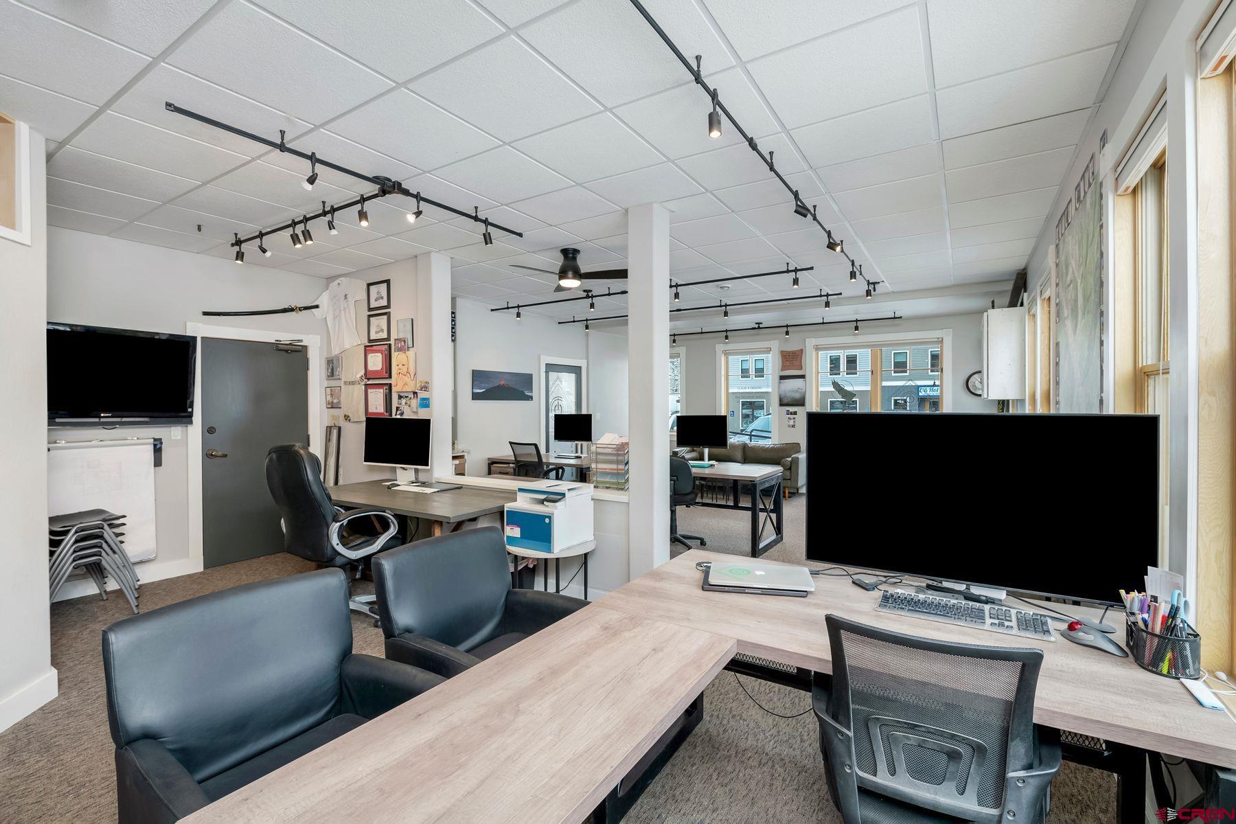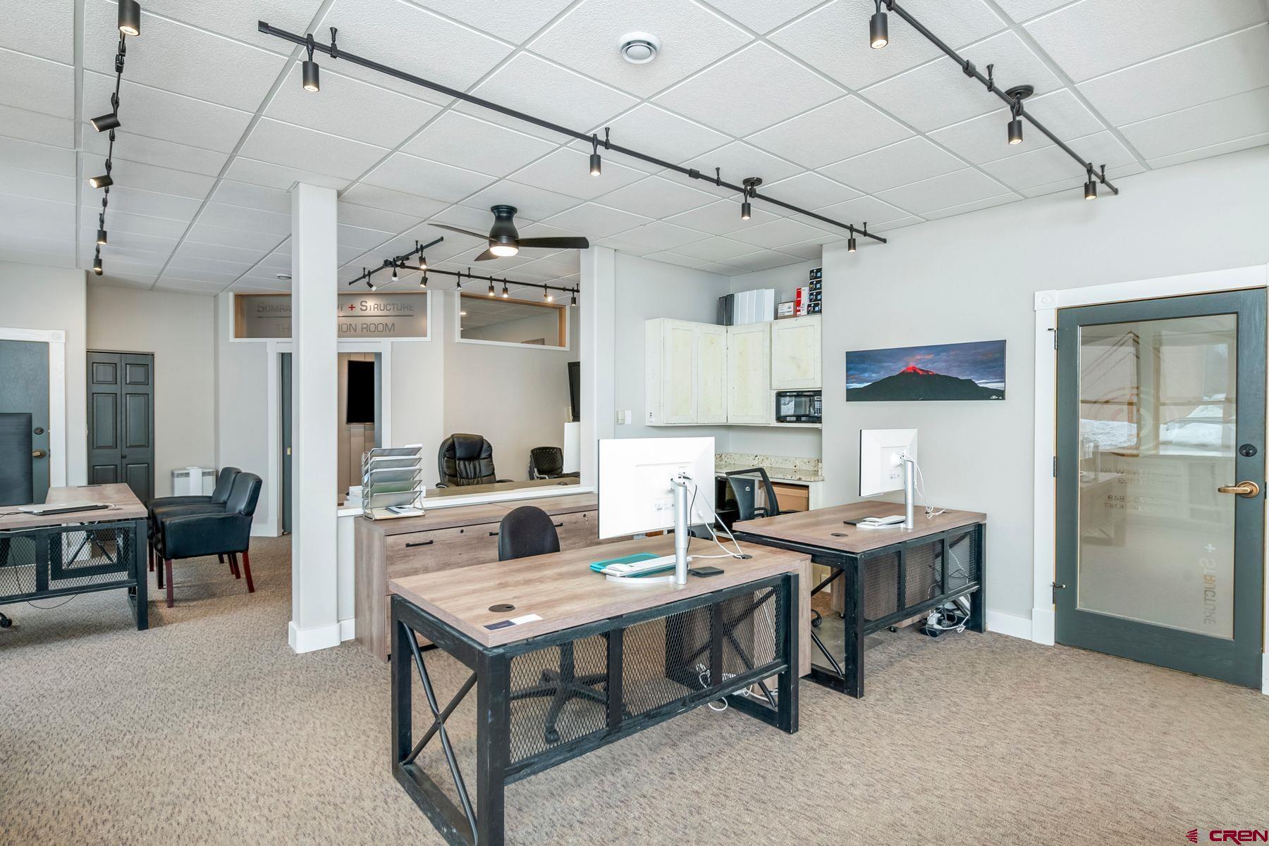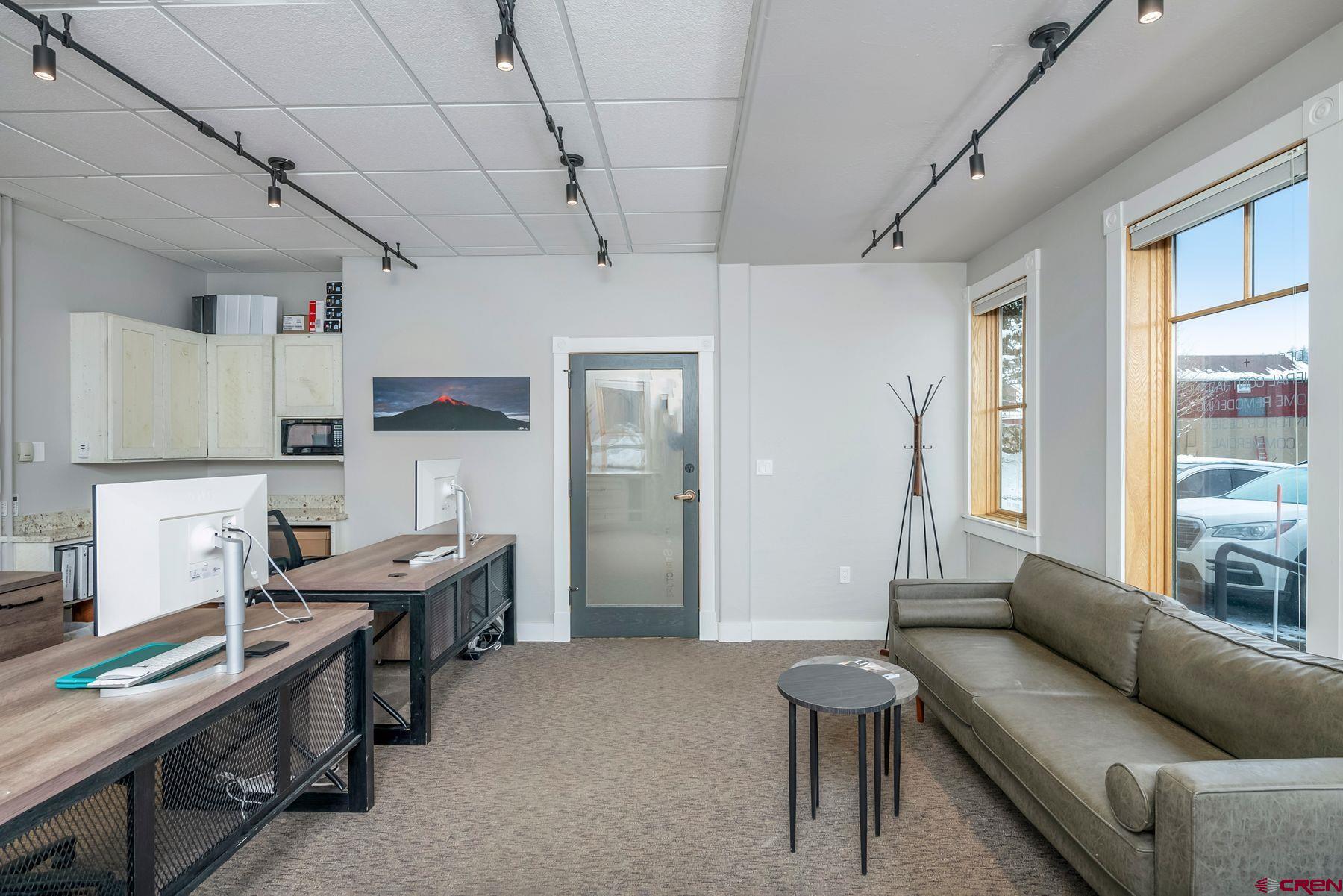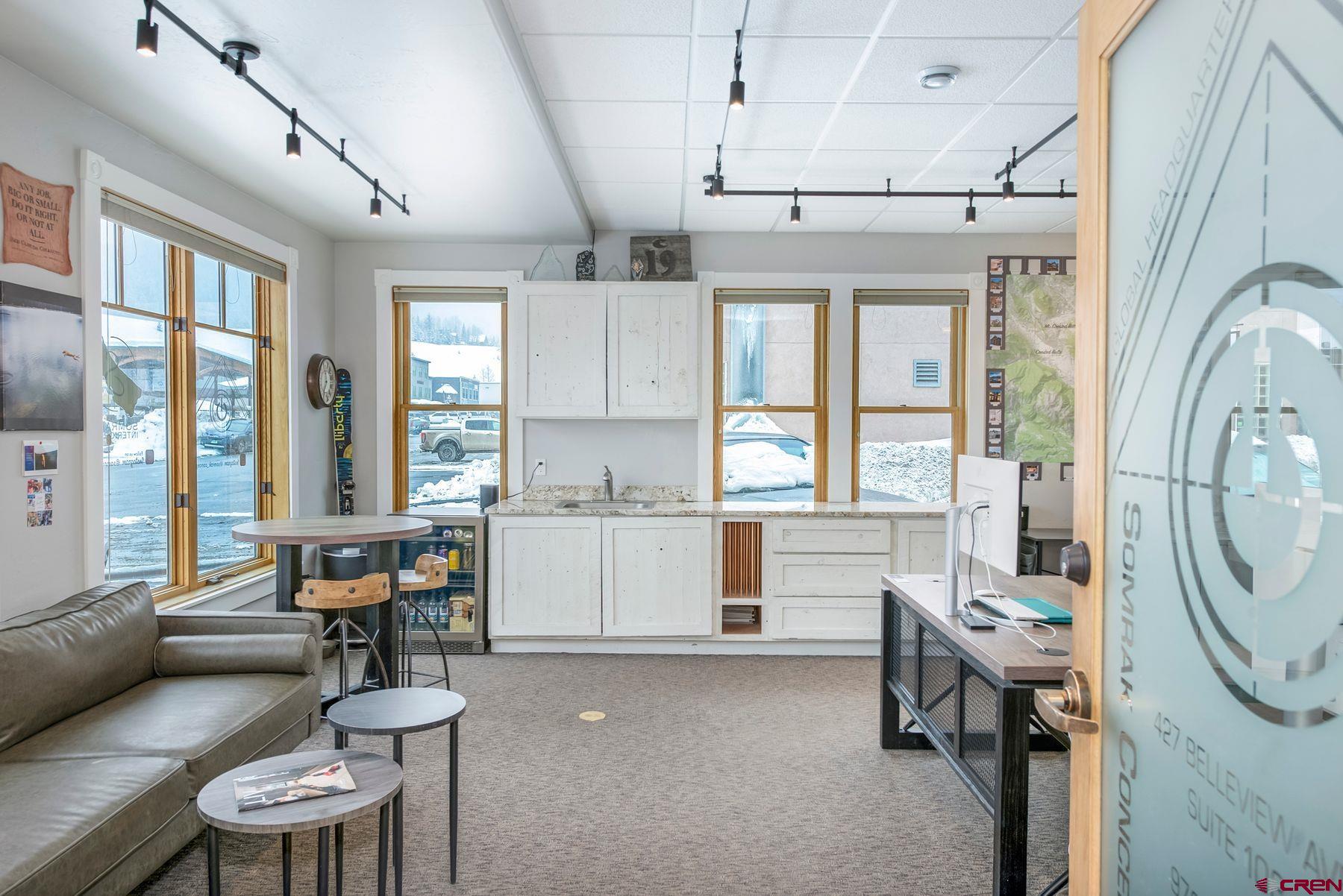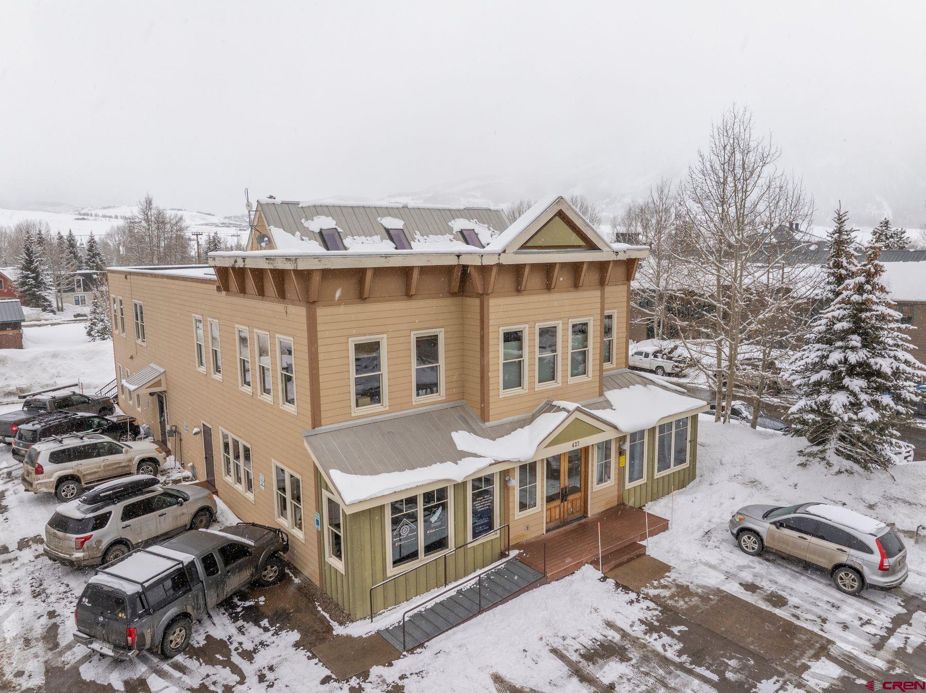 This large office space is conveniently located near Clarks Market, the Mountain Express bus stop, and is a very quick walk to everything on Elk Avenue! Amazing, light-filled space in the West Elk Center, one of town's newer commercial buildings. Units 103 and 104 are conveniently located on the first floor, Belleview entrance, on the corner of the building and on the sunny side of the street with plenty of large windows to make it light and bright. Competitively priced per square foot. This is a special opportunity in the commercial real estate market in the town of Crested Butte. Sellers upgraded paint, lighting and cabinetry when they purchased the unit in 2020. Unit includes two off street parking spaces. Common areas include large waiting areas on both the 1st and 2nd floors, elevator, ADA accessibility and several bathrooms including one with a shower. This offering has its own sink and large countertop areas for your mini kitchen needs. Built in storage, and a spacious back room currently being used as a showroom for a designer. Currently set up with five desk spaces, a nice living area and multi-purpose areas for a busy custom home design-build business. The possibilities await a new buyer to make this fantastic and sought-after space their own.