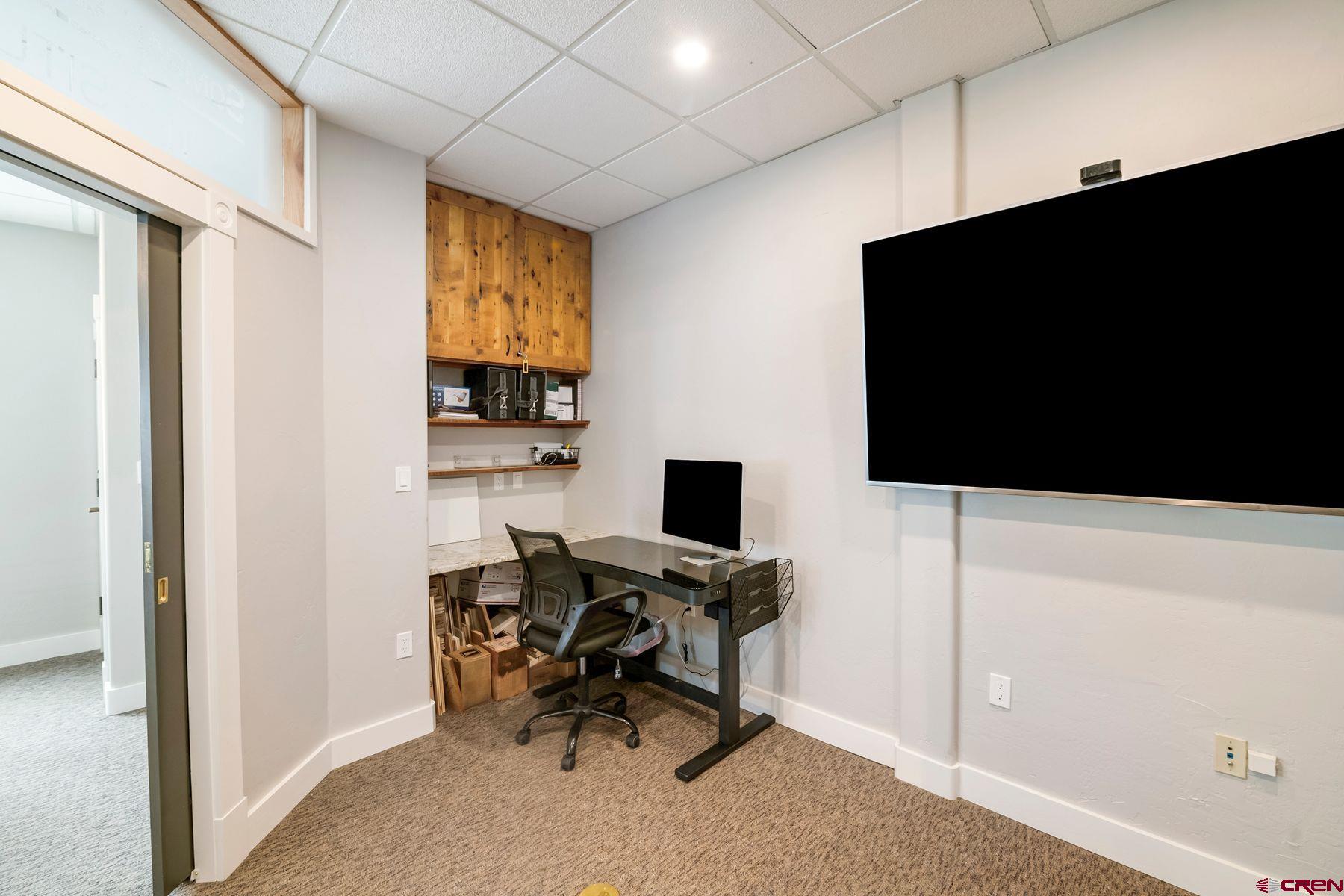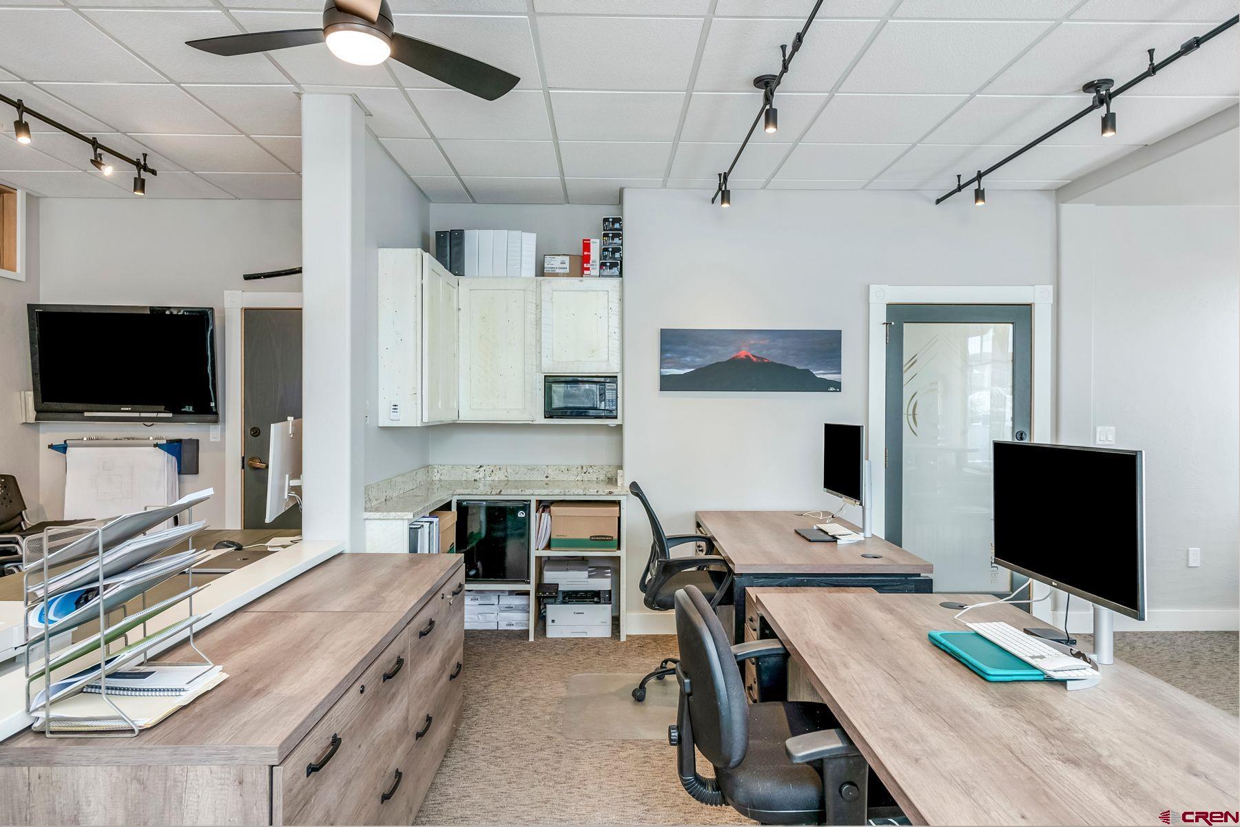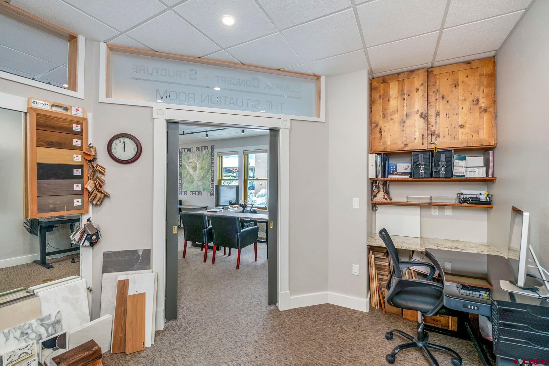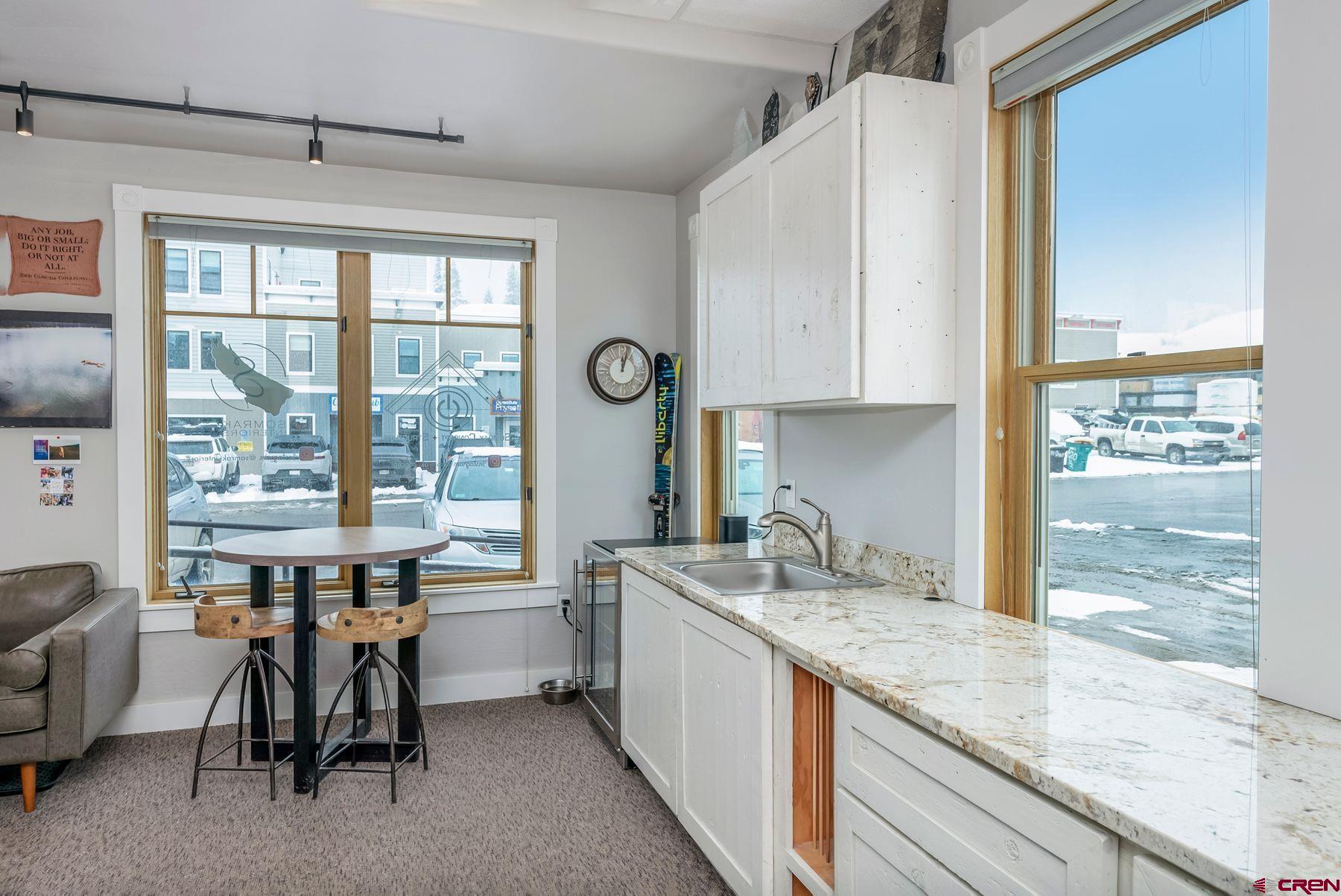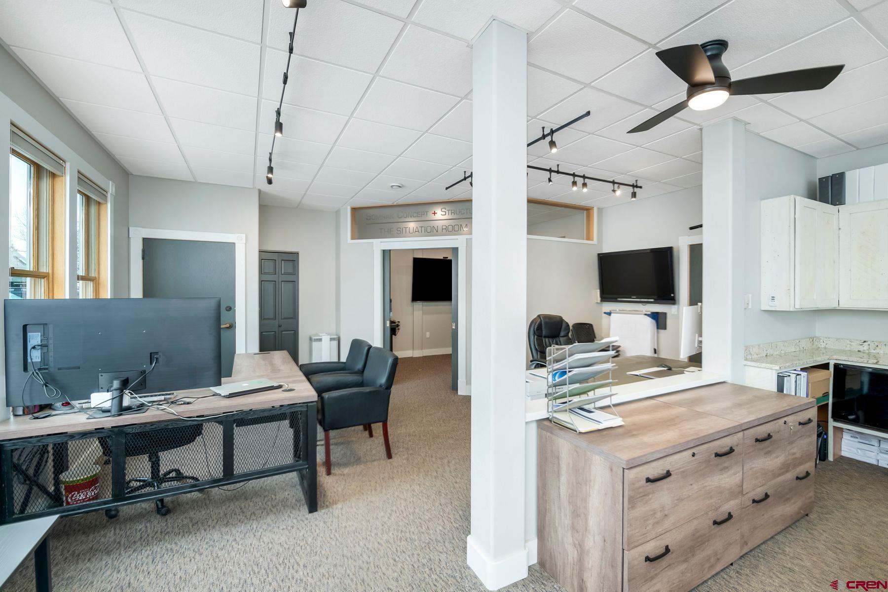 This large office space is conveniently located near Clarks Market, the Mountain Express bus stop, and is a very quick walk to everything on Elk Avenue! Amazing, light-filled space in the West Elk Center, one of town's newer commercial buildings. Units 103 and 104 are conveniently located on the first floor, Belleview entrance, on the corner of the building and on the sunny side of the street with plenty of large windows to make it light and bright. Competitively priced per square foot. This is a special opportunity in the commercial real estate market in the town of Crested Butte. Sellers upgraded paint, lighting and cabinetry when they purchased the unit in 2020. Unit includes two off street parking spaces. Common areas include large waiting areas on both the 1st and 2nd floors, elevator, ADA accessibility and several bathrooms including one with a shower. This offering has its own sink and large countertop areas for your mini kitchen needs. Built in storage, and a spacious back room currently being used as a showroom for a designer. Currently set up with five desk spaces, a nice living area and multi-purpose areas for a busy custom home design-build business. The possibilities await a new buyer to make this fantastic and sought-after space their own.