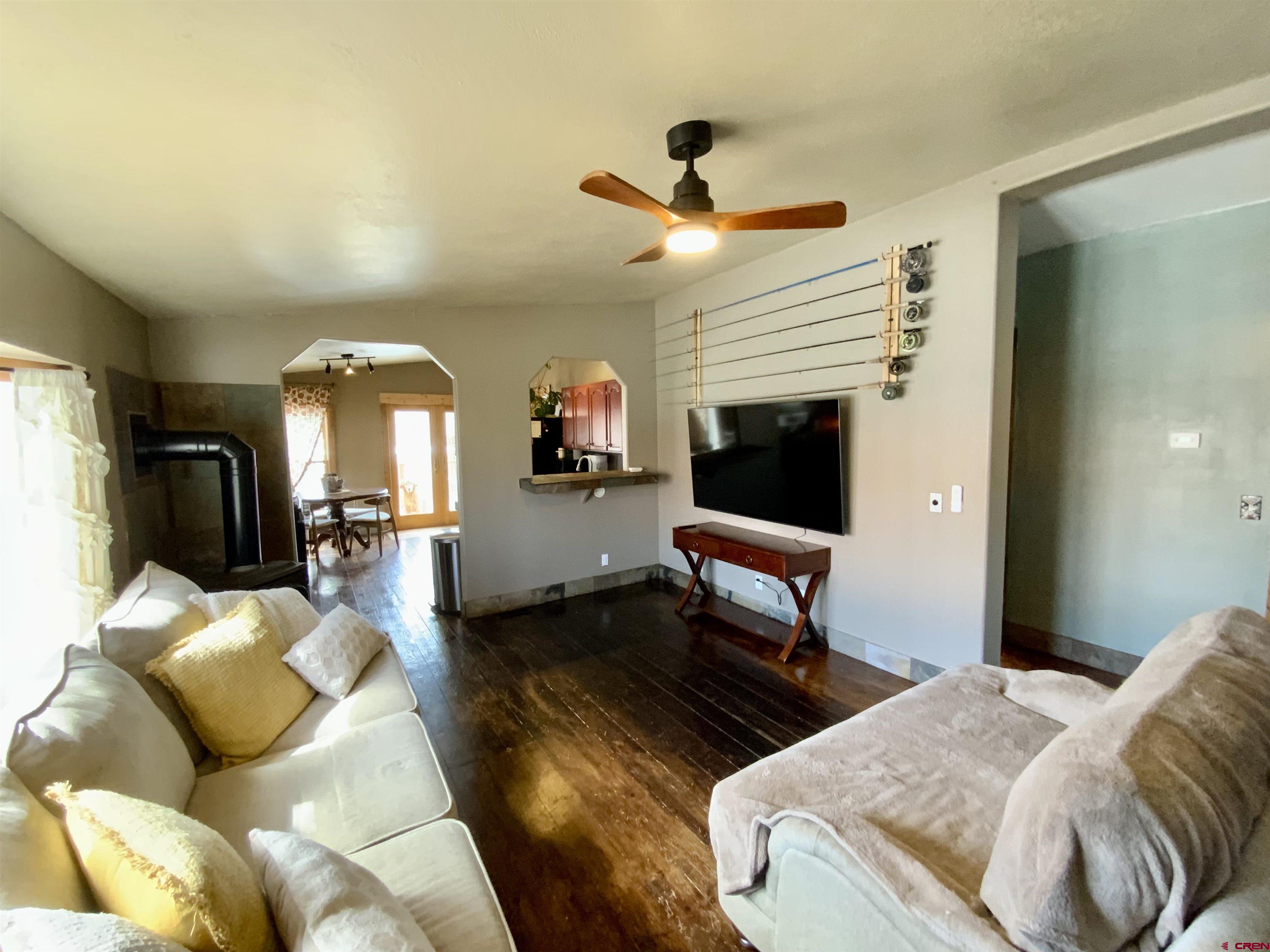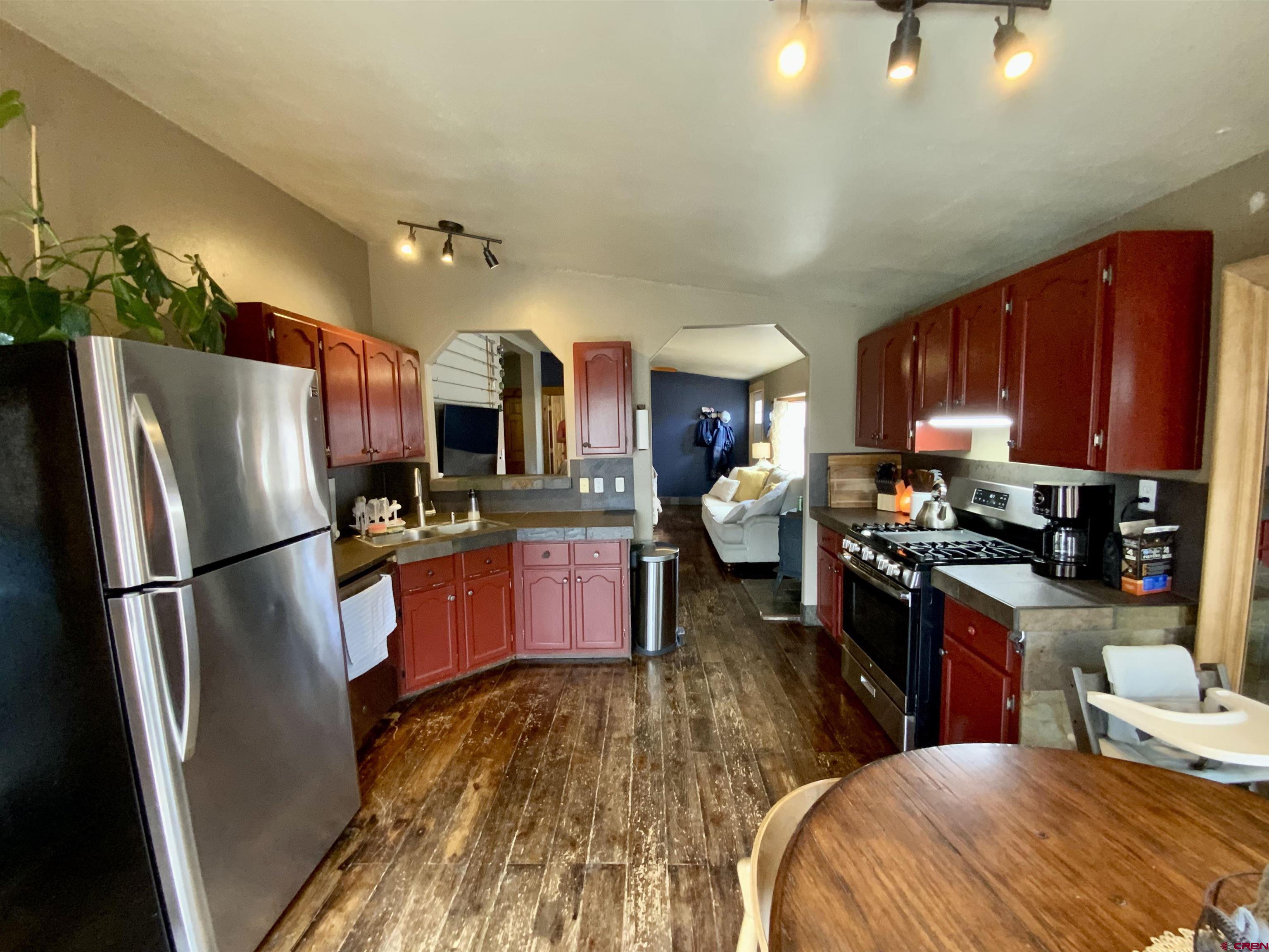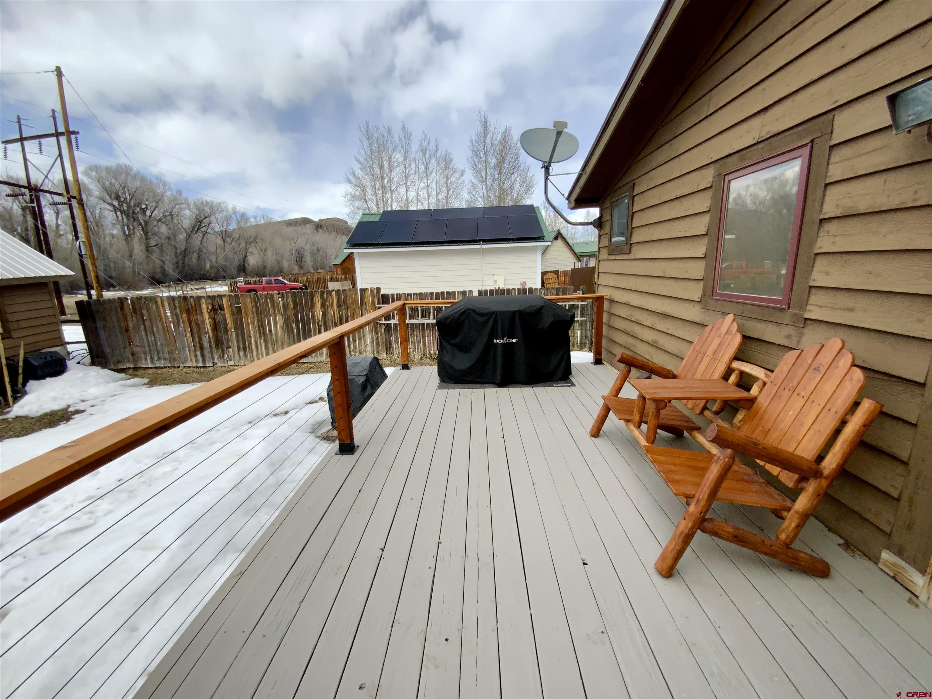 This is a great ranch level home with a huge fenced backyard with a custom built chicken coop and storage shed! 3 Bedroom / 2 Bath house close to the schools and the Van Tuyl trail system. Property features hardwood/pine floors with tile accents, open living room and updated kitchen. In the summer evenings enjoy the private back deck and barbecuing with views of the Palisade Cliffs. Out front and back is mature landscaping. Convenient in-town location with access to the grocery store, hardware store & restaurants.