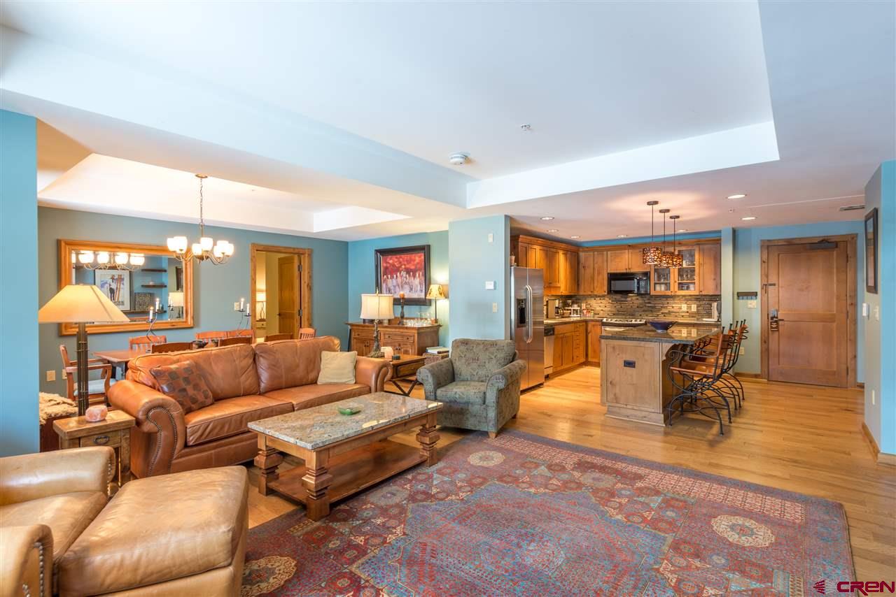 Views of Mt. Crested Butte! This luxurious 4th floor unit features a spacious floor plan and numerous upgrades. It needs to be seen to be fully appreciated. The upgrades include an upgraded stone fireplace and timber mantle, stone kitchen backsplash and custom paint colors. This top-rated complex (Trip Advisor awarded the Lodge at Mountaineer Square with its Certificate of Excellence for consistent great reviews) is a short walking distance to the slopes, bus service, restaurants, Camp 4 Coffee and the Adventure Center . Complex amenities including full time staff, indoor/outdoor pool, hot tub, sauna, fitness center and heated garage.