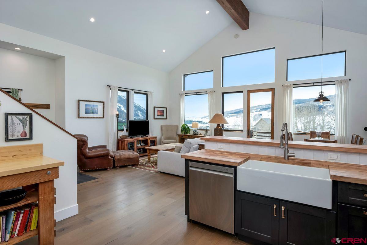 Welcome to 708 Zeligman Street, a beautifully crafted 3 bedroom, 2.5 bath home set on a .33-acre lot in the heart of Crested Butte South. Built in 2022, this thoughtfully designed 2,383 square foot home blends clean, modern finishes with cozy mountain style—perfect for full-time living or a peaceful retreat. Step inside to a bright and airy open floor plan, where vaulted ceilings and expansive windows fill the main living space with natural light and capture stunning mountain views. The seamless flow between the living room, dining area, and kitchen creates an inviting and functional layout. The kitchen has been tastefully upgraded with warm butcher block countertops, modern hardware, and a generous pantry, making it as practical as it is beautiful. Also on the main level, the primary suite offers a quiet escape featuring a well-appointed ensuite bath, a spacious walk-in closet, and direct access to a private patio that leads to the partially fenced yard and wraps around to the welcoming front deck—perfect for enjoying coffee with a view. Upstairs, a large loft provides flexible space for a second living area, office, or playroom and serves as a connection between two additional bedrooms and a shared full bath—ideal for family or guests. Additional features include radiant in-floor heating throughout, a laundry room with storage, a half bath, and an oversized 2-car attached garage. Situated just above the flats, this home enjoys a peaceful setting while remaining close to the many amenities of CB South. Enjoy Camp4 Coffee, local restaurants, nordic ski trails, a community park, and the free shuttle offering service to the Town of Crested Butte and Mount Crested Butte ski area. Modern mountain living starts here—at 708 Zeligman Street, where comfort, light, and location come together beautifully.
