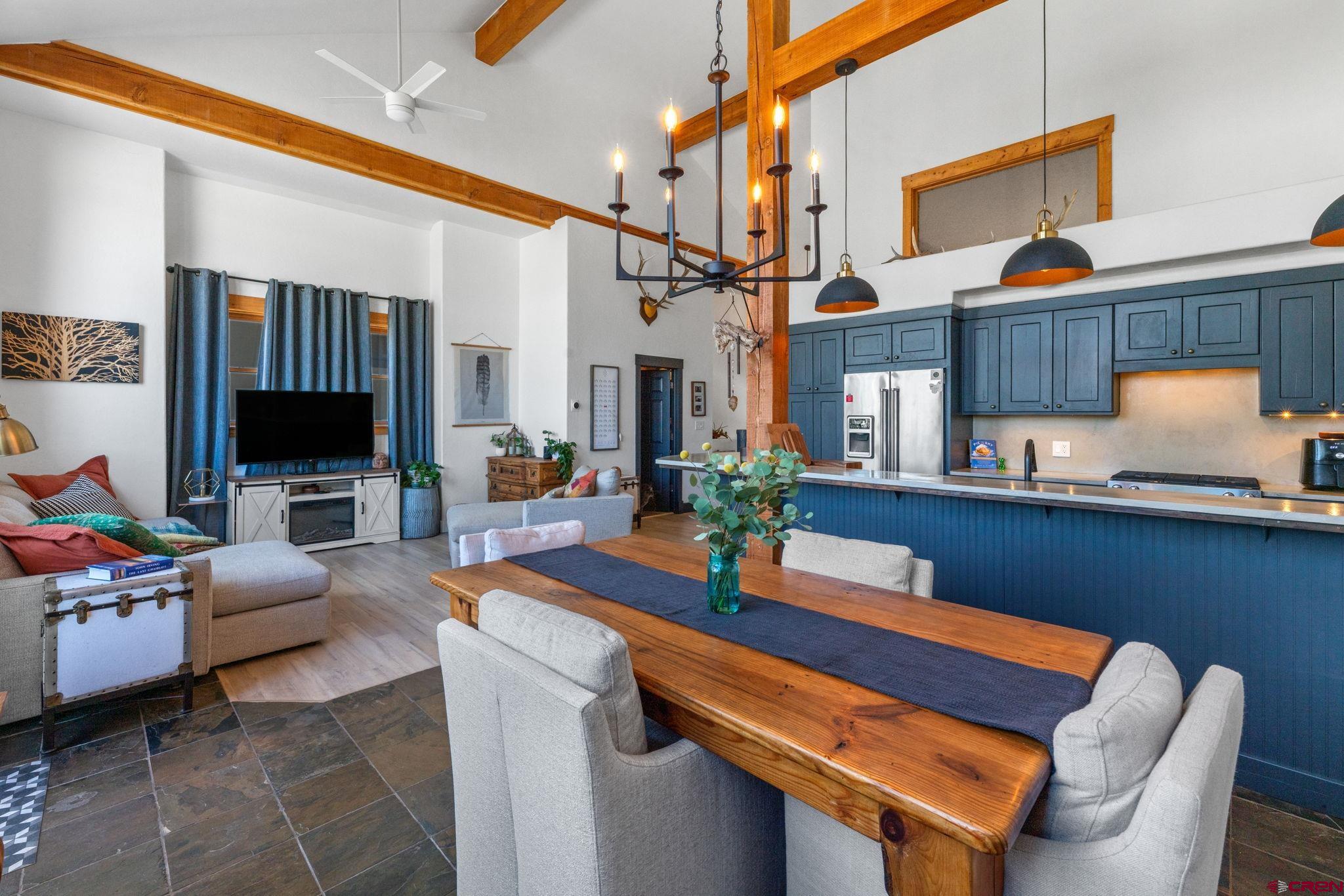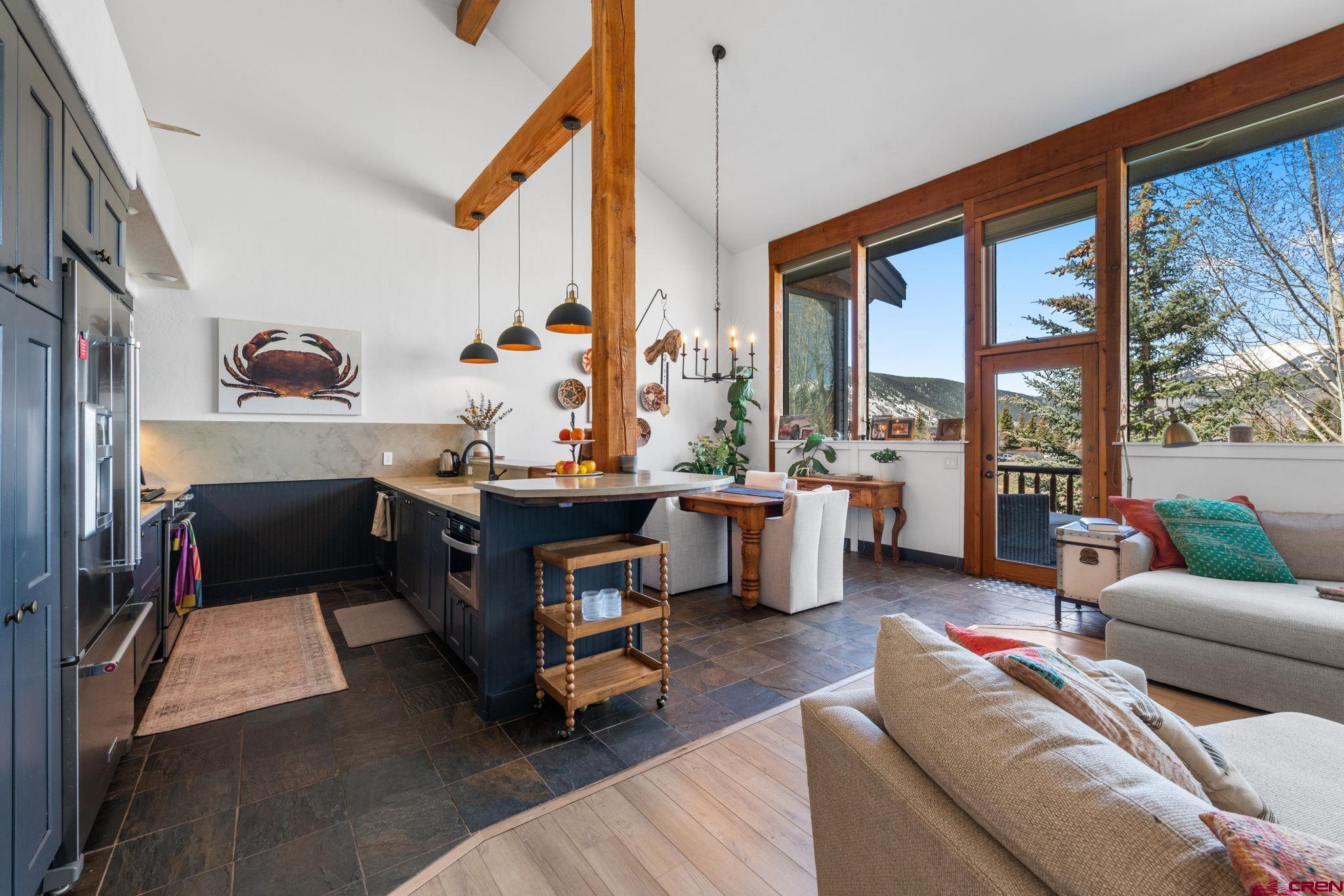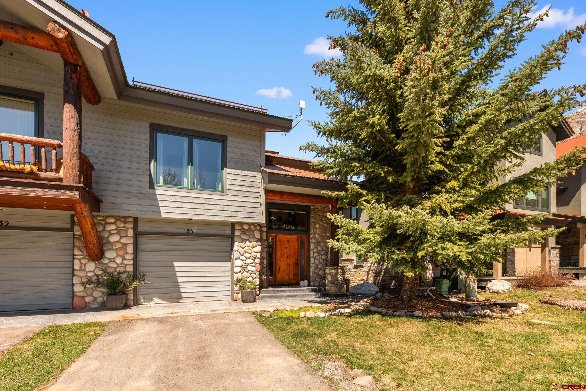 Located in the desirable Skyland neighborhood just across from The Club at Crested Butte, this beautifully designed condo offers unobstructed views of Mt. Crested Butte and easy access to the best of mountain living, including access to Lake Grant. With three bedrooms, two full baths, and a half bath, the home combines comfort, style, and function in a setting that feels open and peaceful while remaining just minutes from downtown Crested Butte, trails, and amenities. Step inside to find a warm, inviting interior with a subtle Mediterranean flair. Deep blue kitchen cabinets, natural wood beams, and contrasting painted dark grey accents create a refined yet relaxed atmosphere. Tasteful cast metal fixtures and thoughtful finishes throughout the home elevate the space without overpowering its natural charm. Enjoy fresh air and views from the top-floor balcony or unwind on the covered lower-level patio. The garage provides plenty of storage, and the separate laundry room adds convenience for daily living. Whether you're looking for a full-time home or mountain retreat, Unit 3 at 33 St. Andrews Circle is a wonderful find in Skyland.