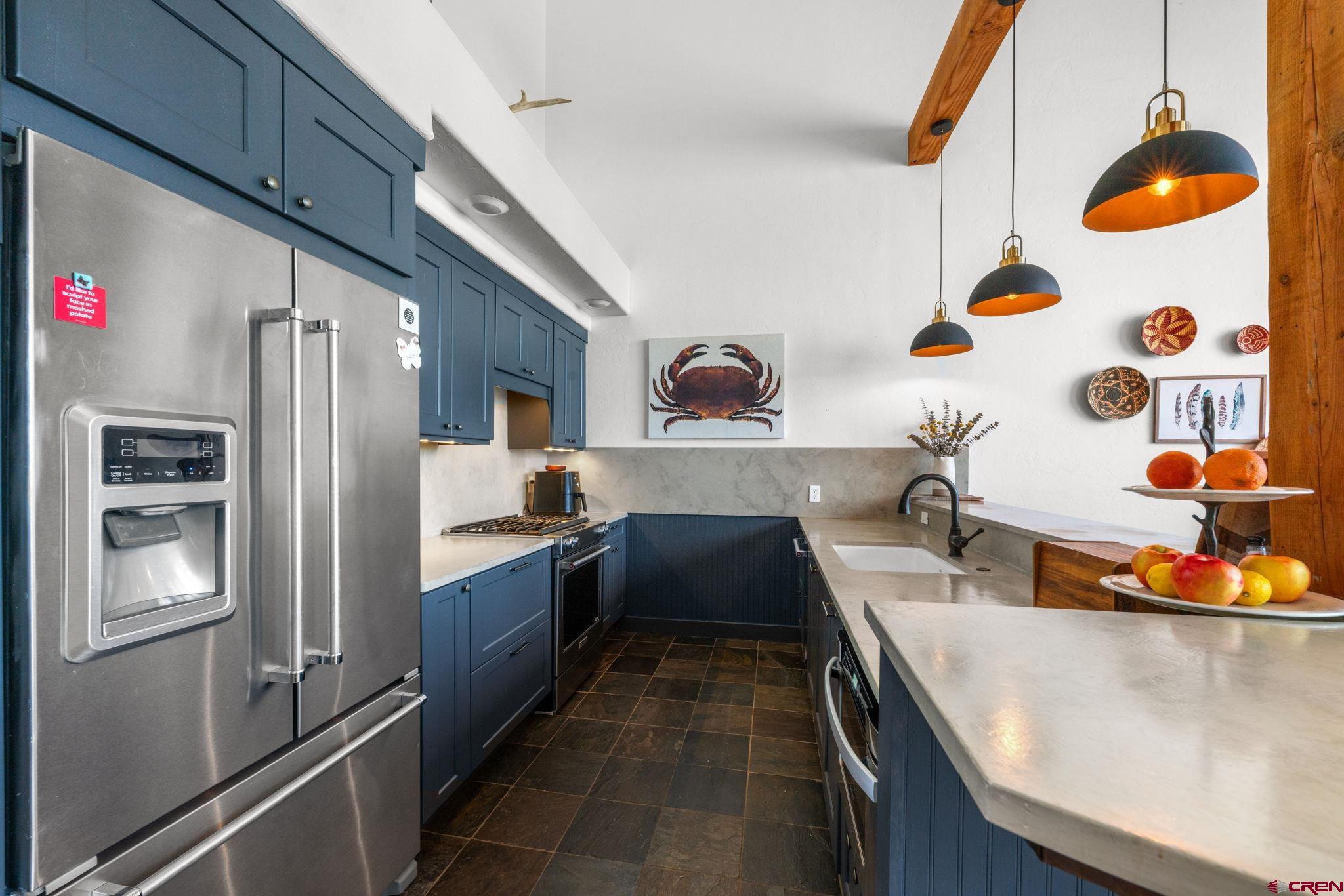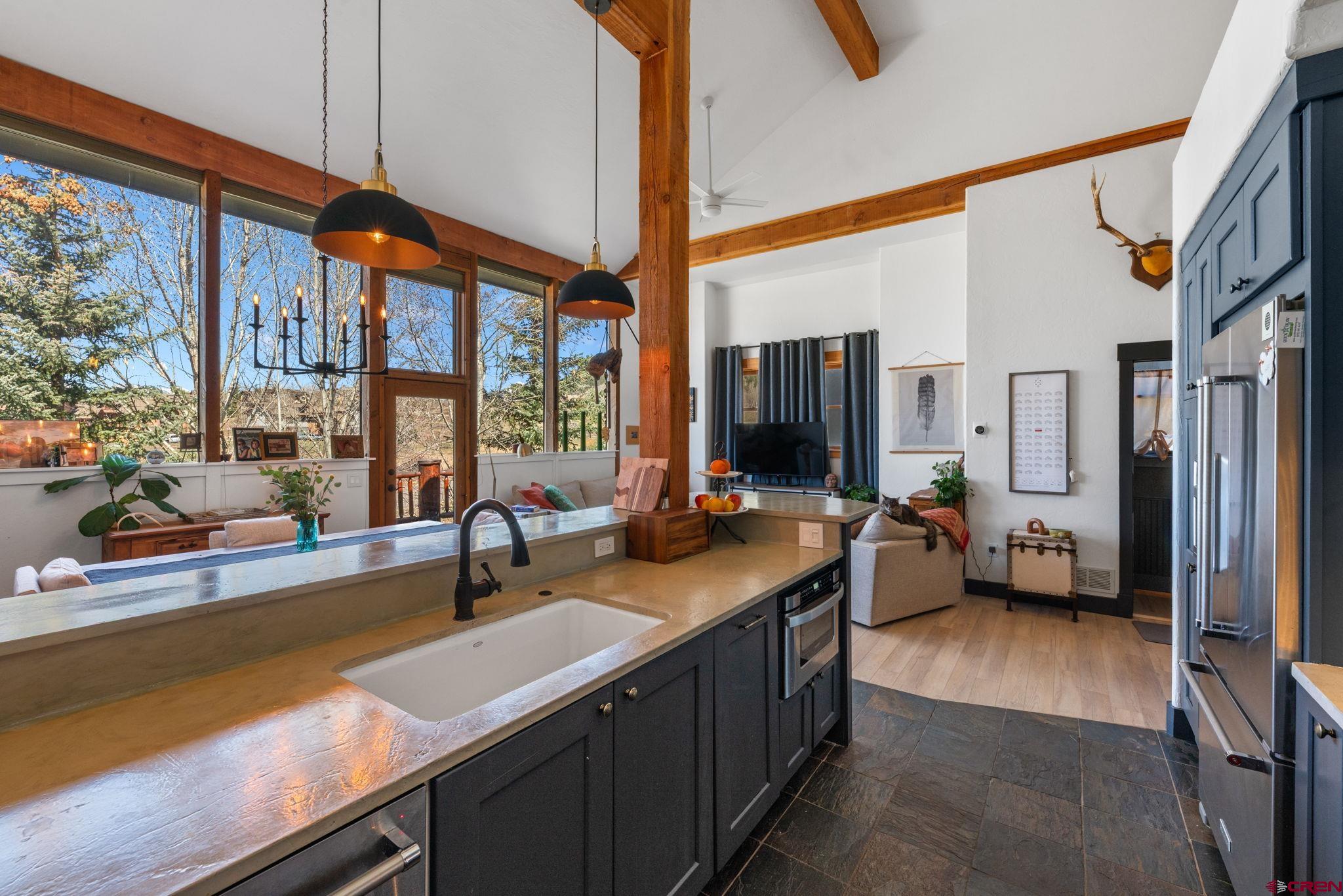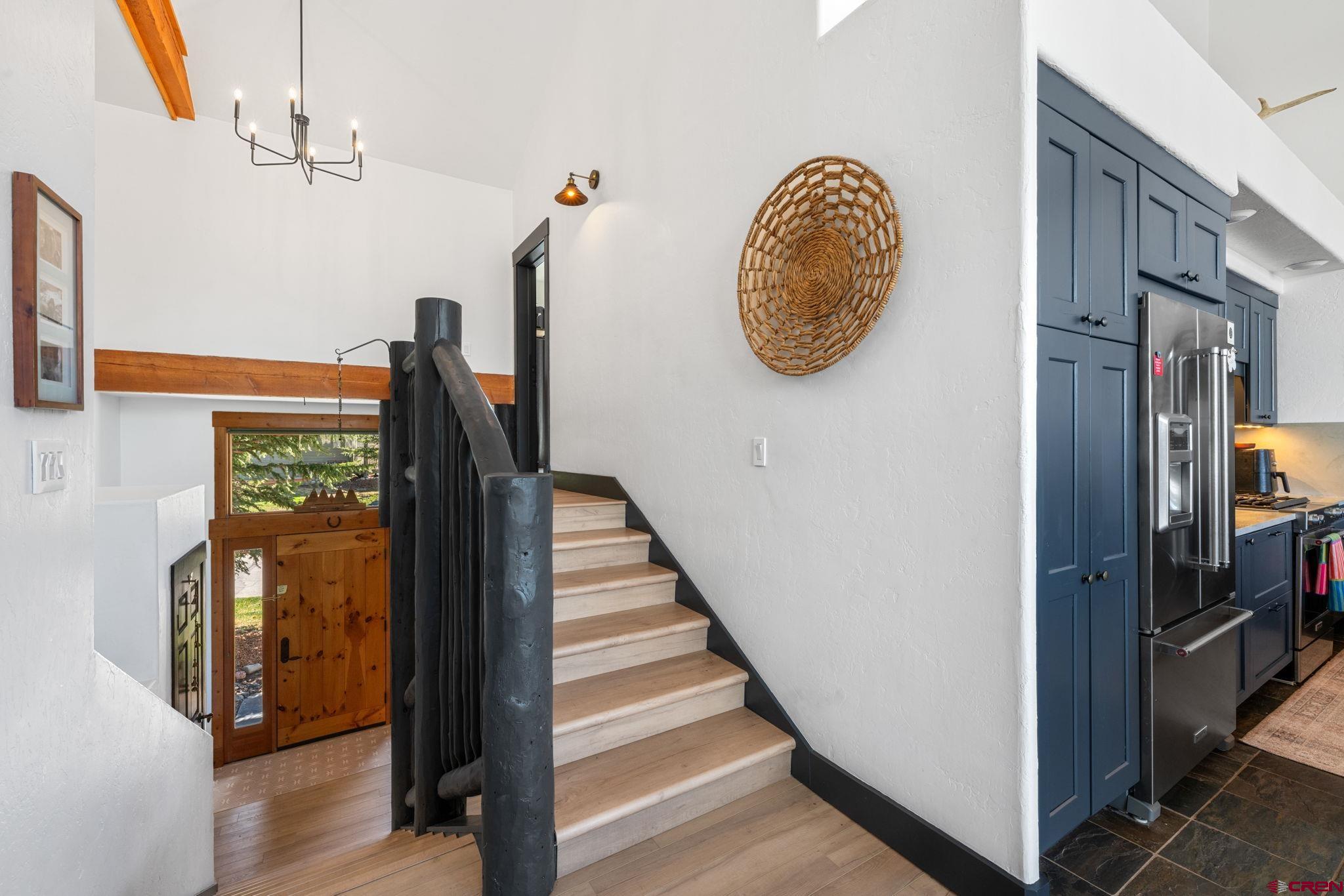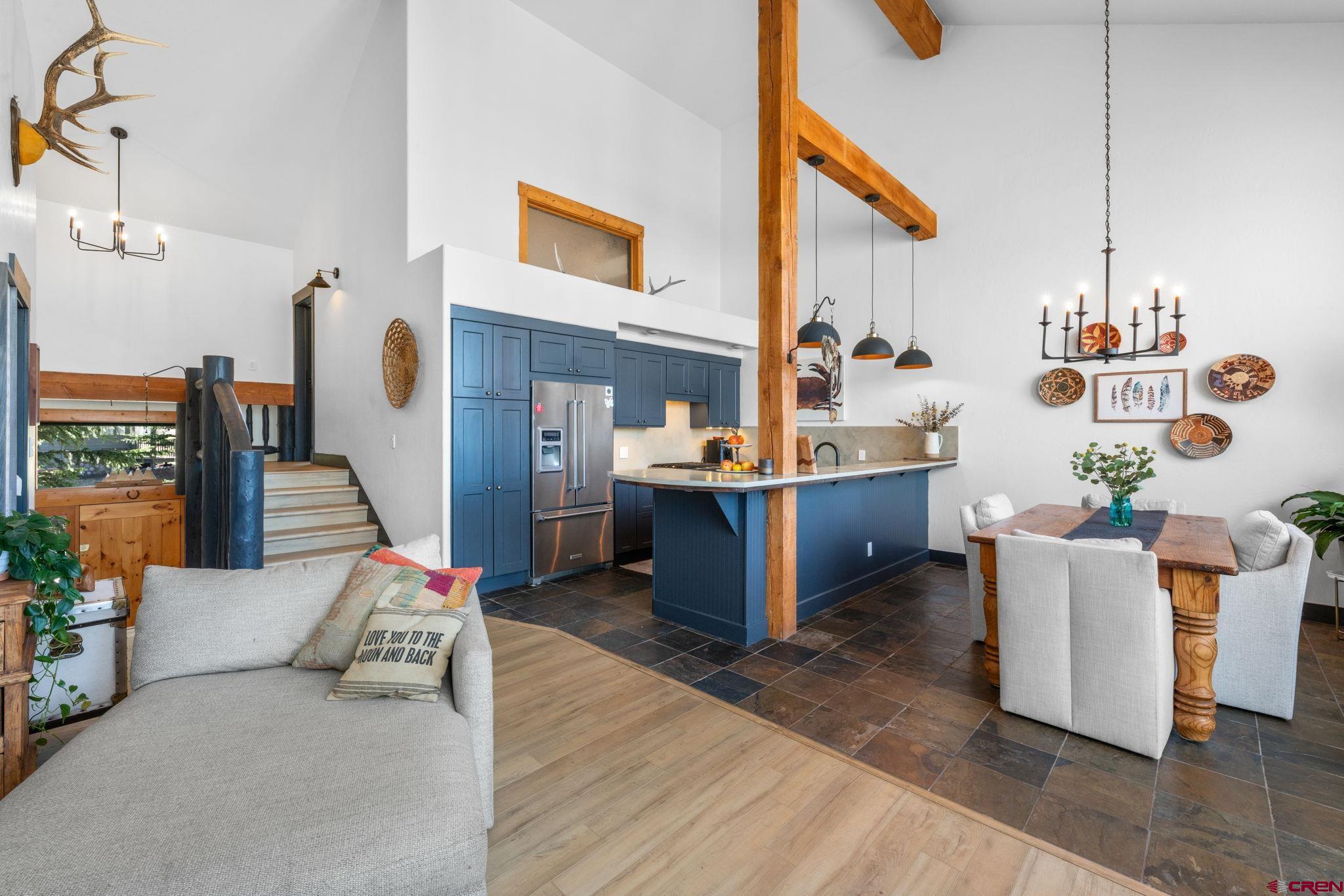 Located in the desirable Skyland neighborhood just across from The Club at Crested Butte, this beautifully designed condo offers unobstructed views of Mt. Crested Butte and easy access to the best of mountain living, including access to Lake Grant. With three bedrooms, two full baths, and a half bath, the home combines comfort, style, and function in a setting that feels open and peaceful while remaining just minutes from downtown Crested Butte, trails, and amenities. Step inside to find a warm, inviting interior with a subtle Mediterranean flair. Deep blue kitchen cabinets, natural wood beams, and contrasting painted dark grey accents create a refined yet relaxed atmosphere. Tasteful cast metal fixtures and thoughtful finishes throughout the home elevate the space without overpowering its natural charm. Enjoy fresh air and views from the top-floor balcony or unwind on the covered lower-level patio. The garage provides plenty of storage, and the separate laundry room adds convenience for daily living. Whether you're looking for a full-time home or mountain retreat, Unit 3 at 33 St. Andrews Circle is a wonderful find in Skyland.