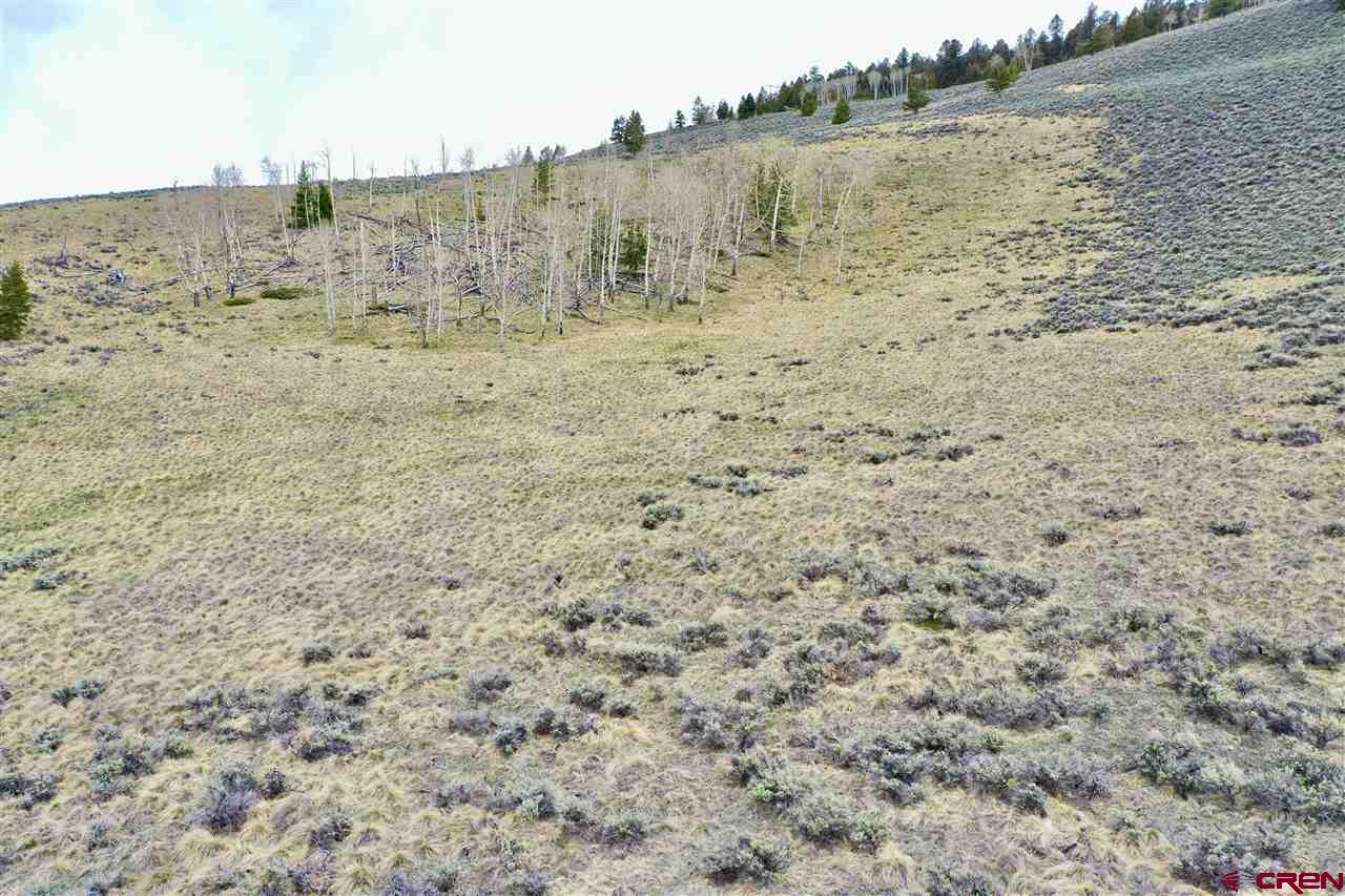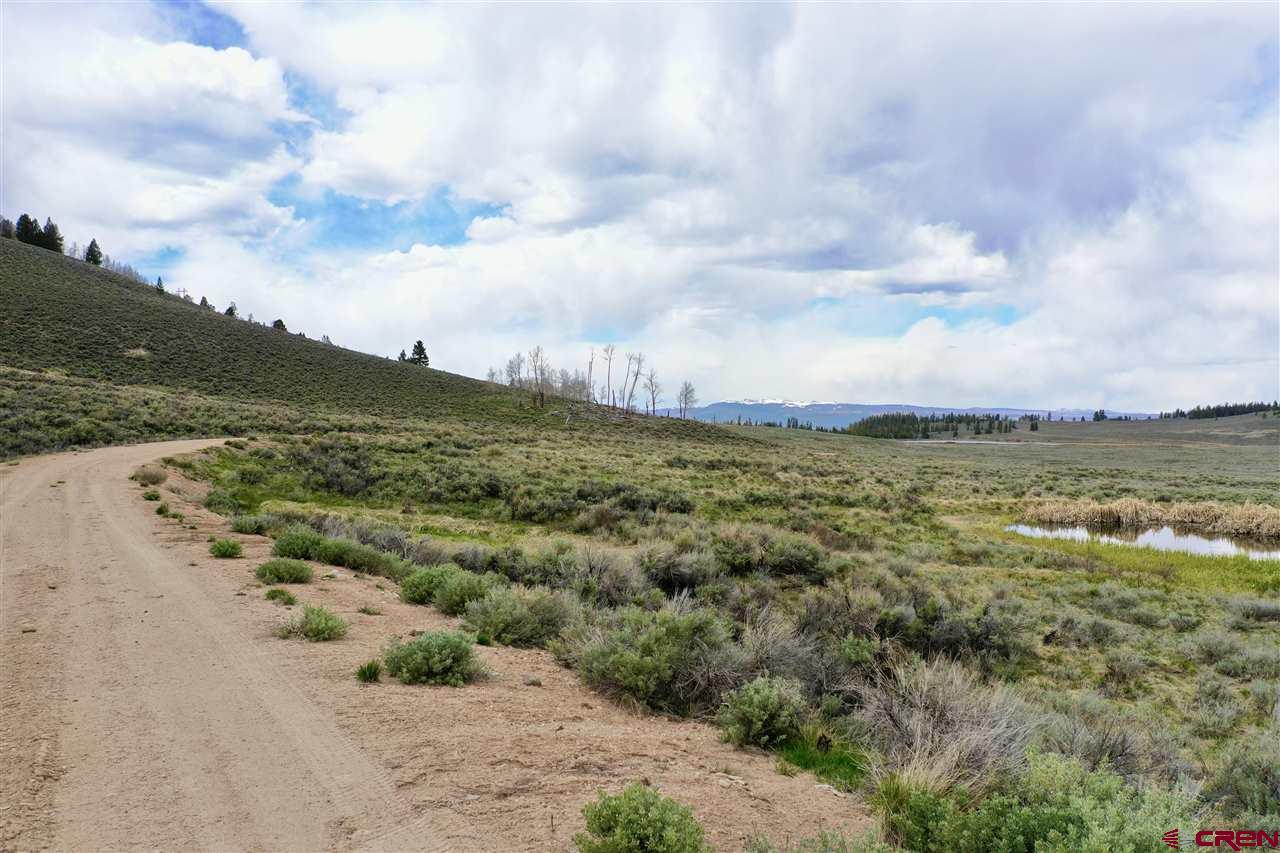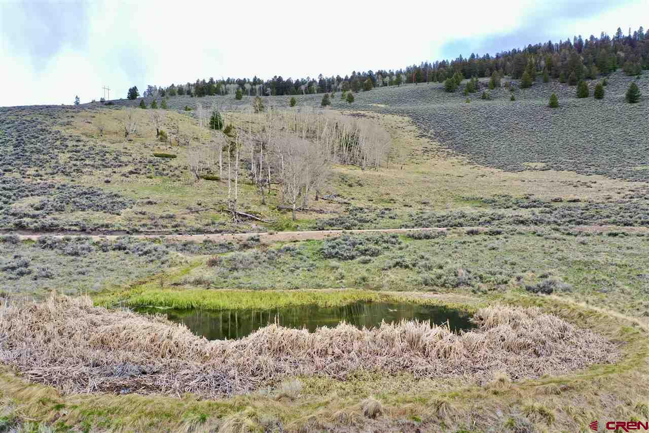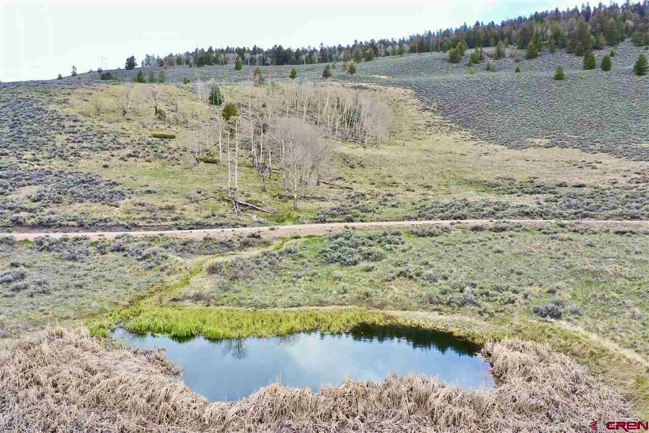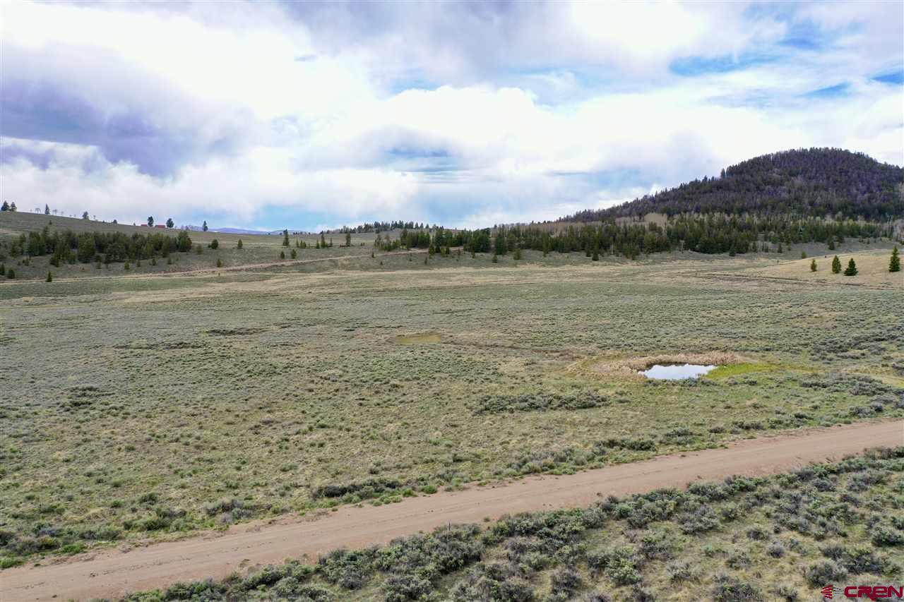 Panoramic views from this 36 acre parcel in the Blue Mesa Subdivision with deeded water rights to the spring. Views of the Powderhorn wilderness and wildlife galore. This area features a stocked fishing pond & use of the community clubhouse. Great location for building a cabin, with power at the lot line. Uncompahgre Drive splits the parcel, so you have trees on the upper parcel that backs up to hundreds of acres of government BLM land and the lower parcel has the pond.