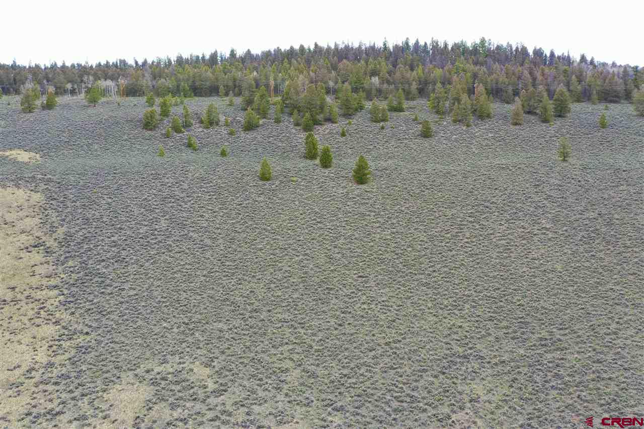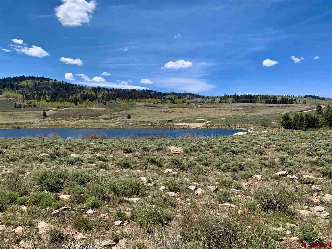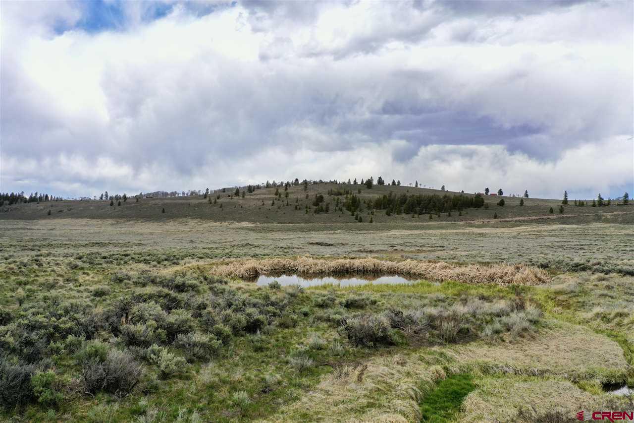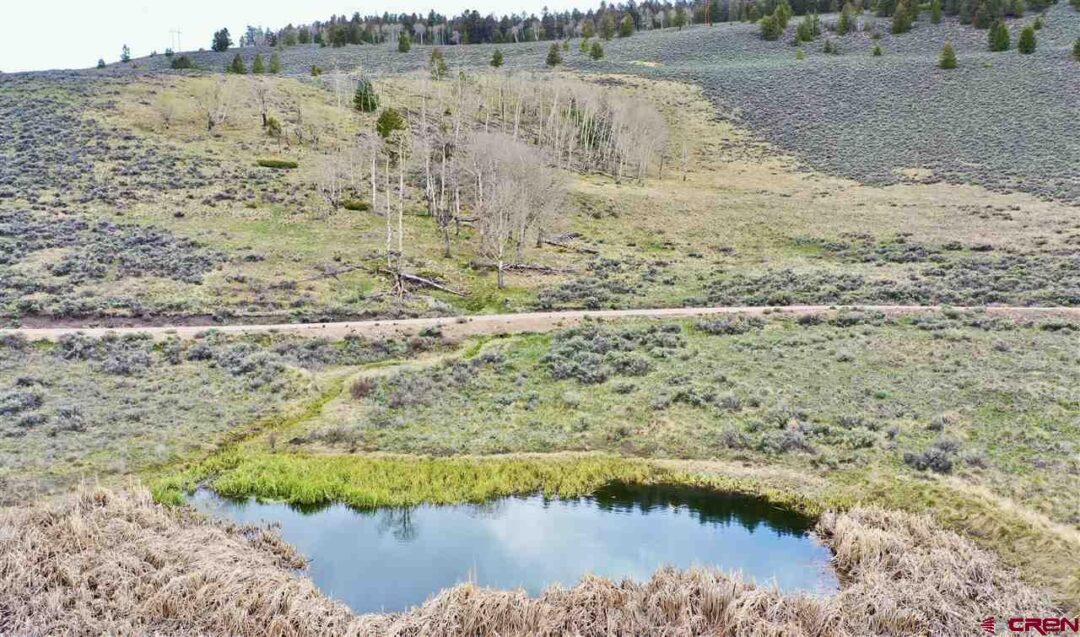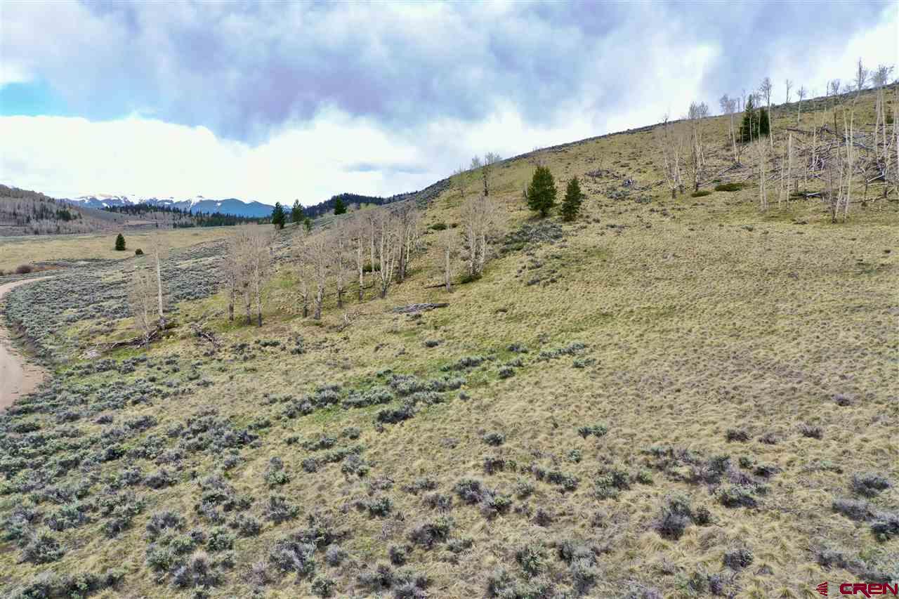 Panoramic views from this 36 acre parcel in the Blue Mesa Subdivision with deeded water rights to the spring. Views of the Powderhorn wilderness and wildlife galore. This area features a stocked fishing pond & use of the community clubhouse. Great location for building a cabin, with power at the lot line. Uncompahgre Drive splits the parcel, so you have trees on the upper parcel that backs up to hundreds of acres of government BLM land and the lower parcel has the pond.
