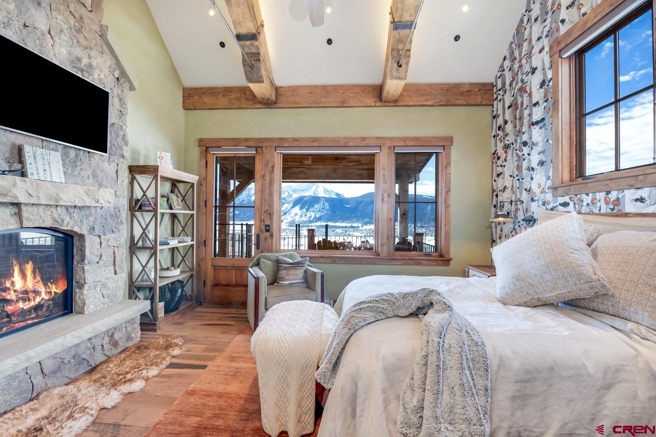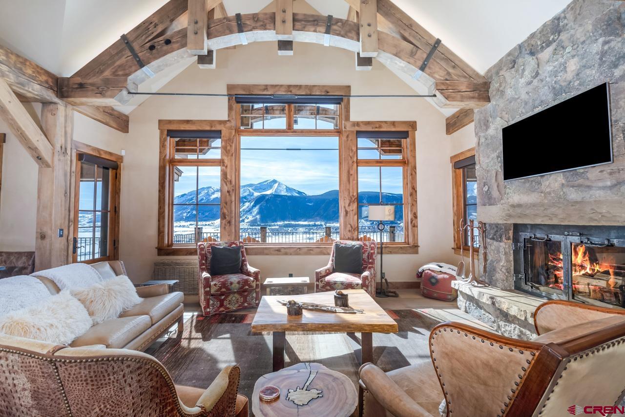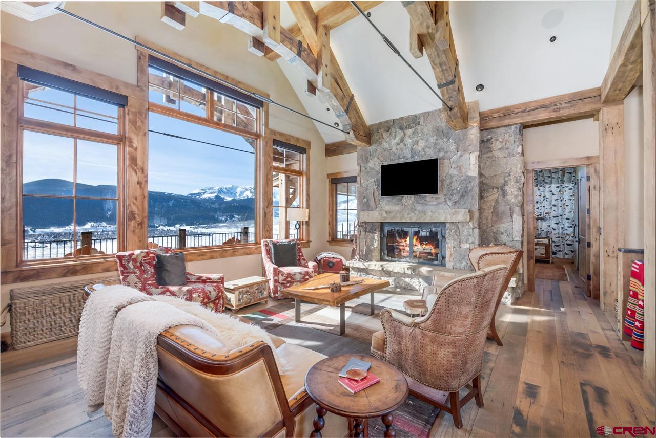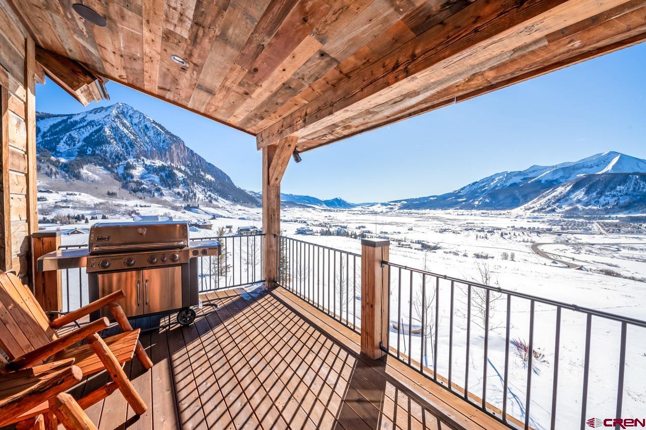 An absolutely incredible location above the historic Town of Crested Butte and the Slate River, 426 Saddle Ridge Ranch enjoys horizon-to-horizon views of our surrounding peaks and the upper valley. Dan Murphy Architect and Jack Huckins General Contractor combined their award winning talents to create this masterpiece. Completed in 2018, every square foot of the home enjoys beautiful craftsmanship and thoughtful design elements. From the incredible beam and truss details to the reclaimed wood floors and stone fireplaces to the forged iron rails and accents no detail was forgotten with this amazing creation. The home's layout puts the primary bedroom suite on the same level as the kitchen, dining, living and main covered decks. Downstairs there is another living room with a stone fireplace, a wet bar, three bedrooms including a big bunk room that sleeps six, three designer baths, a second laundry room and access to another set of covered decks and the backyard. Above the spacious, two-car 725 SF heated garage the study, a fifth bedroom and another bathroom offer a private "wing" for guests or remote working. The rare 3.16 acre parcel borders 49 acres of permanent open space and features it's own pond with a view of Mt Crested Butte. Out back the amphitheater's stone benches and gas fire pit face the valley below creating opportunity for fun evening gatherings during the summer. Other than amazing 360 degree views, open spaces, the equestrian barn and the big community pond, Saddle Ridge Ranch owners benefit from a highly convenient and central location. You can get to dinner on Elk Avenue or up to the ski slopes inside of ten minutes! The Lupine Trail begins just up the street and the paved, non-motorized Rec Path is easily accessed across from the entrance of Saddle Ridge Ranch.