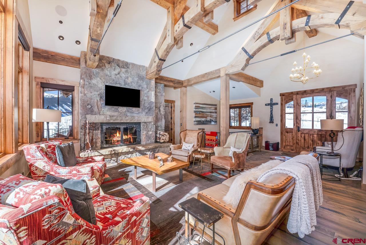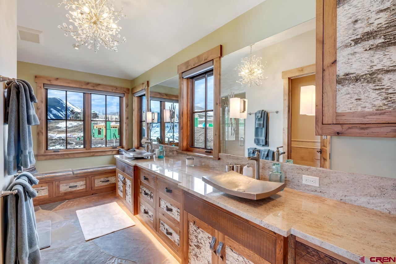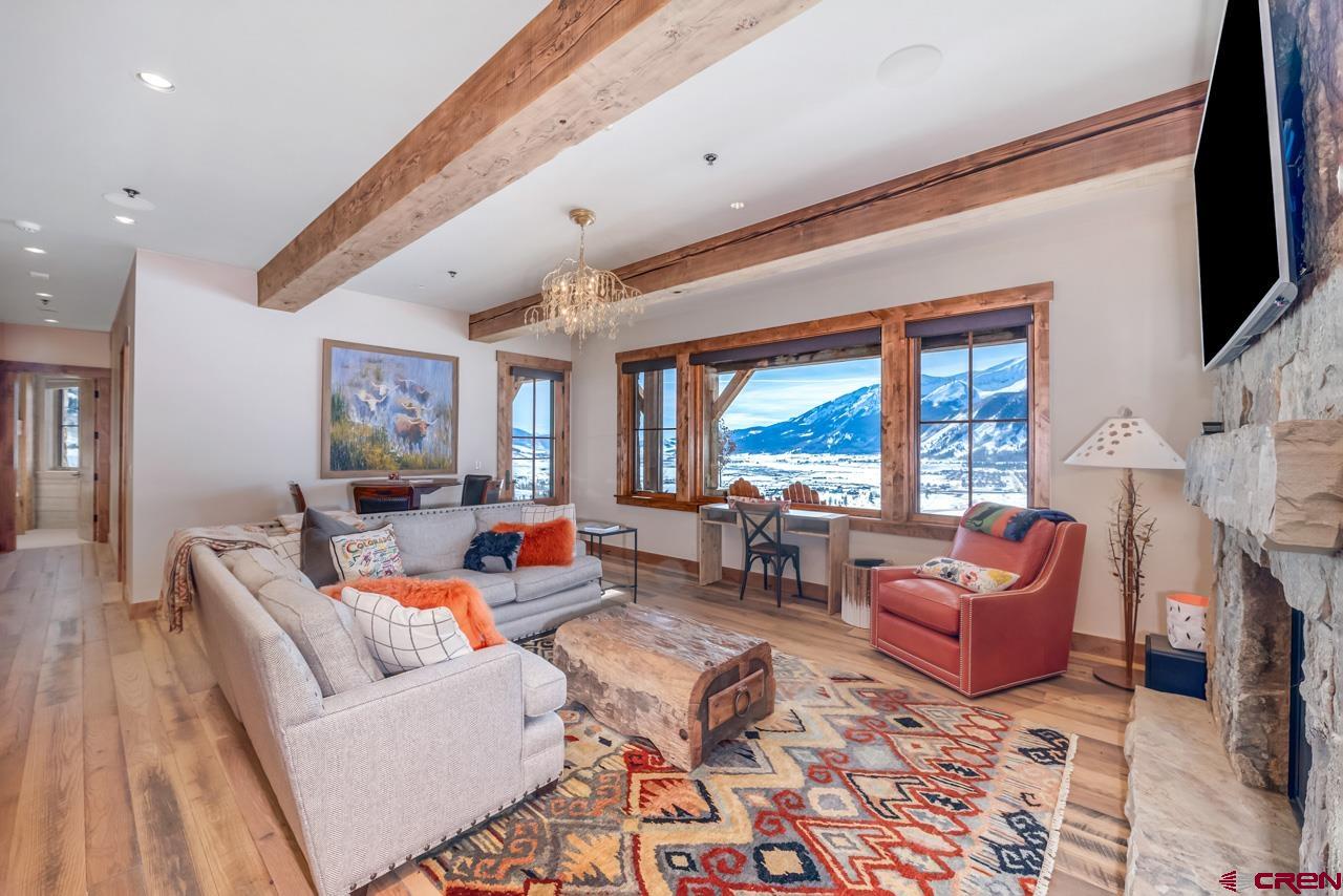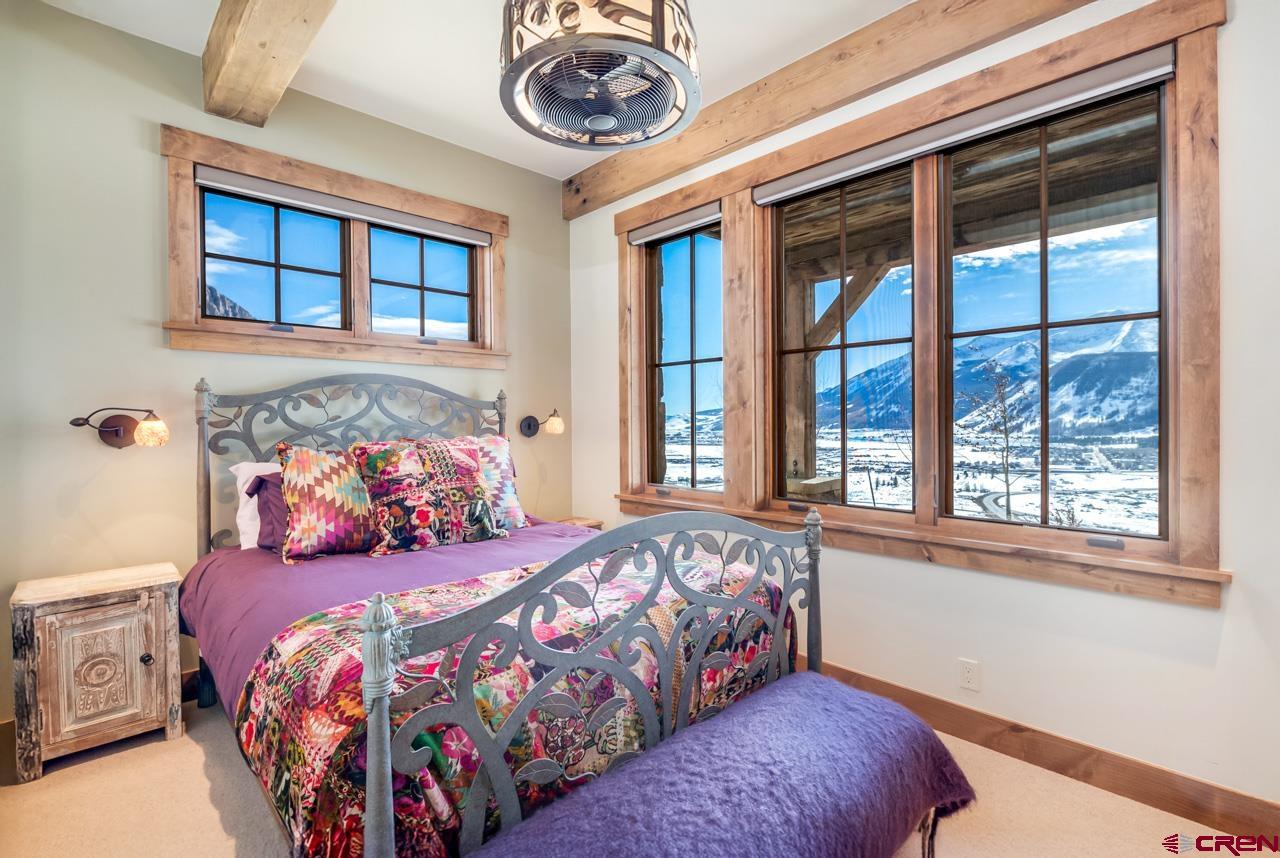 An absolutely incredible location above the historic Town of Crested Butte and the Slate River, 426 Saddle Ridge Ranch enjoys horizon-to-horizon views of our surrounding peaks and the upper valley. Dan Murphy Architect and Jack Huckins General Contractor combined their award winning talents to create this masterpiece. Completed in 2018, every square foot of the home enjoys beautiful craftsmanship and thoughtful design elements. From the incredible beam and truss details to the reclaimed wood floors and stone fireplaces to the forged iron rails and accents no detail was forgotten with this amazing creation. The home's layout puts the primary bedroom suite on the same level as the kitchen, dining, living and main covered decks. Downstairs there is another living room with a stone fireplace, a wet bar, three bedrooms including a big bunk room that sleeps six, three designer baths, a second laundry room and access to another set of covered decks and the backyard. Above the spacious, two-car 725 SF heated garage the study, a fifth bedroom and another bathroom offer a private "wing" for guests or remote working. The rare 3.16 acre parcel borders 49 acres of permanent open space and features it's own pond with a view of Mt Crested Butte. Out back the amphitheater's stone benches and gas fire pit face the valley below creating opportunity for fun evening gatherings during the summer. Other than amazing 360 degree views, open spaces, the equestrian barn and the big community pond, Saddle Ridge Ranch owners benefit from a highly convenient and central location. You can get to dinner on Elk Avenue or up to the ski slopes inside of ten minutes! The Lupine Trail begins just up the street and the paved, non-motorized Rec Path is easily accessed across from the entrance of Saddle Ridge Ranch.