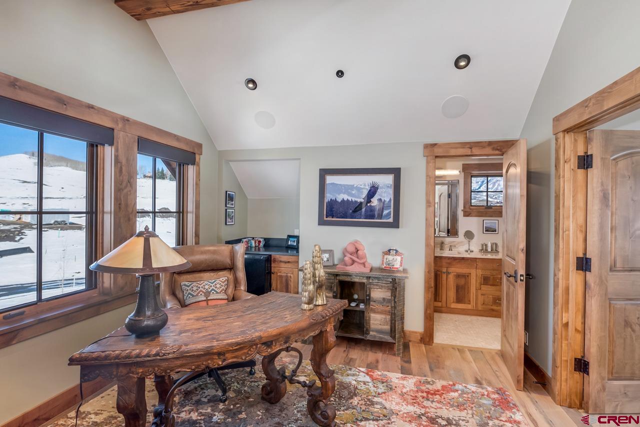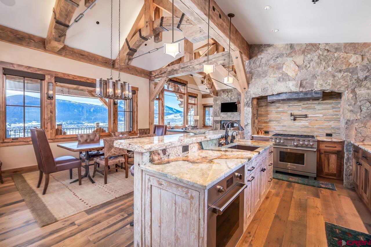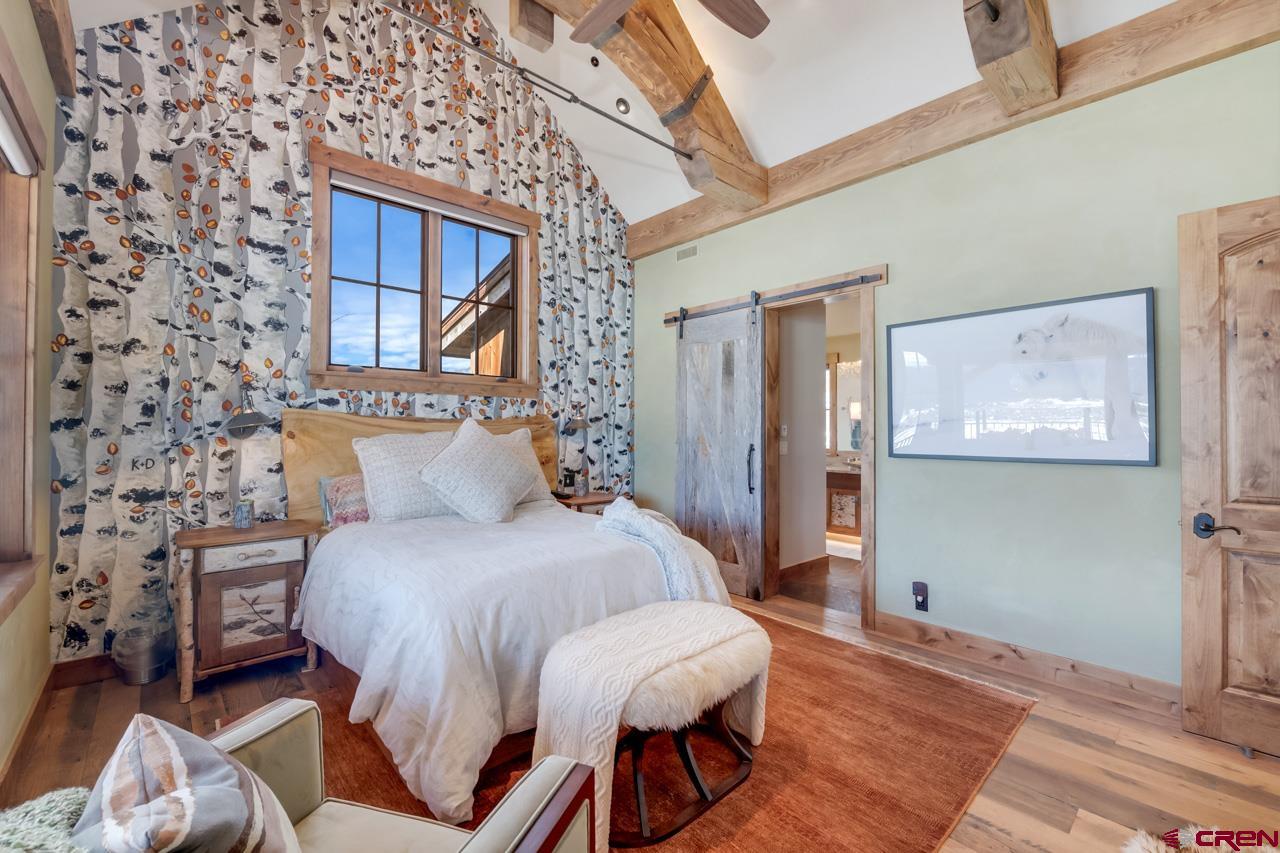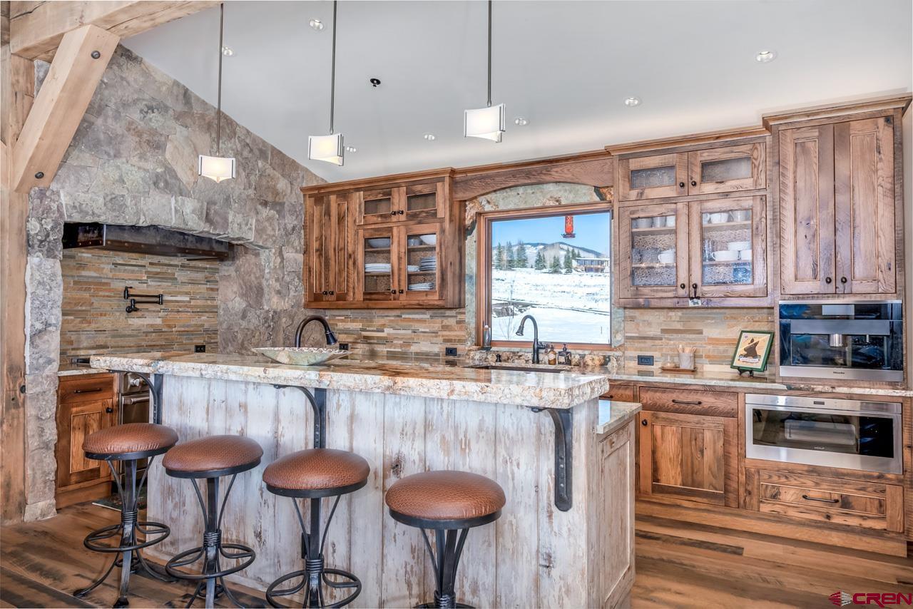 An absolutely incredible location above the historic Town of Crested Butte and the Slate River, 426 Saddle Ridge Ranch enjoys horizon-to-horizon views of our surrounding peaks and the upper valley. Dan Murphy Architect and Jack Huckins General Contractor combined their award winning talents to create this masterpiece. Completed in 2018, every square foot of the home enjoys beautiful craftsmanship and thoughtful design elements. From the incredible beam and truss details to the reclaimed wood floors and stone fireplaces to the forged iron rails and accents no detail was forgotten with this amazing creation. The home's layout puts the primary bedroom suite on the same level as the kitchen, dining, living and main covered decks. Downstairs there is another living room with a stone fireplace, a wet bar, three bedrooms including a big bunk room that sleeps six, three designer baths, a second laundry room and access to another set of covered decks and the backyard. Above the spacious, two-car 725 SF heated garage the study, a fifth bedroom and another bathroom offer a private "wing" for guests or remote working. The rare 3.16 acre parcel borders 49 acres of permanent open space and features it's own pond with a view of Mt Crested Butte. Out back the amphitheater's stone benches and gas fire pit face the valley below creating opportunity for fun evening gatherings during the summer. Other than amazing 360 degree views, open spaces, the equestrian barn and the big community pond, Saddle Ridge Ranch owners benefit from a highly convenient and central location. You can get to dinner on Elk Avenue or up to the ski slopes inside of ten minutes! The Lupine Trail begins just up the street and the paved, non-motorized Rec Path is easily accessed across from the entrance of Saddle Ridge Ranch.