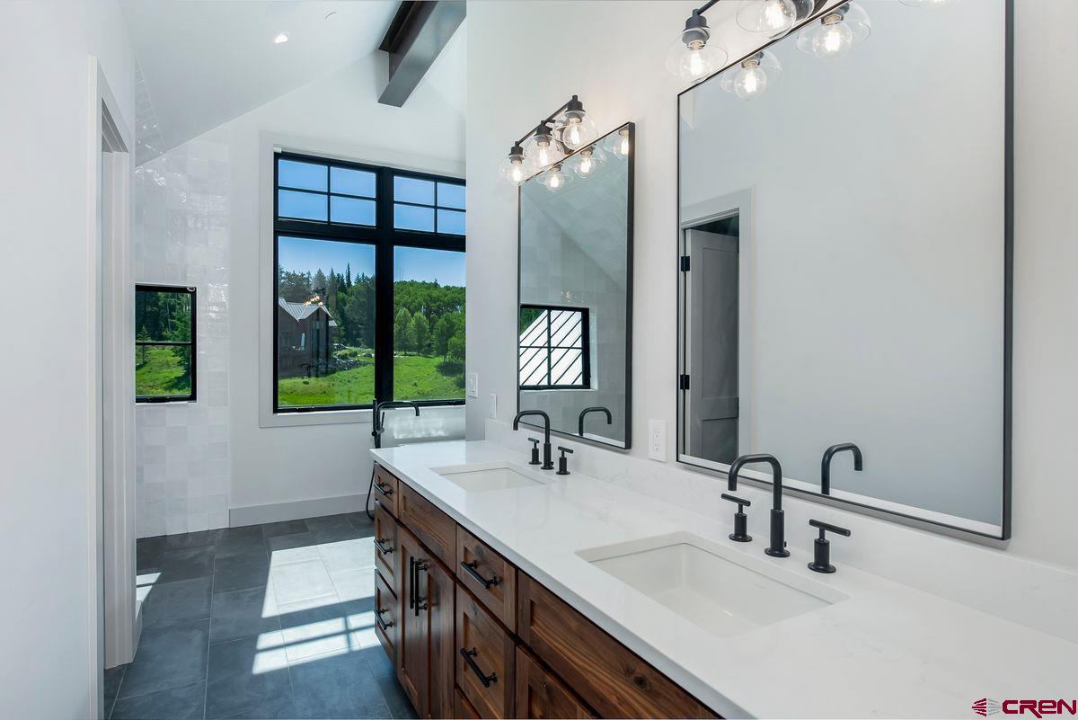 Wow! Completed in 2025, the mountain modern design-build at 470 Meadow Drive will knock the skis off your feet. This offering has it all: A south-facing 1-acre perch at the top of coveted Meridian Lake Meadows with stunner views in every direction and huge covered stone decks and patios framed in beautiful structural steel beams. When is the last time you stood on a stone deck? The main level features spacious dining and living areas anchored by more incredible steel beam work, white oak wide plank floors and an impressive floor-to-ceiling Rumford wood burning fireplace wrapped in a gorgeous steel surround and finished with a rock and steel hearth. Are you kidding me?The entertainer's kitchen features Wolf-Subzero-Cove appliances, a wet bar, a massive quartz center island, tons of storage and million dollar views from the sink! A dramatic floating oak and steel staircase gets you up to a large primary suite with it's own deck and down to a lower level living room, three guest quarters and a large laundry room. For those bigger family and friend gatherings the well equipped, separate one-bedroom 540 SF guest house will come in handy. Big vehicles and tons of toys? No problem. The gigantic 816 SF garage offers vaulted ceilings, a big storage loft and doors for tall vehicles. Andrew Hadley Architects and David Gross General Contractor created this incredible offering. Some images of the home are virtually staged.