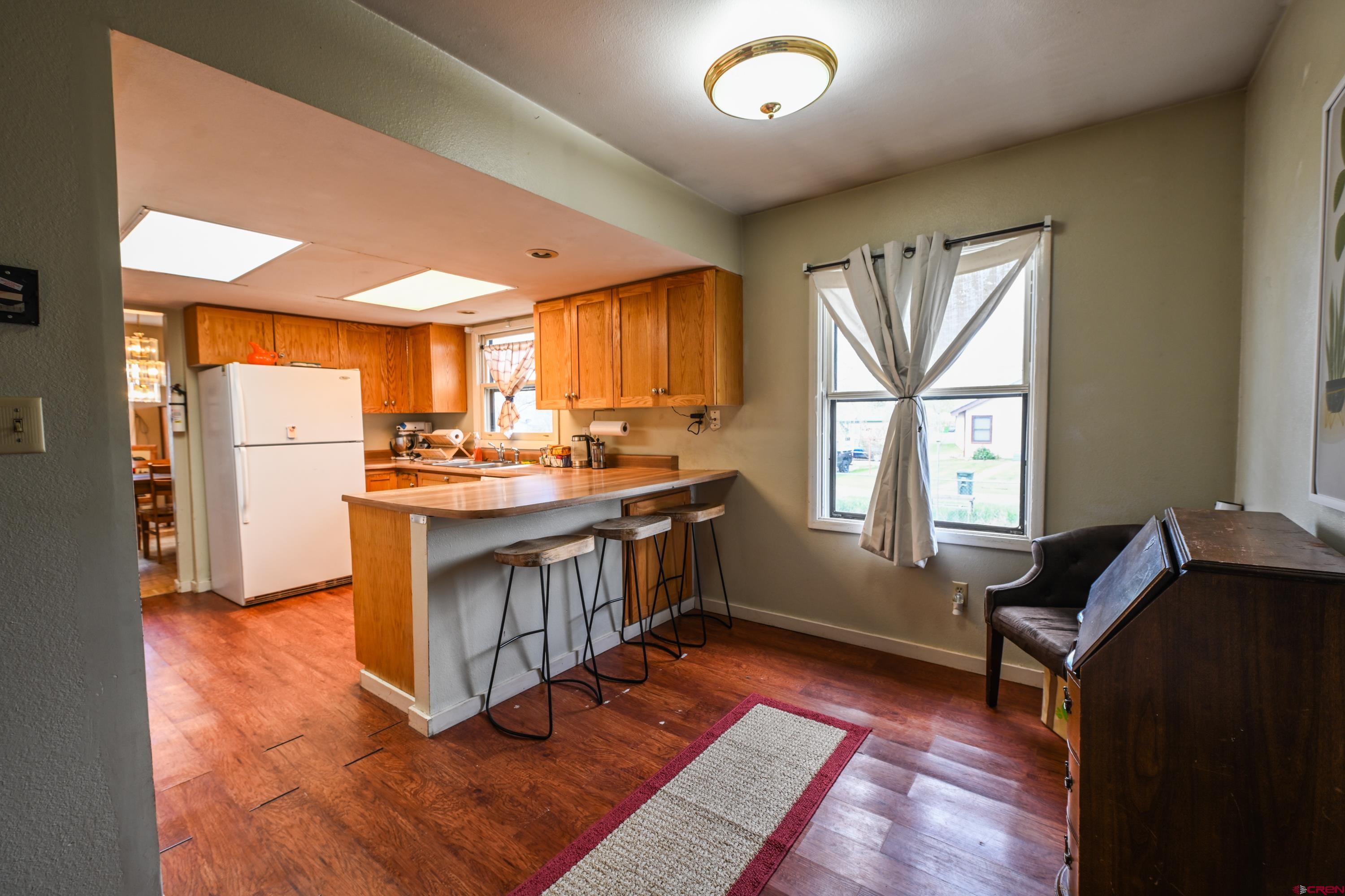 This spacious six-bedroom home sits on a generous corner lot and offers incredible potential. While it could use some TLC and updates, the home has solid bones and unique features that make it well worth the effort. The unfinished basement provides over 800 sq ft of additional space, ready to be transformed into a living area, home office, or recreation room. Notable features include an active solar hot water pre-heat system, a durable metal roof, and beautiful views of the Palisades from all three west-facing bedrooms. The fenced yard is lined with mature trees and bushes, offering privacy and shade. Ideally located within easy biking distance to downtown Gunnison and local schools, this home combines convenience with opportunity. You'll enjoy quick access to shops, restaurants, parks, and community events—perfect for families or anyone who values staying connected to town amenities. Whether you're searching for a spacious home, a renovation project to build equity, a canvas for your dream home, or a high-yield rental investment, this rare and generously sized in-town floor plan is ready for your vision.