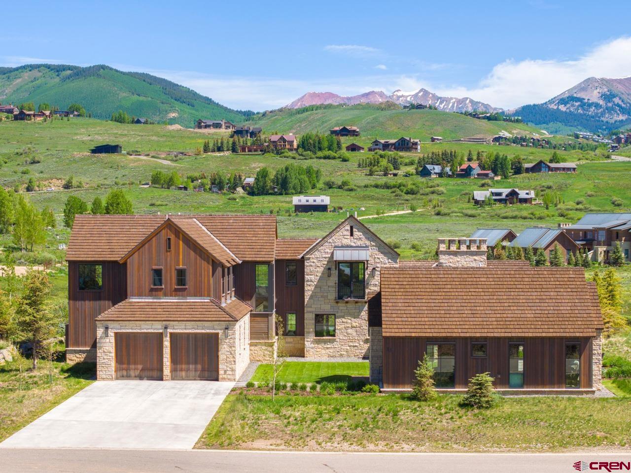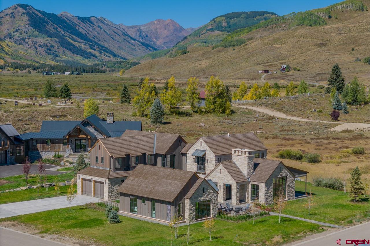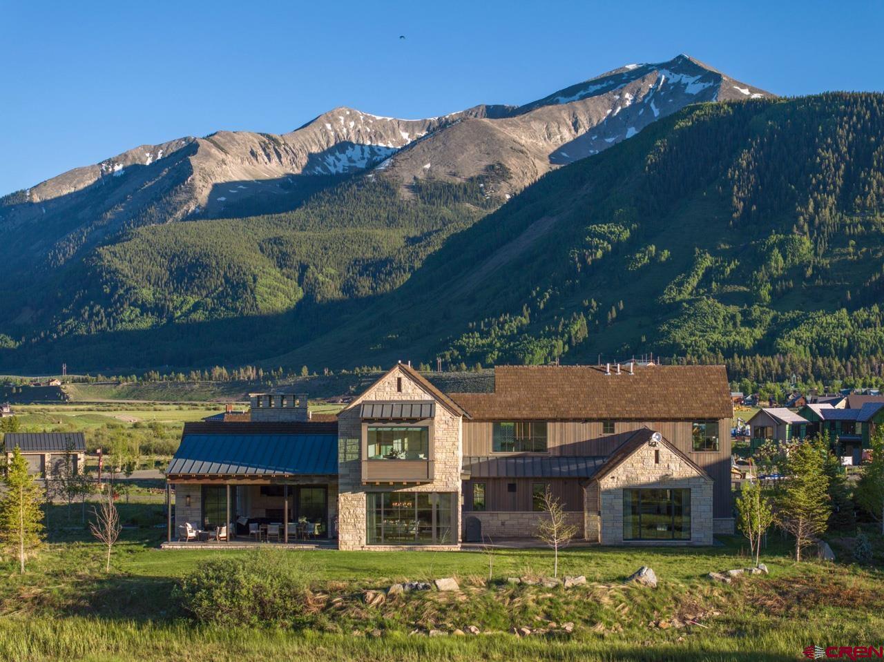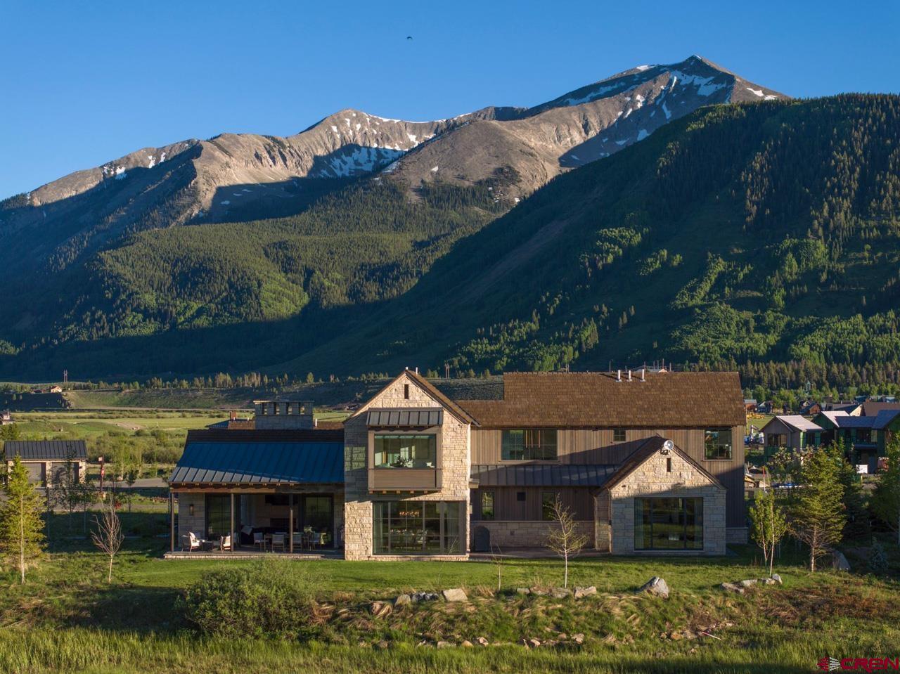 An amazing location adjacent to the historic town of Crested Butte, private Slate River fishing and boating access and stunning mountain views make this fully furnished mountain modern at 33 Aperture one of Crested Butte’s finest offerings. Architected by SHM Architects with interior design by CB Spaces and built by Michael Weil Custom Homes, the property comprises 5,393 SF and rests on a flat 1/2 acre parcel that sits against permanent open space. The main house enjoys a traditional floor plan with the kitchen, dining room, great room and the primary bedroom suite located on the 1st floor. Upstairs there are three guest suites and a comfortable second living room. The views from the upstairs suites are awesome too! The great room is anchored by a gorgeous floor-to-ceiling stone fireplace and features vaulted ceilings and picture windows that expertly capture the mountain views. When friends and family visit they will enjoy their own special retreat in the "Casita" guest house. The guest house features a vaulted living area with a picture frame view of Mt Crested Butte, a full kitchen, a bath and a spacious bedroom. Throughout the property, designer lighting and hardware compliment the solid white oak doors, the white oak wide plank flooring, the Ann Sacks tile treatments and the Pete Peacock custom built cabinetry. Deborah Walker of Dallas selected all of the plumbing fixtures. The well appointed Wolf-SubZero kitchen features gorgeous natural stone tops and there is a covered steel beam and stone porch set up for alfresco dining and relaxing outside during our glorious Colorado summers! The home enjoys a distributed audio/video system and the whole house lighting is powered by Lutron. The two-car, 462 SF heated garage will accommodate large vehicles with room for the skis, bikes and paddle boards.