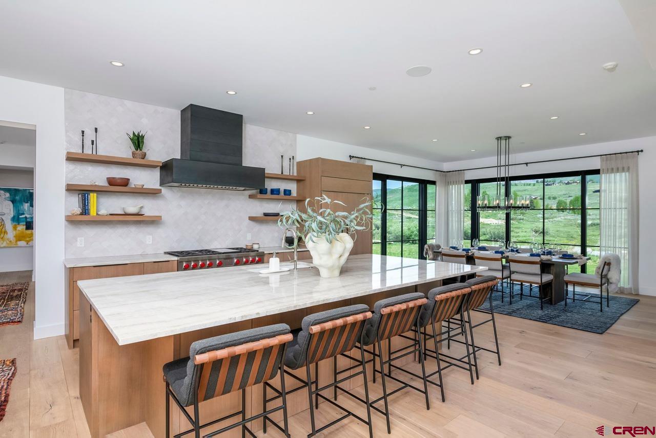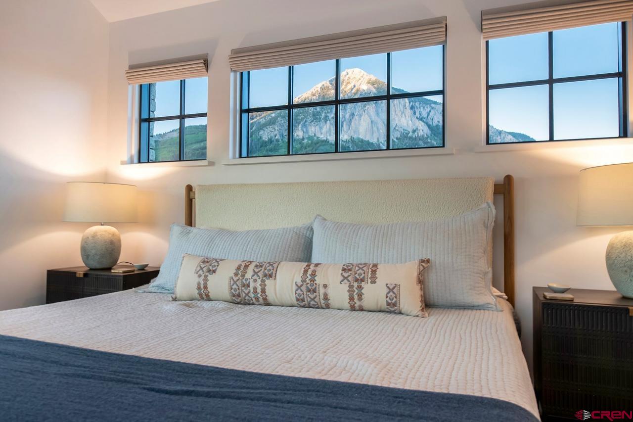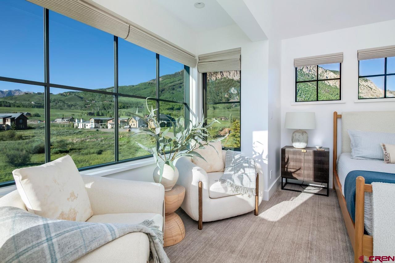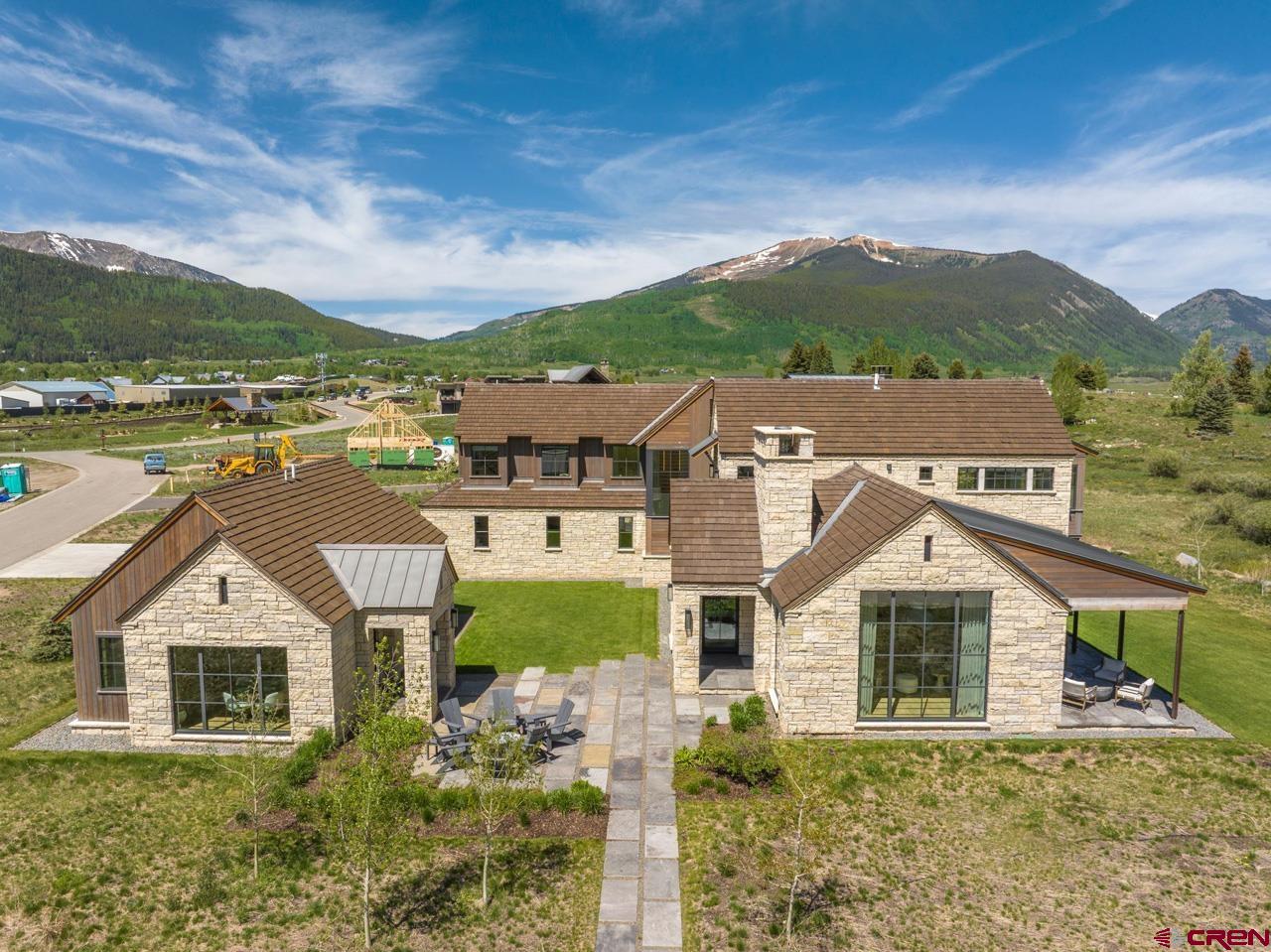 An amazing location adjacent to the historic town of Crested Butte, private Slate River fishing and boating access and stunning mountain views make this fully furnished mountain modern at 33 Aperture one of Crested Butte’s finest offerings. Architected by SHM Architects with interior design by CB Spaces and built by Michael Weil Custom Homes, the property comprises 5,393 SF and rests on a flat 1/2 acre parcel that sits against permanent open space. The main house enjoys a traditional floor plan with the kitchen, dining room, great room and the primary bedroom suite located on the 1st floor. Upstairs there are three guest suites and a comfortable second living room. The views from the upstairs suites are awesome too! The great room is anchored by a gorgeous floor-to-ceiling stone fireplace and features vaulted ceilings and picture windows that expertly capture the mountain views. When friends and family visit they will enjoy their own special retreat in the "Casita" guest house. The guest house features a vaulted living area with a picture frame view of Mt Crested Butte, a full kitchen, a bath and a spacious bedroom. Throughout the property, designer lighting and hardware compliment the solid white oak doors, the white oak wide plank flooring, the Ann Sacks tile treatments and the Pete Peacock custom built cabinetry. Deborah Walker of Dallas selected all of the plumbing fixtures. The well appointed Wolf-SubZero kitchen features gorgeous natural stone tops and there is a covered steel beam and stone porch set up for alfresco dining and relaxing outside during our glorious Colorado summers! The home enjoys a distributed audio/video system and the whole house lighting is powered by Lutron. The two-car, 462 SF heated garage will accommodate large vehicles with room for the skis, bikes and paddle boards.