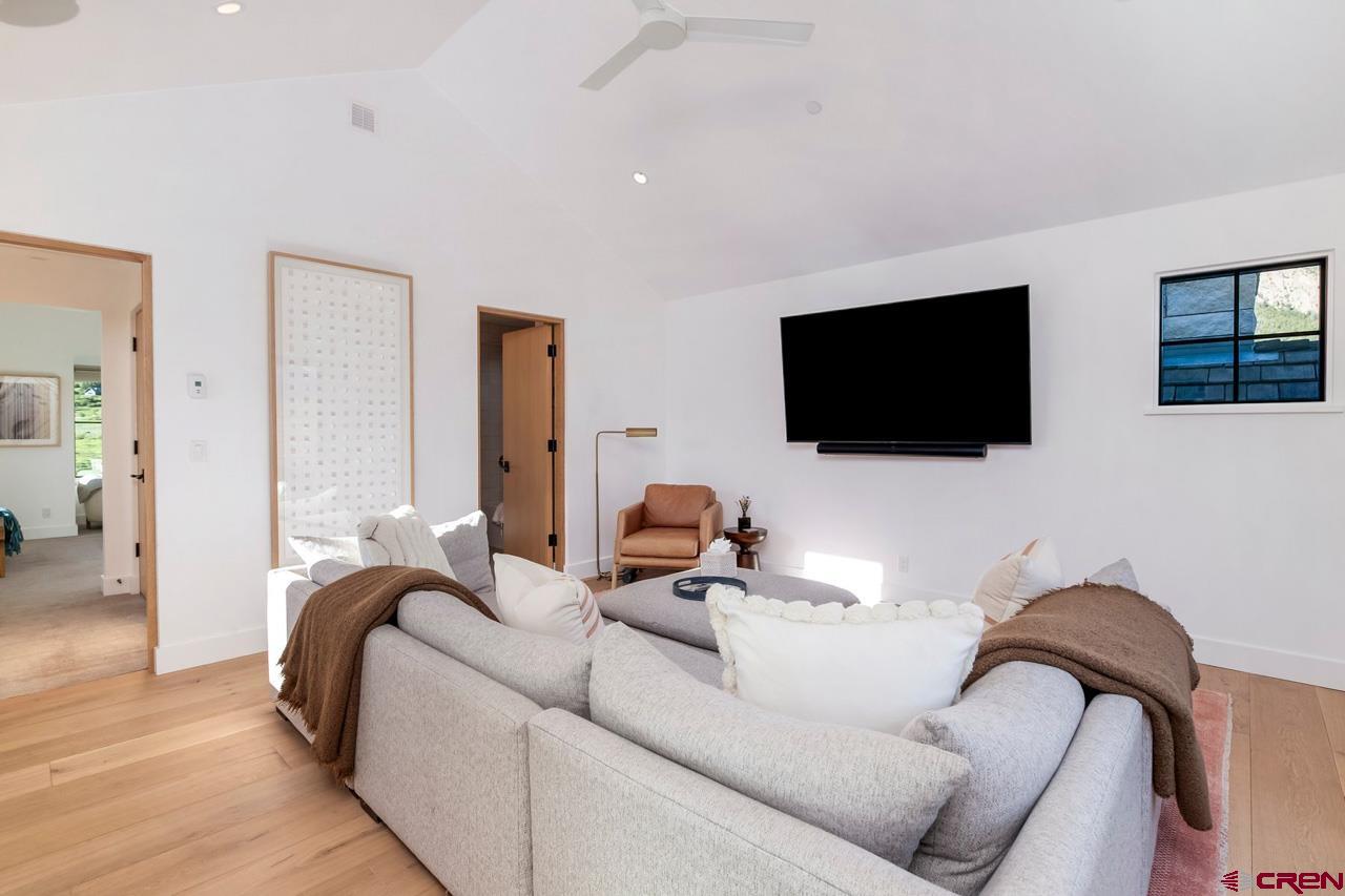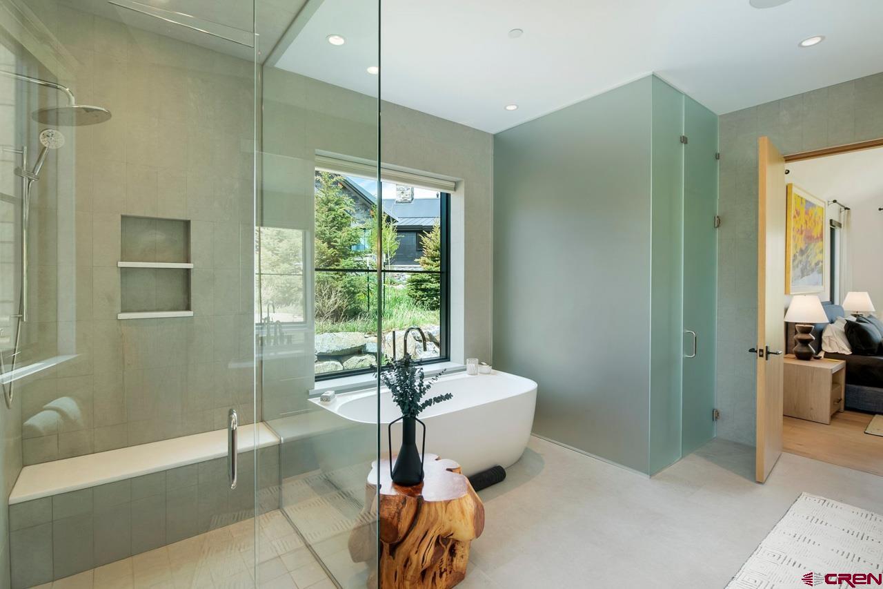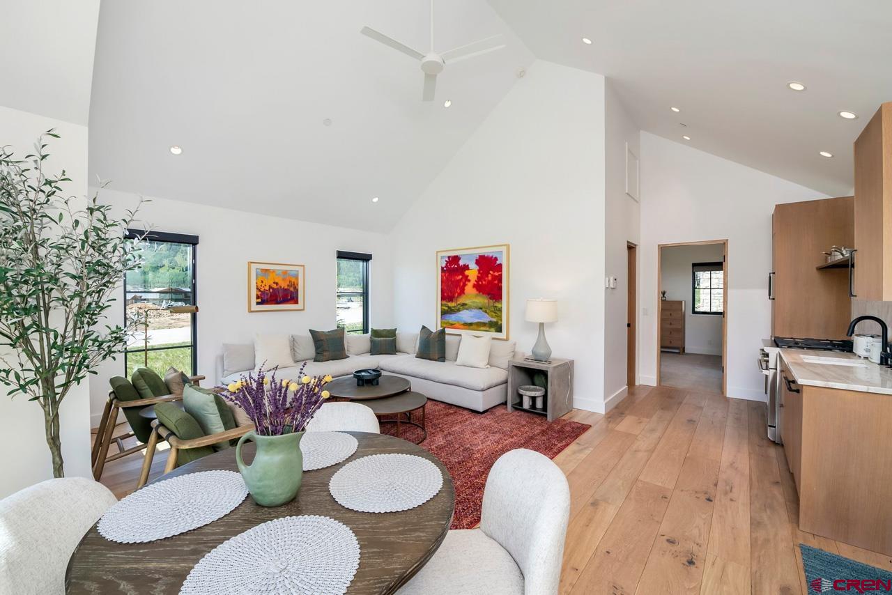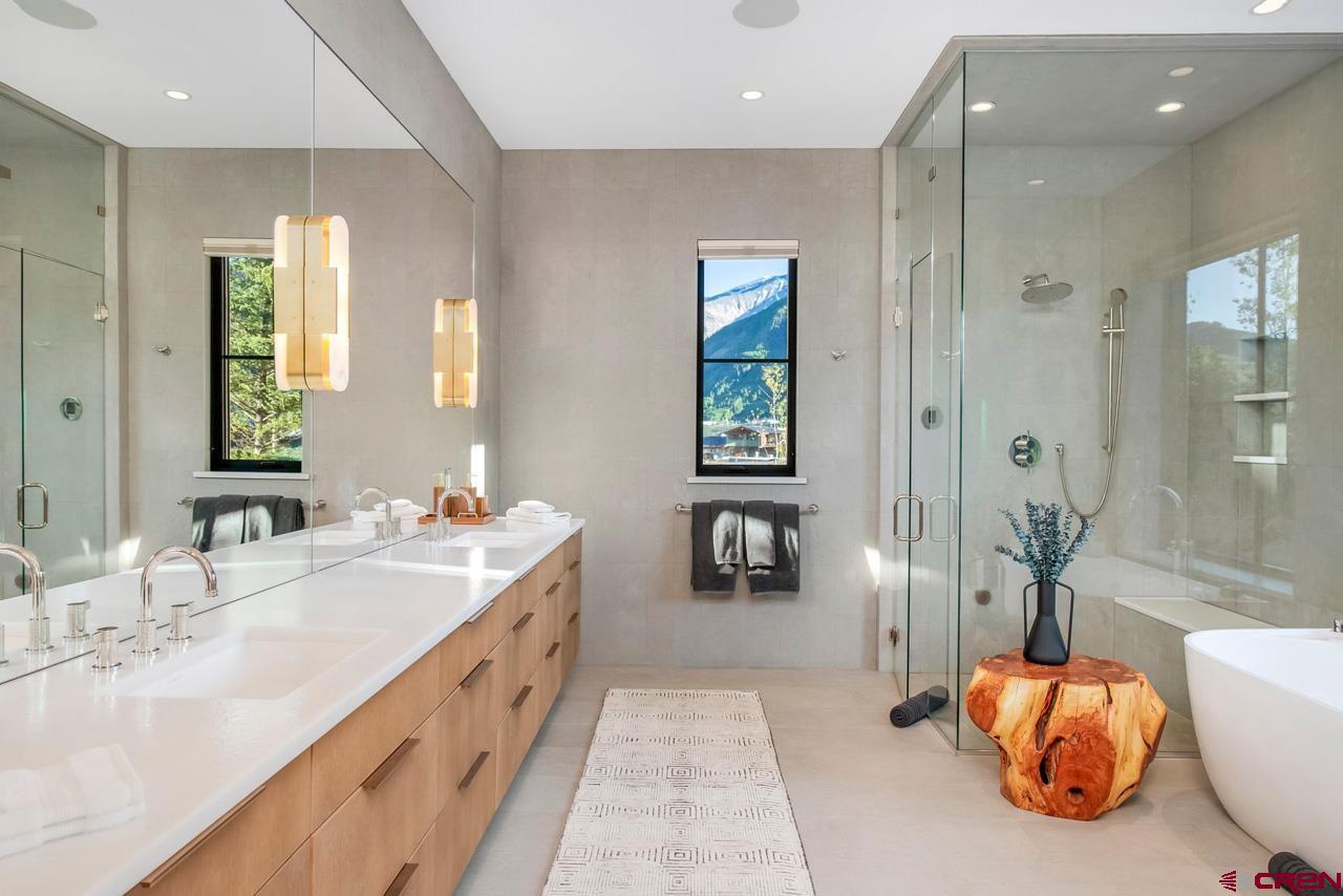 An amazing location adjacent to the historic town of Crested Butte, private Slate River fishing and boating access and stunning mountain views make this fully furnished mountain modern at 33 Aperture one of Crested Butte’s finest offerings. Architected by SHM Architects with interior design by CB Spaces and built by Michael Weil Custom Homes, the property comprises 5,393 SF and rests on a flat 1/2 acre parcel that sits against permanent open space. The main house enjoys a traditional floor plan with the kitchen, dining room, great room and the primary bedroom suite located on the 1st floor. Upstairs there are three guest suites and a comfortable second living room. The views from the upstairs suites are awesome too! The great room is anchored by a gorgeous floor-to-ceiling stone fireplace and features vaulted ceilings and picture windows that expertly capture the mountain views. When friends and family visit they will enjoy their own special retreat in the "Casita" guest house. The guest house features a vaulted living area with a picture frame view of Mt Crested Butte, a full kitchen, a bath and a spacious bedroom. Throughout the property, designer lighting and hardware compliment the solid white oak doors, the white oak wide plank flooring, the Ann Sacks tile treatments and the Pete Peacock custom built cabinetry. Deborah Walker of Dallas selected all of the plumbing fixtures. The well appointed Wolf-SubZero kitchen features gorgeous natural stone tops and there is a covered steel beam and stone porch set up for alfresco dining and relaxing outside during our glorious Colorado summers! The home enjoys a distributed audio/video system and the whole house lighting is powered by Lutron. The two-car, 462 SF heated garage will accommodate large vehicles with room for the skis, bikes and paddle boards.